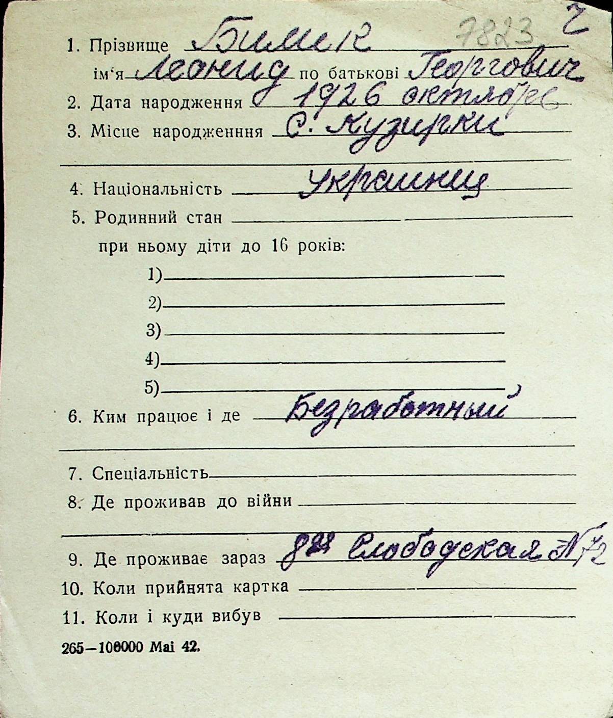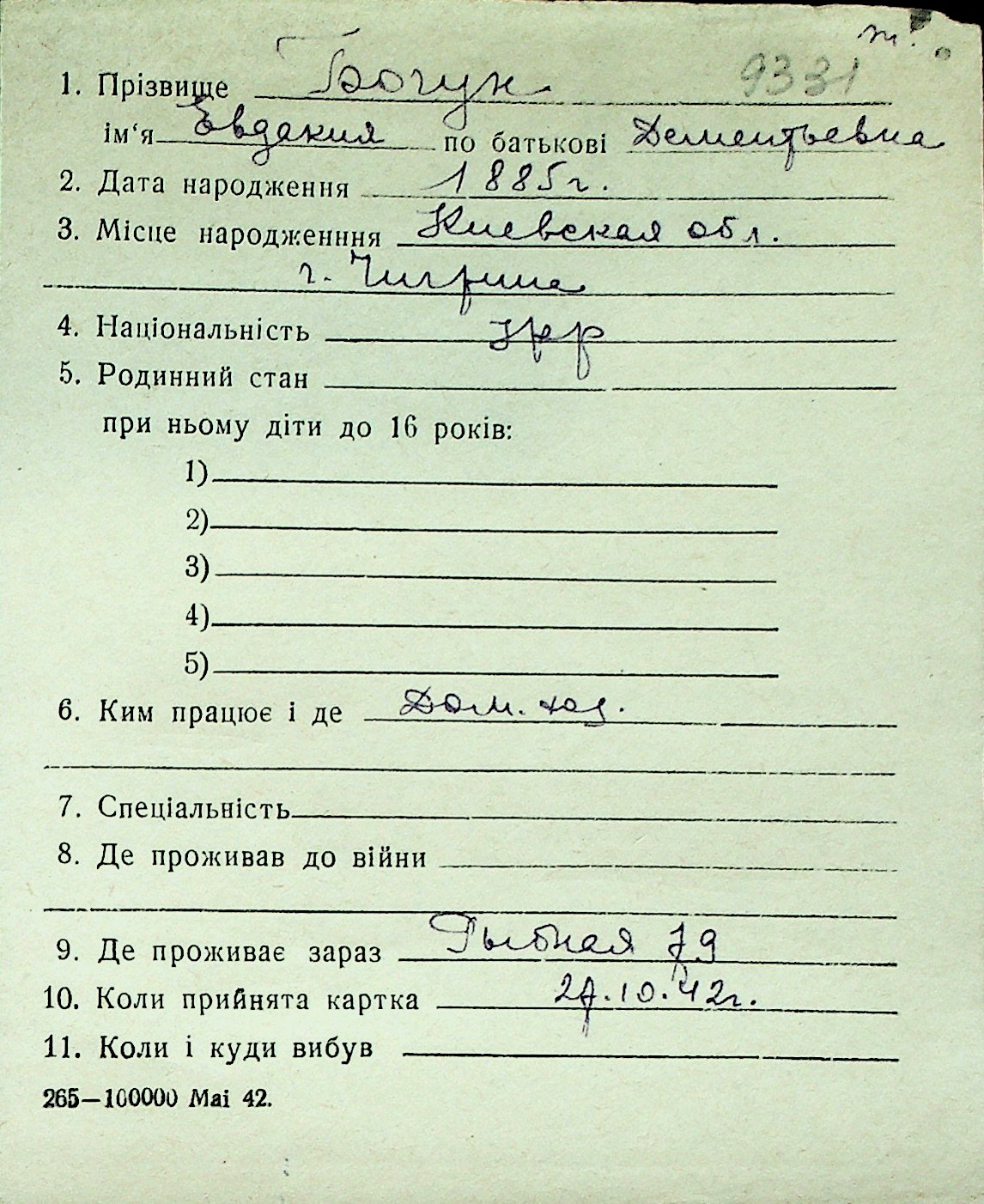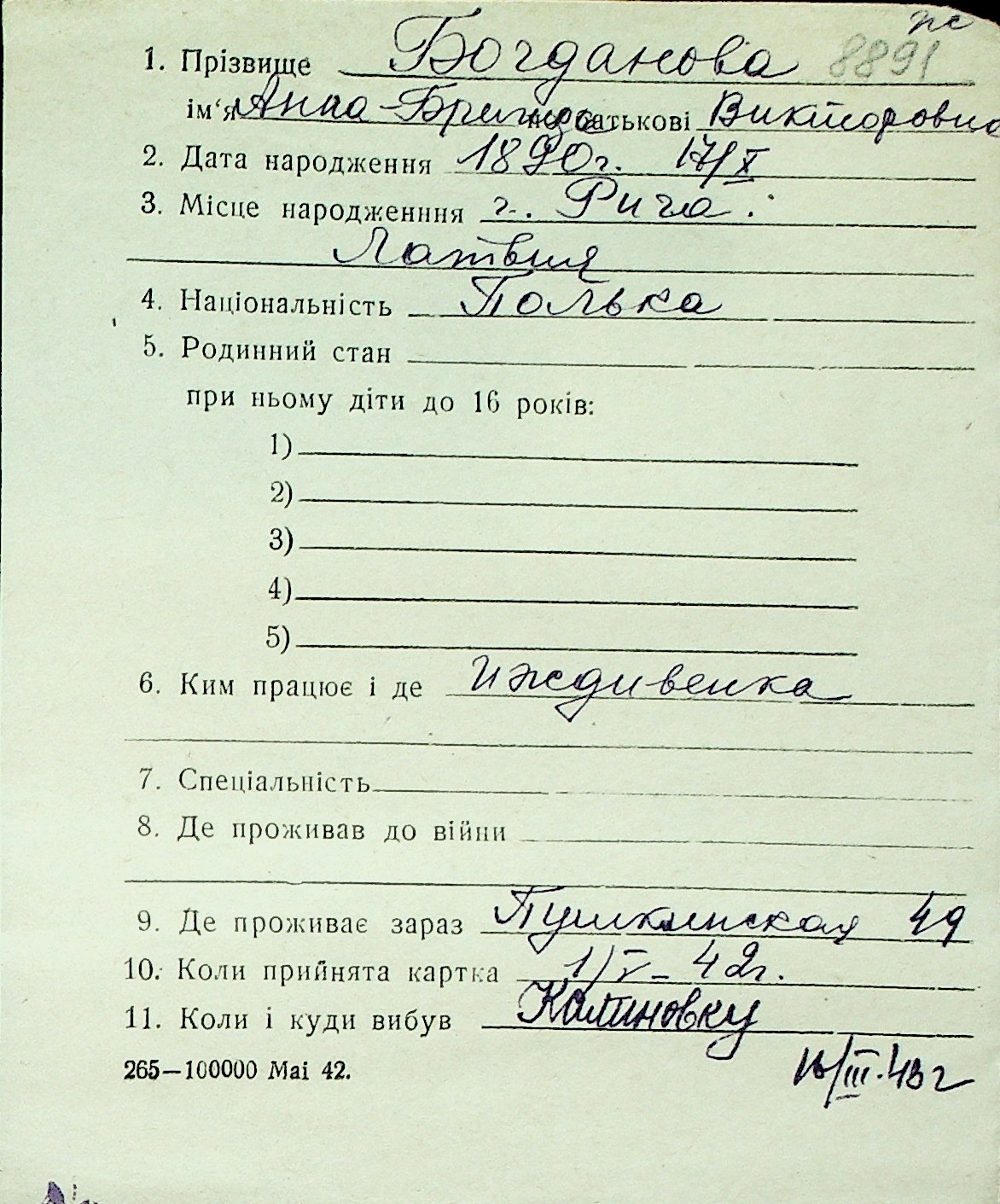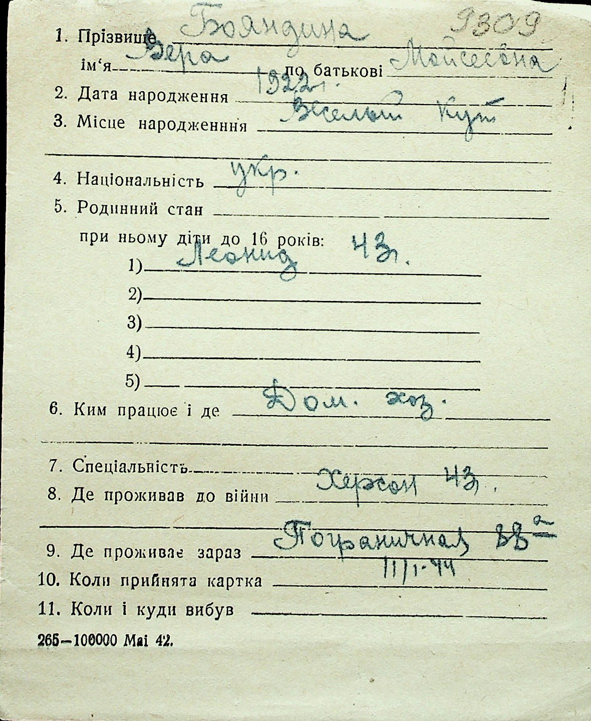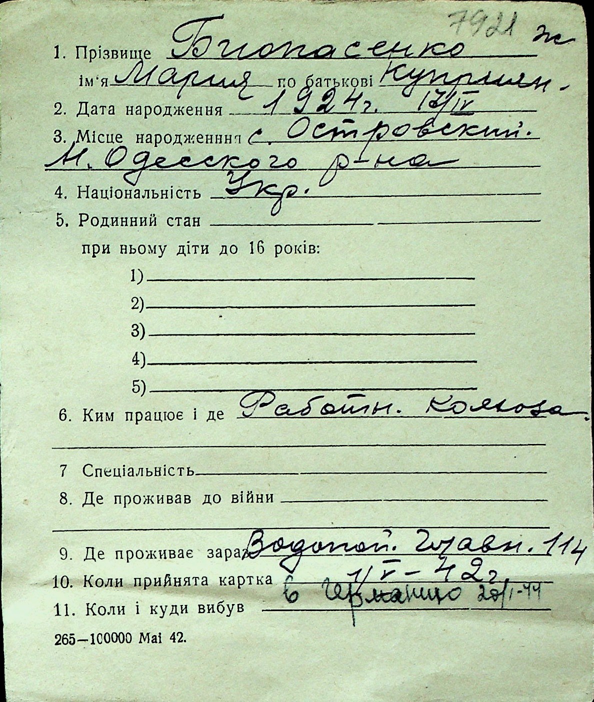 ◦ ◦ Перелік карток на осіб, які мешкали у м. Миколаїв у період окупації 1941–1944 років