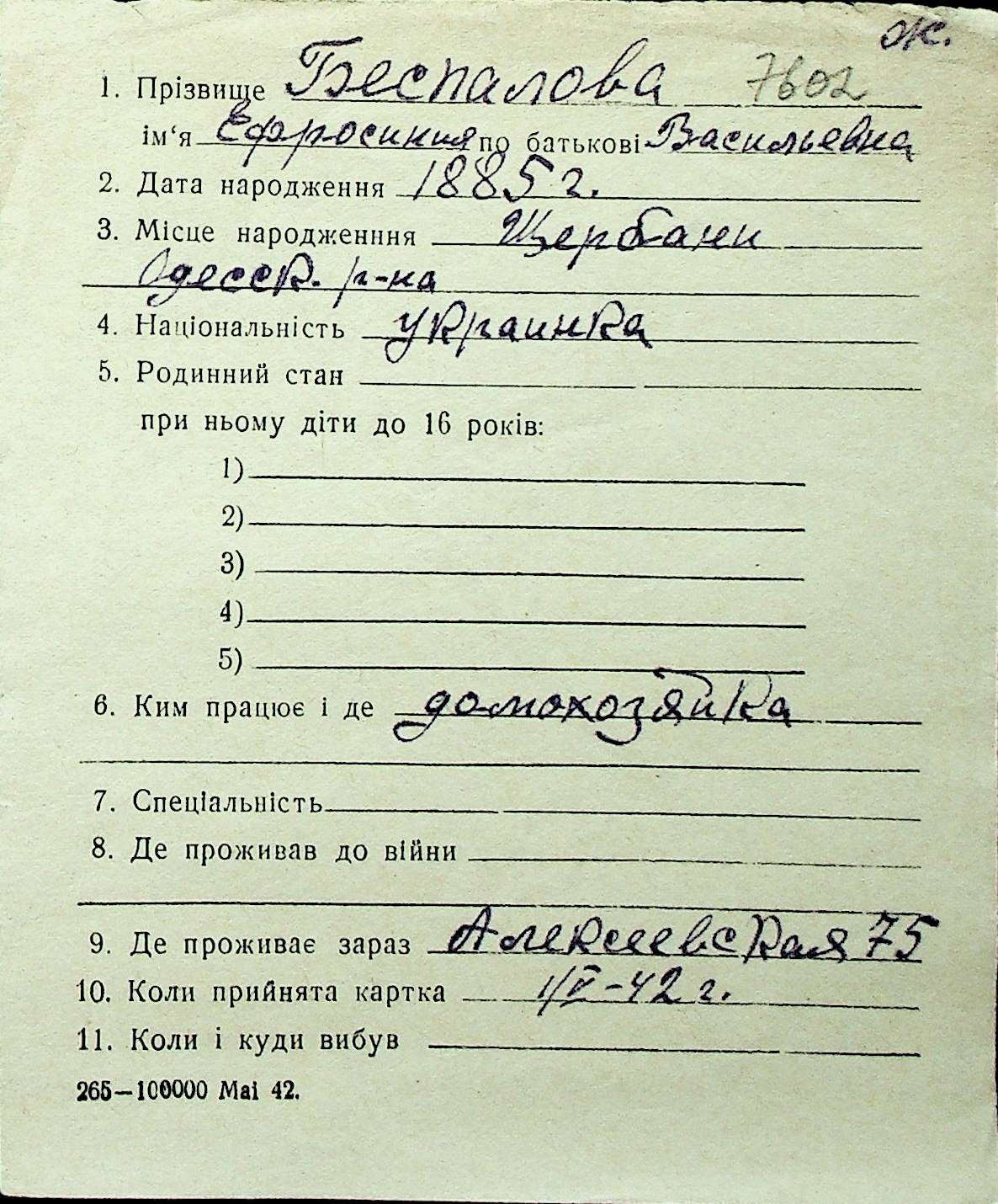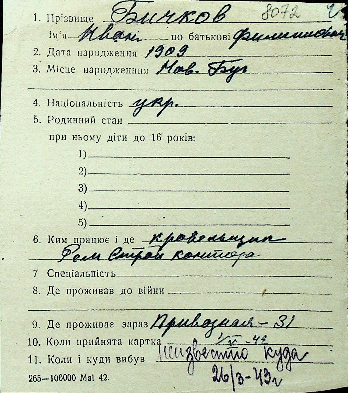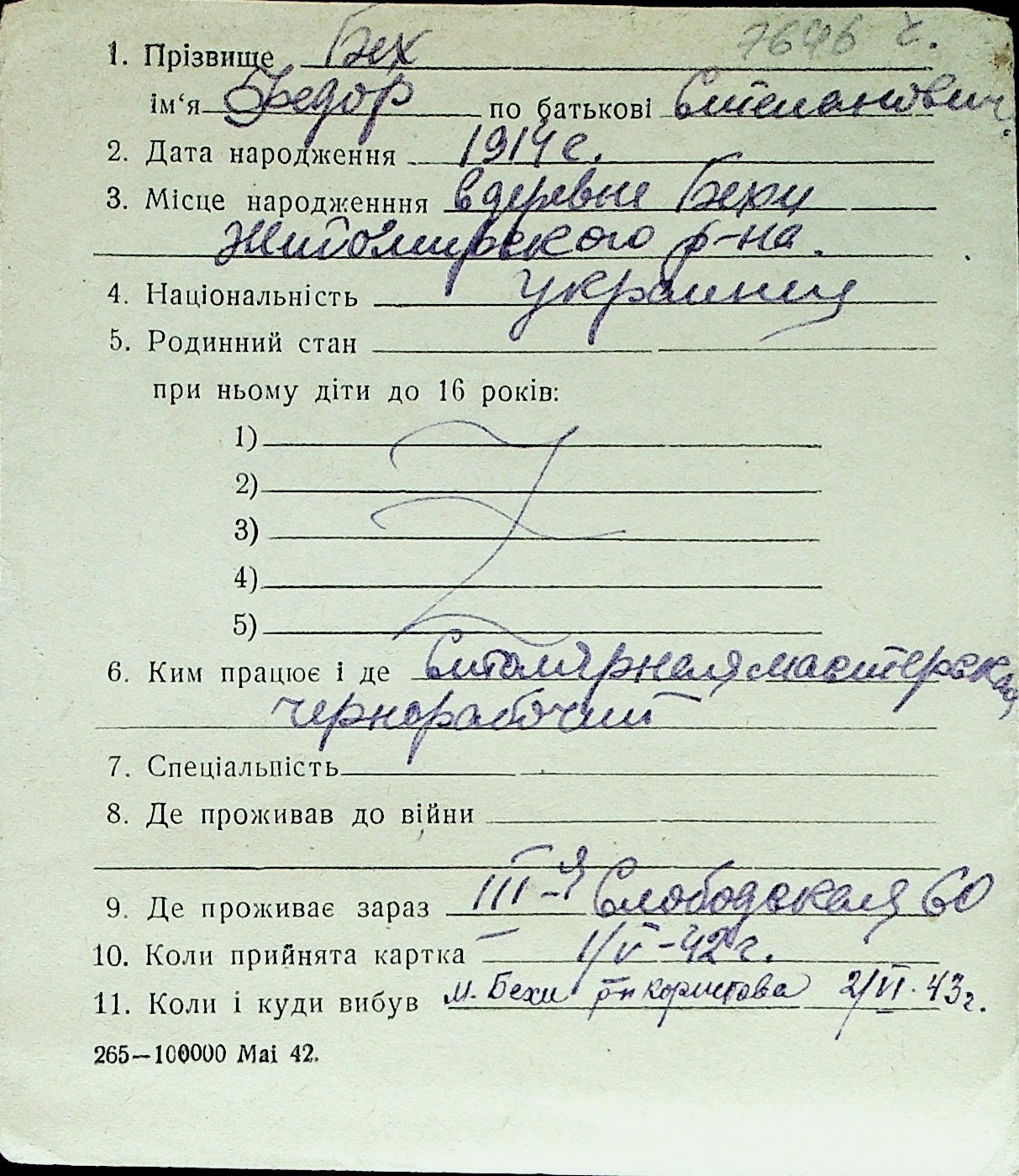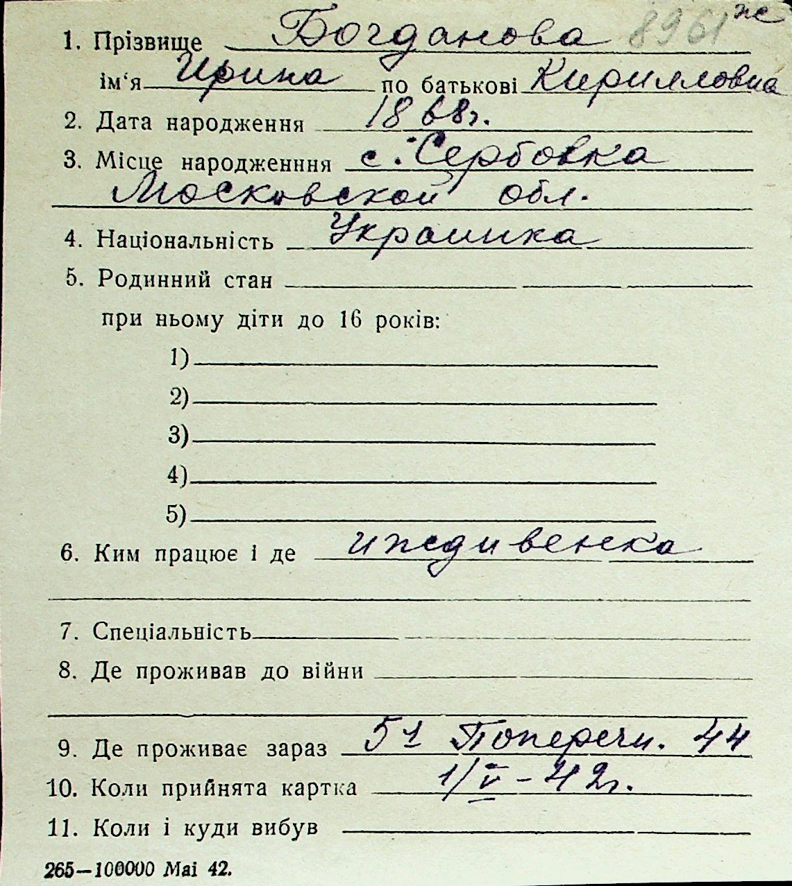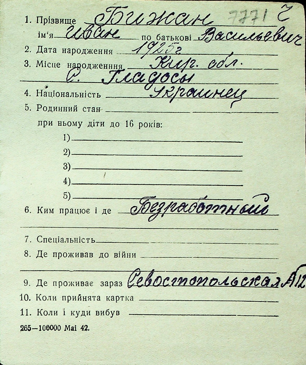 ◦ ◦ Перелік карток на осіб, які мешкали у м. Миколаїв у період окупації 1941–1944 років