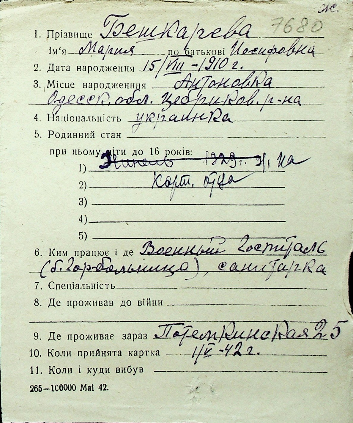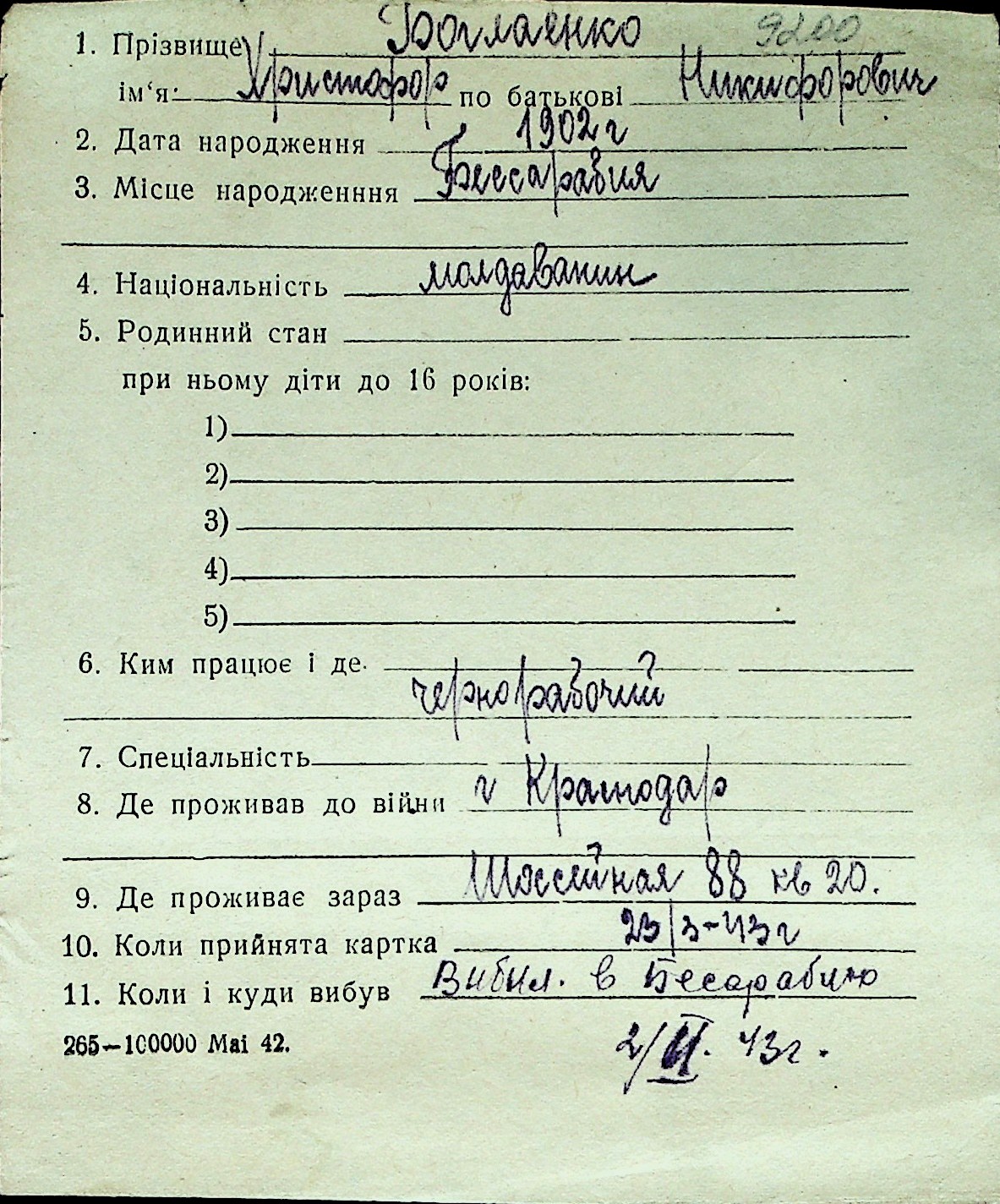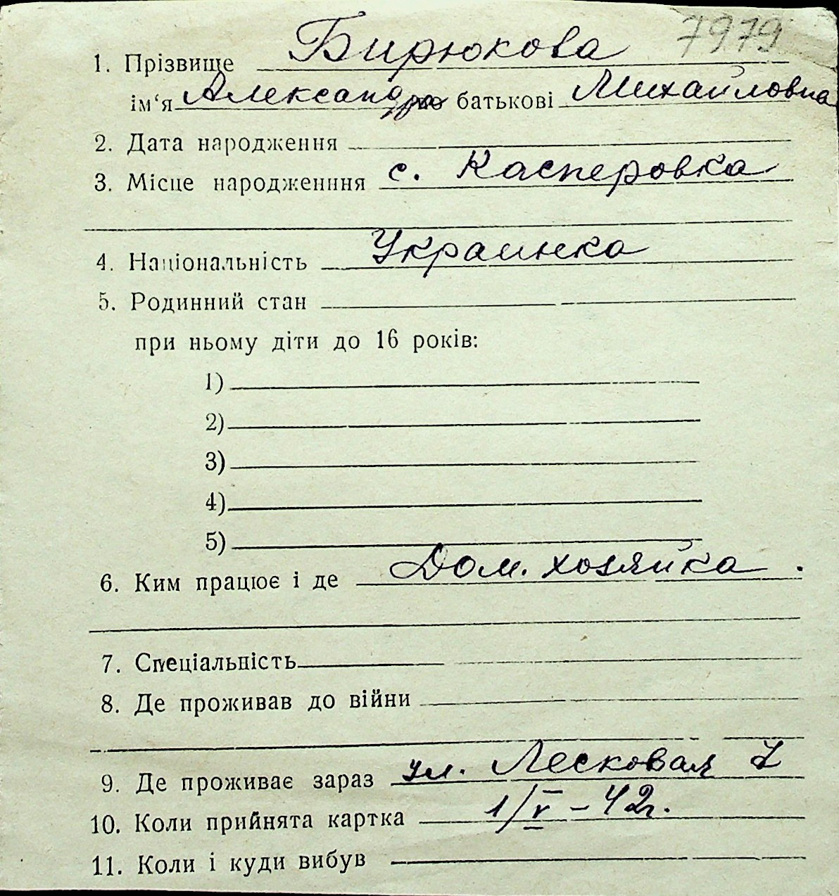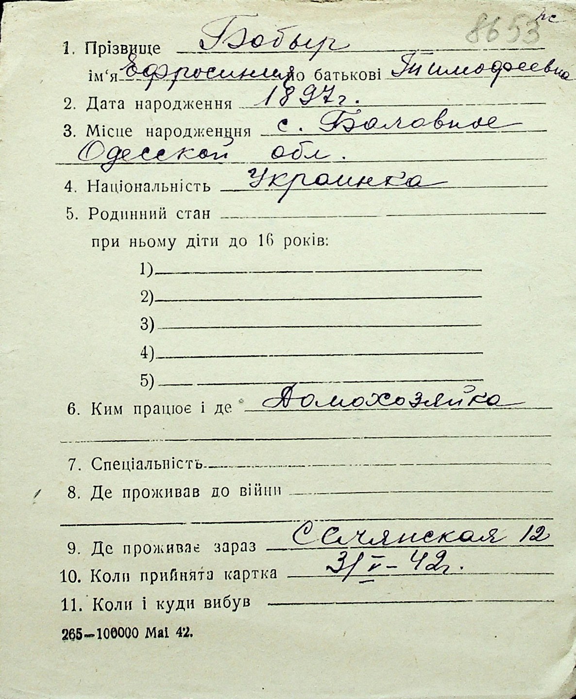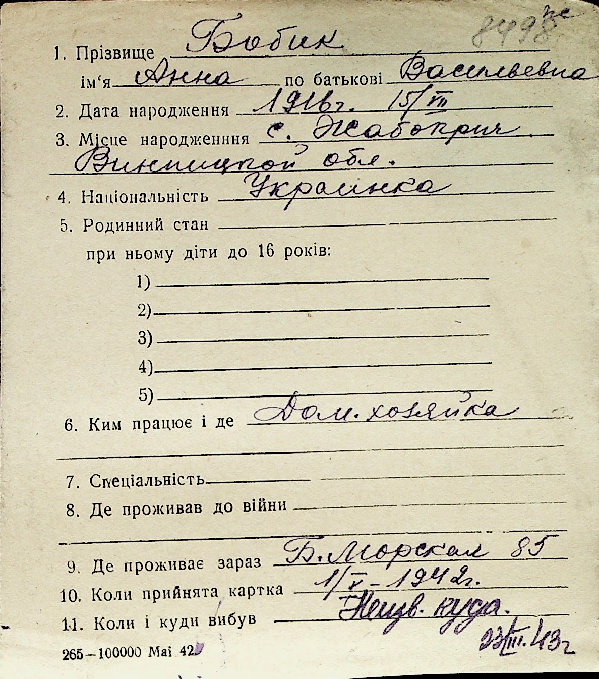 ◦ ◦ Перелік карток на осіб, які мешкали у м. Миколаїв у період окупації 1941–1944 років