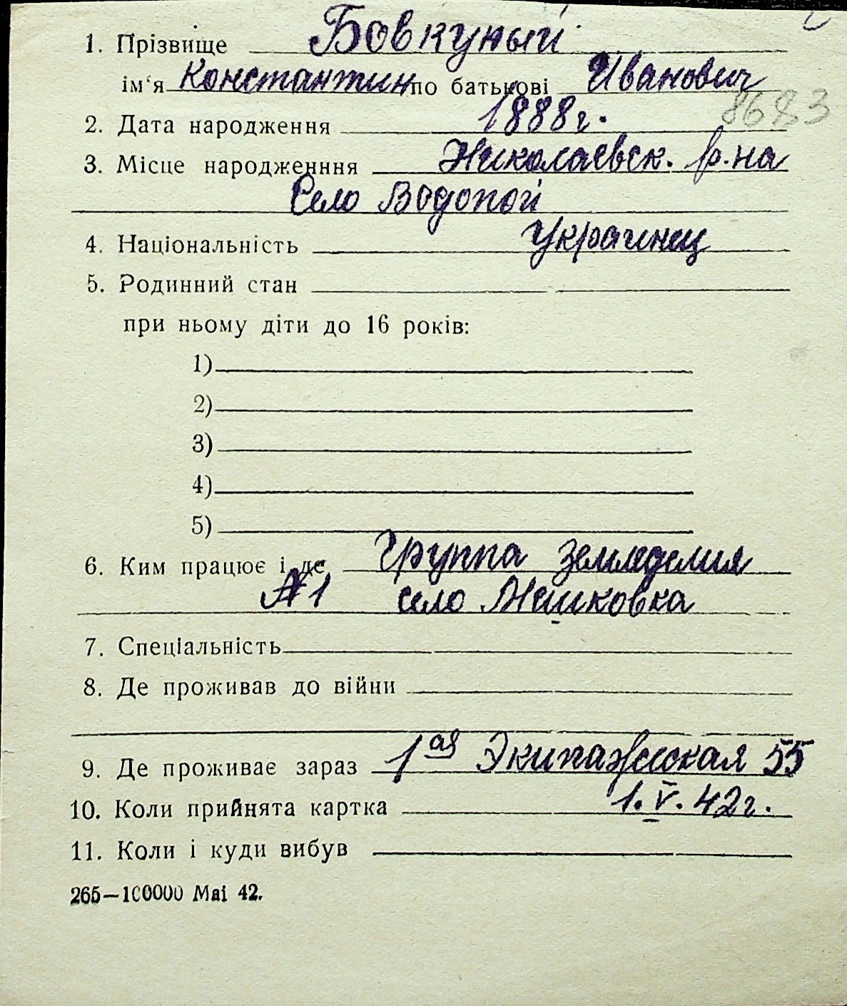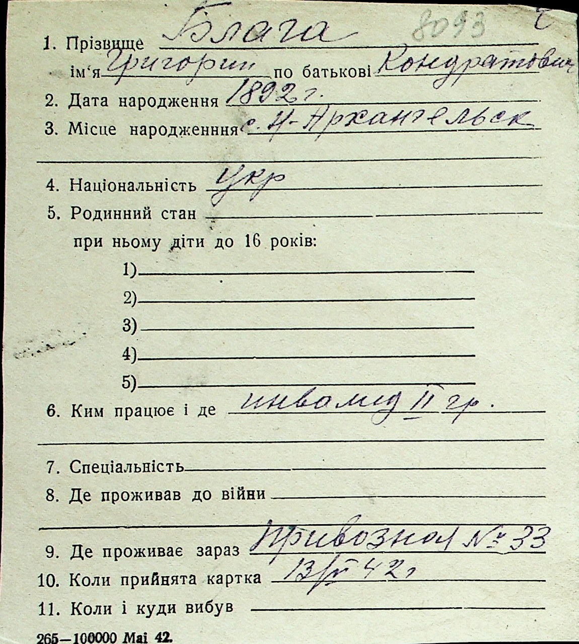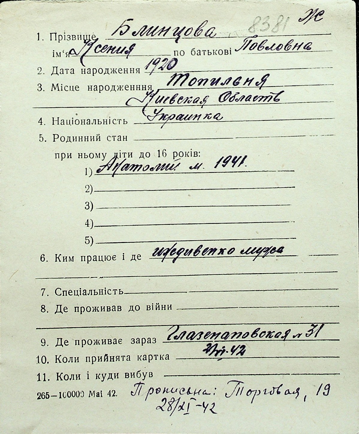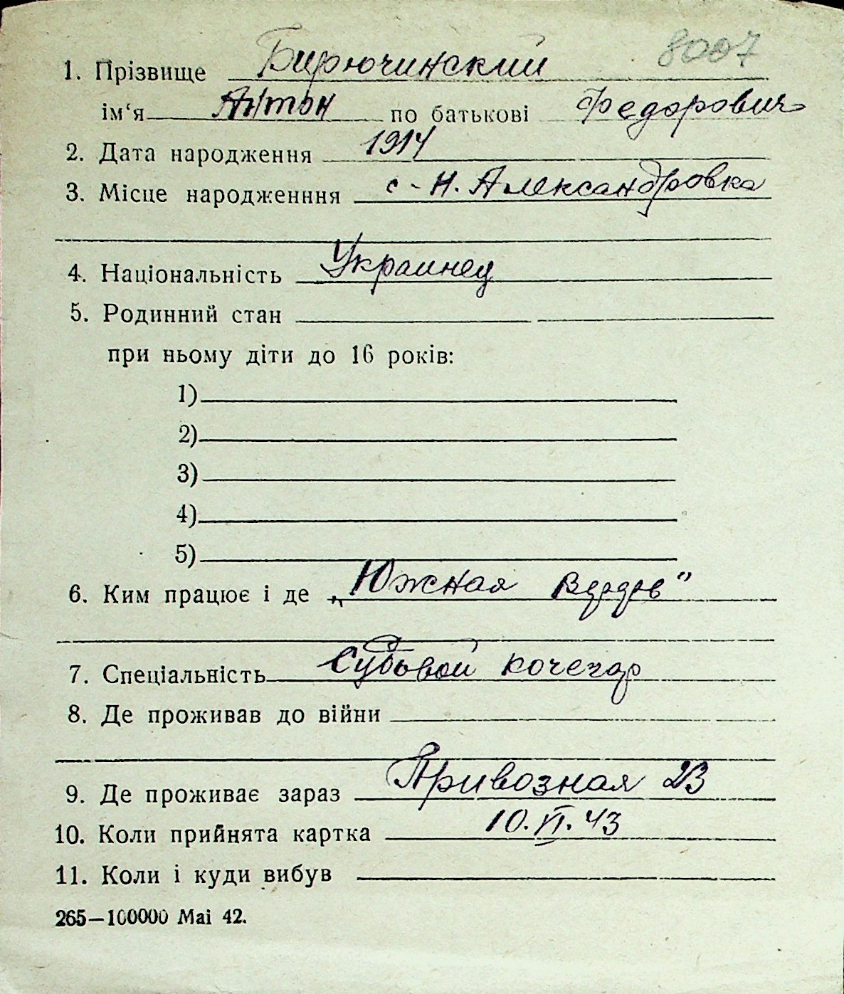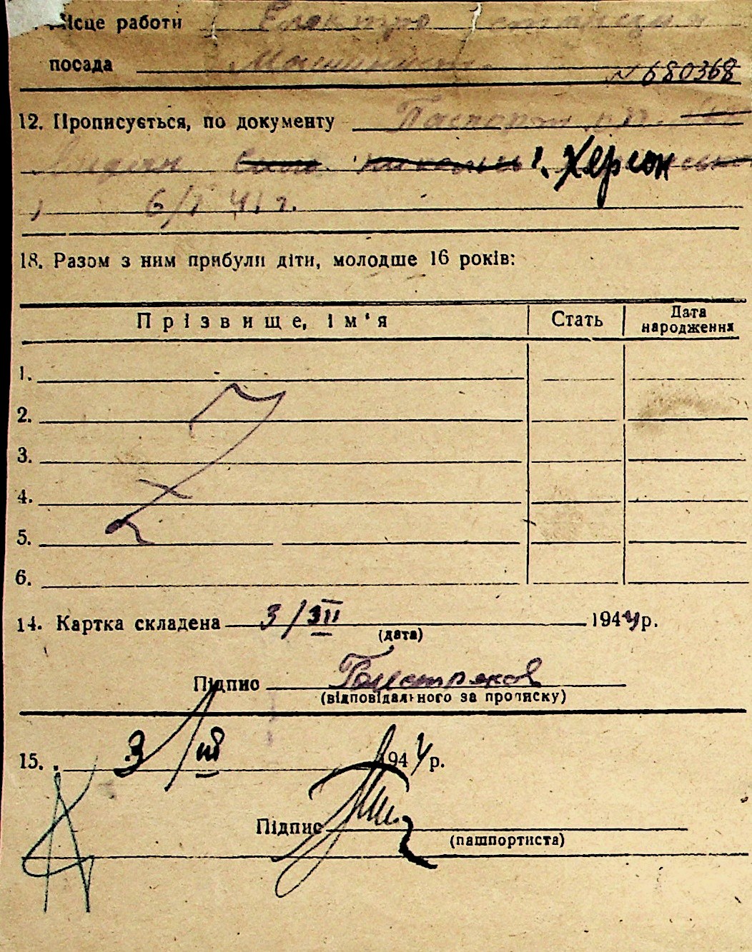 ◦ ◦ Перелік карток на осіб, які мешкали у м. Миколаїв у період окупації 1941–1944 років