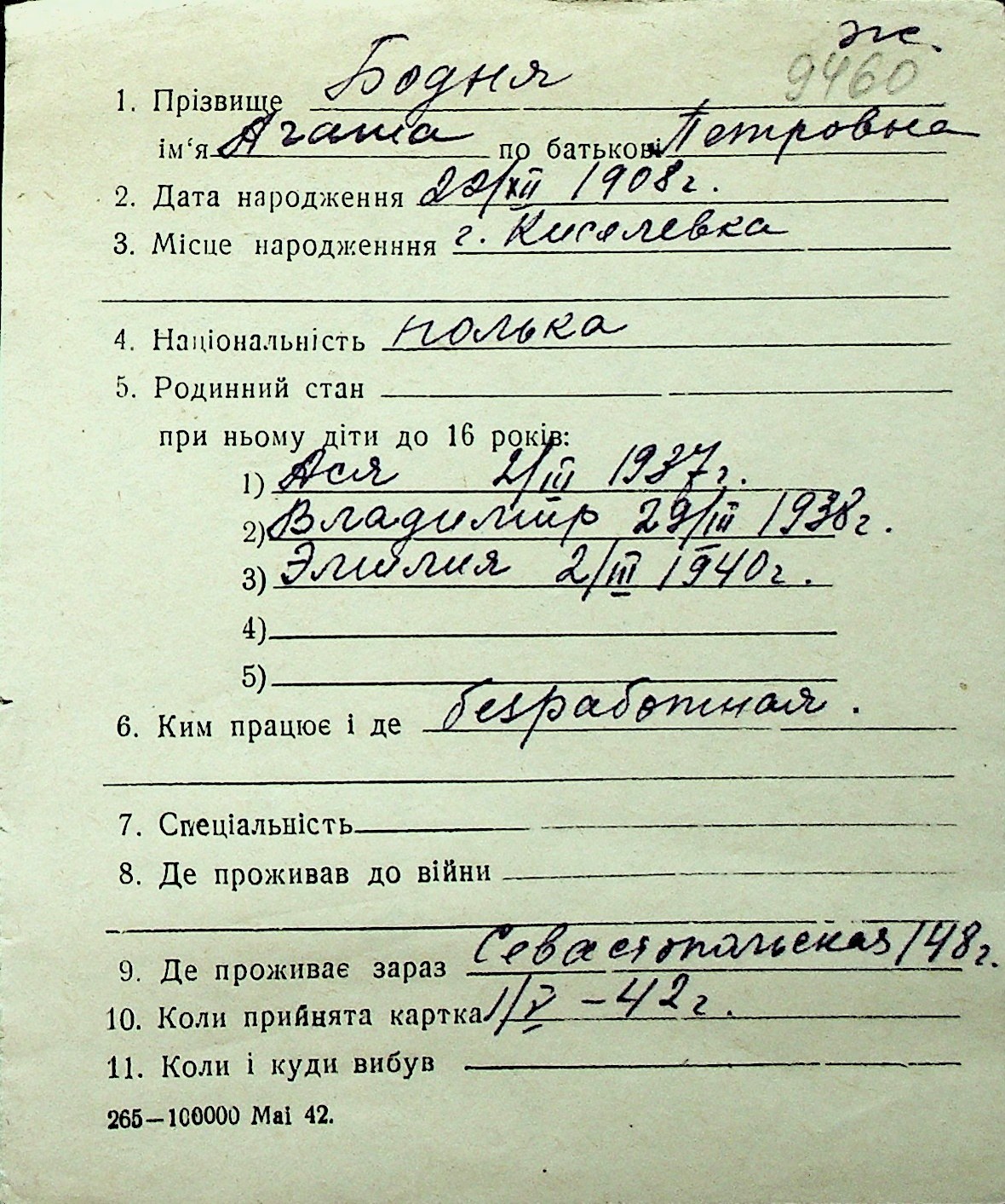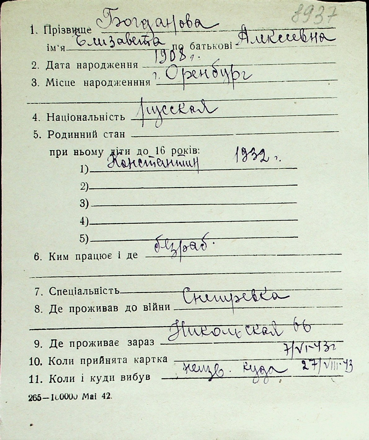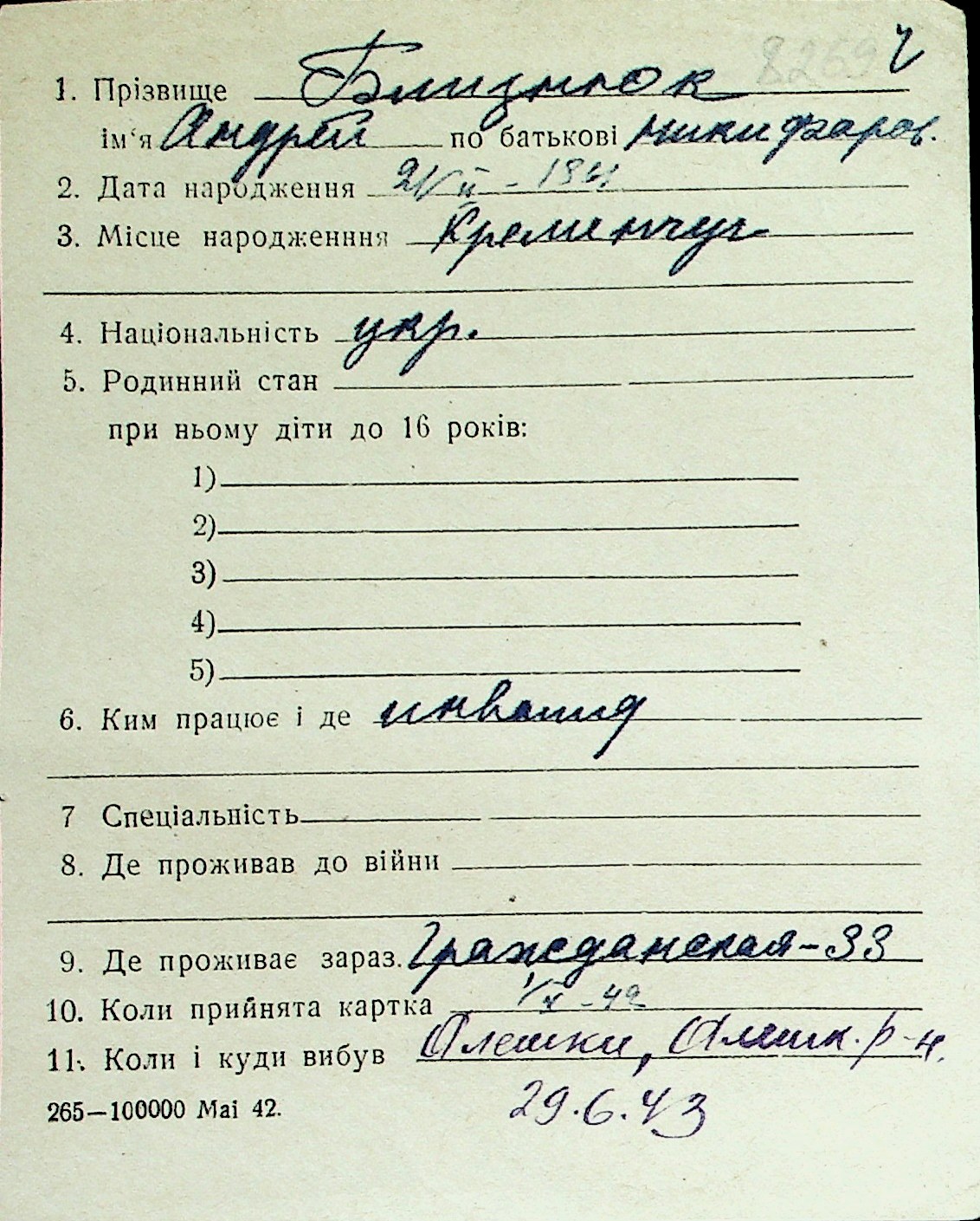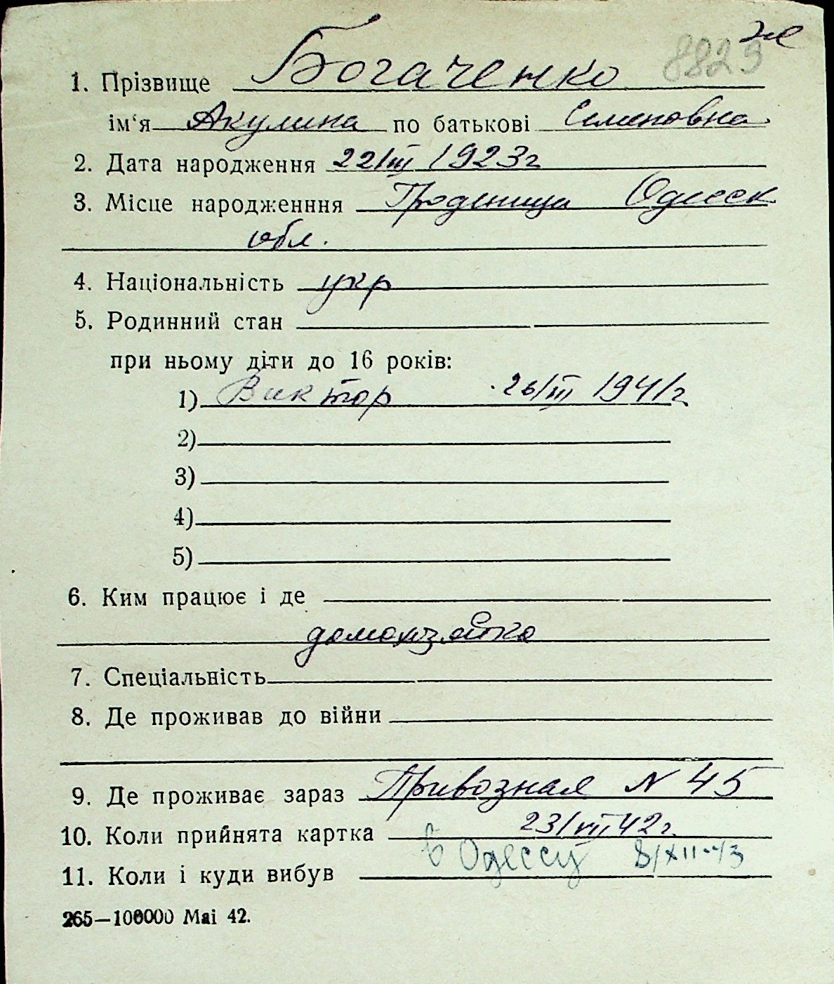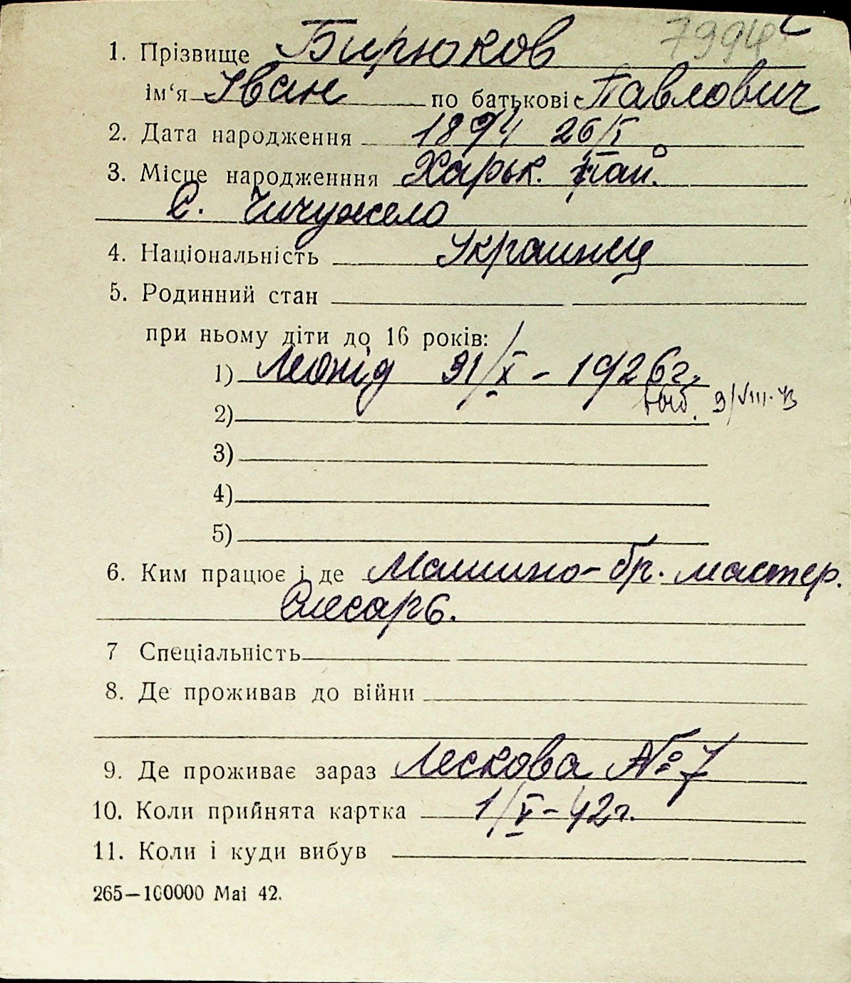 ◦ ◦ Перелік карток на осіб, які мешкали у м. Миколаїв у період окупації 1941–1944 років