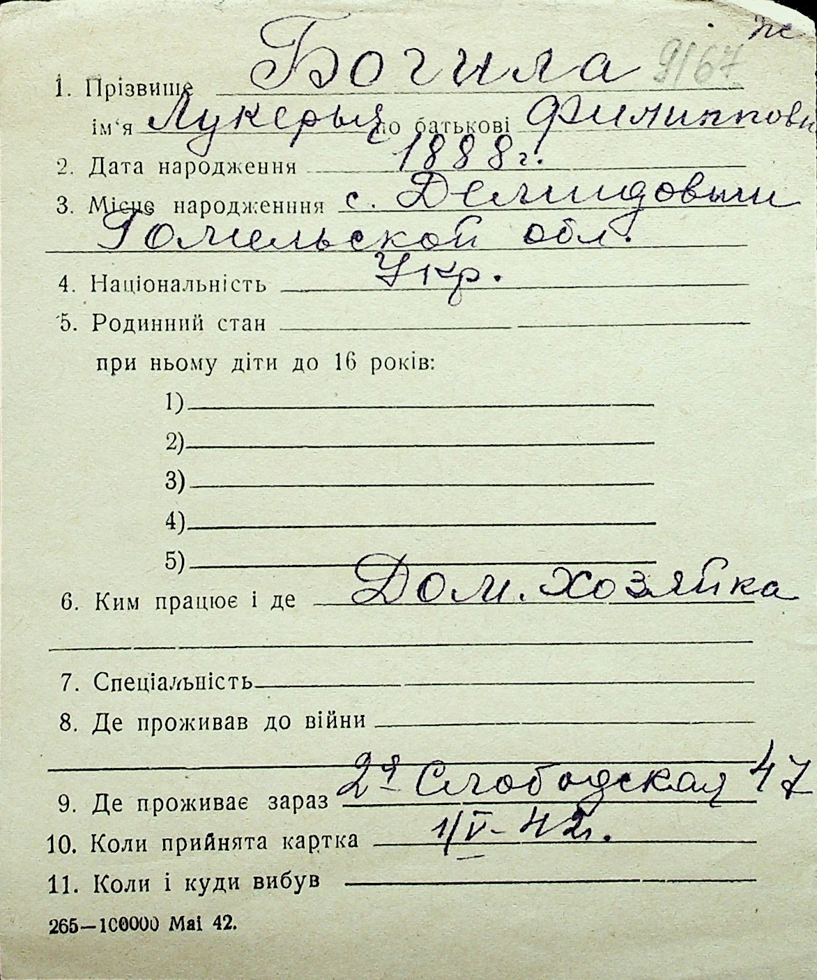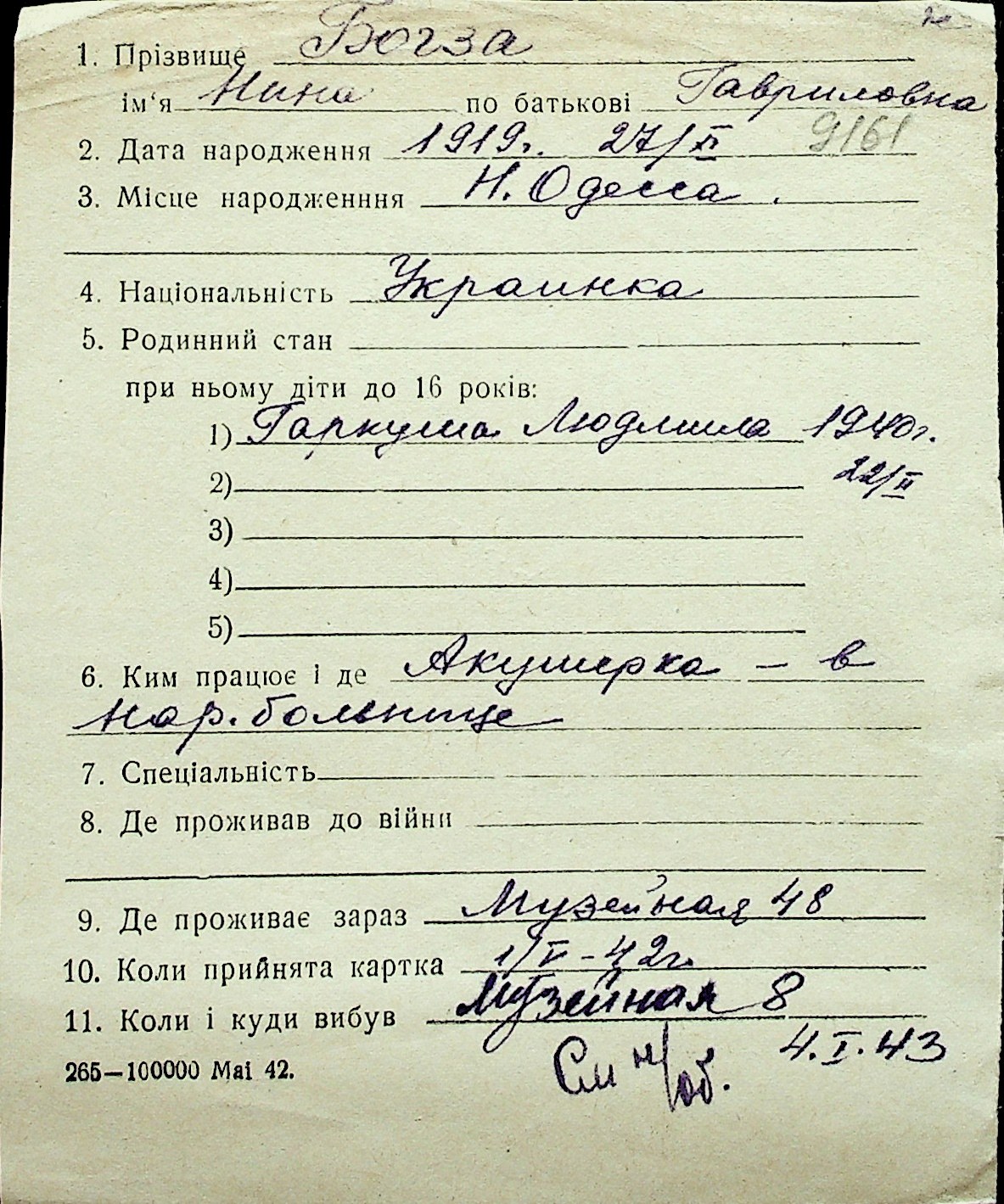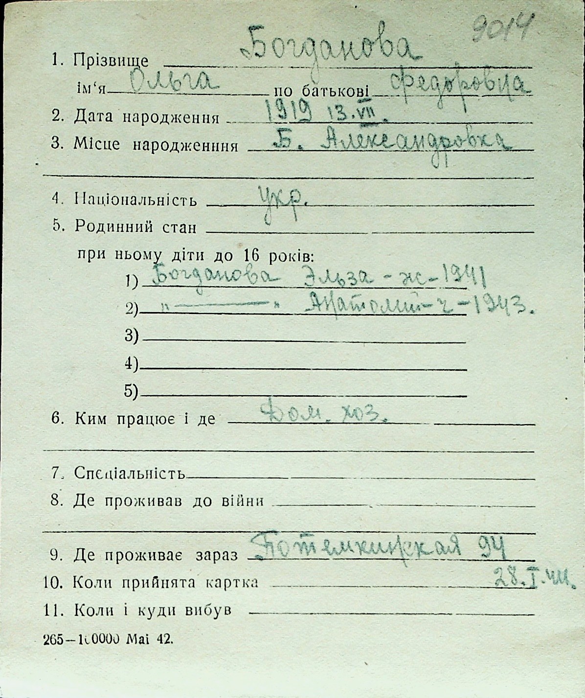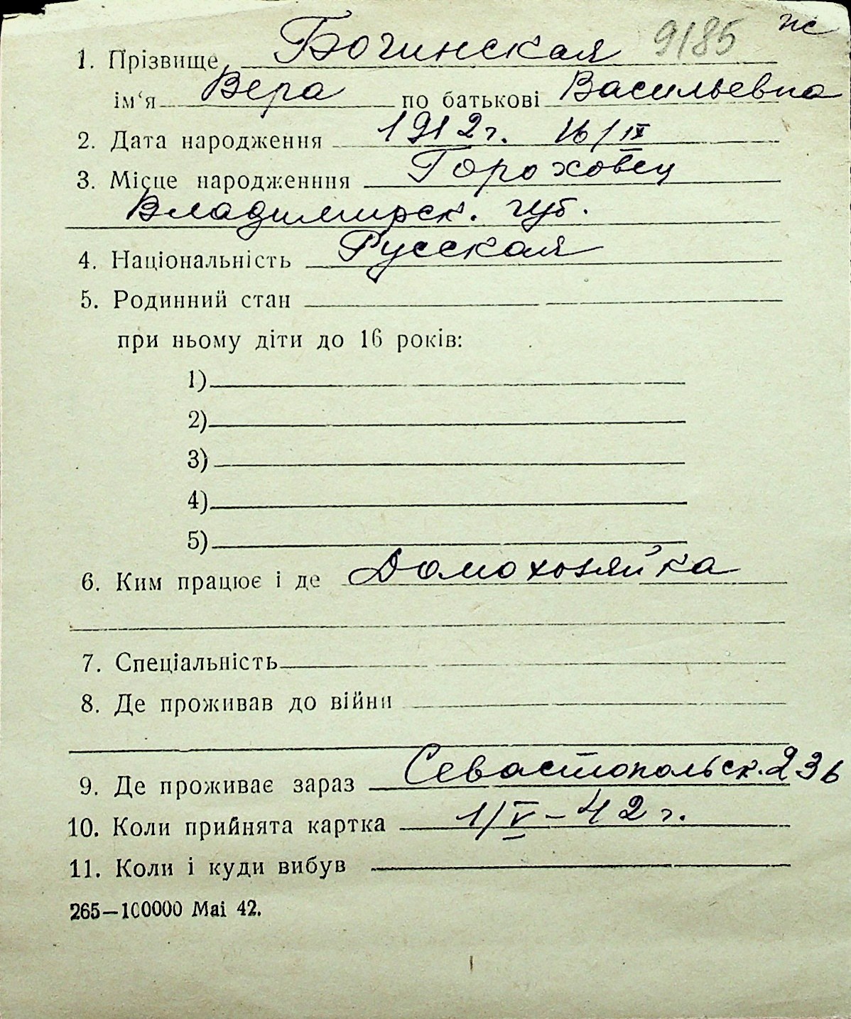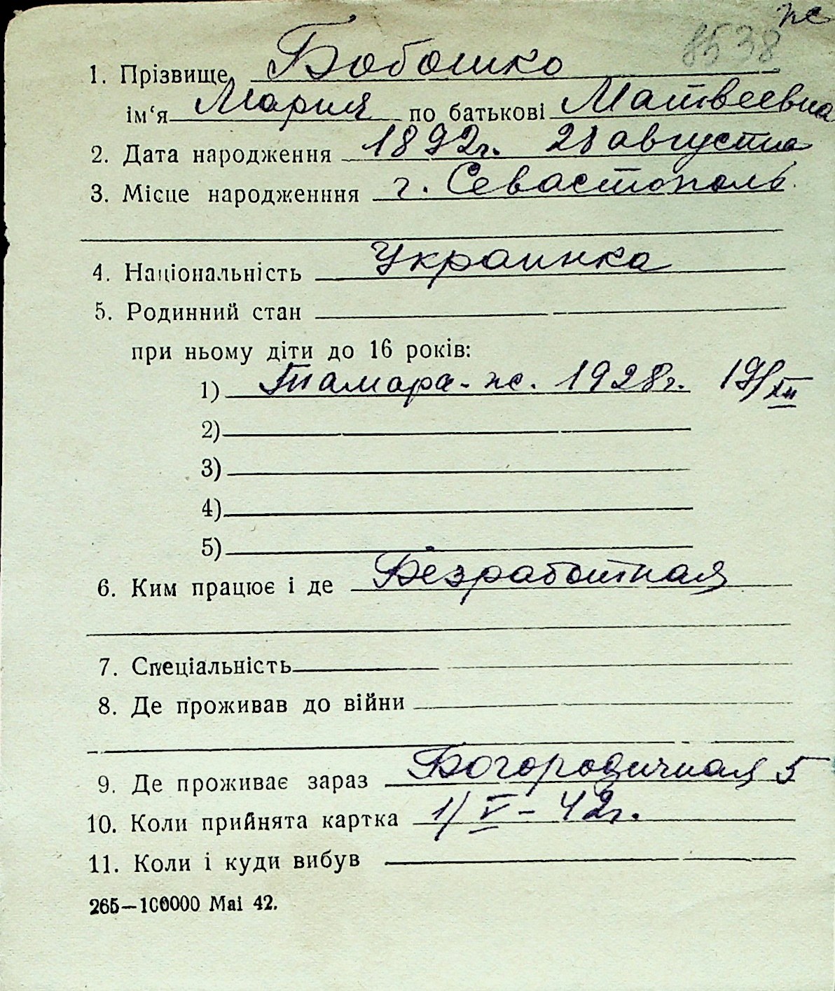 ◦ ◦ Перелік карток на осіб, які мешкали у м. Миколаїв у період окупації 1941–1944 років