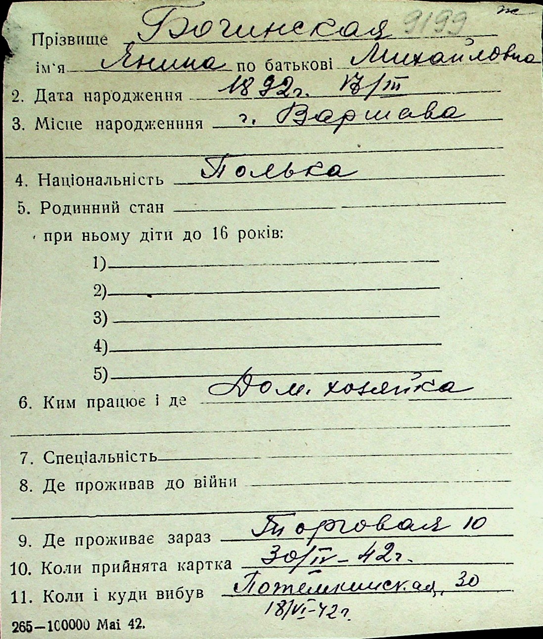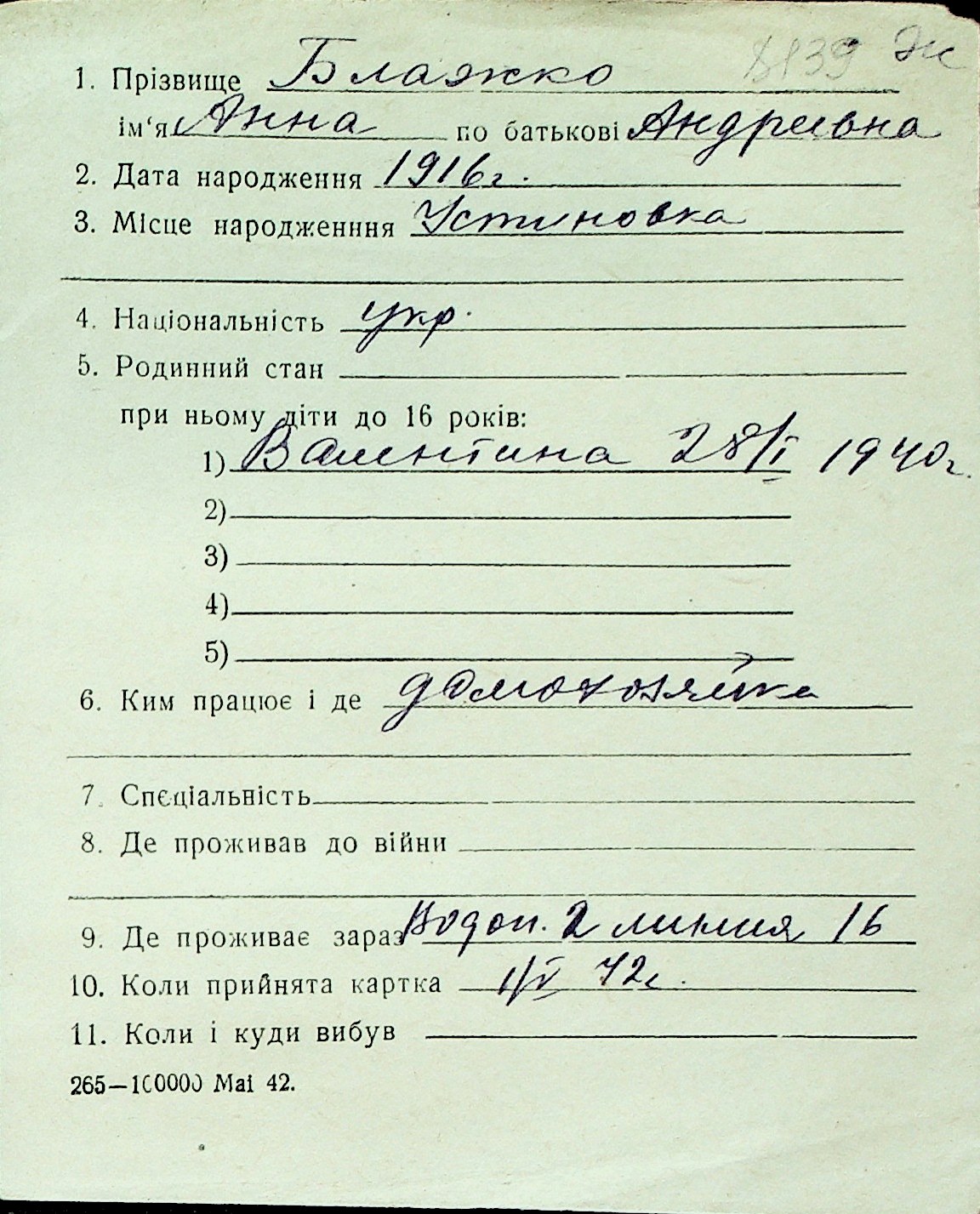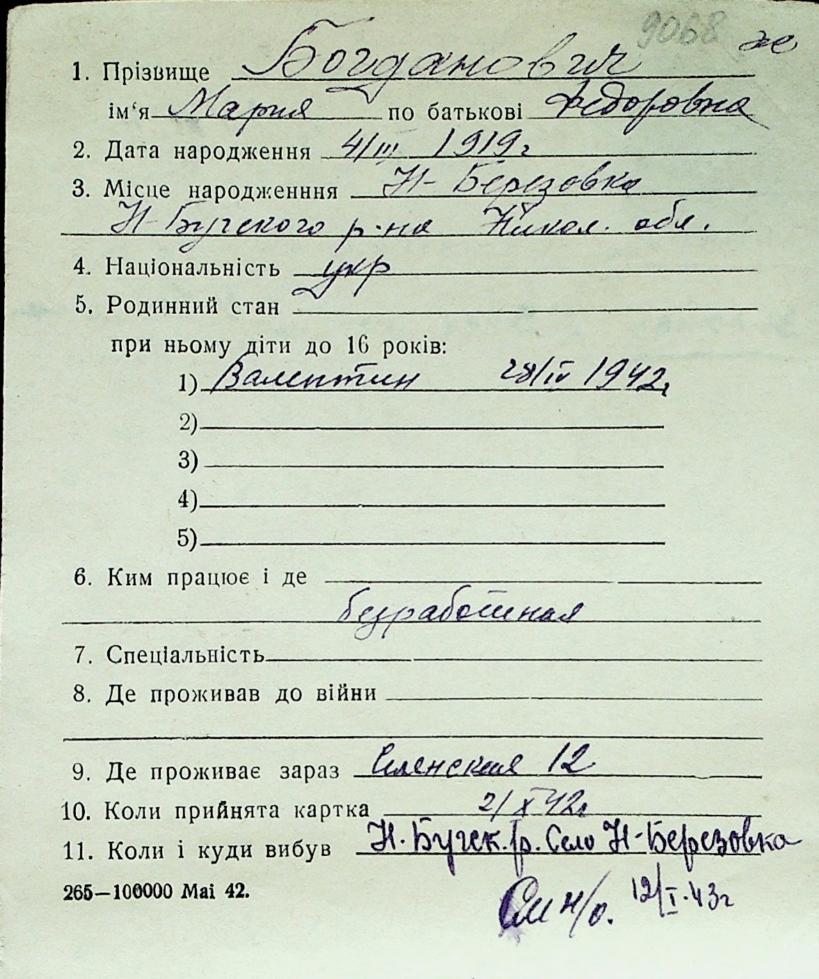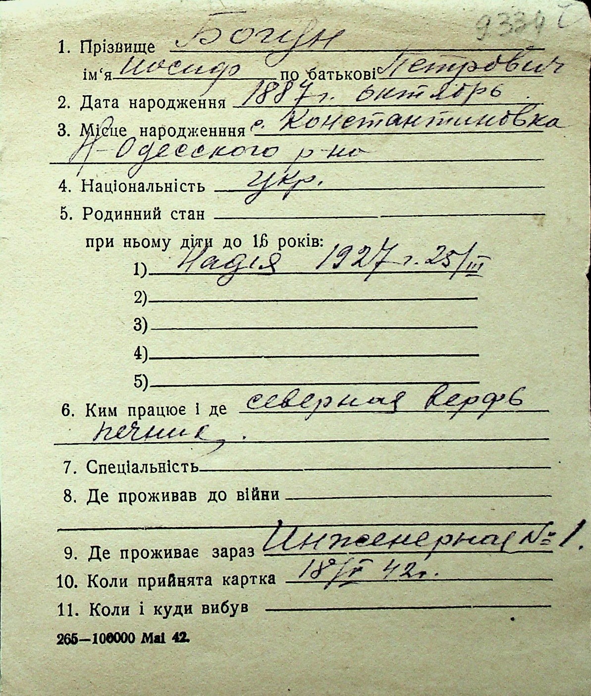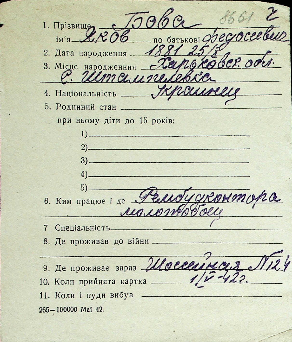◦ ◦ Перелік карток на осіб, які мешкали у м. Миколаїв у період окупації 1941–1944 років