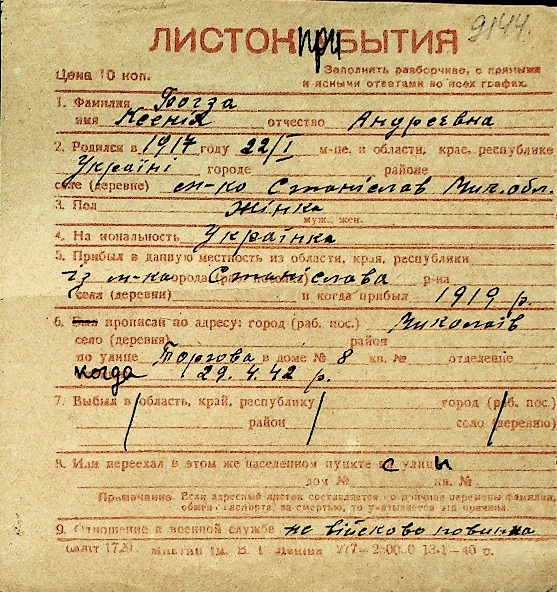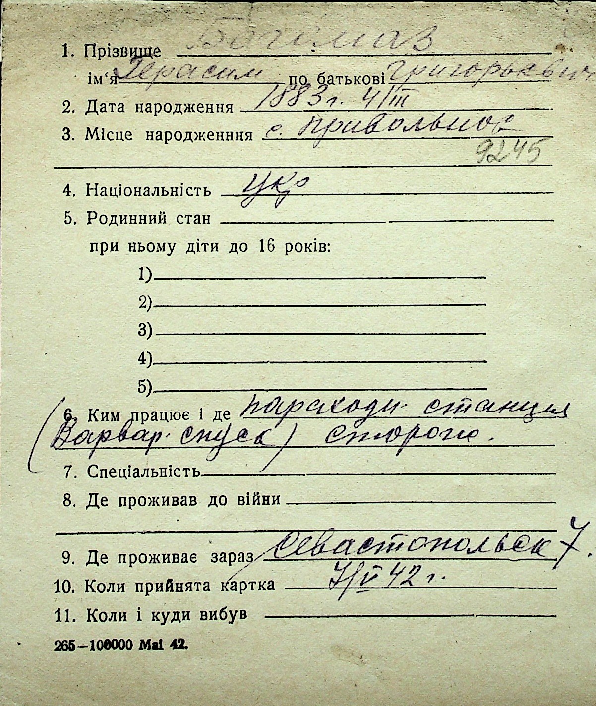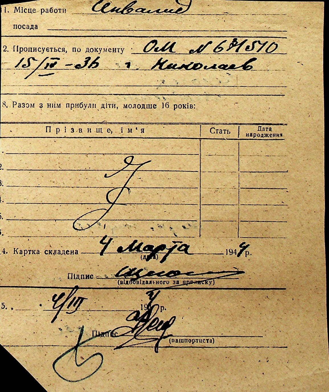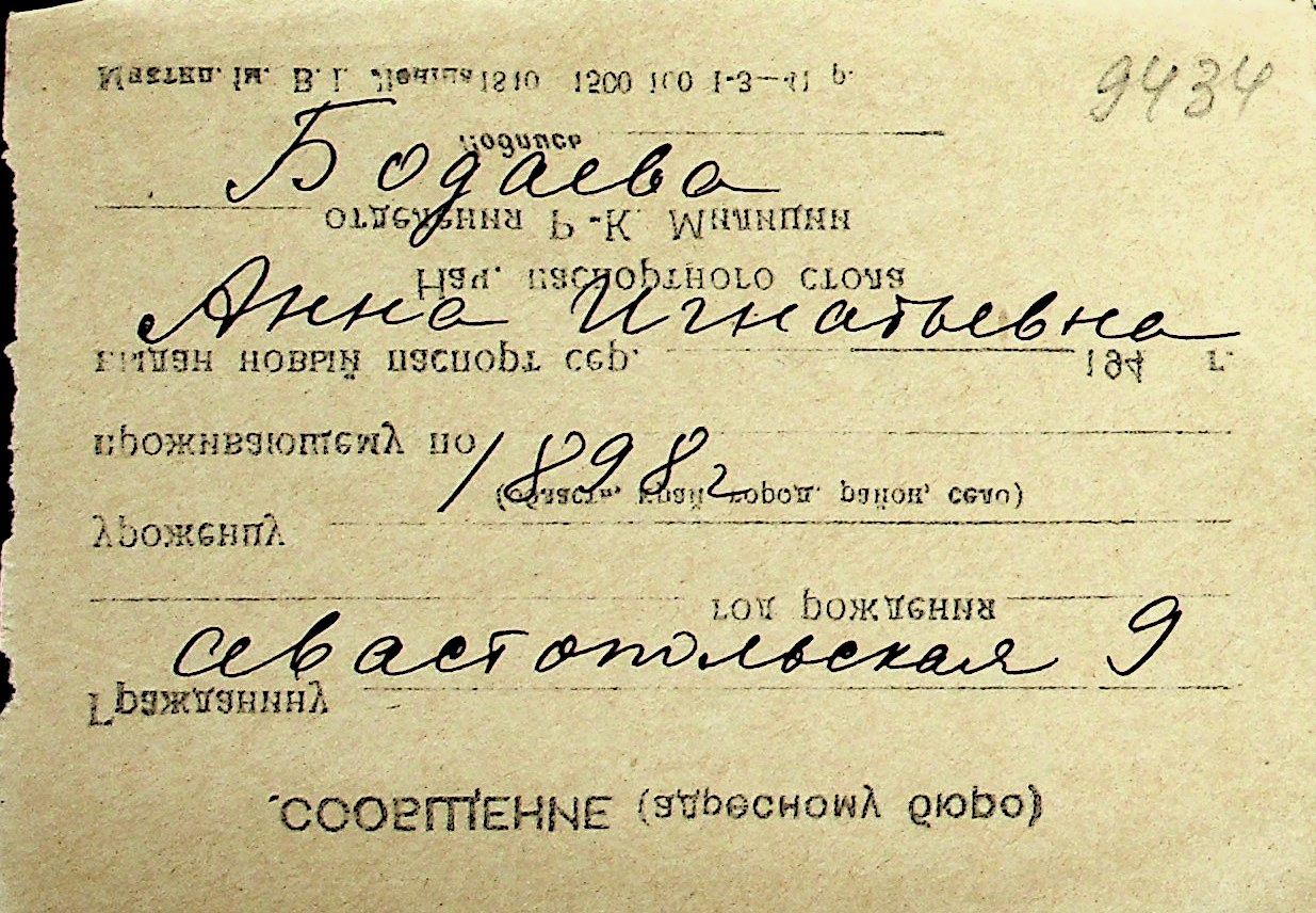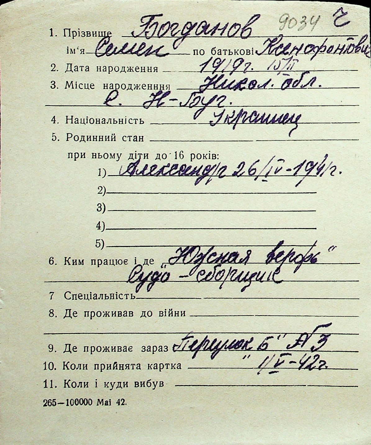 ◦ ◦ Перелік карток на осіб, які мешкали у м. Миколаїв у період окупації 1941–1944 років