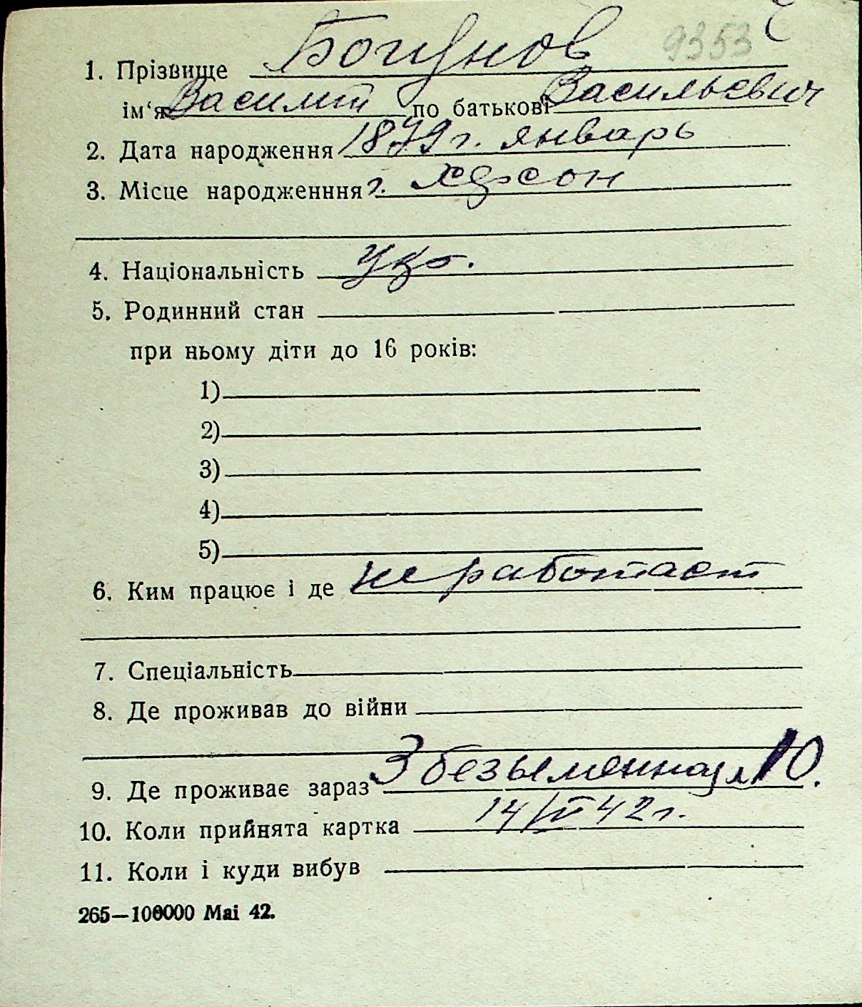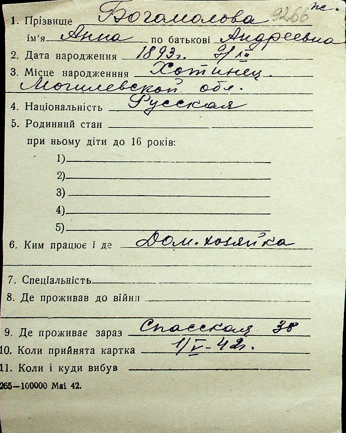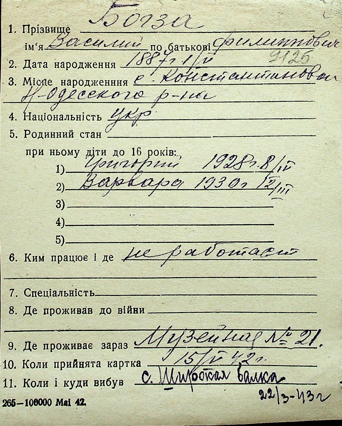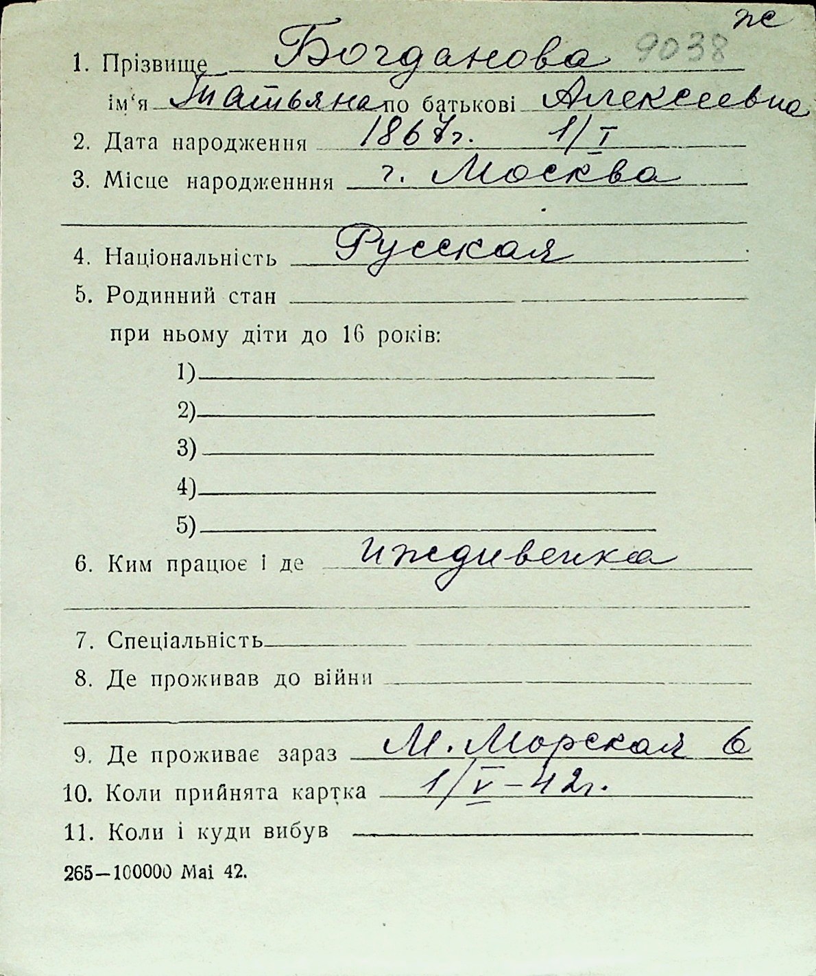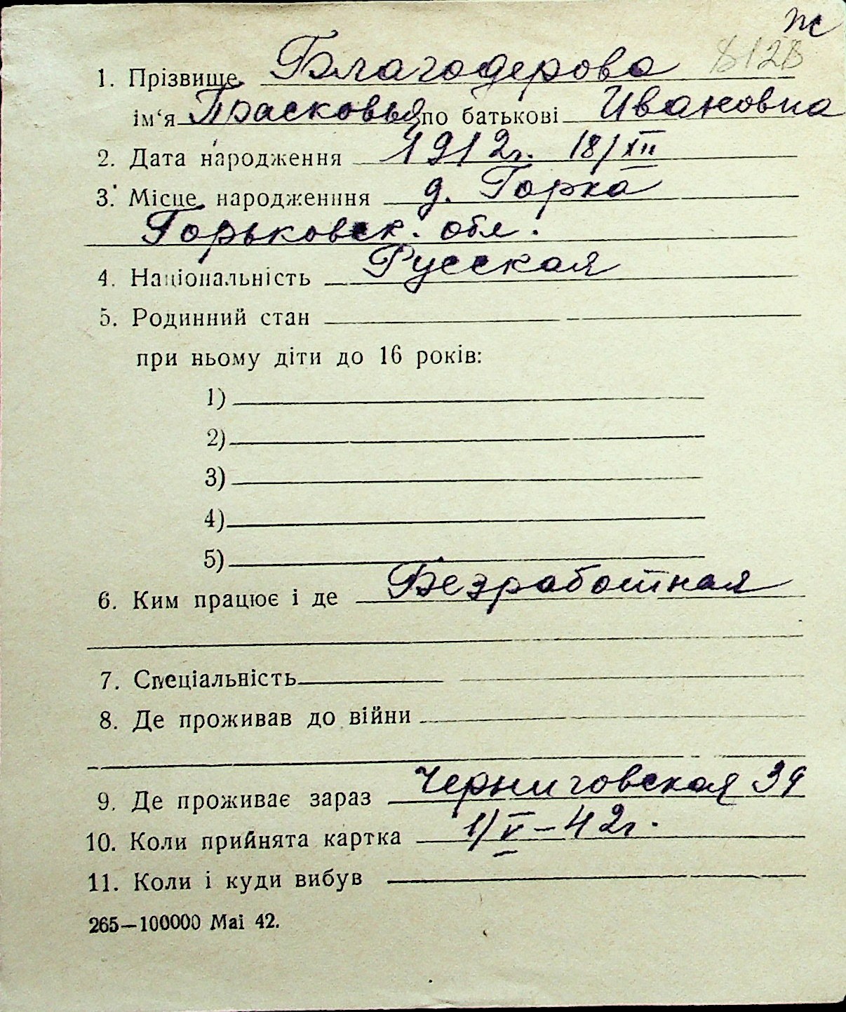 ◦ ◦ Перелік карток на осіб, які мешкали у м. Миколаїв у період окупації 1941–1944 років