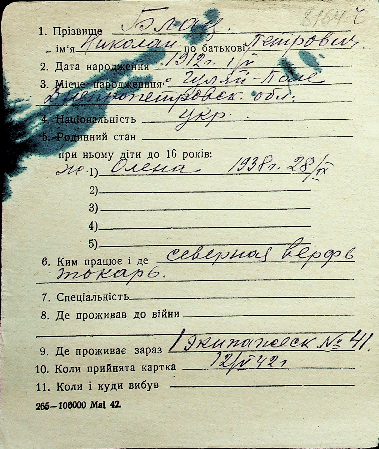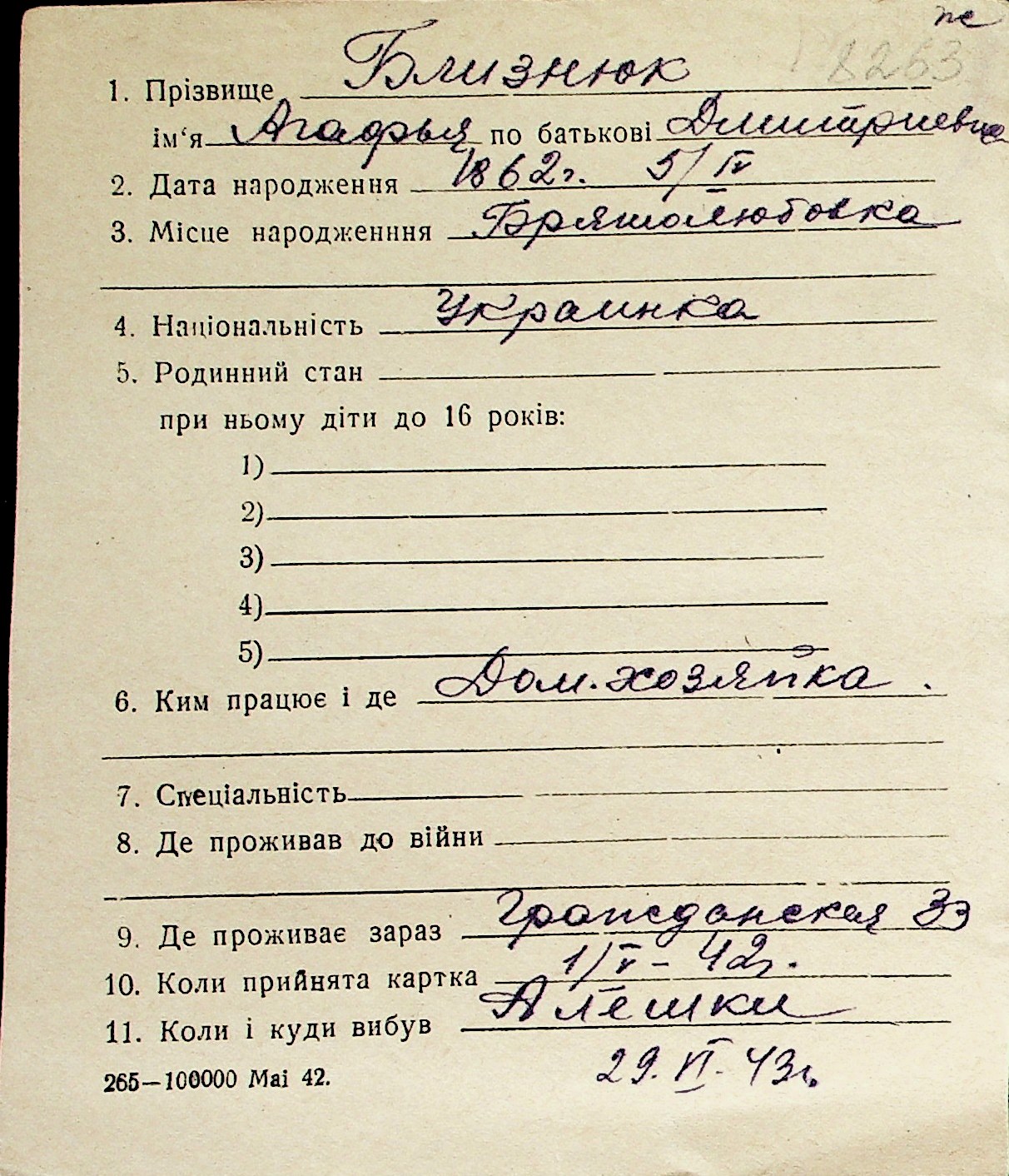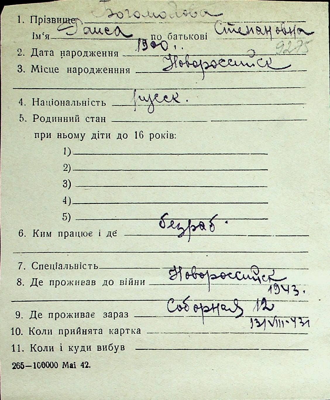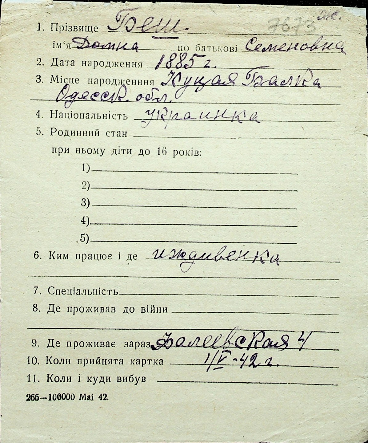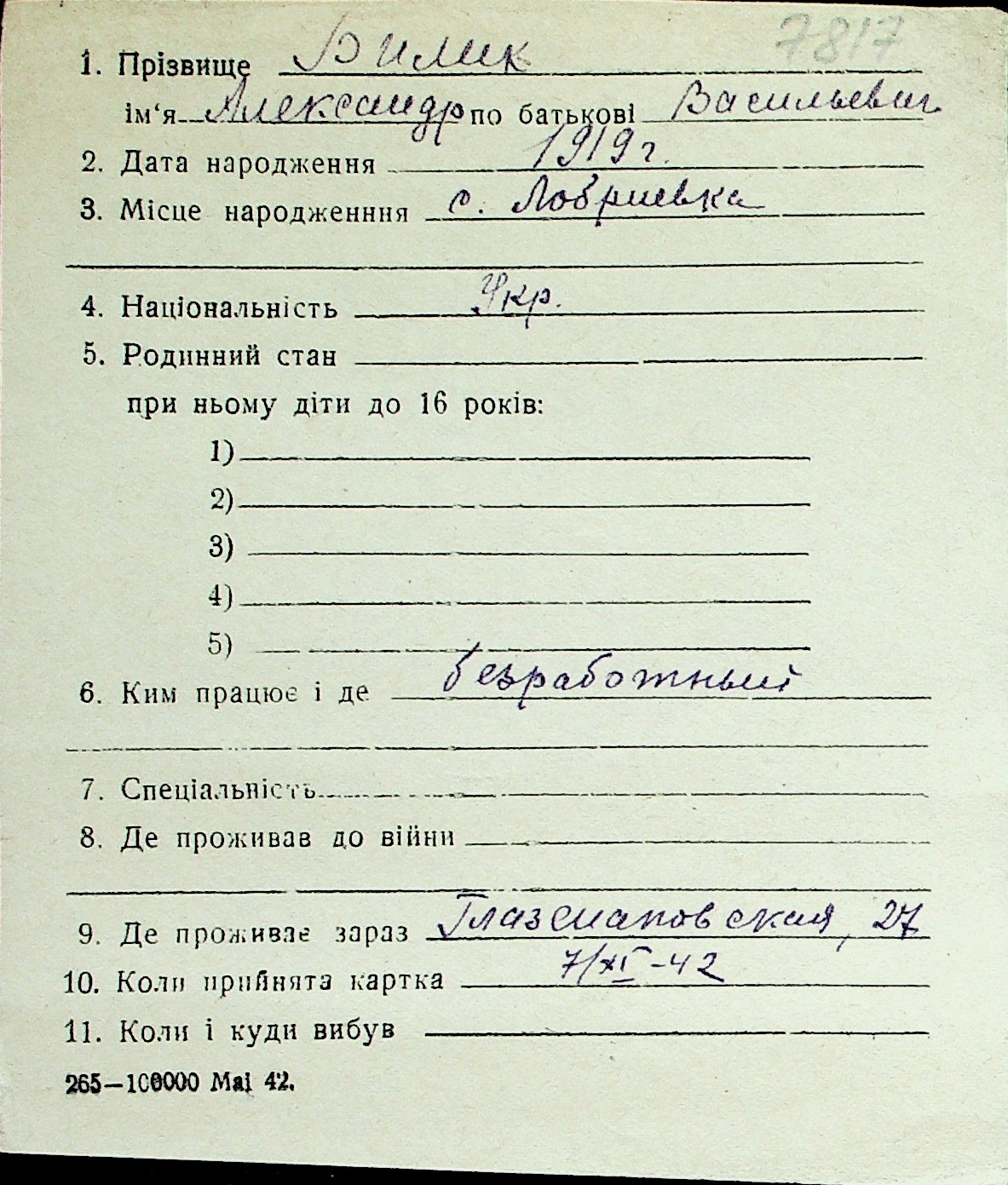 ◦ ◦ Перелік карток на осіб, які мешкали у м. Миколаїв у період окупації 1941–1944 років