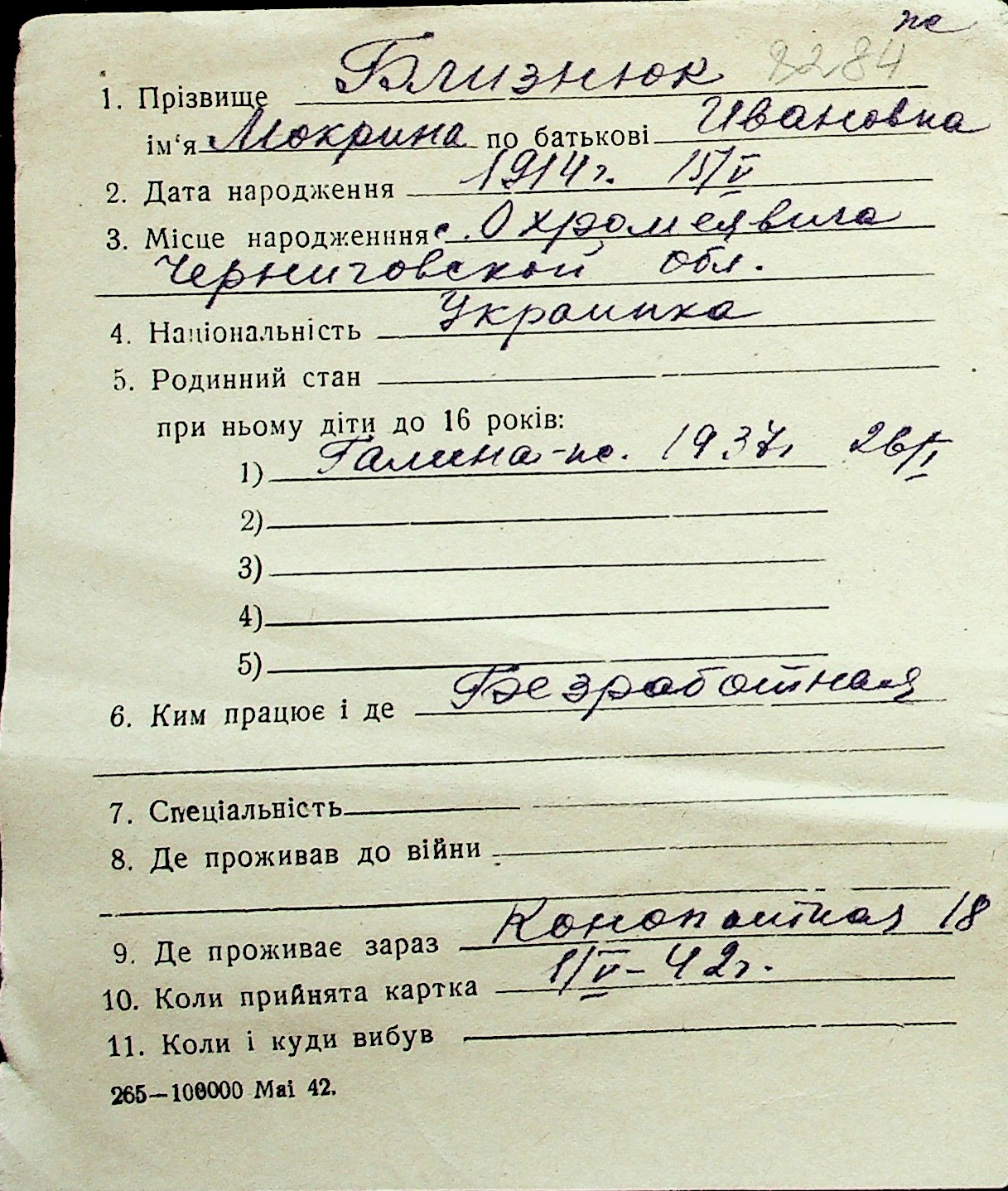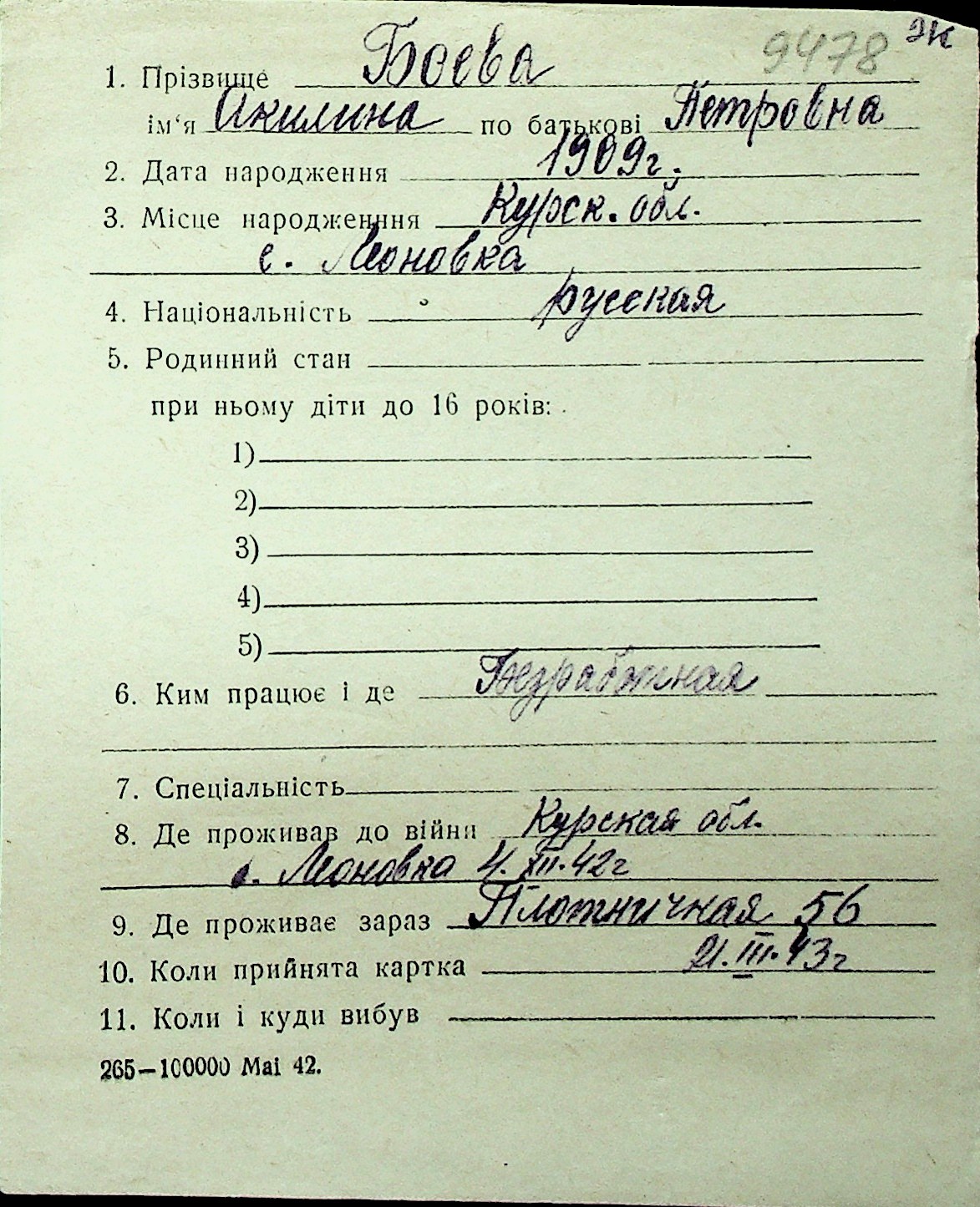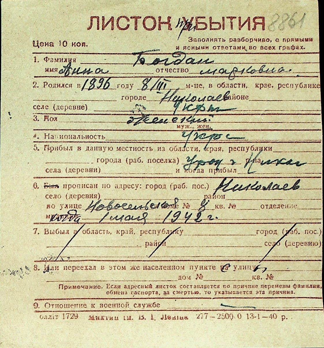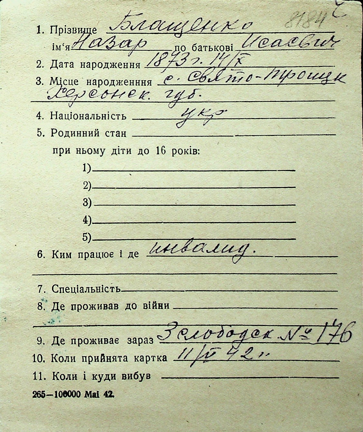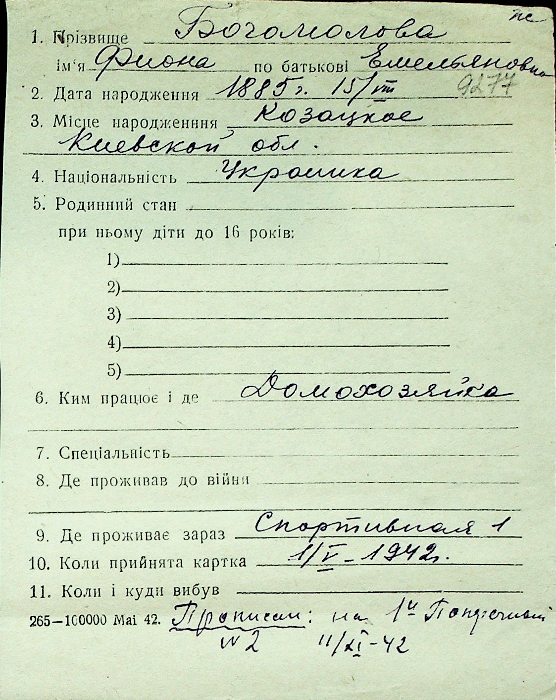 ◦ ◦ Перелік карток на осіб, які мешкали у м. Миколаїв у період окупації 1941–1944 років