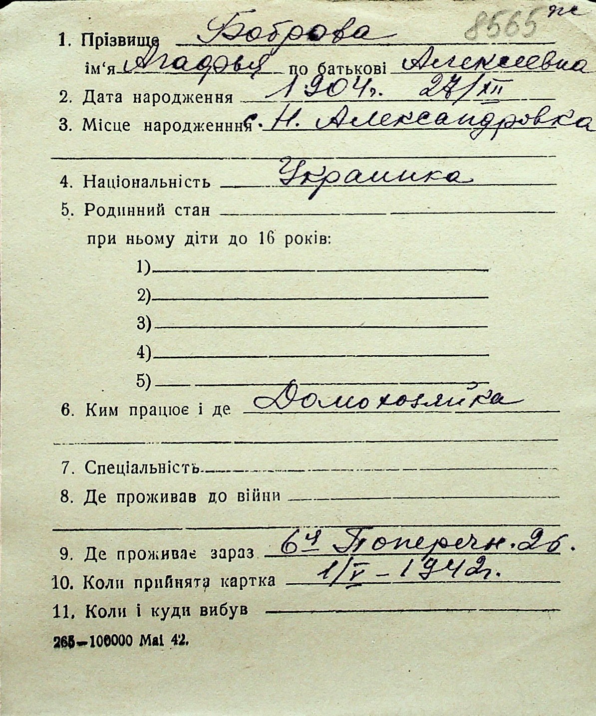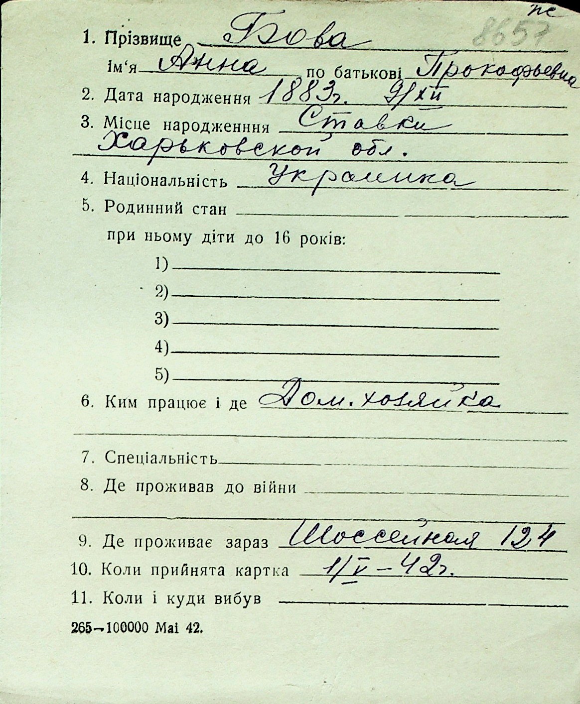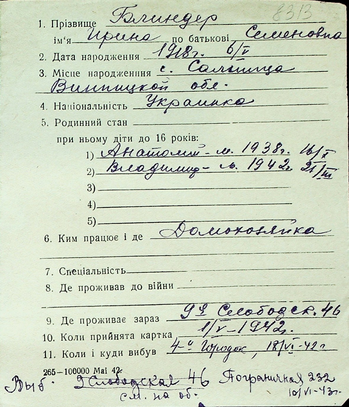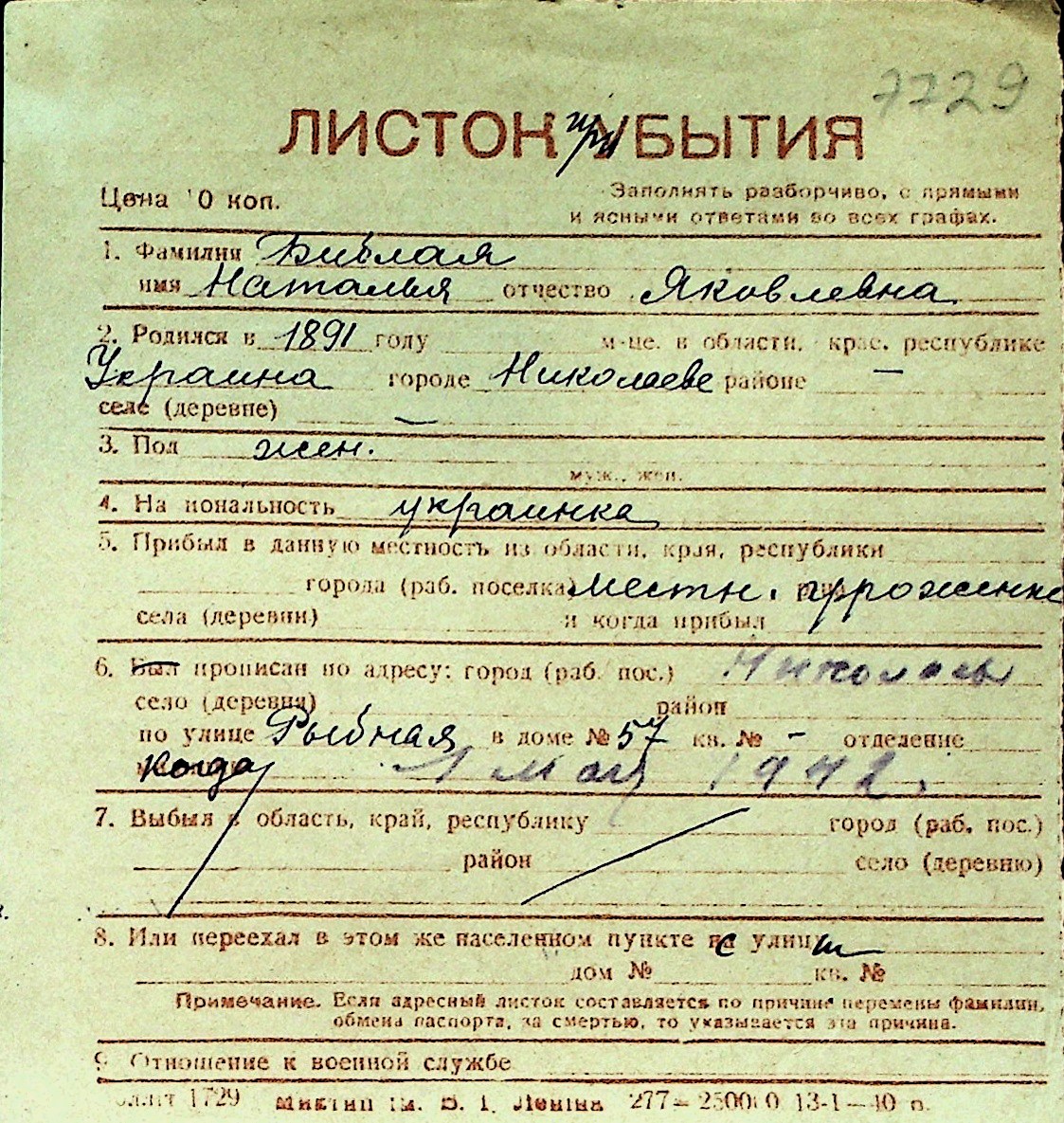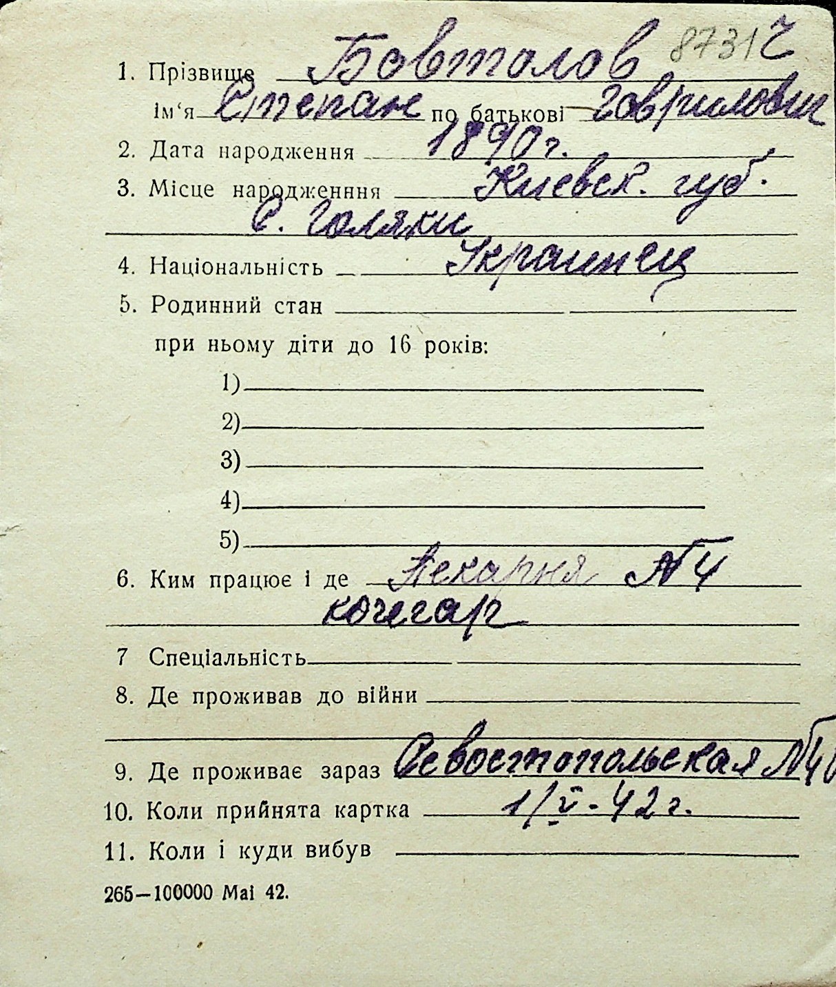 ◦ ◦ Перелік карток на осіб, які мешкали у м. Миколаїв у період окупації 1941–1944 років