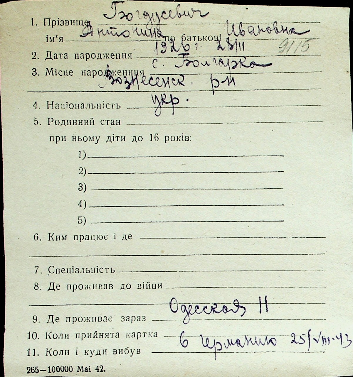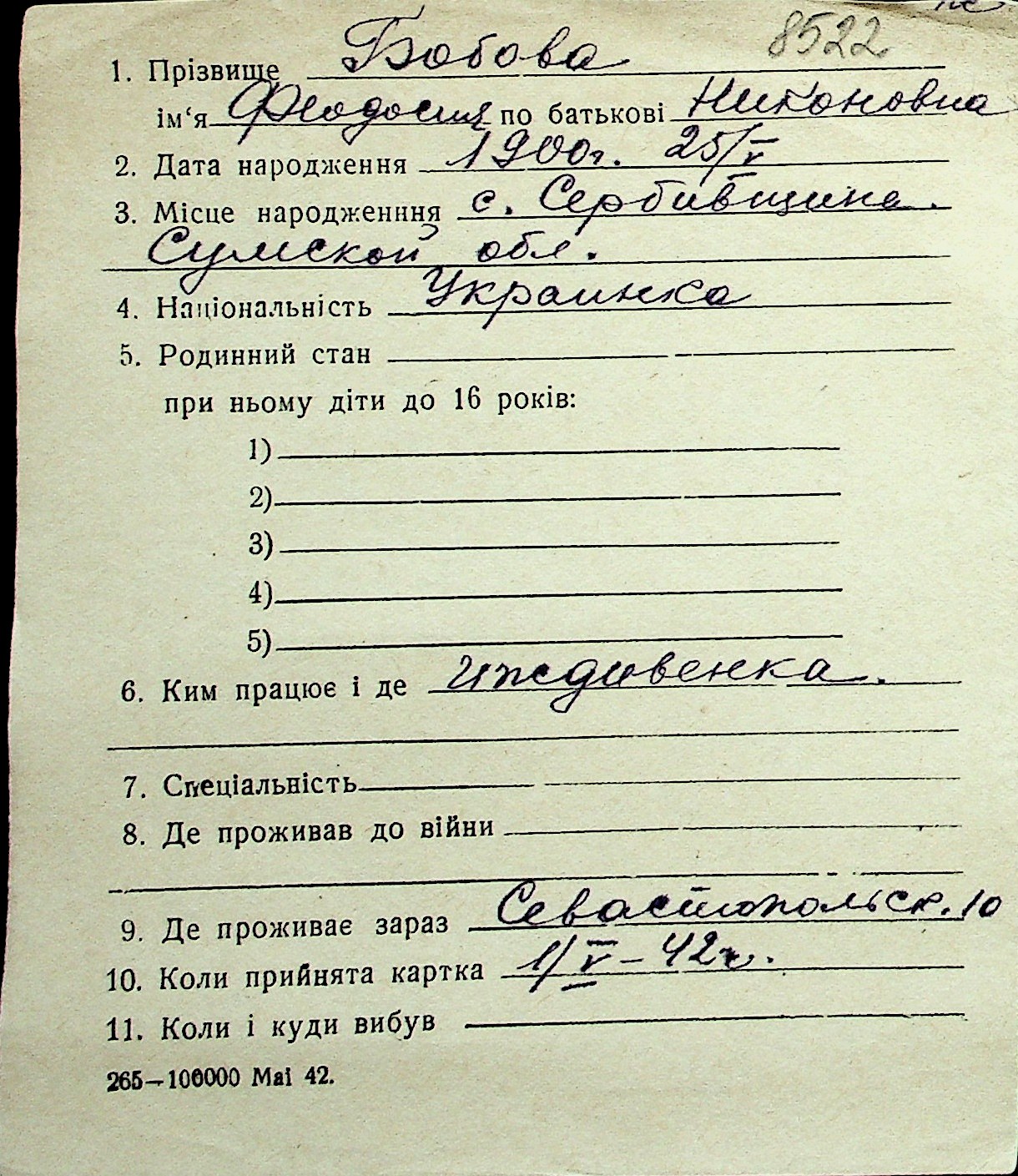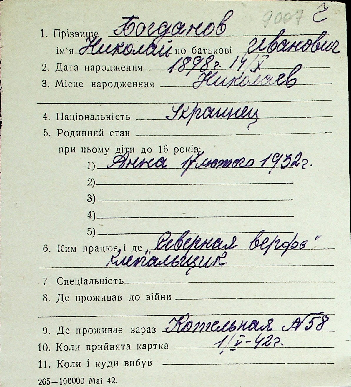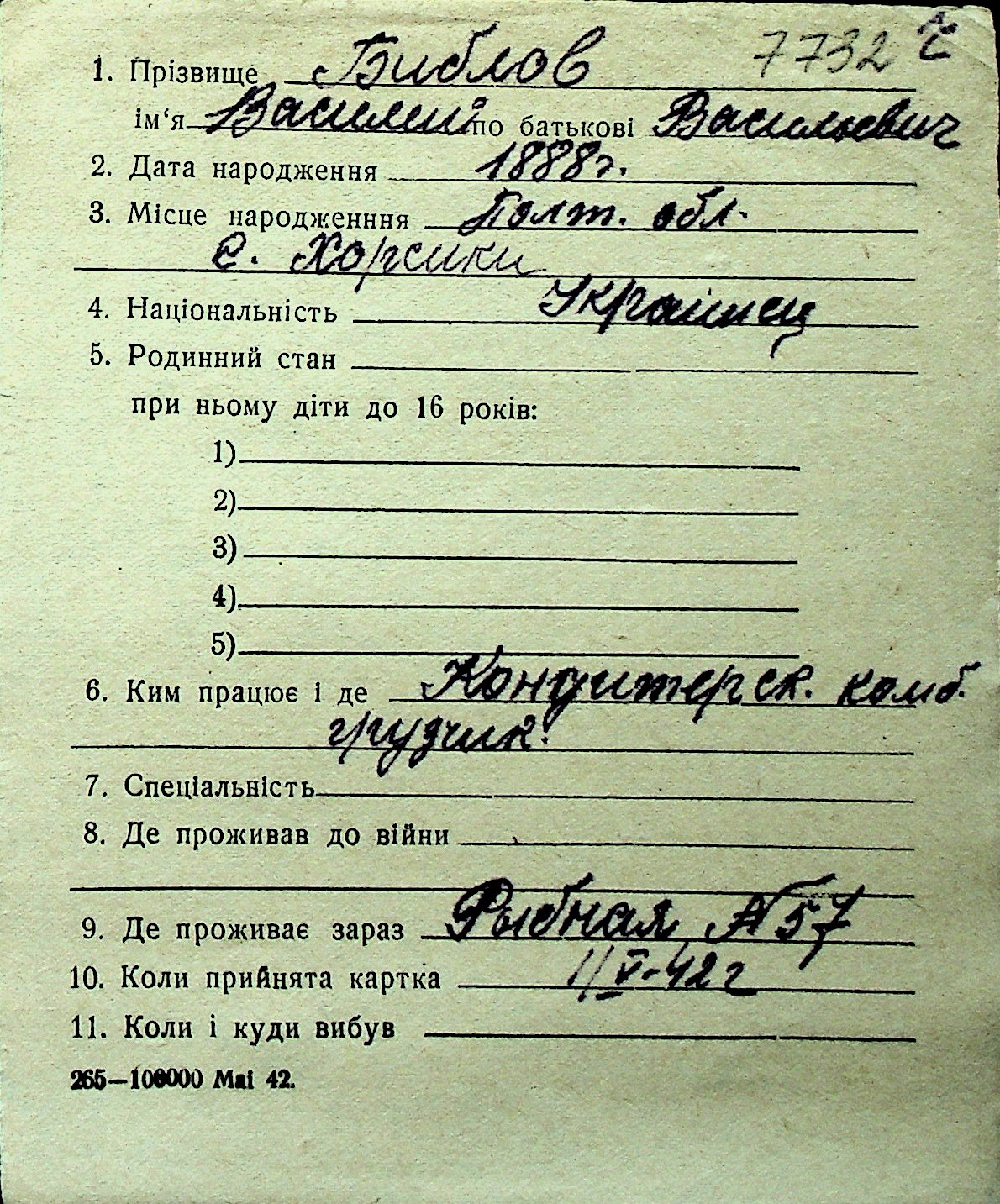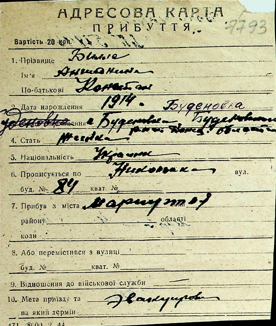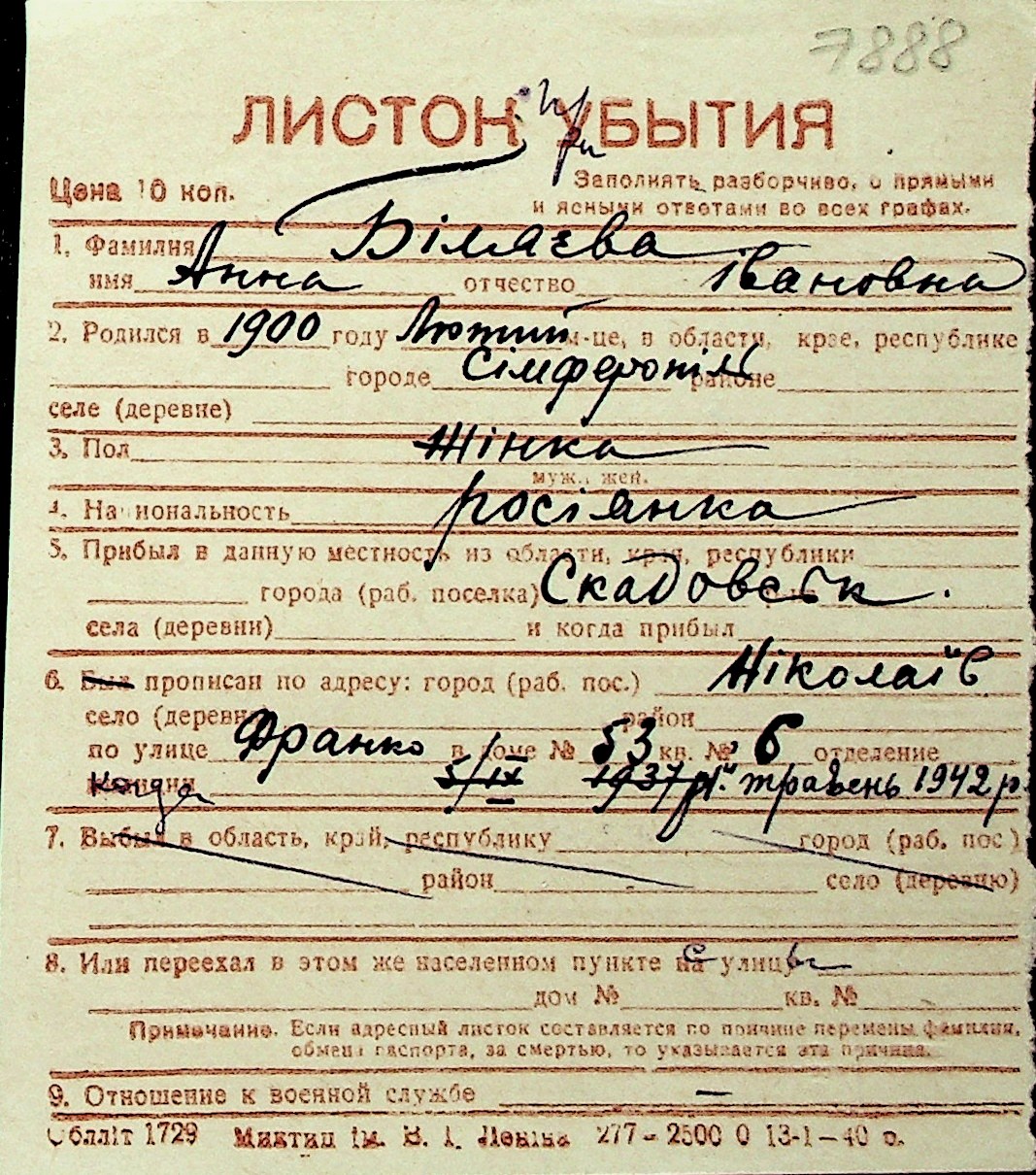 ◦ ◦ Перелік карток на осіб, які мешкали у м. Миколаїв у період окупації 1941–1944 років