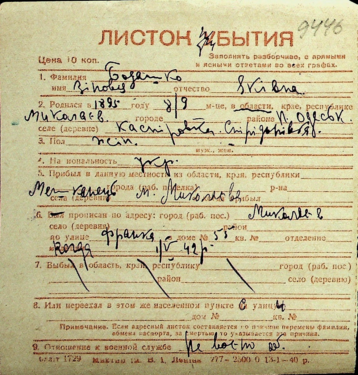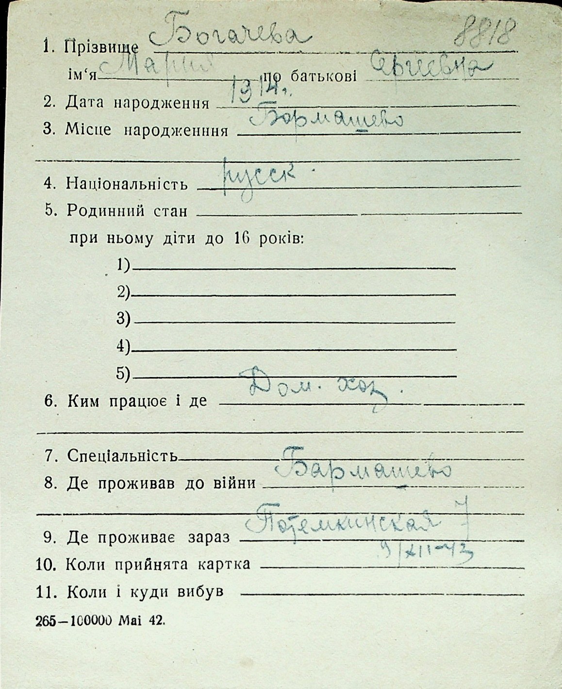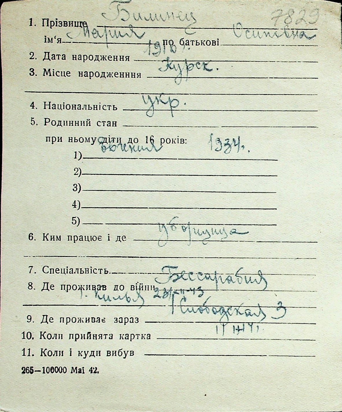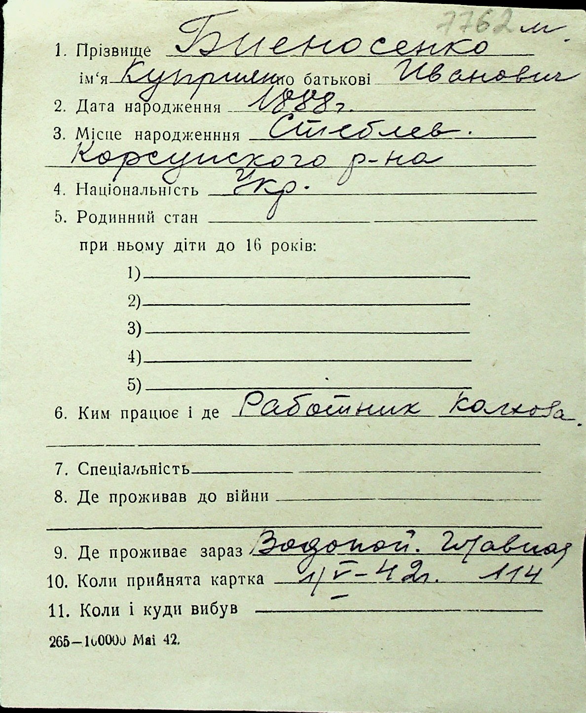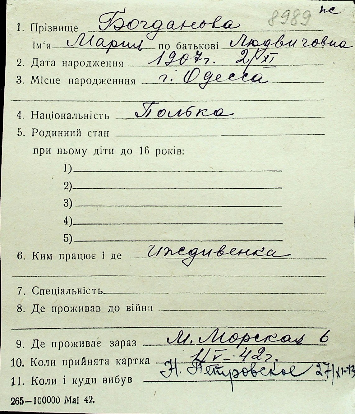 ◦ ◦ Перелік карток на осіб, які мешкали у м. Миколаїв у період окупації 1941–1944 років