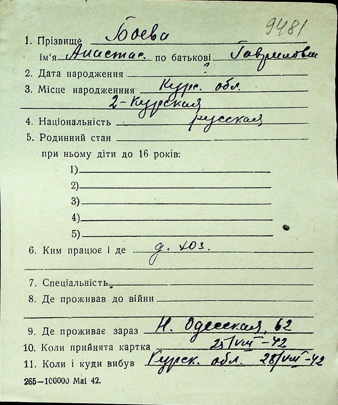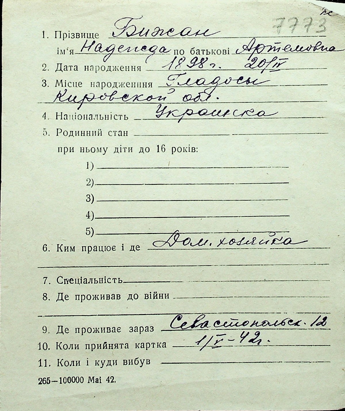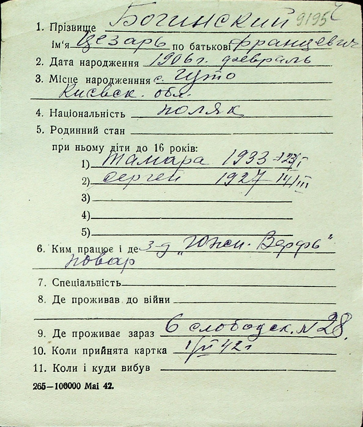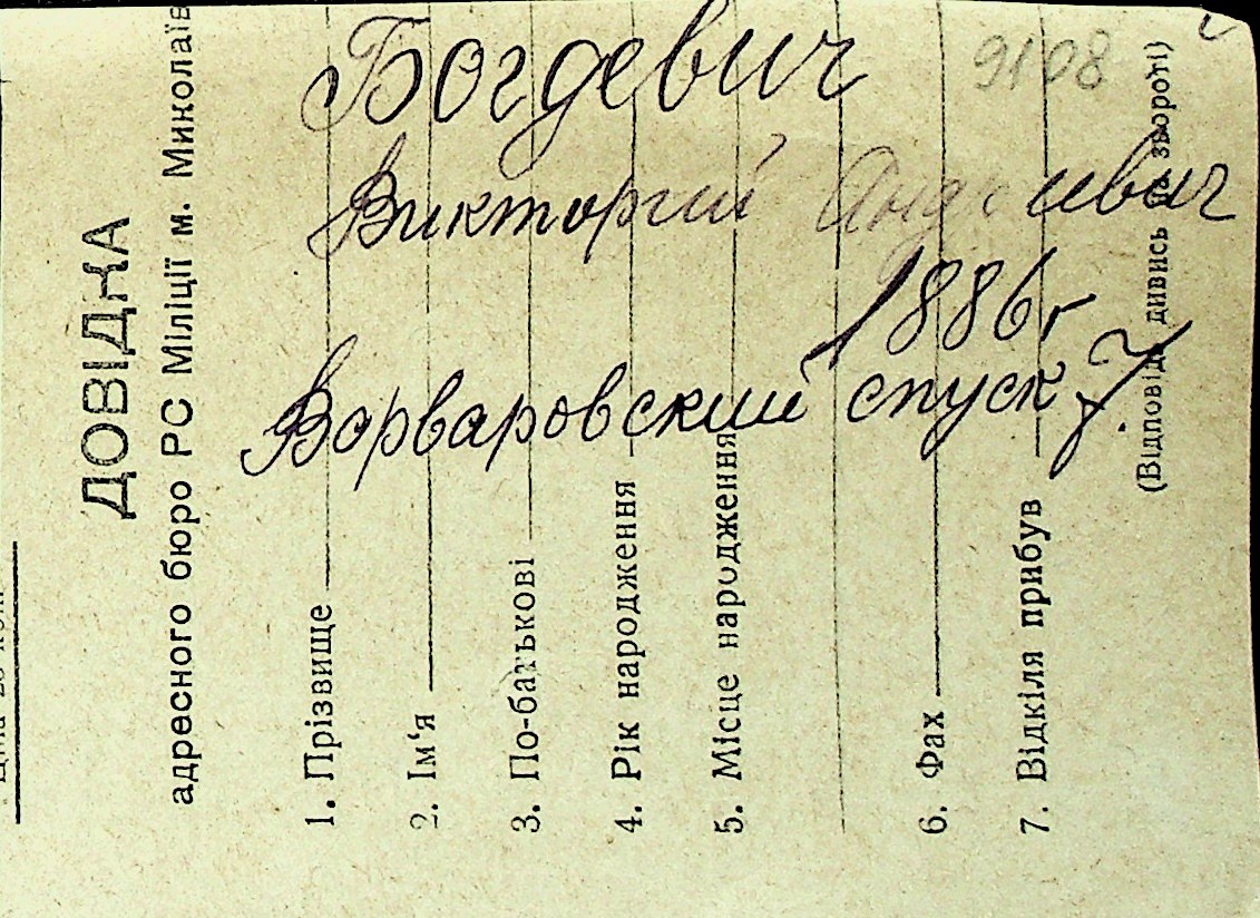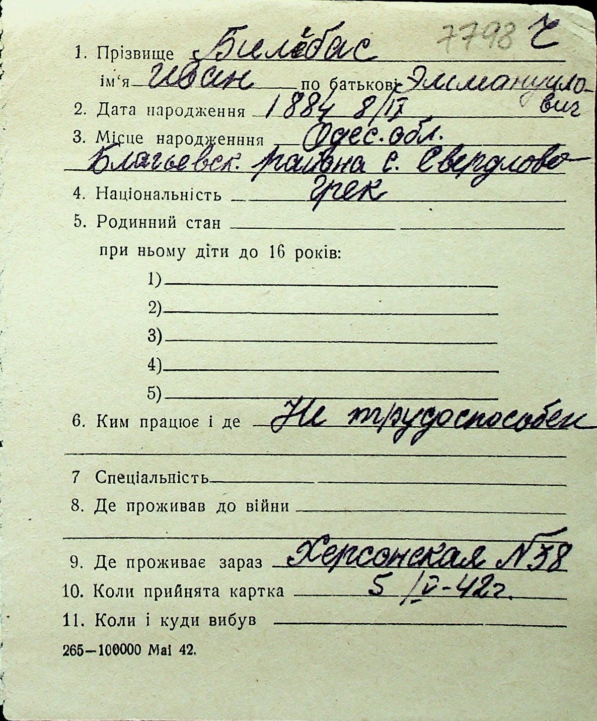 ◦ ◦ Перелік карток на осіб, які мешкали у м. Миколаїв у період окупації 1941–1944 років