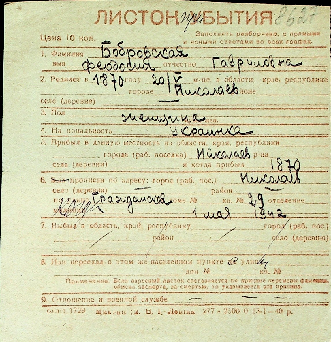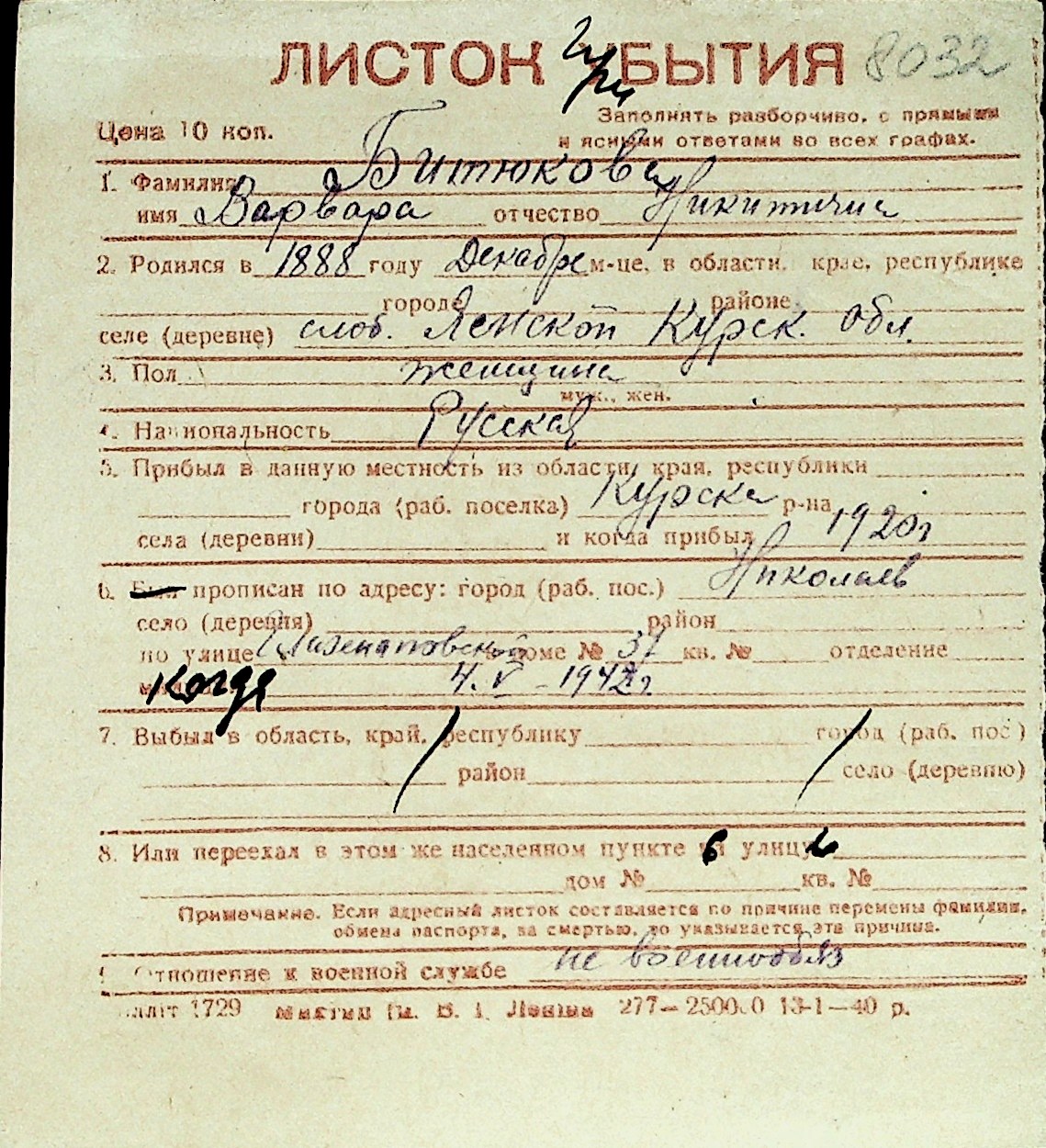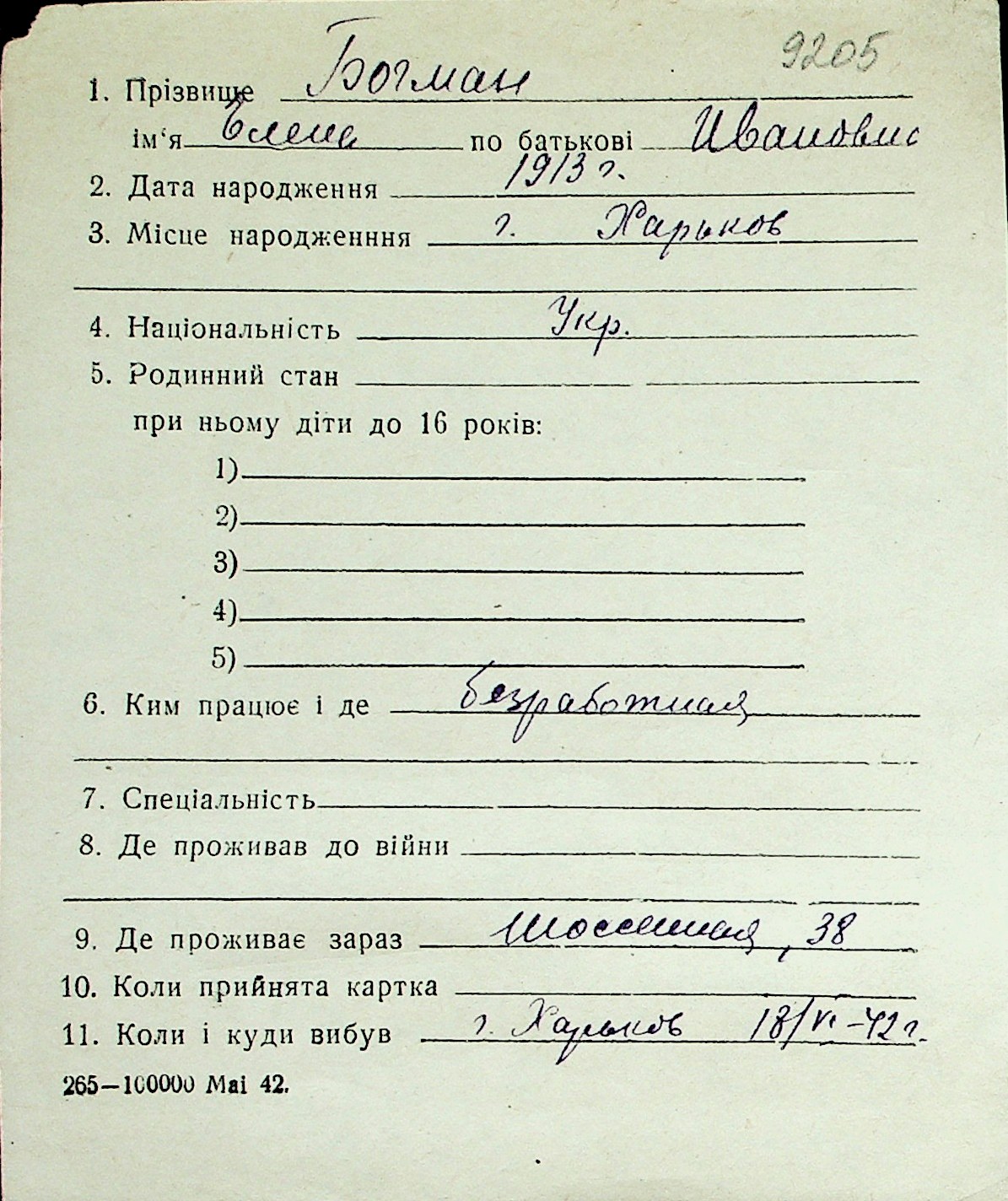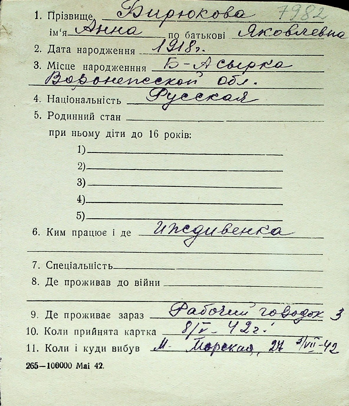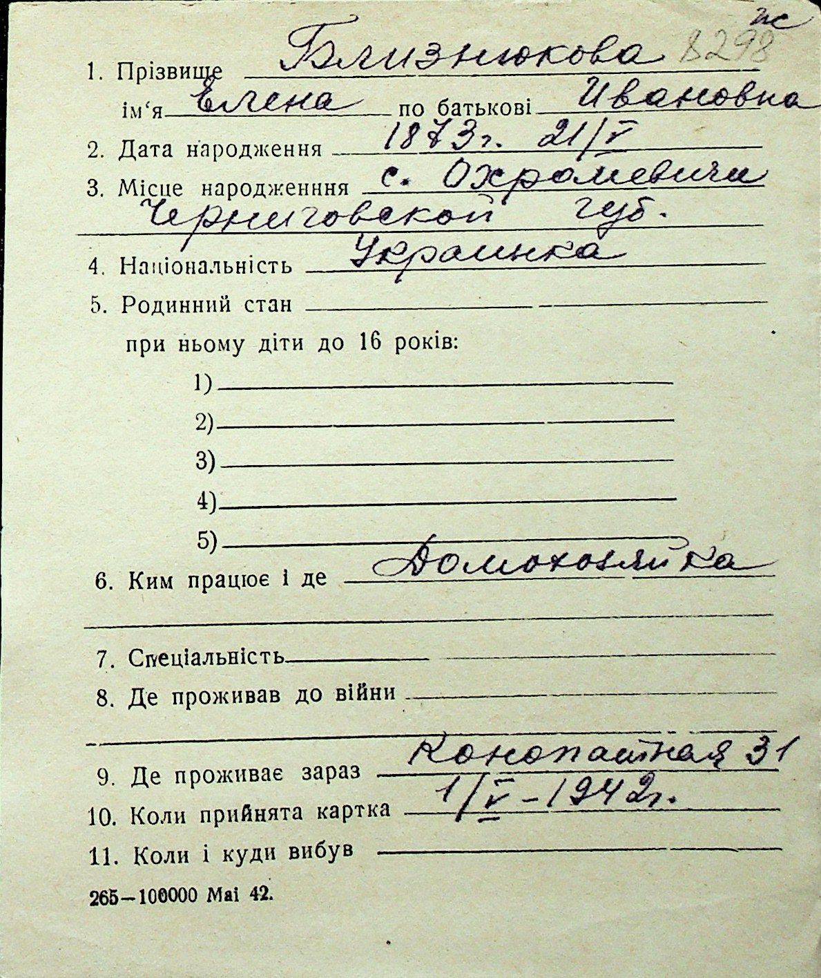 ◦ ◦ Перелік карток на осіб, які мешкали у м. Миколаїв у період окупації 1941–1944 років