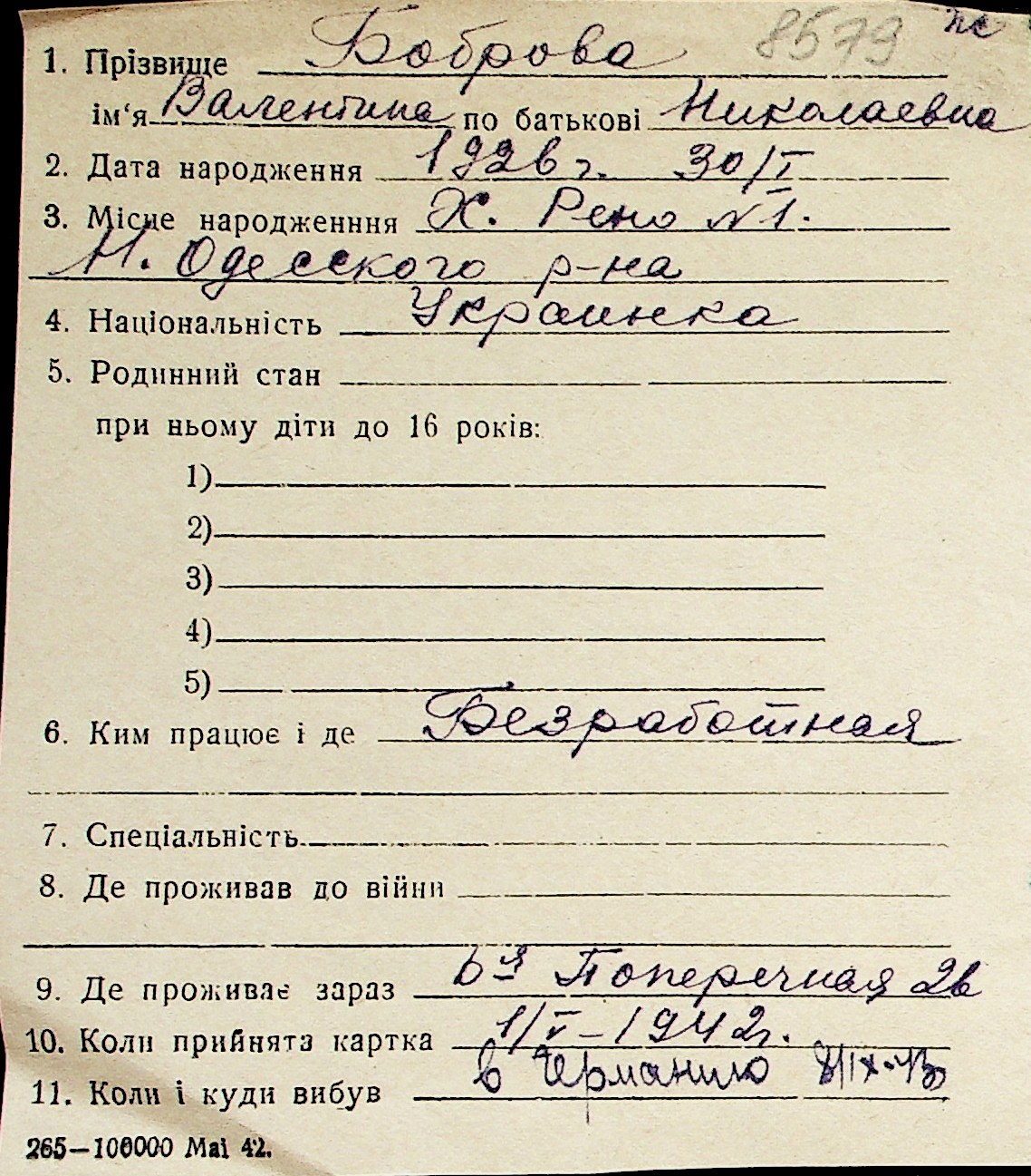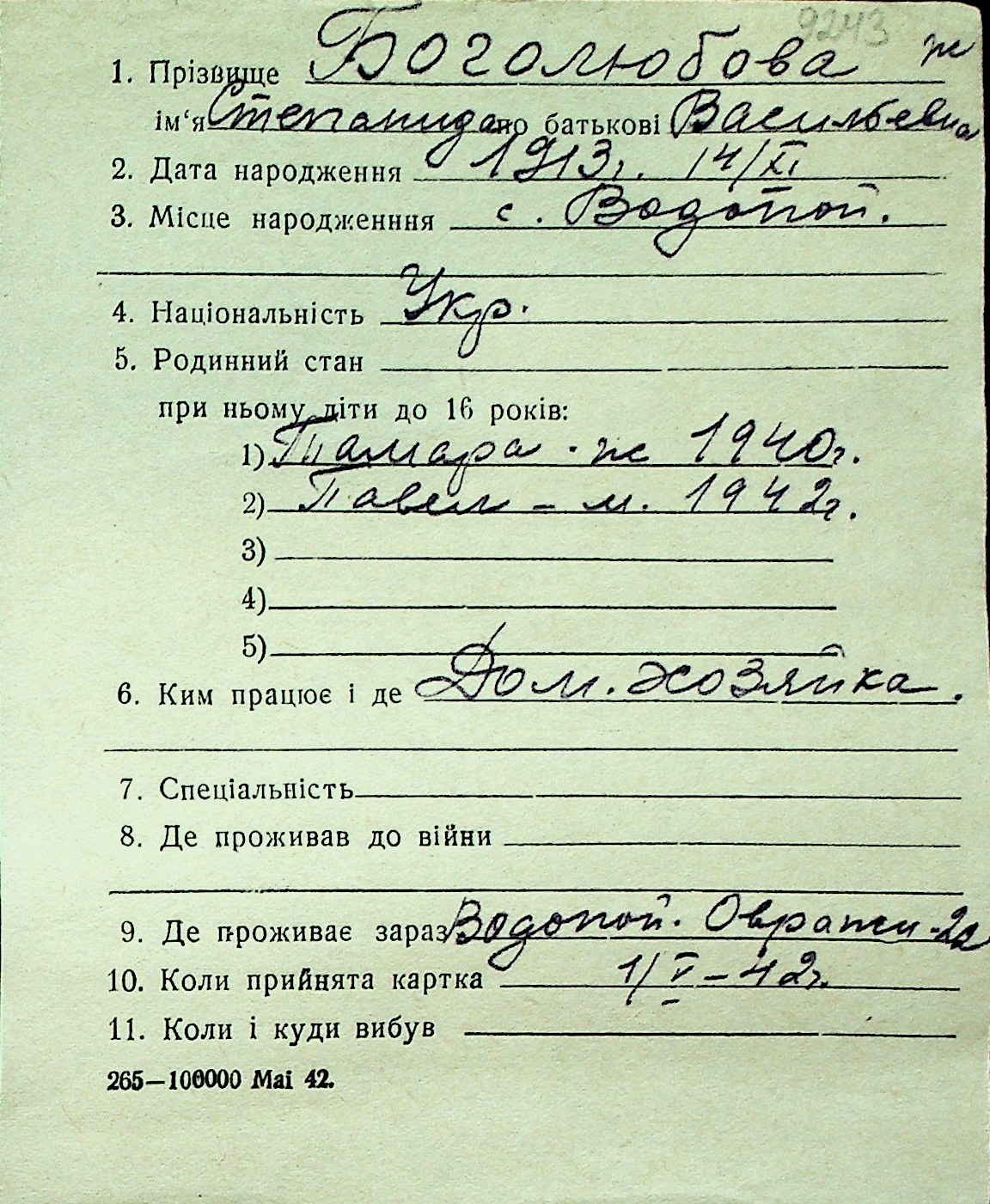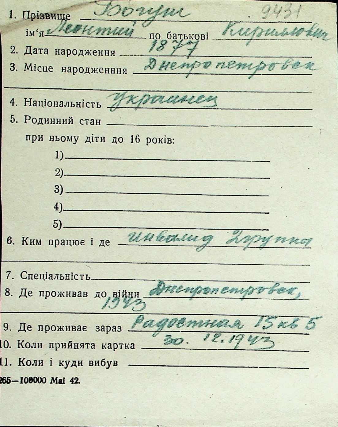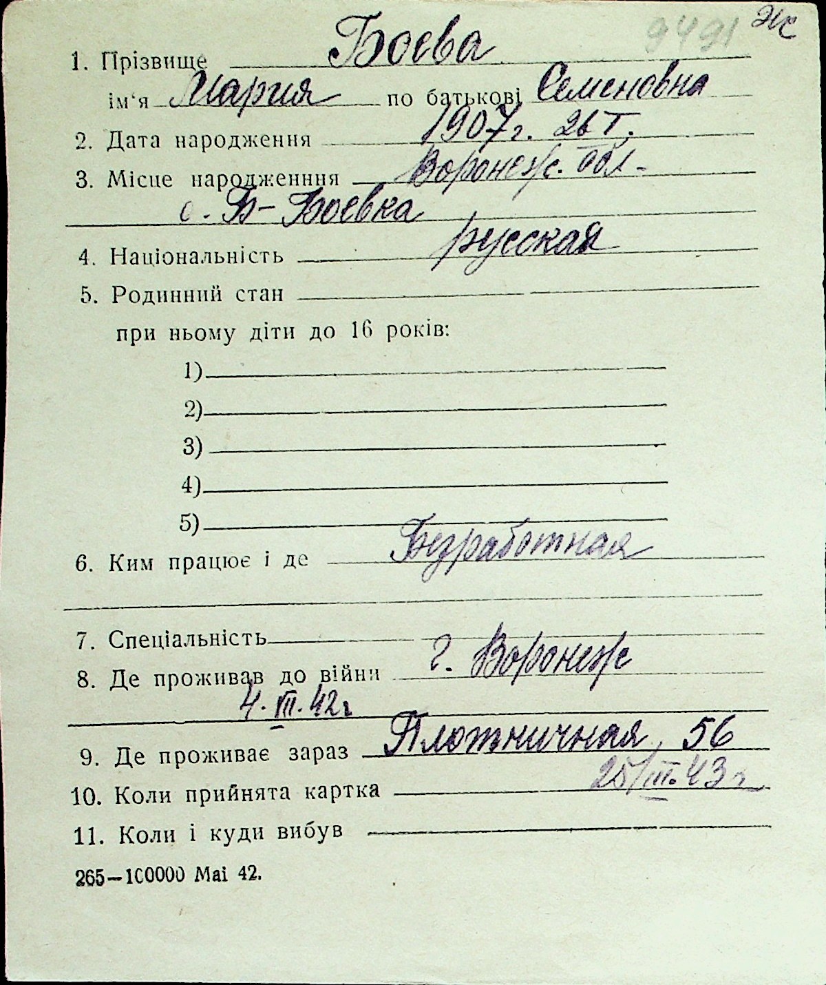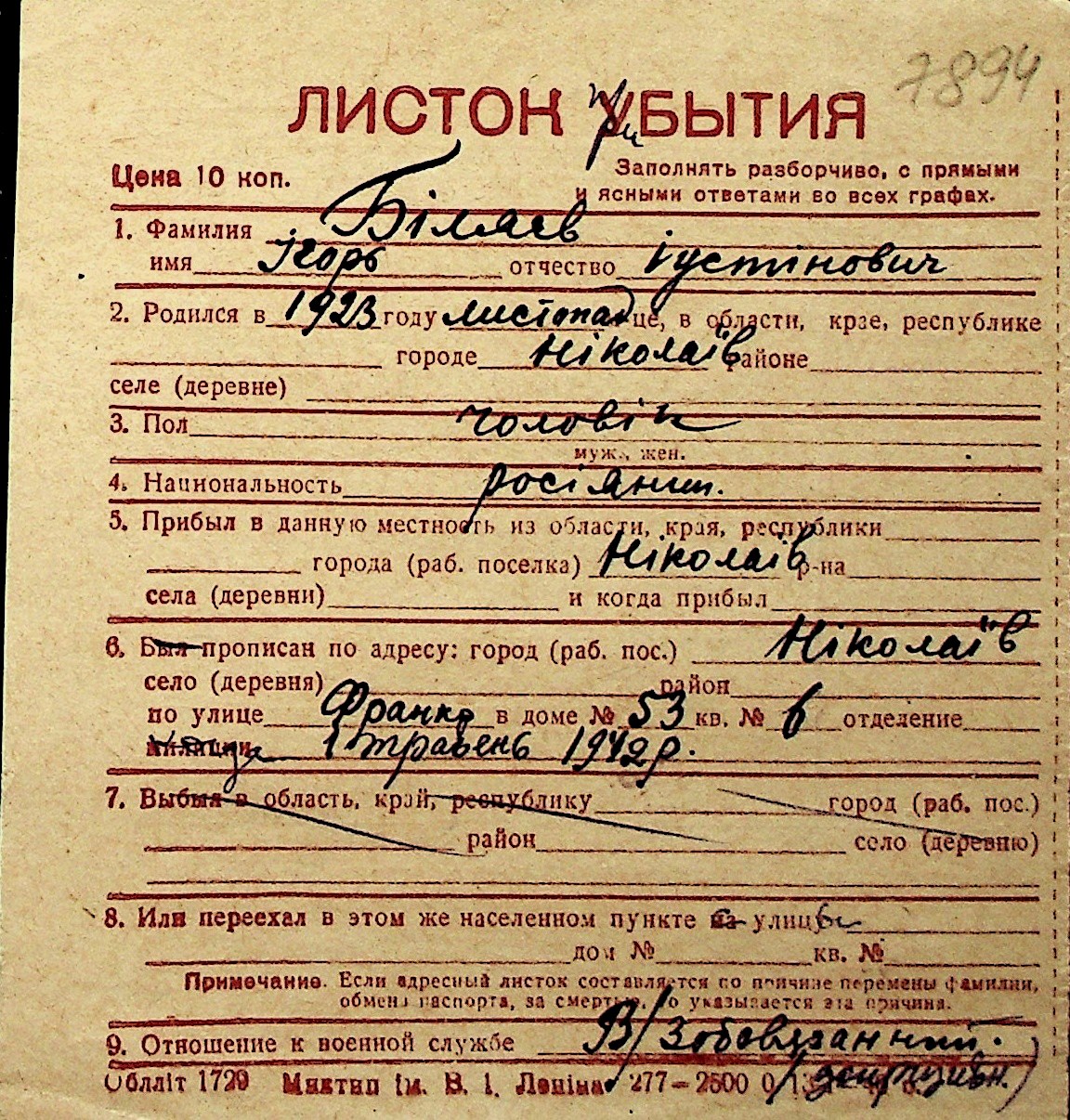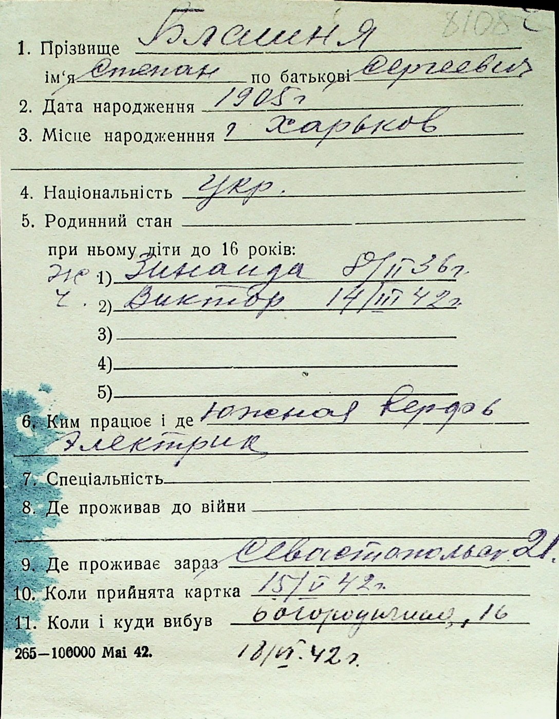 ◦ ◦ Перелік карток на осіб, які мешкали у м. Миколаїв у період окупації 1941–1944 років