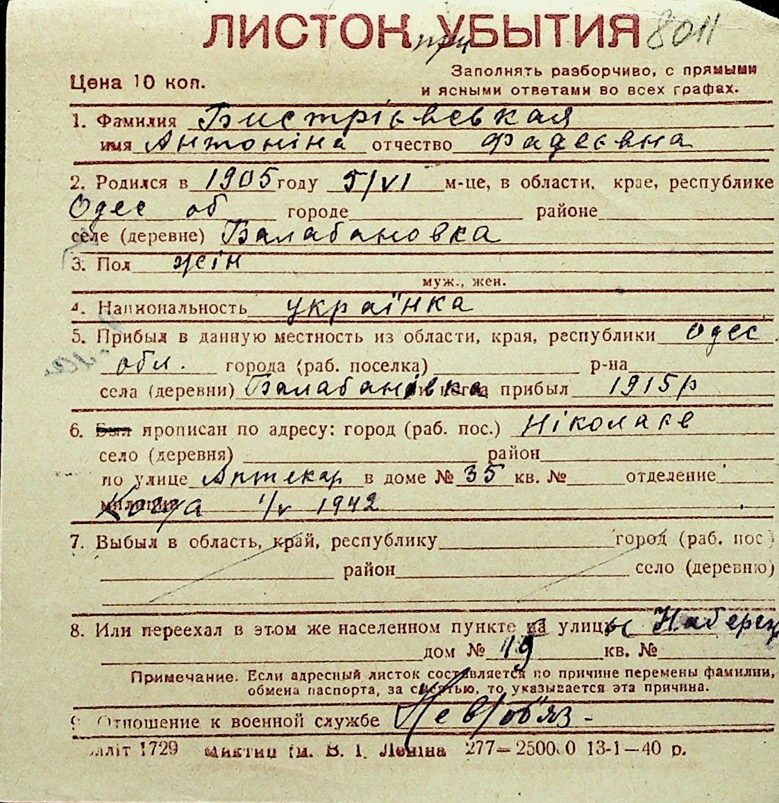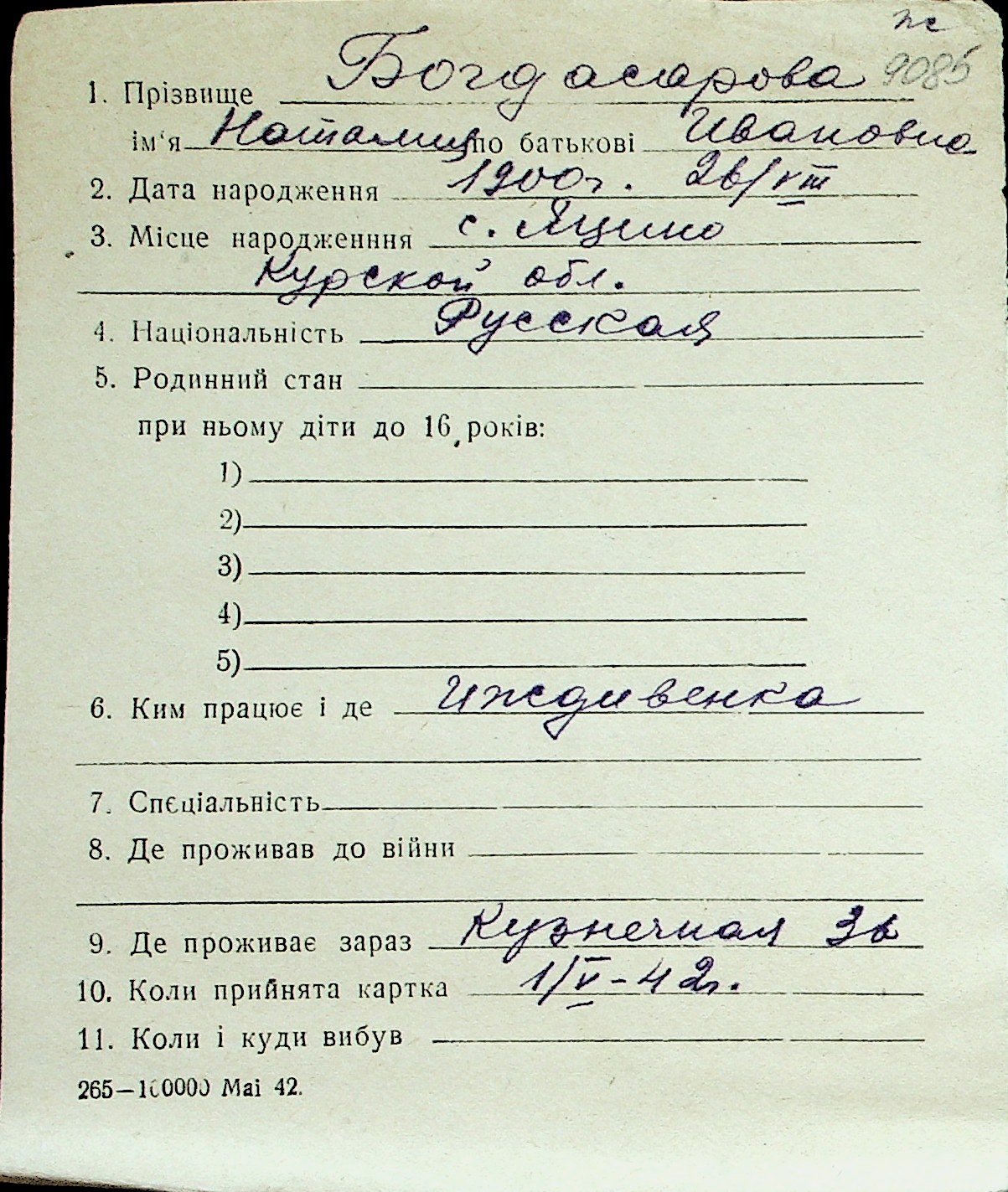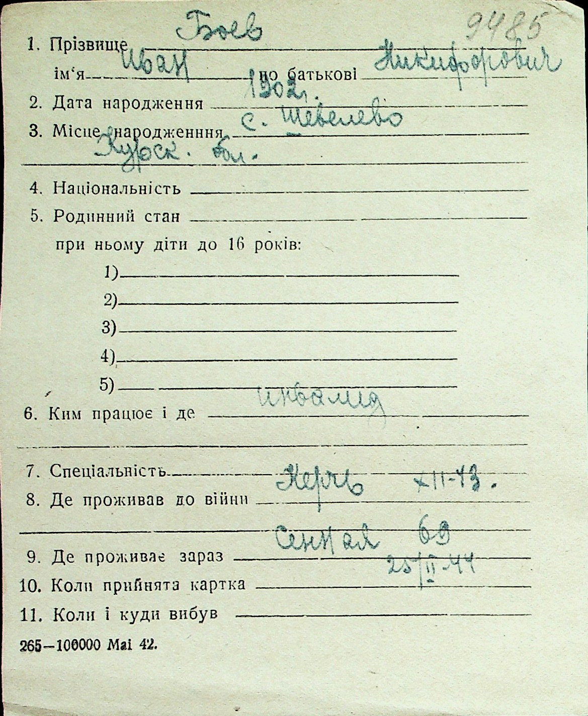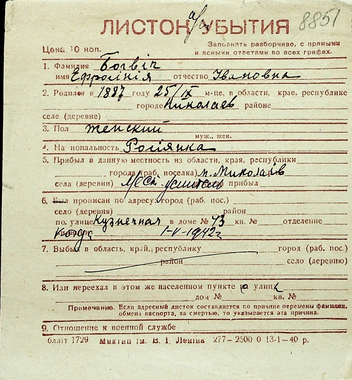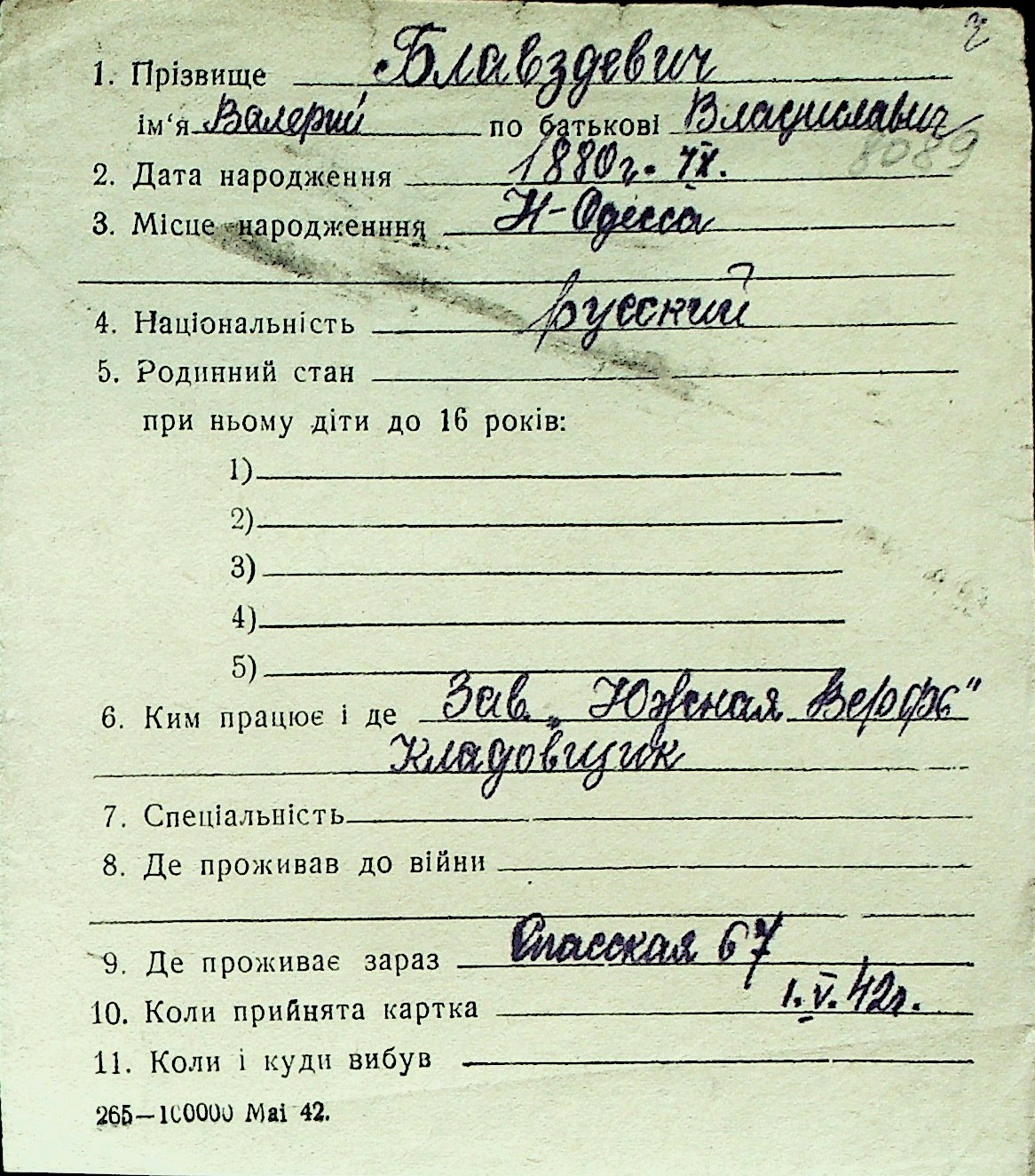 ◦ ◦ Перелік карток на осіб, які мешкали у м. Миколаїв у період окупації 1941–1944 років