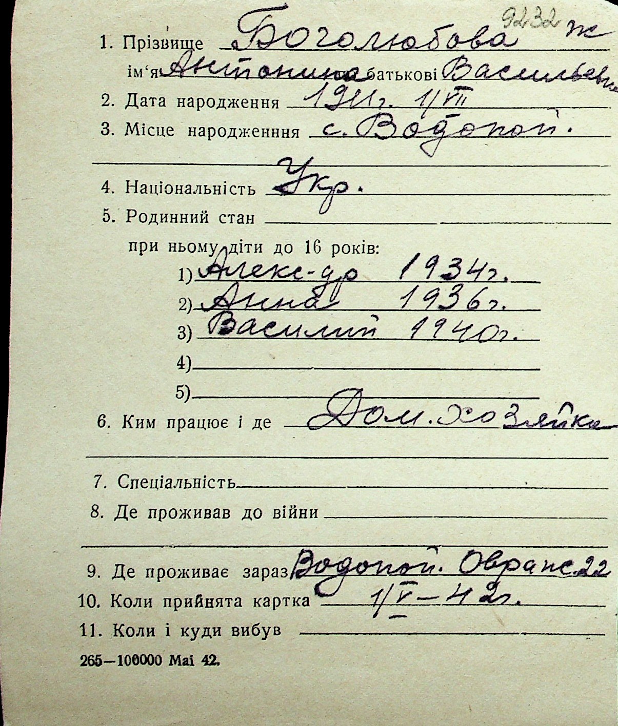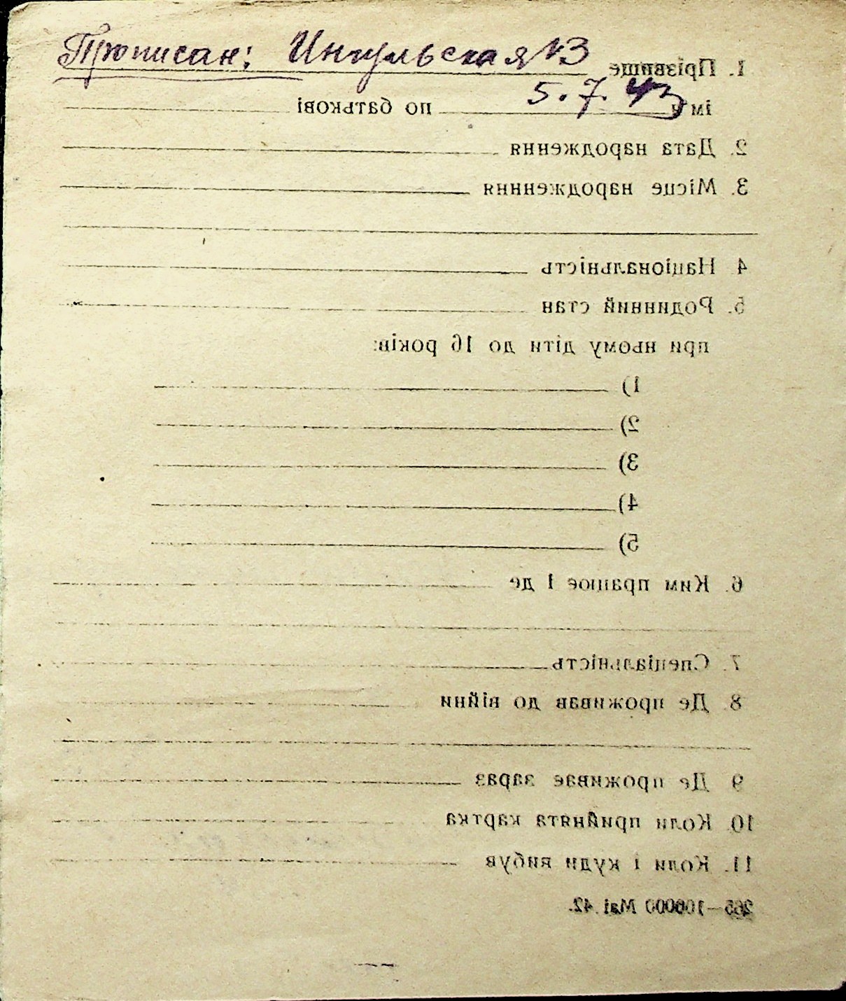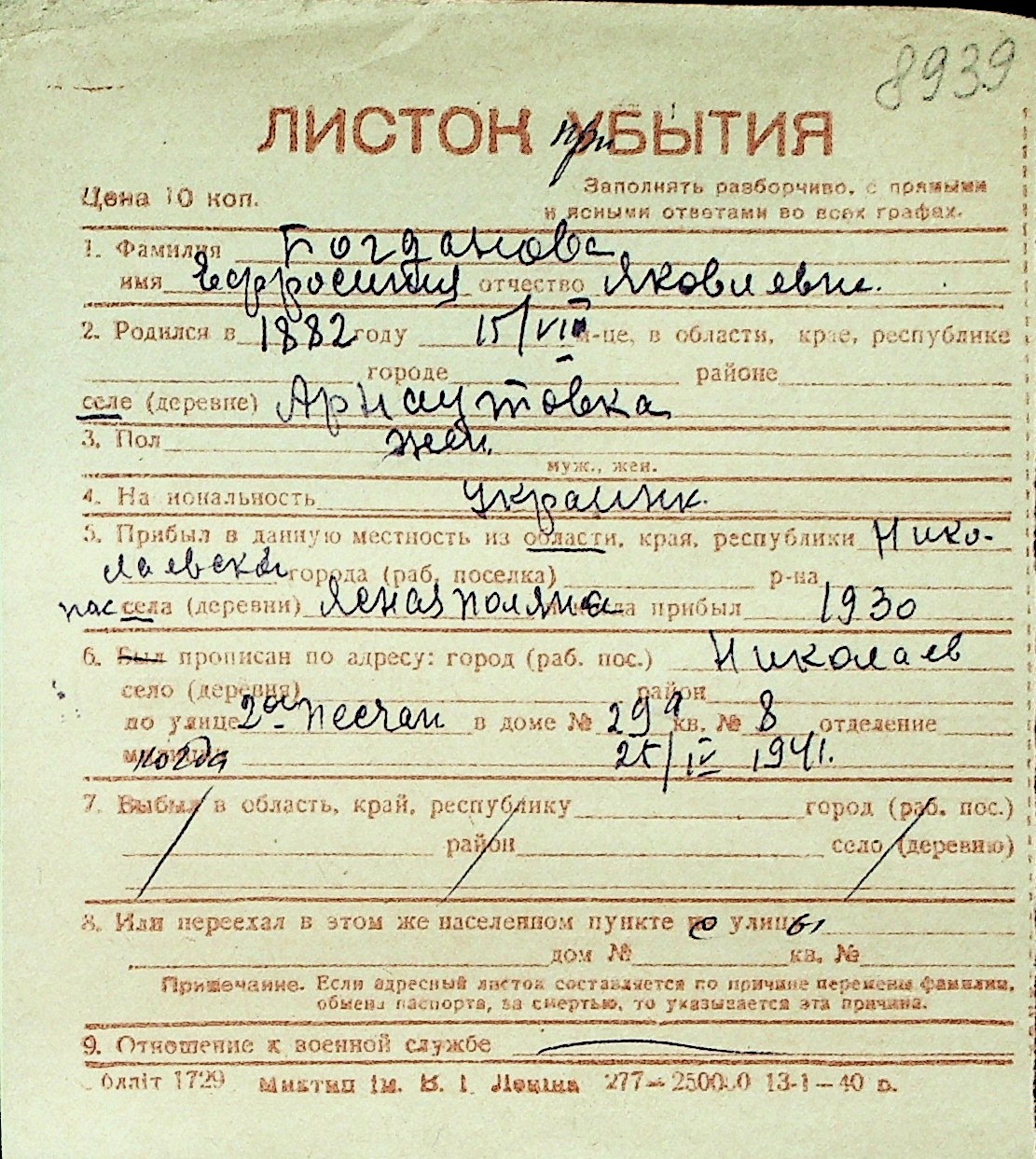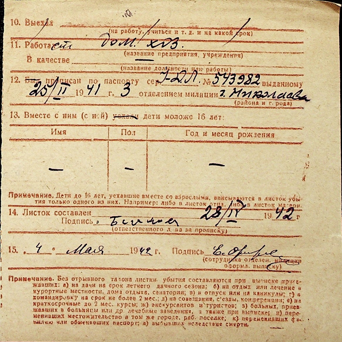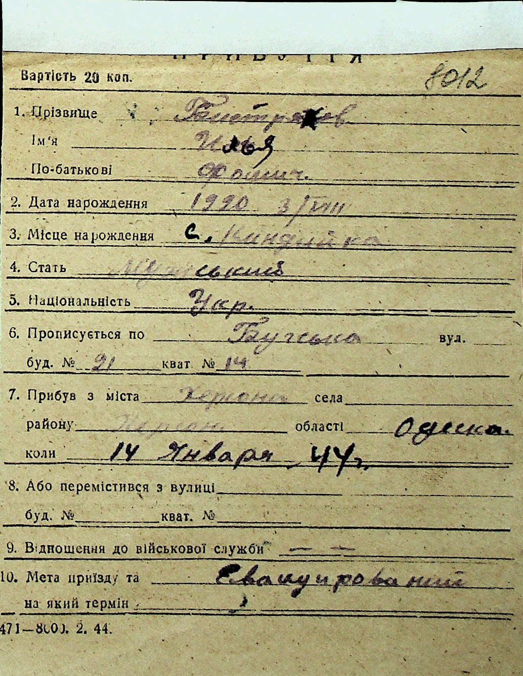 ◦ ◦ Перелік карток на осіб, які мешкали у м. Миколаїв у період окупації 1941–1944 років