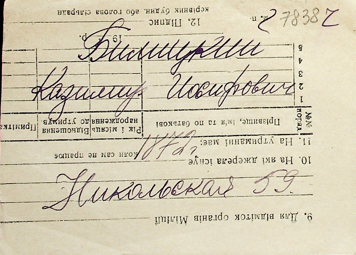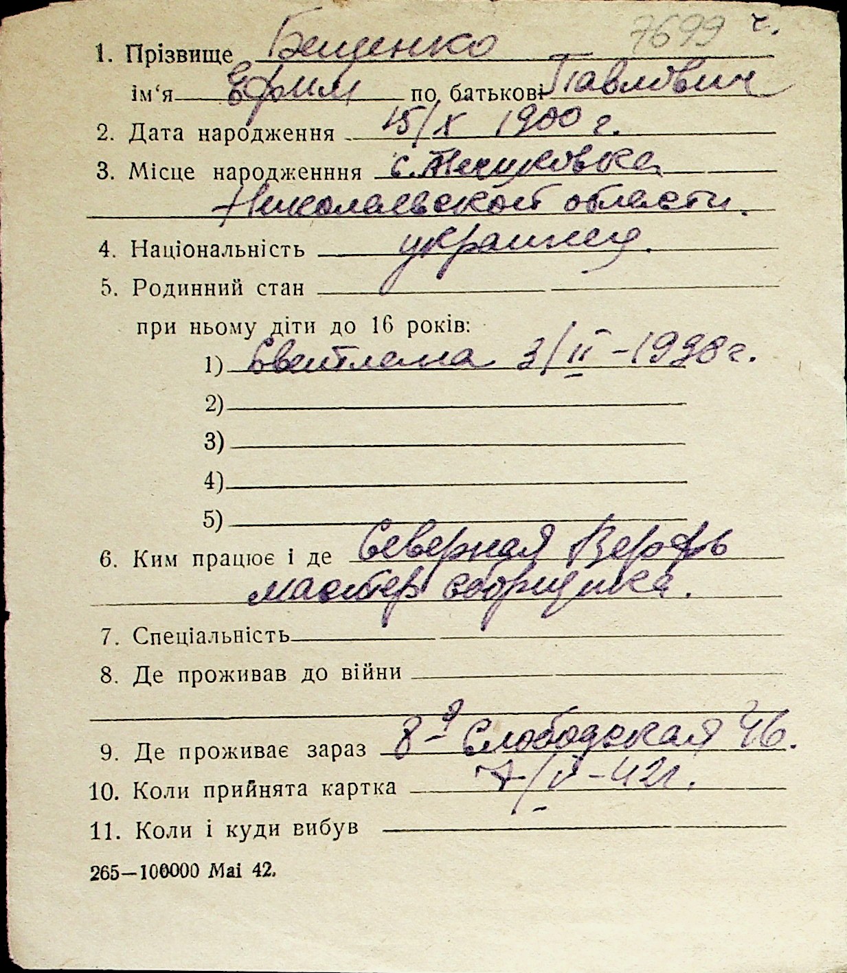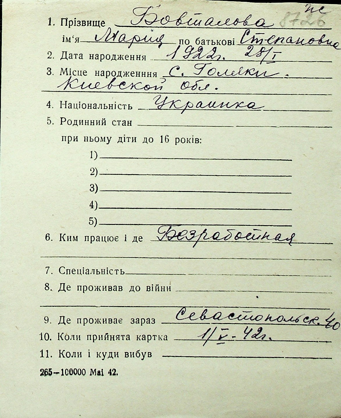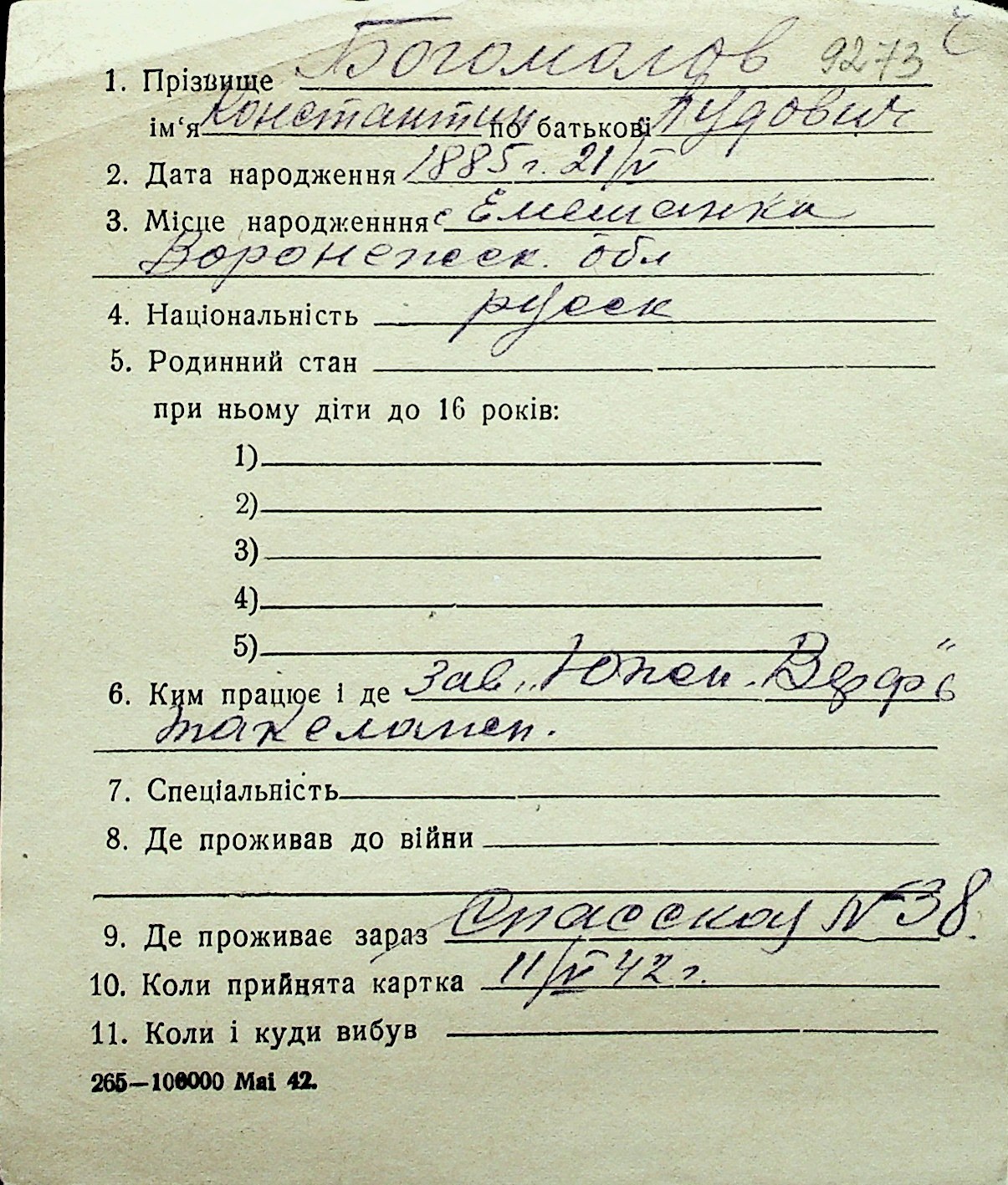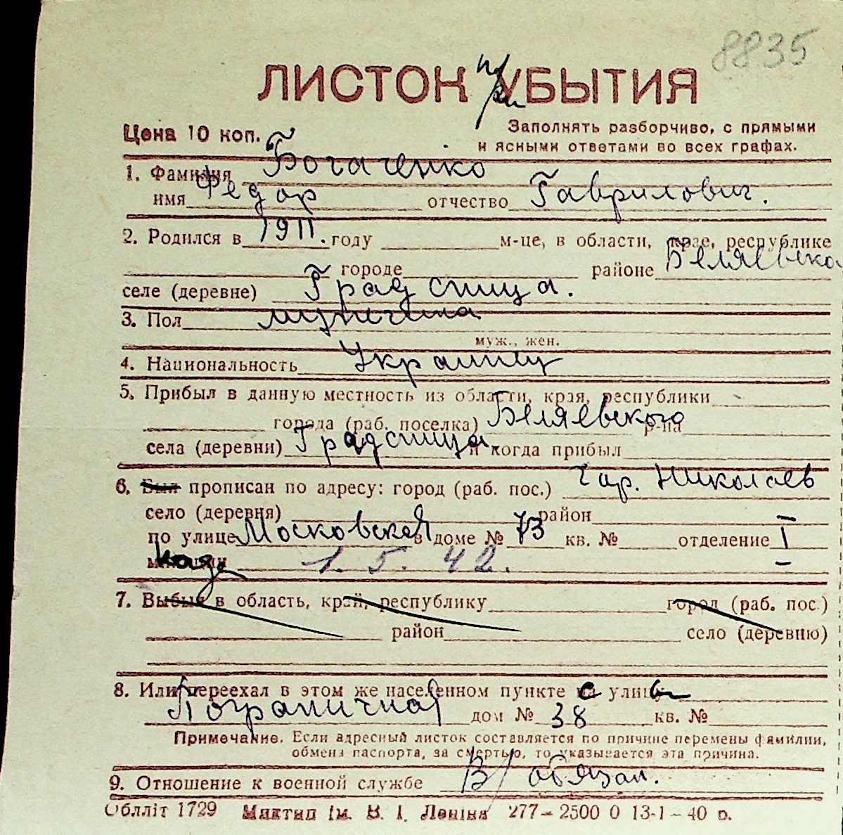 ◦ ◦ Перелік карток на осіб, які мешкали у м. Миколаїв у період окупації 1941–1944 років