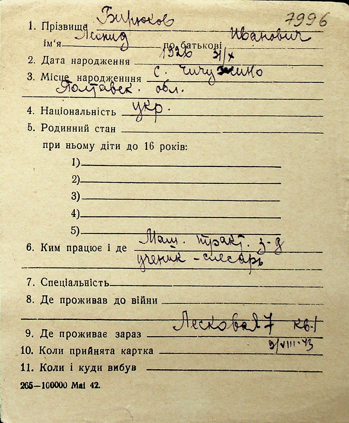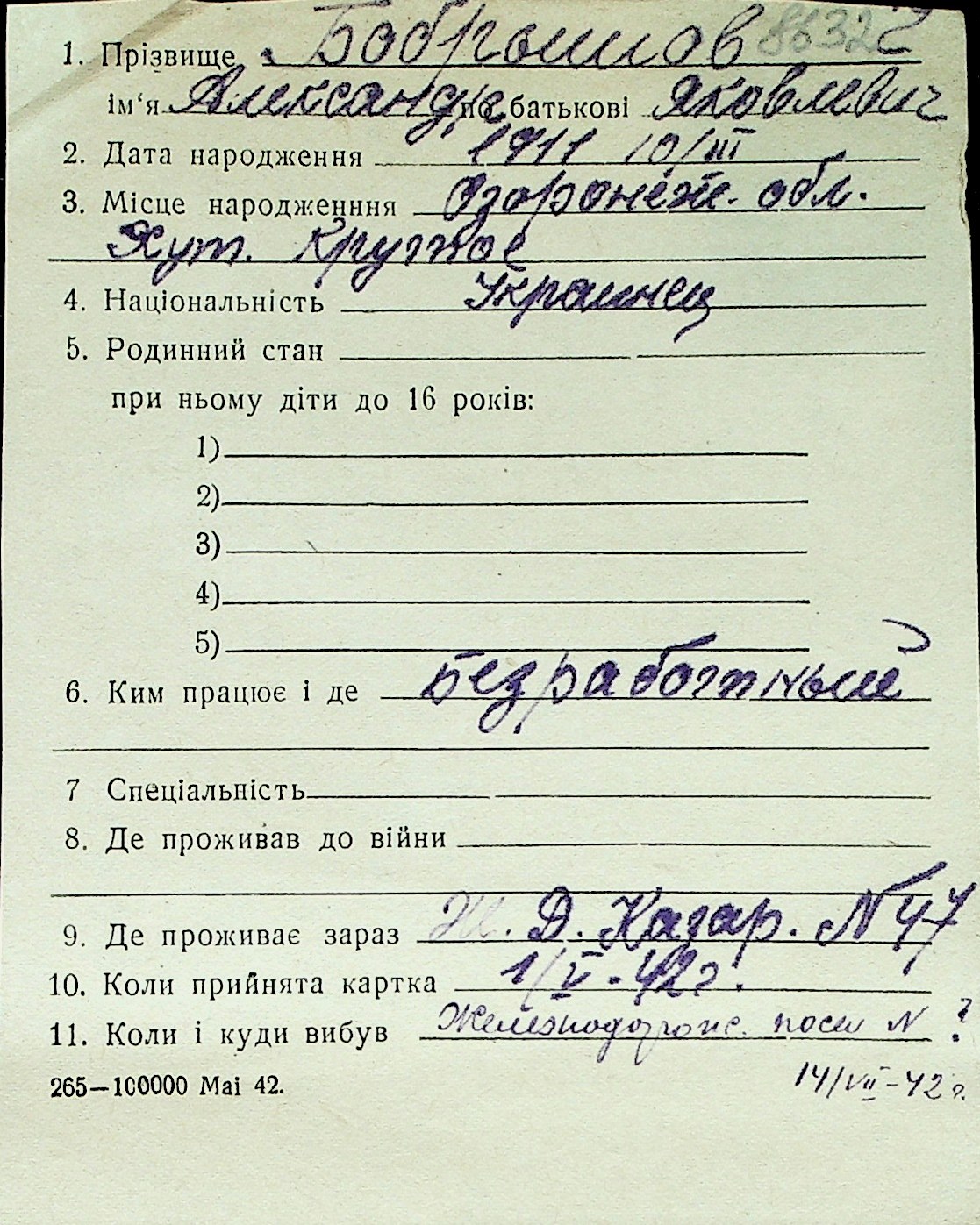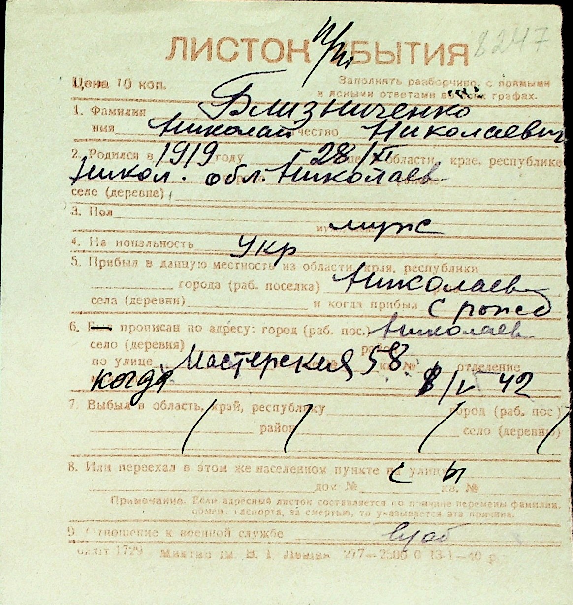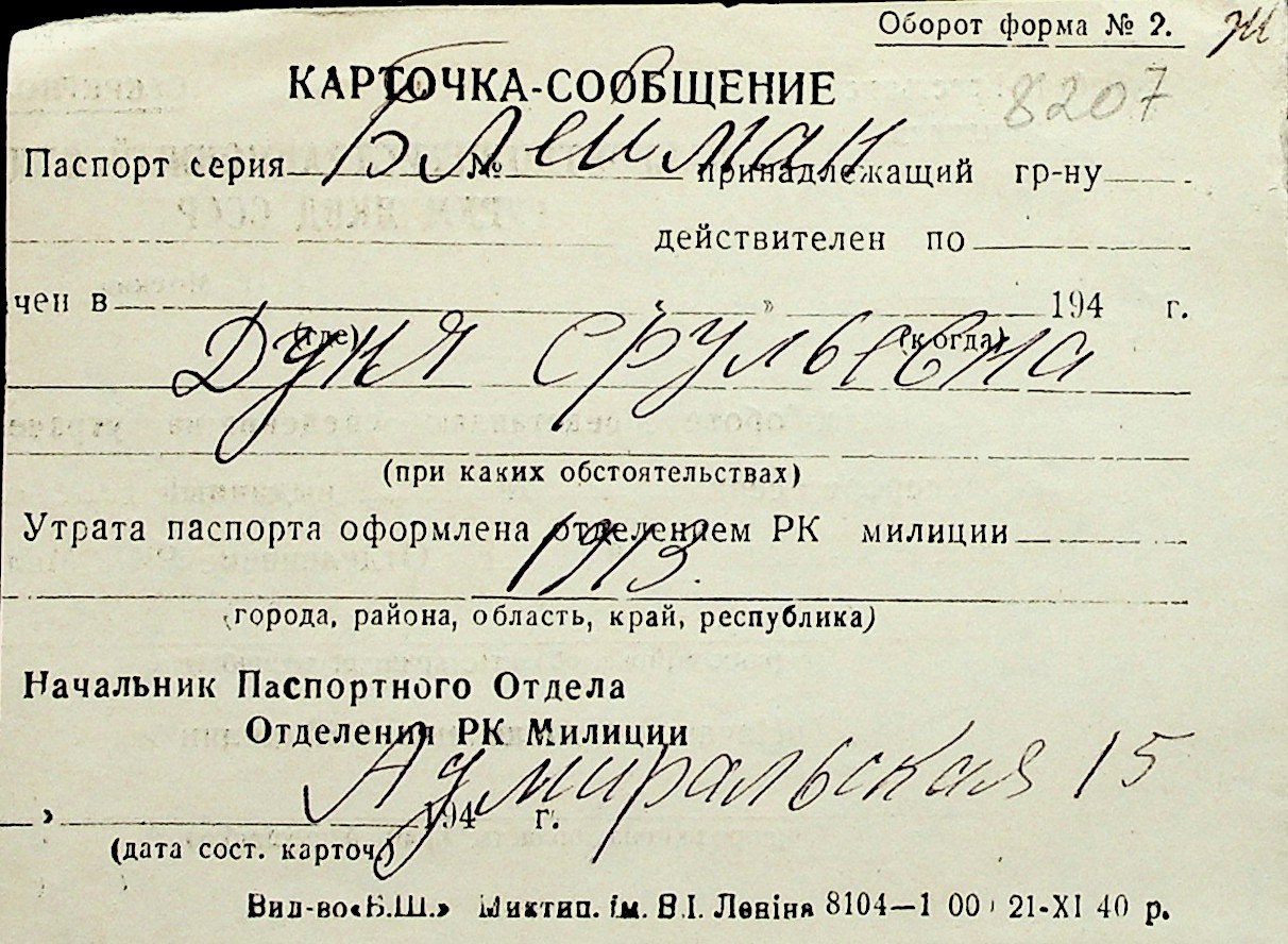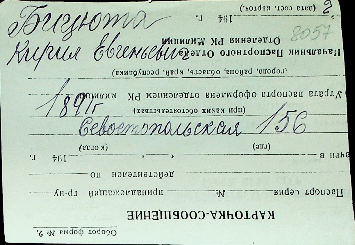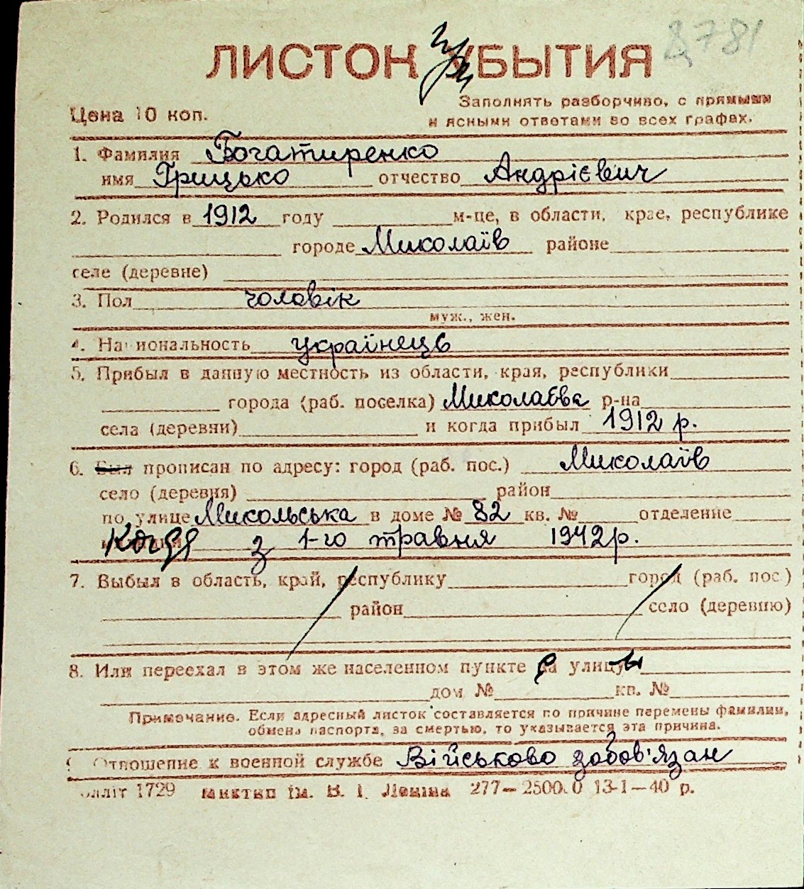 ◦ ◦ Перелік карток на осіб, які мешкали у м. Миколаїв у період окупації 1941–1944 років