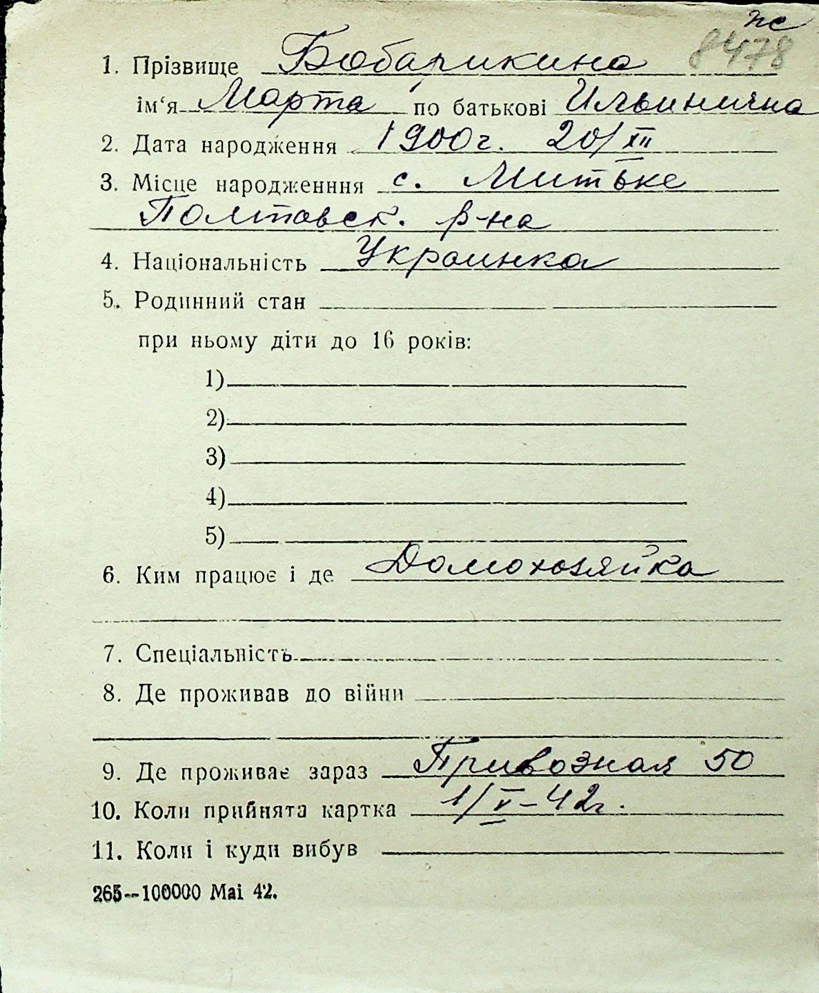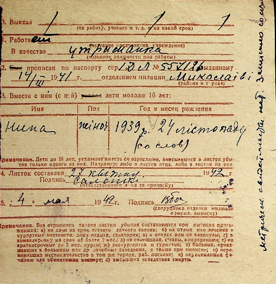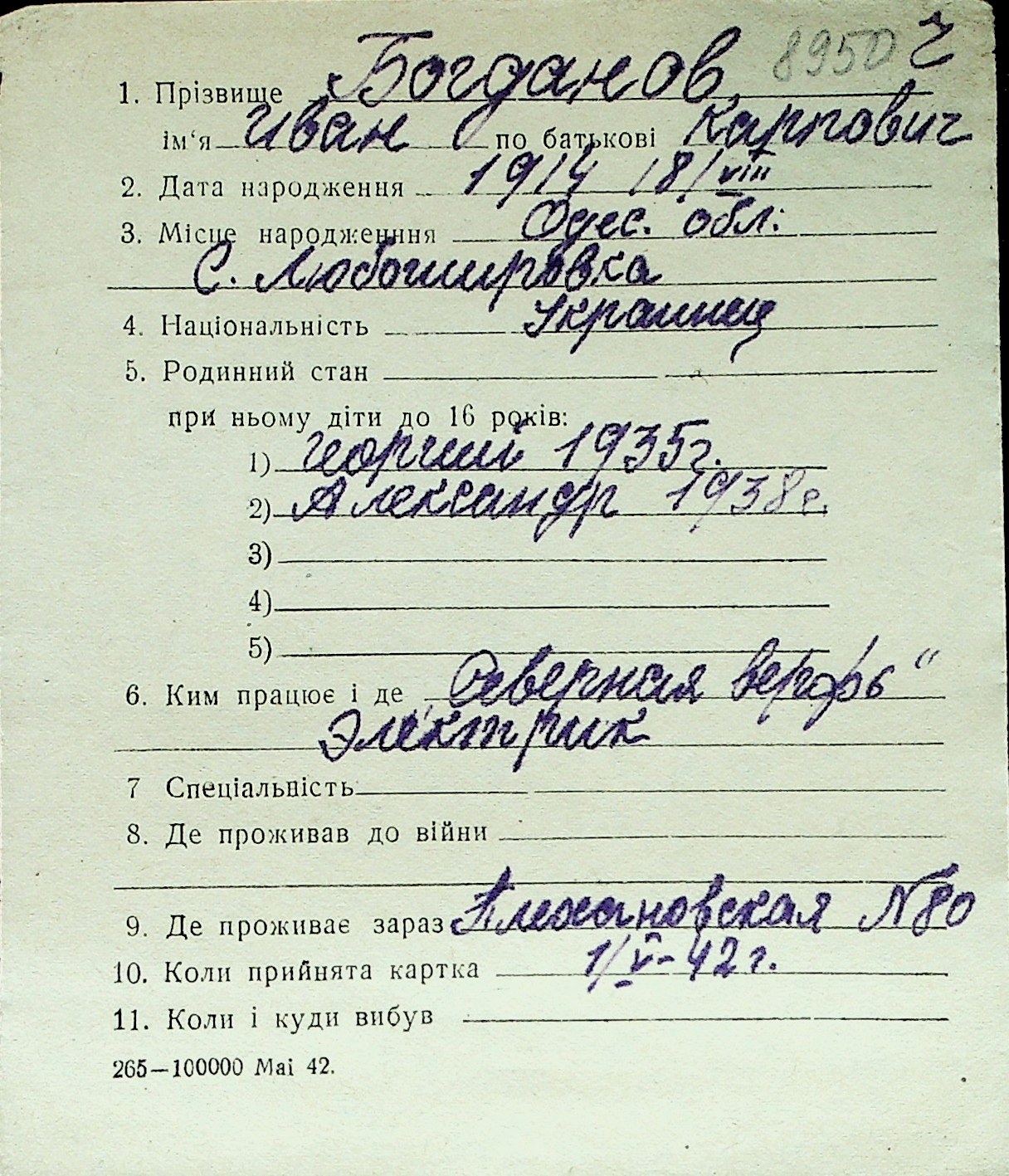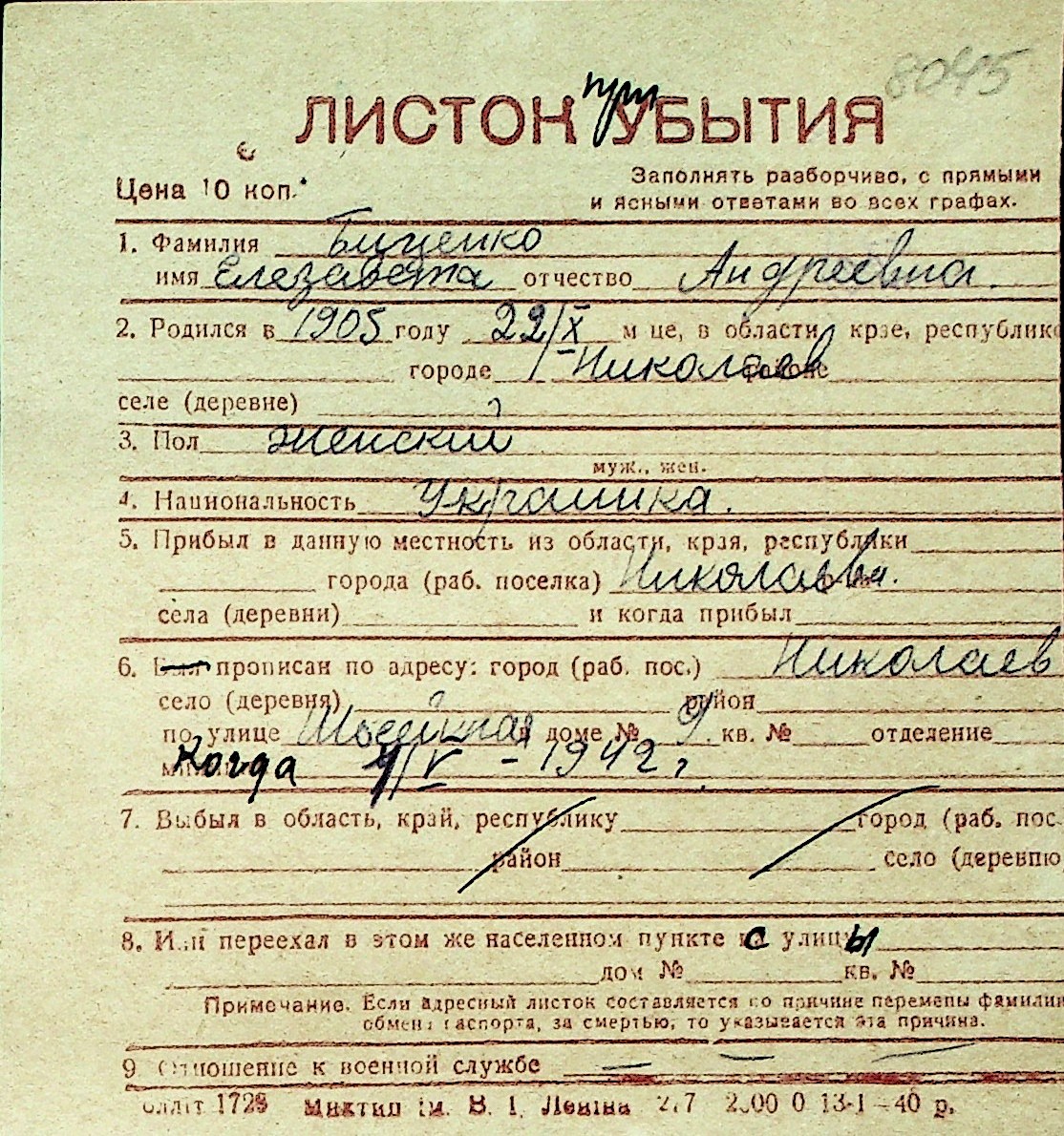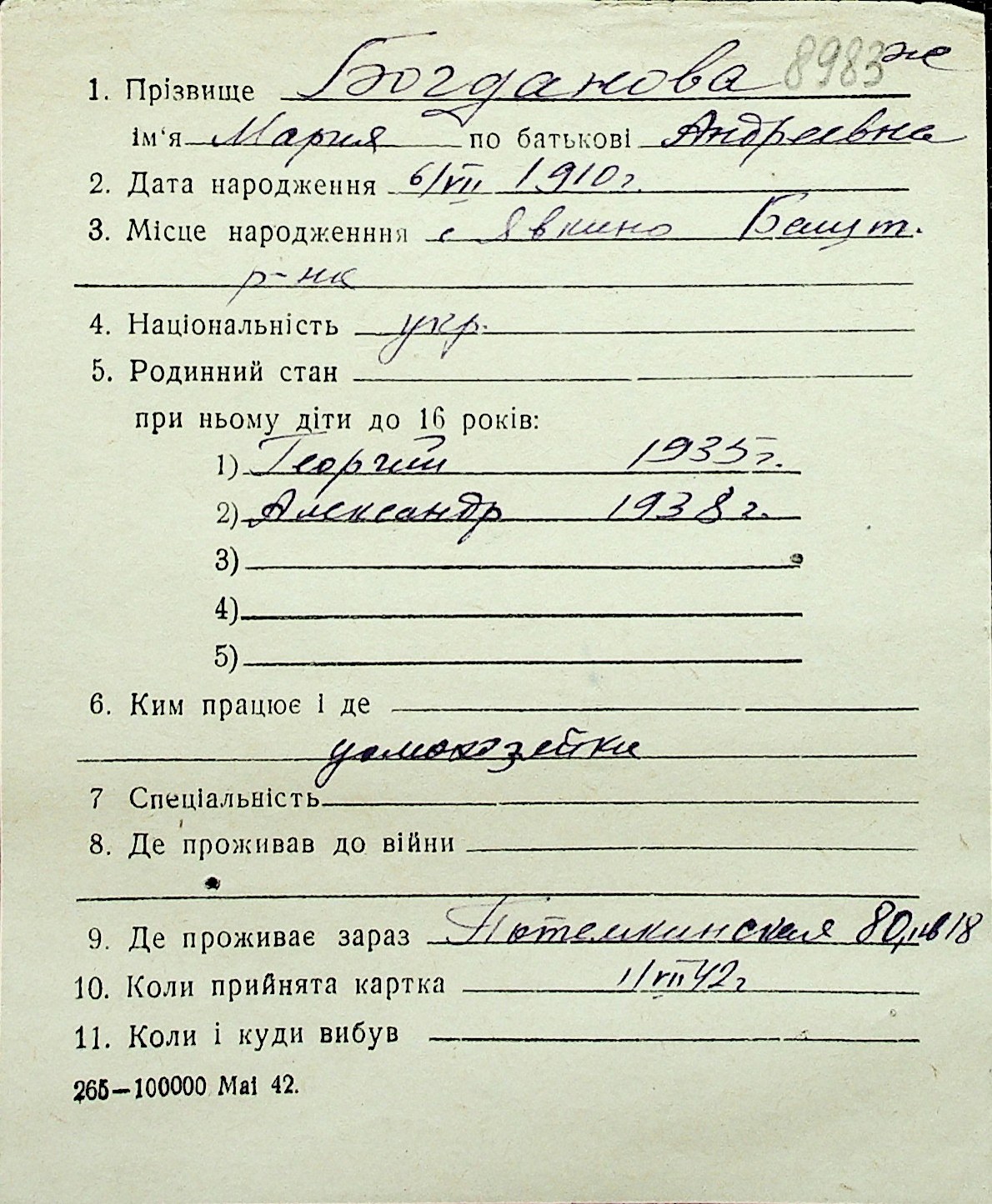 ◦ ◦ Перелік карток на осіб, які мешкали у м. Миколаїв у період окупації 1941–1944 років