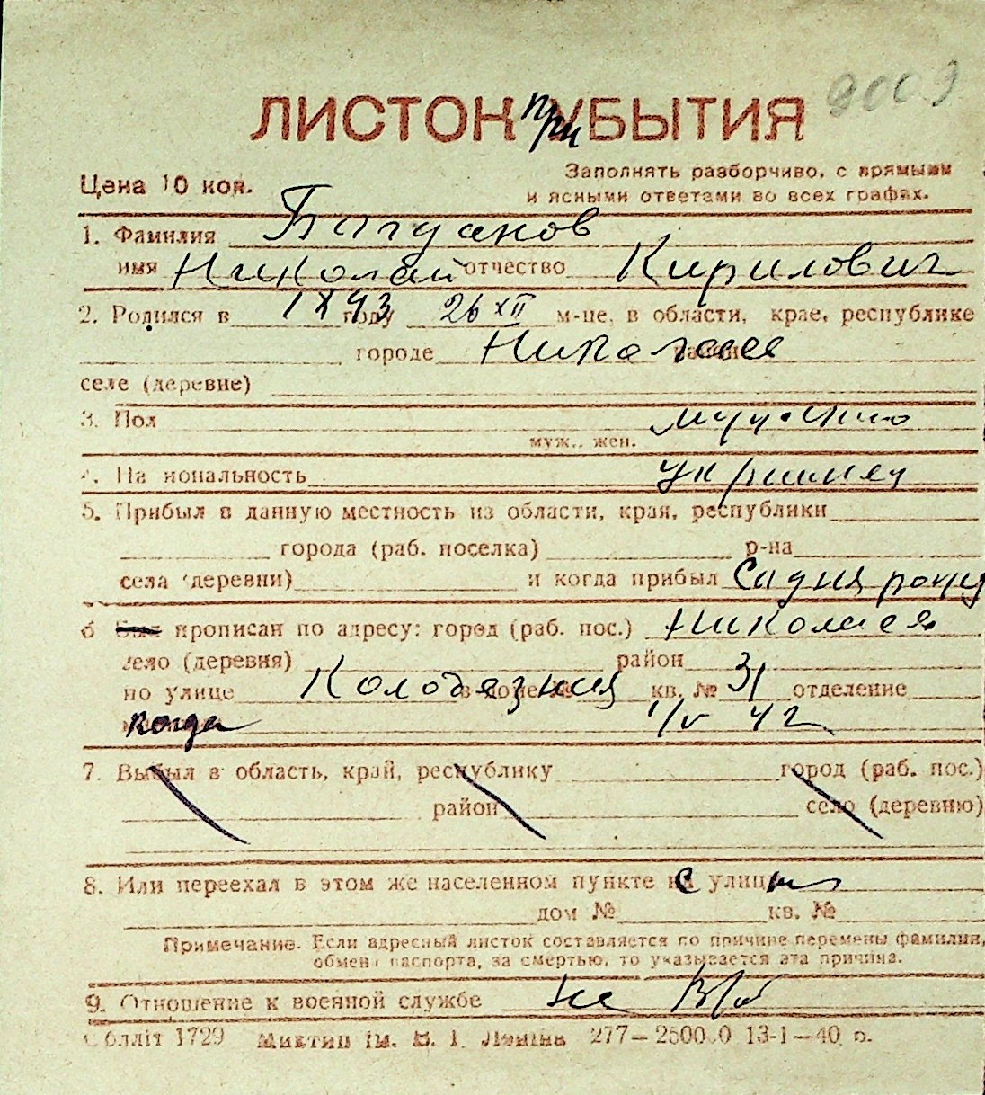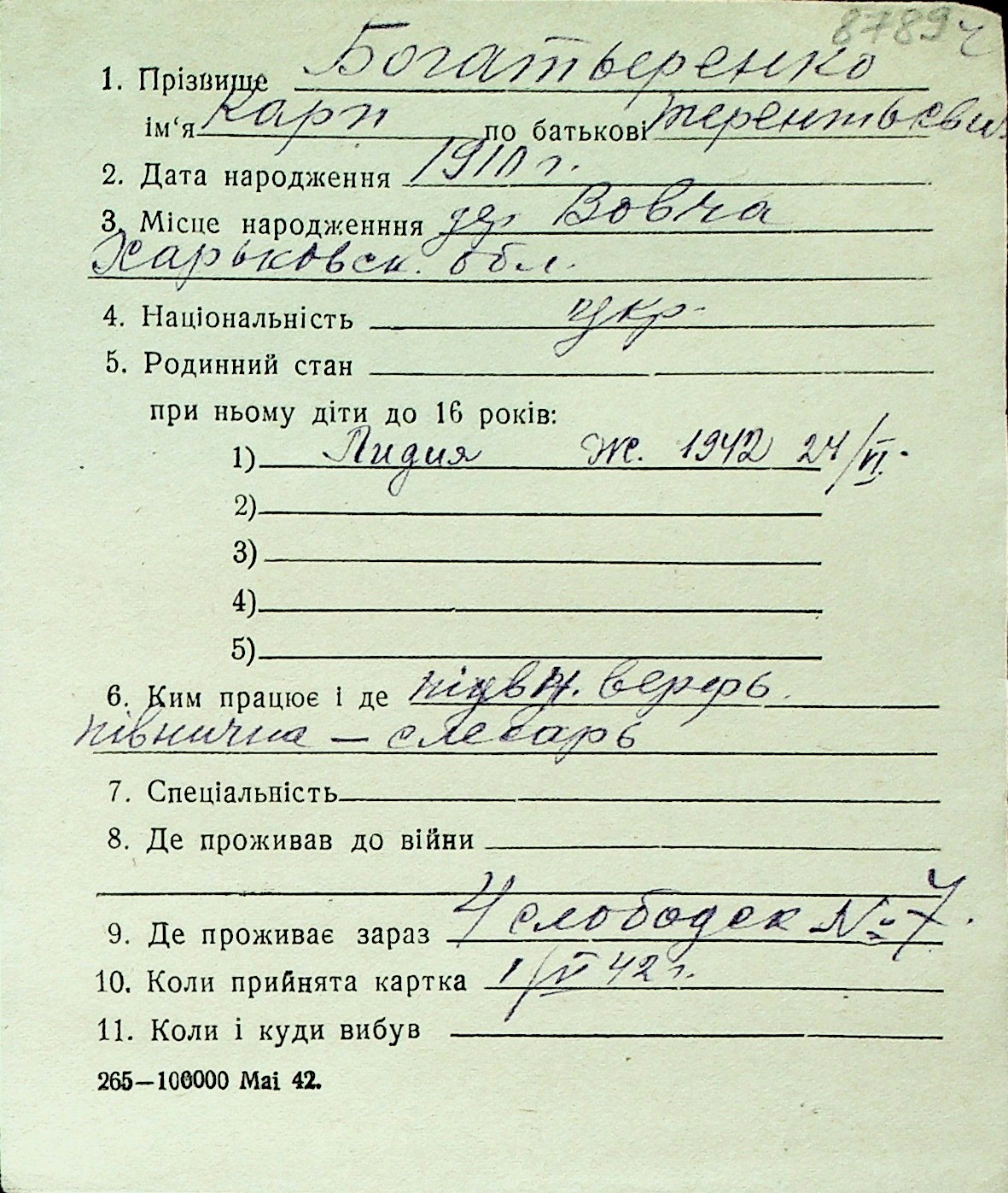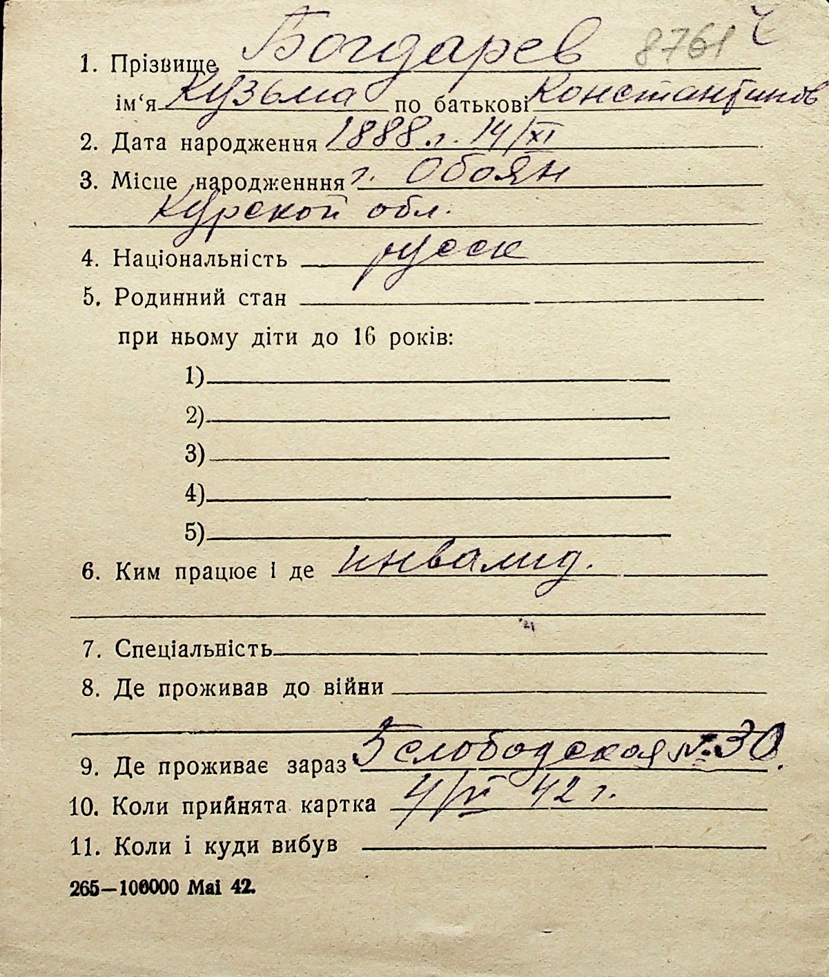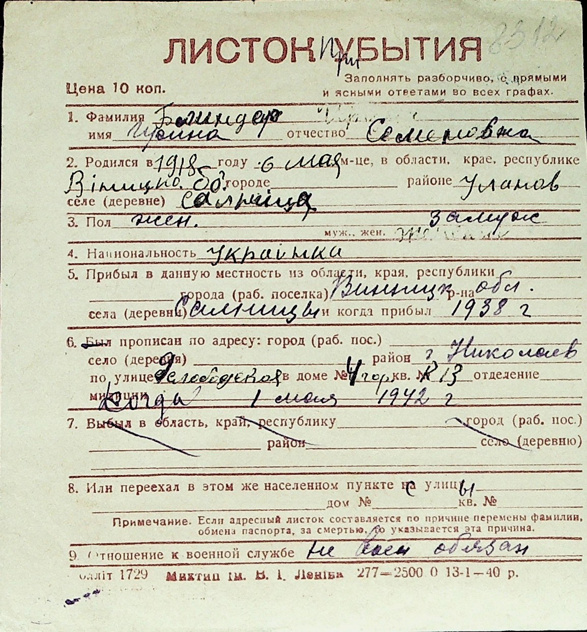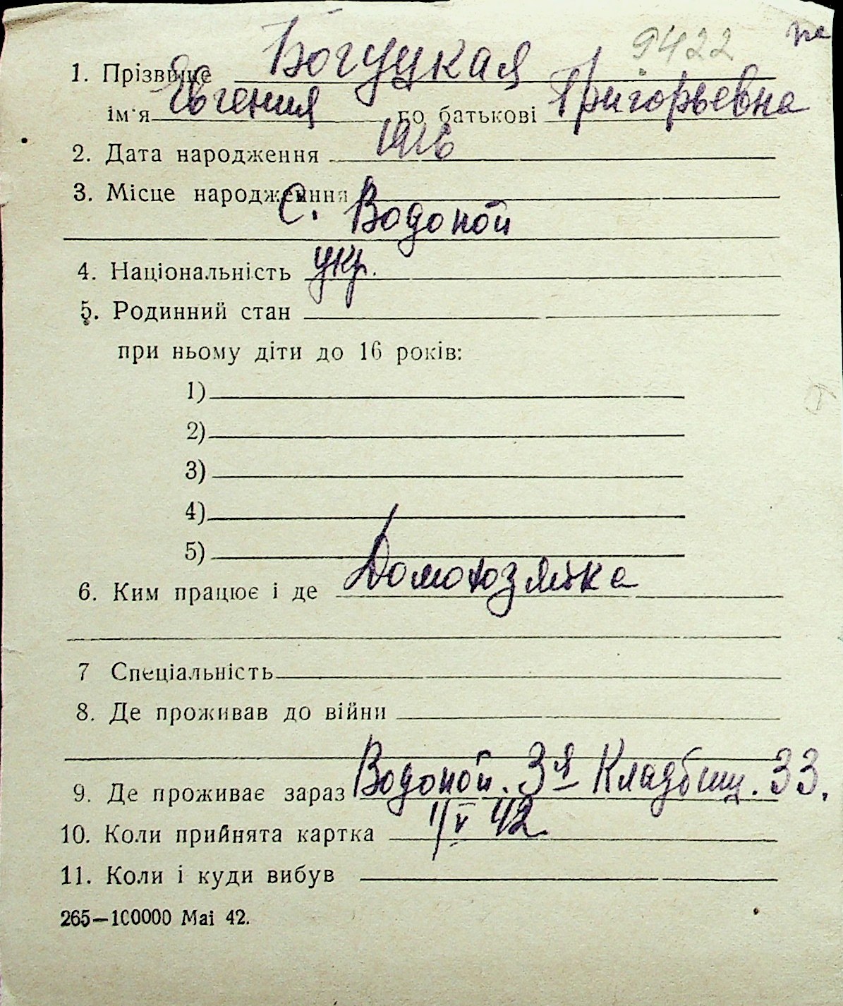 ◦ ◦ Перелік карток на осіб, які мешкали у м. Миколаїв у період окупації 1941–1944 років