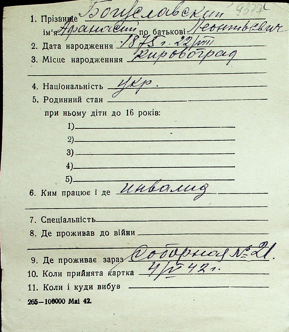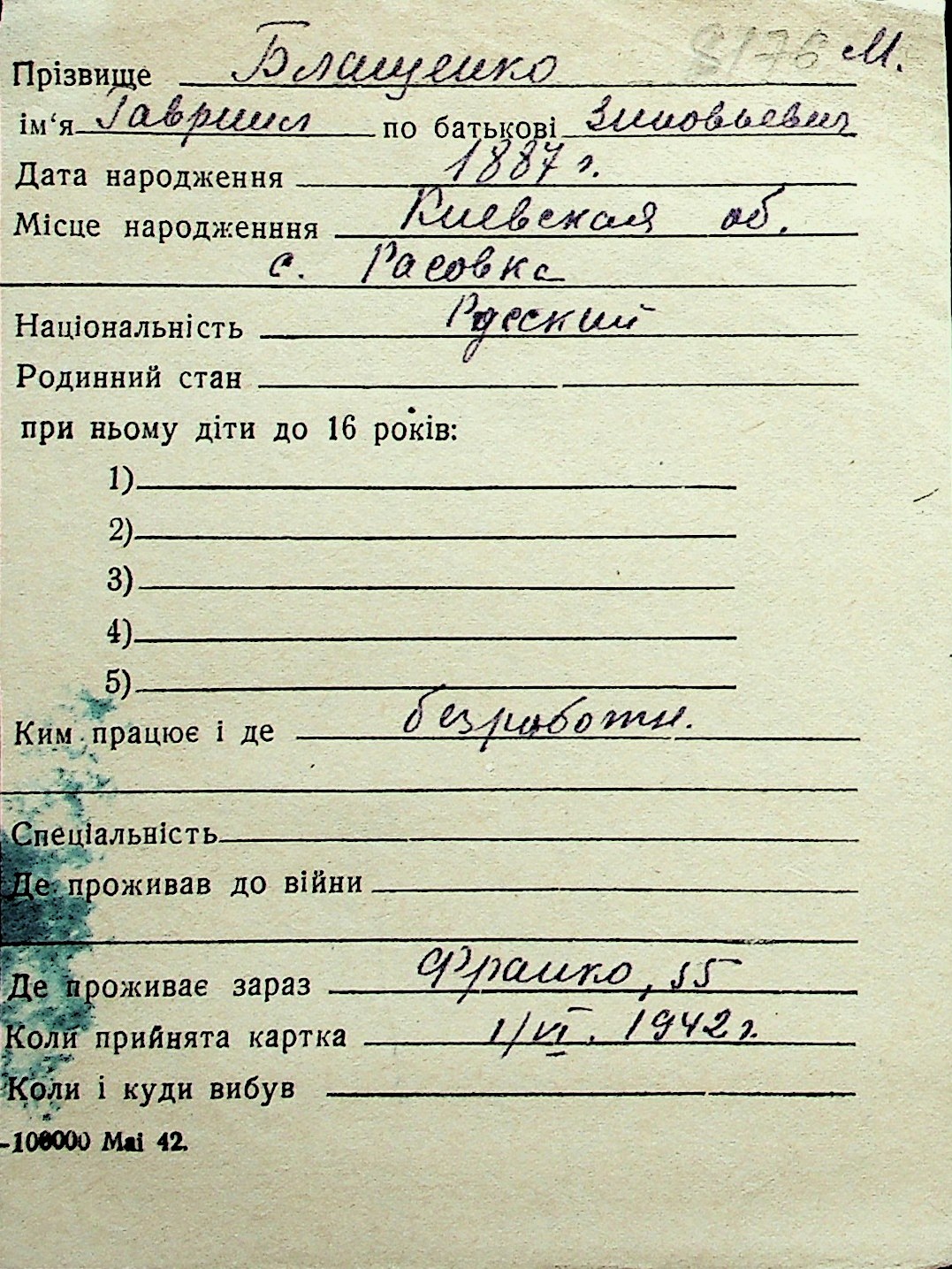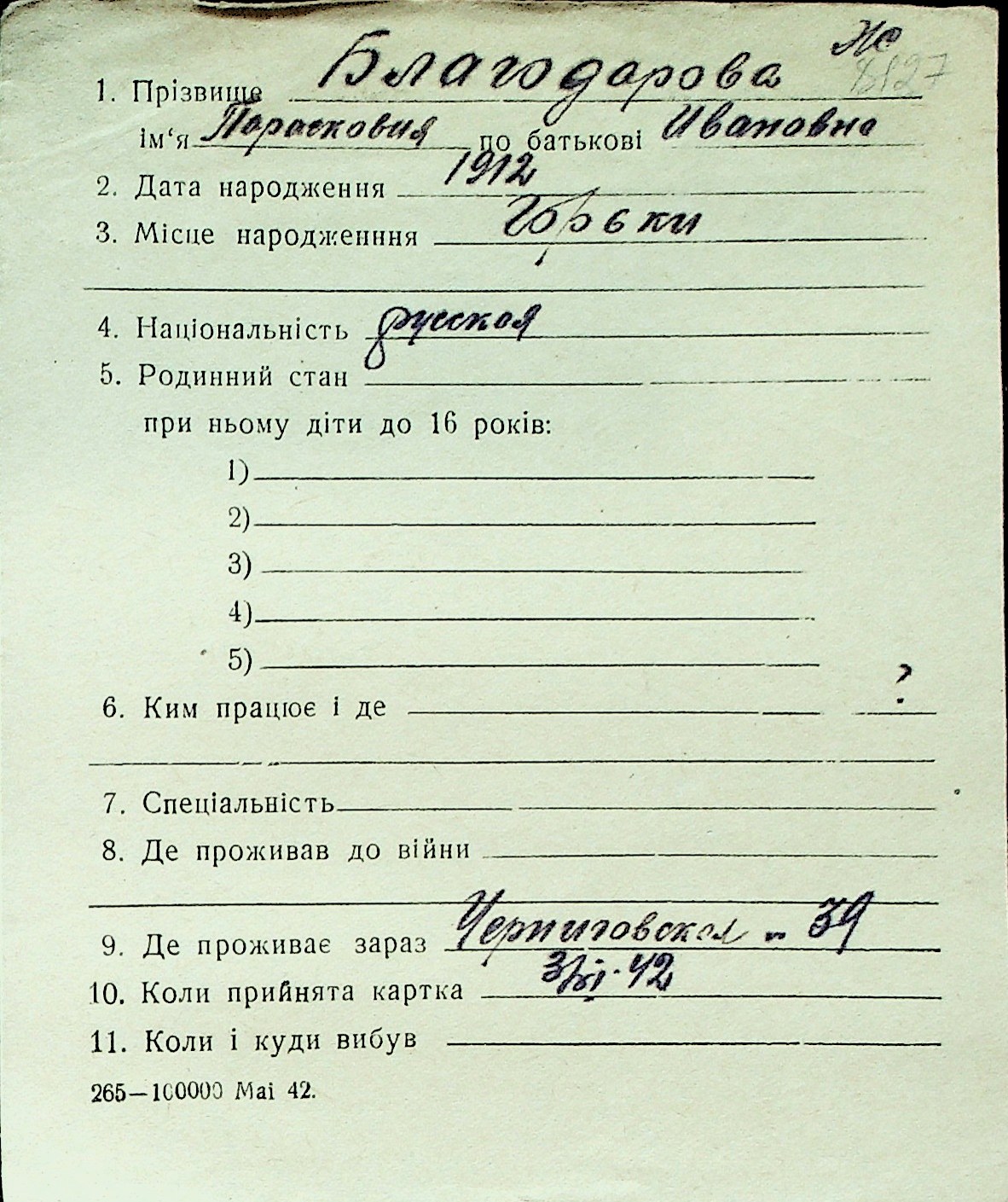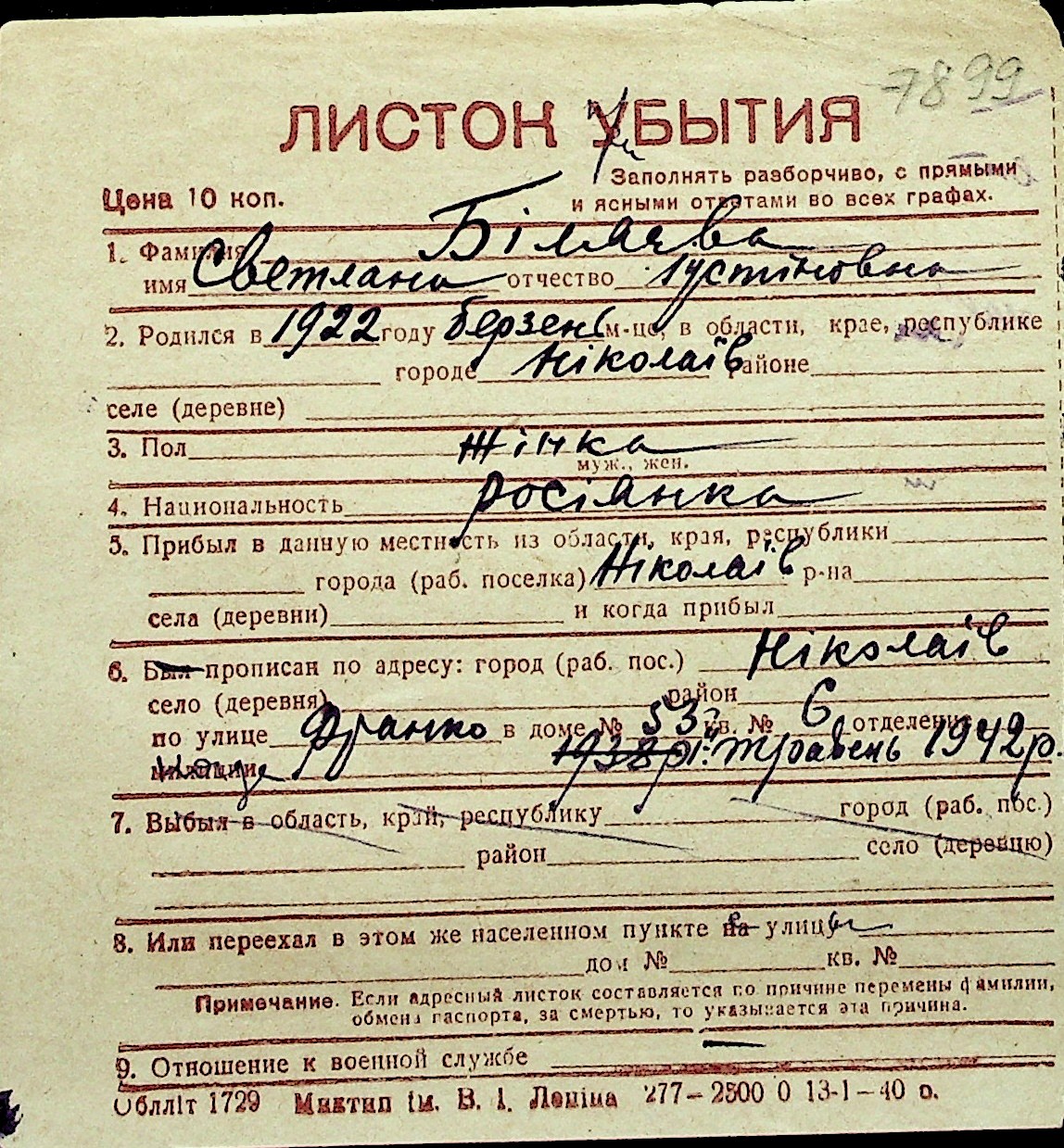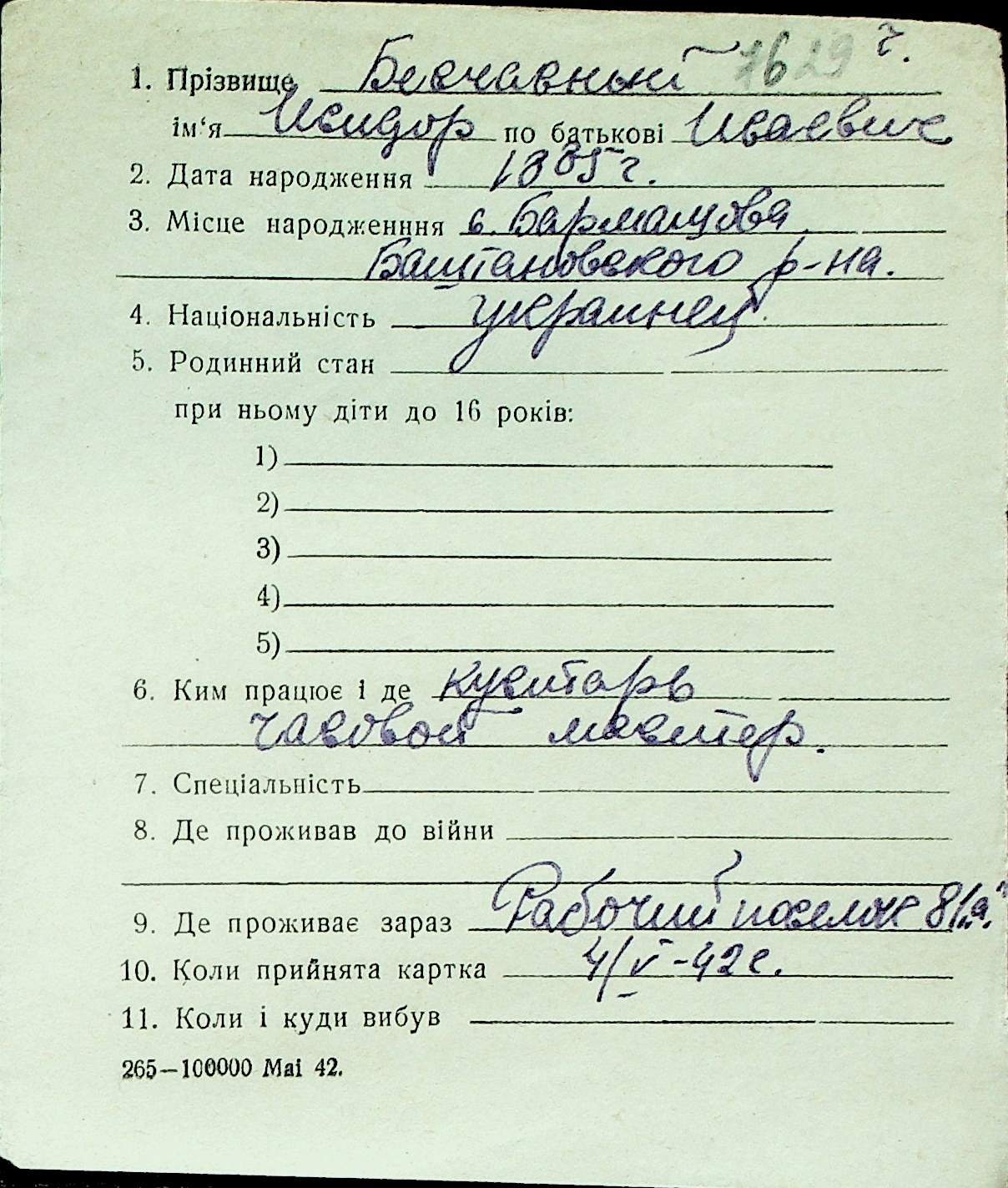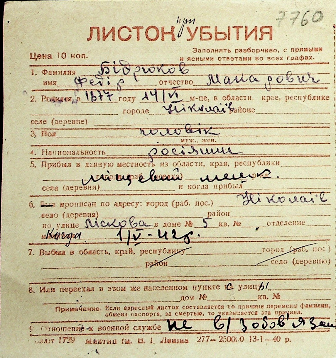 ◦ ◦ Перелік карток на осіб, які мешкали у м. Миколаїв у період окупації 1941–1944 років