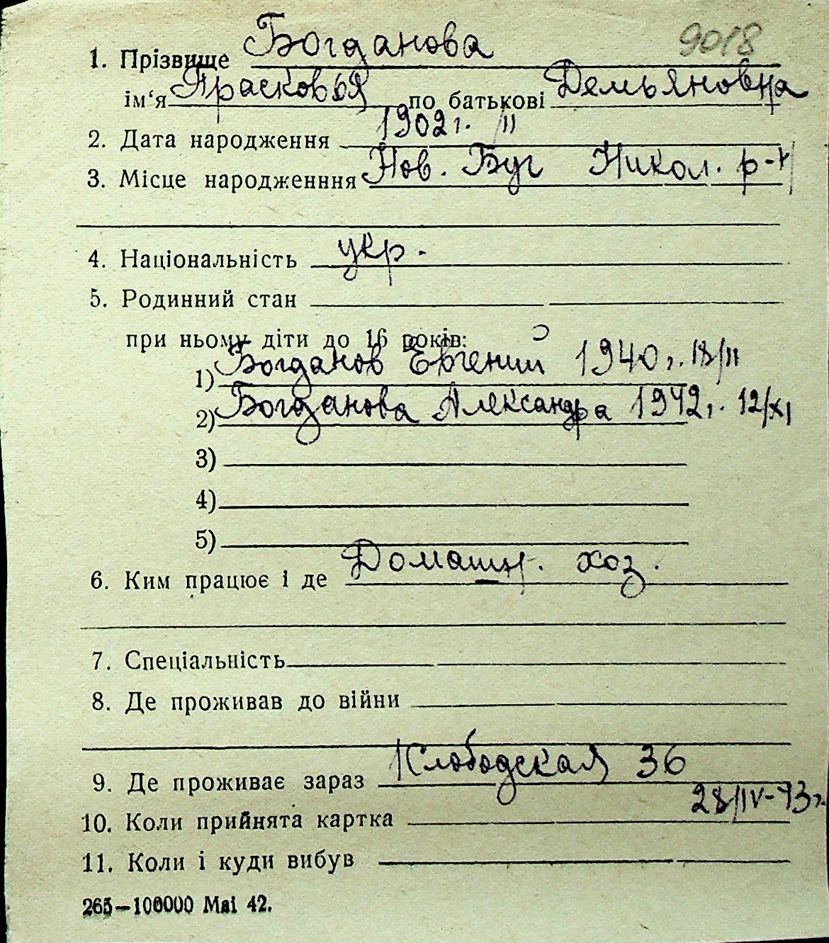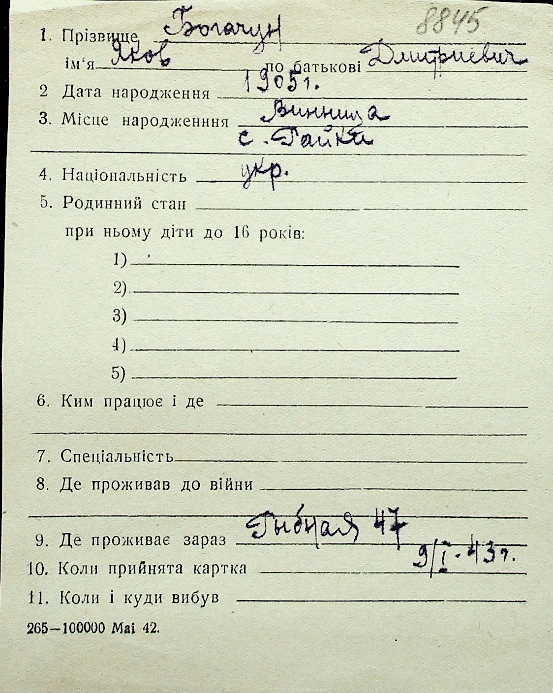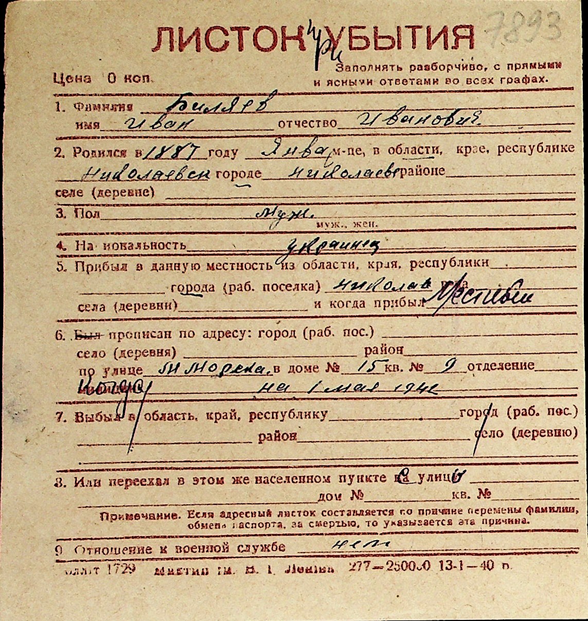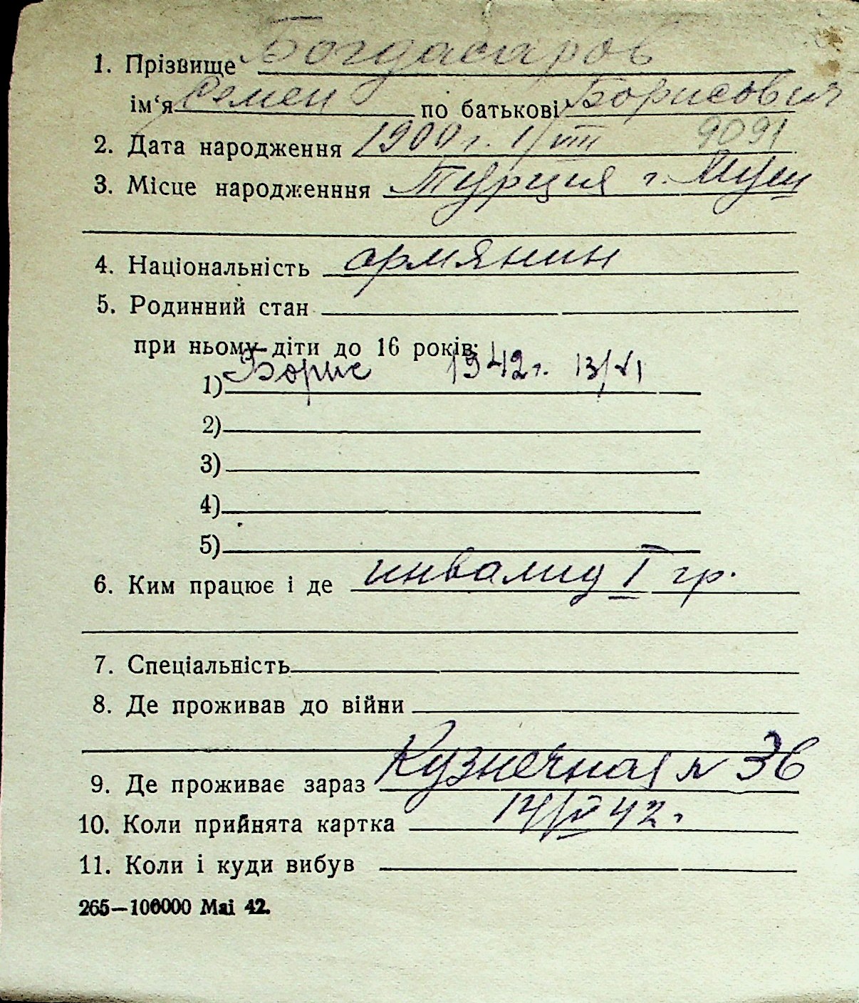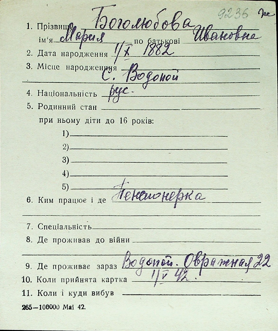 ◦ ◦ Перелік карток на осіб, які мешкали у м. Миколаїв у період окупації 1941–1944 років