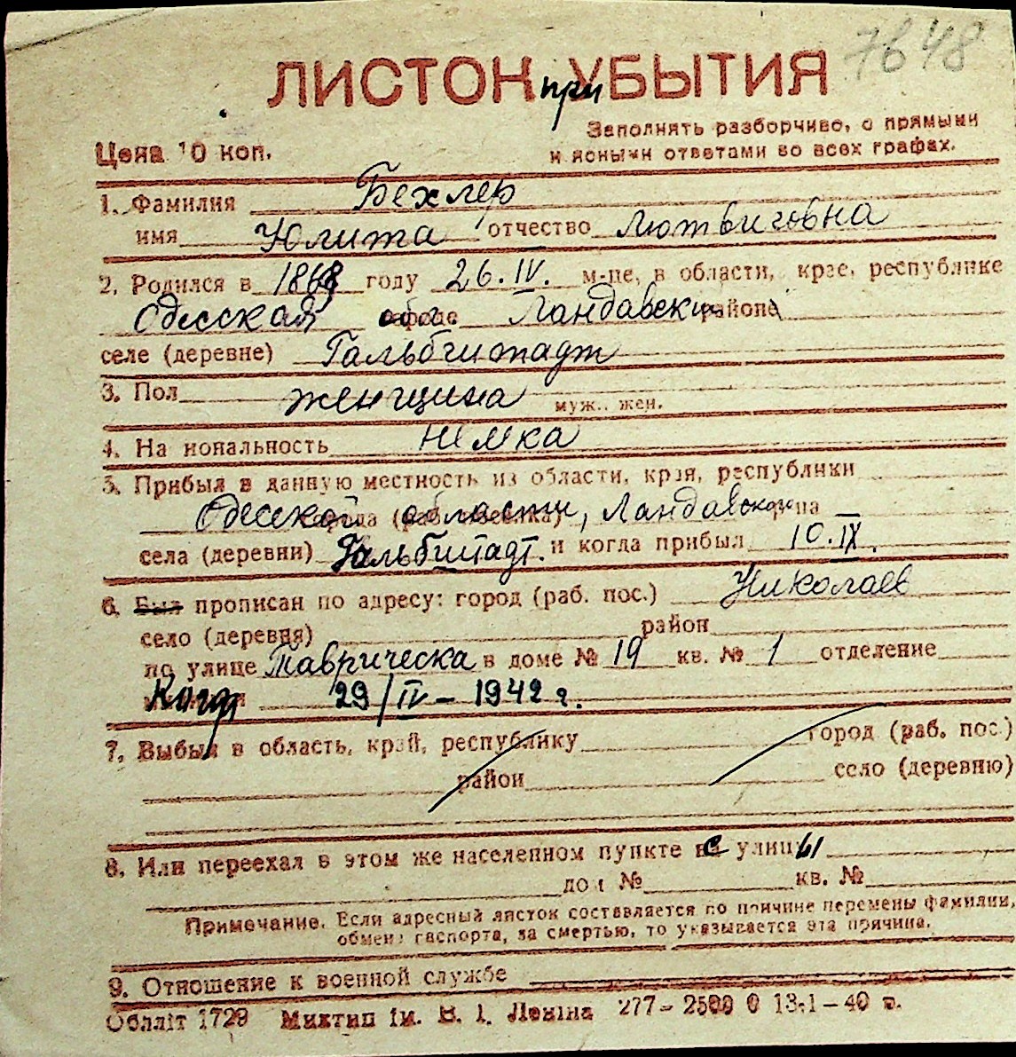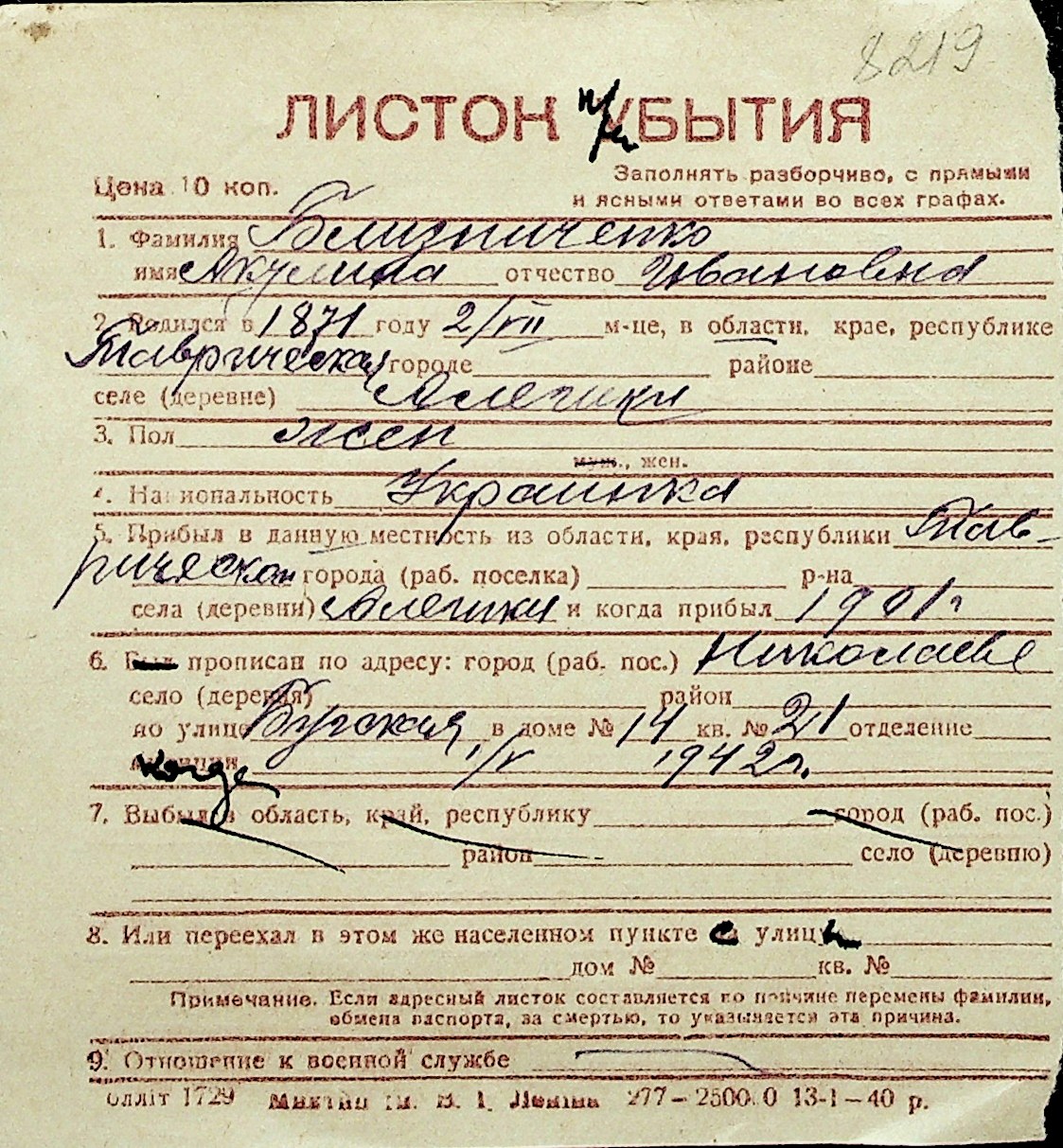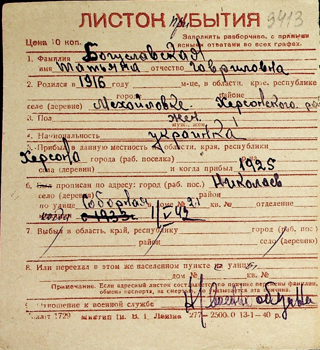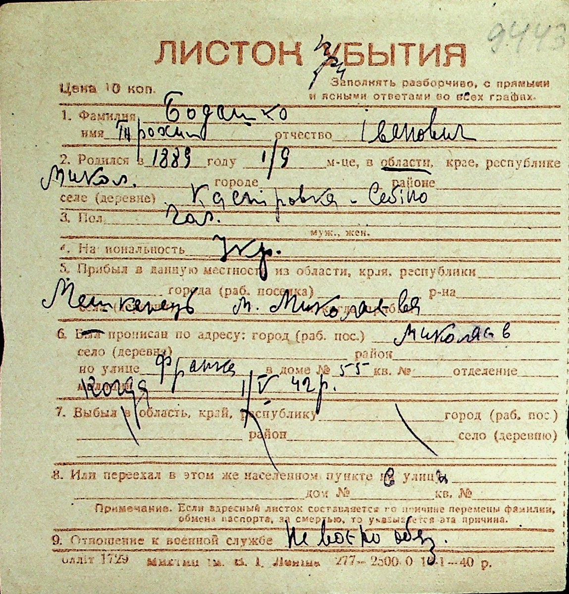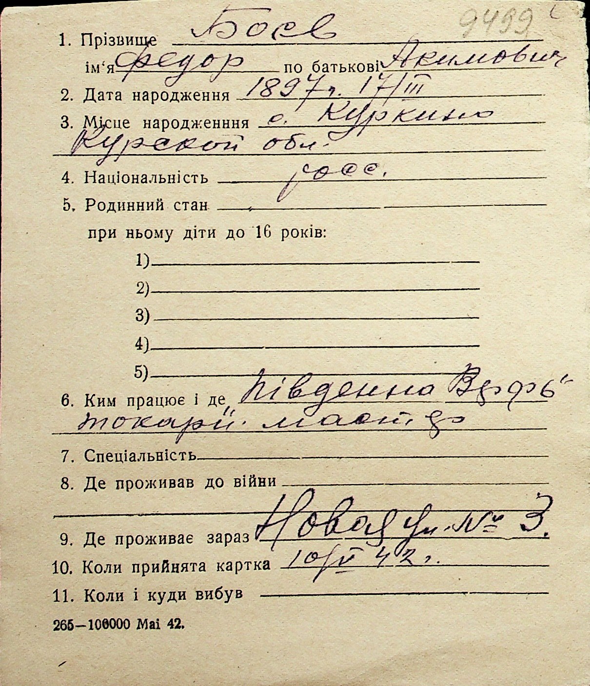 ◦ ◦ Перелік карток на осіб, які мешкали у м. Миколаїв у період окупації 1941–1944 років