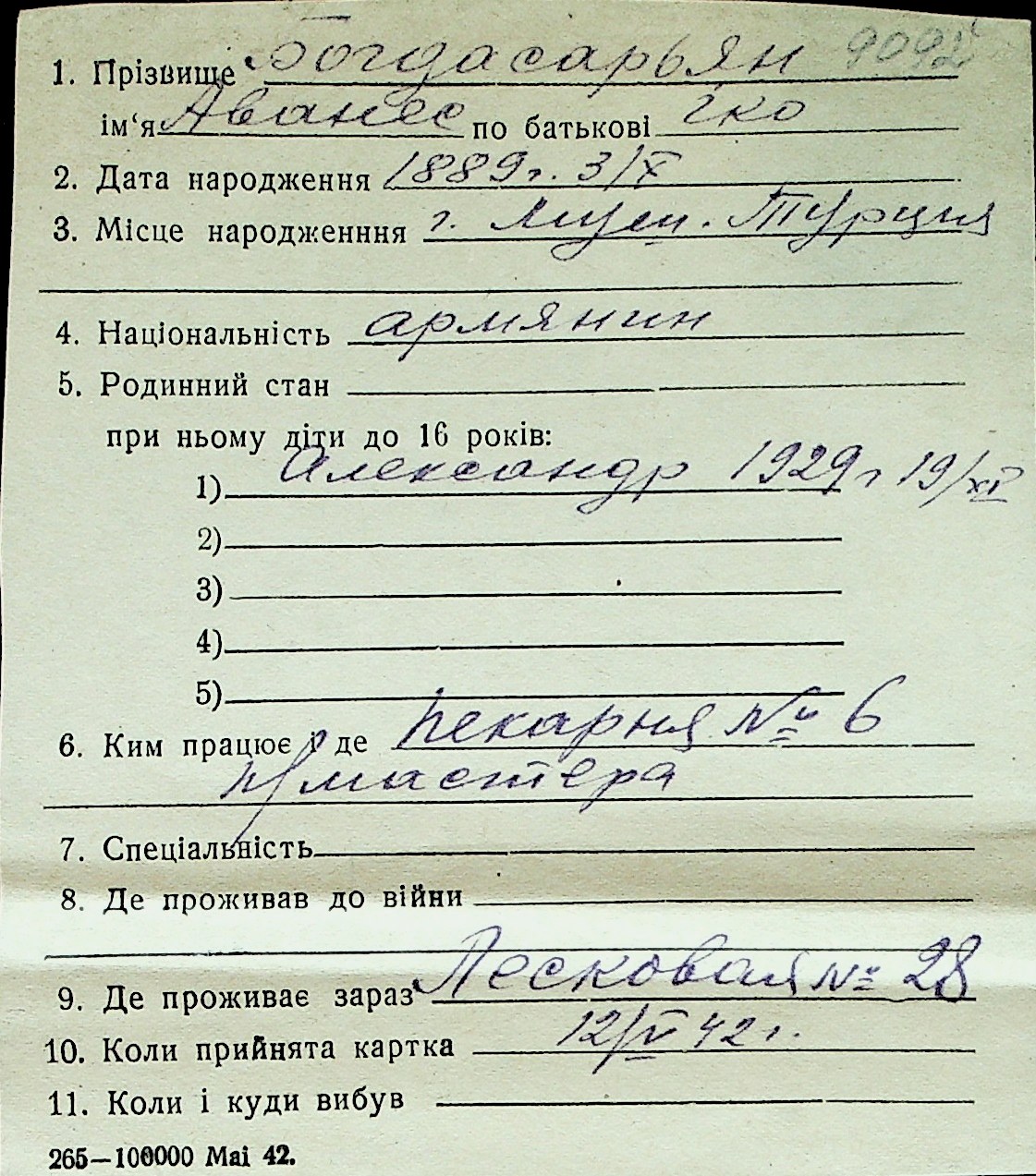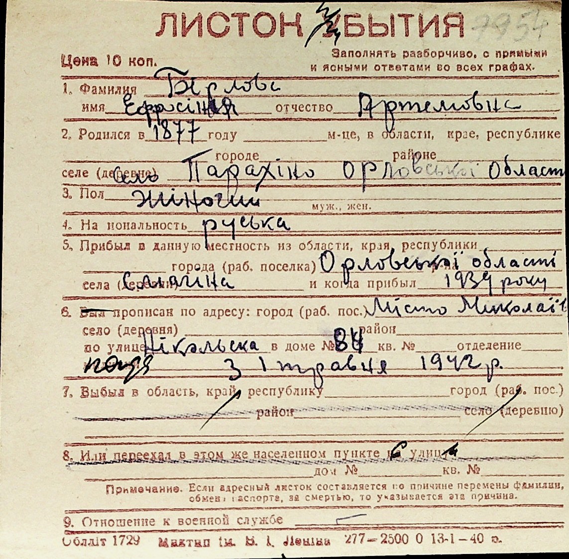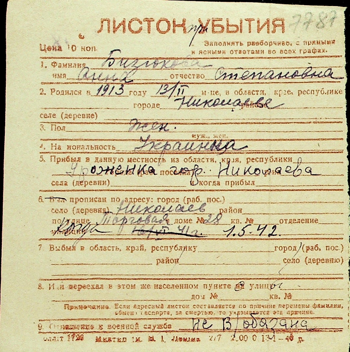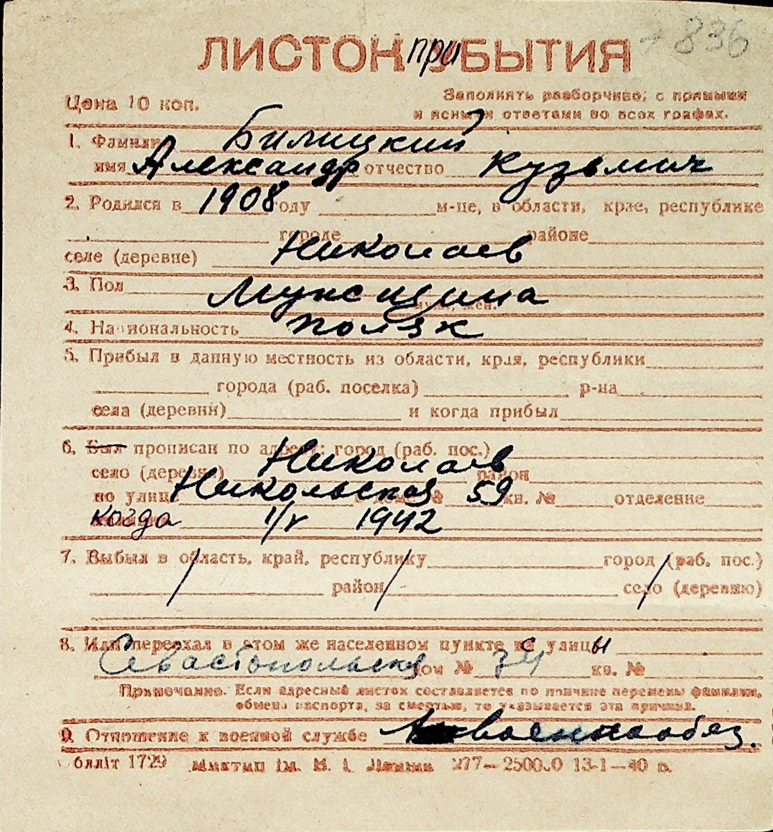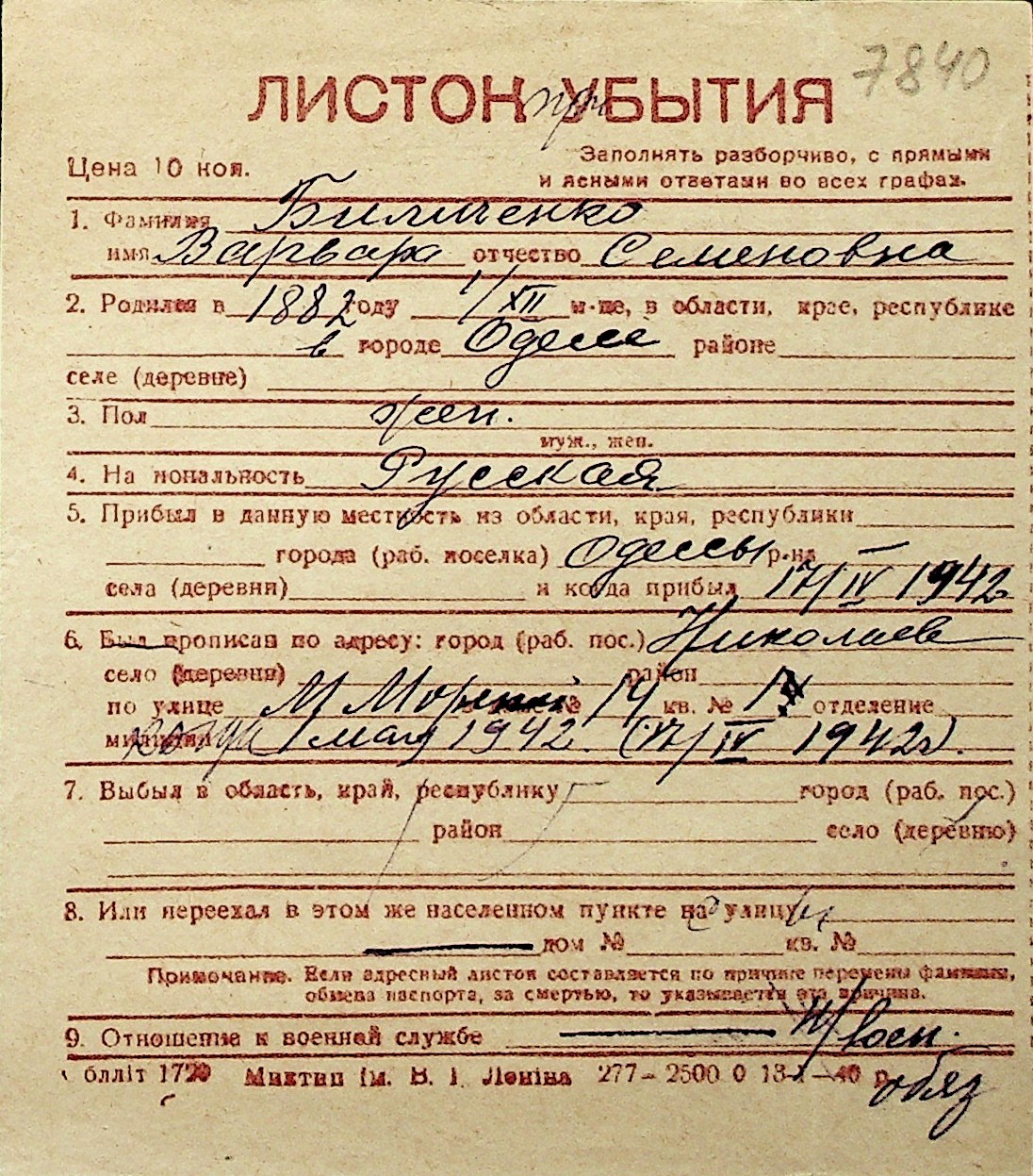 ◦ ◦ Перелік карток на осіб, які мешкали у м. Миколаїв у період окупації 1941–1944 років