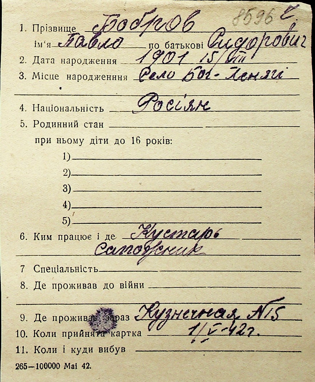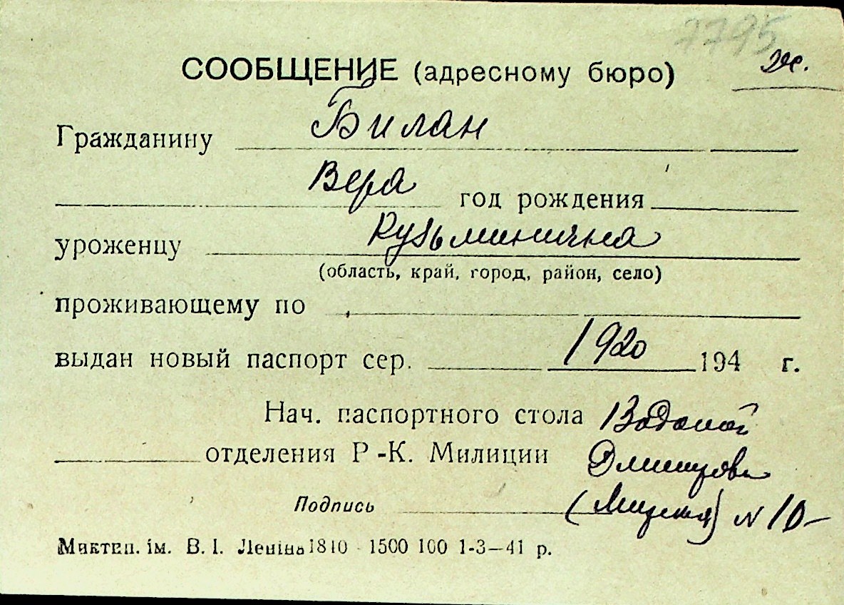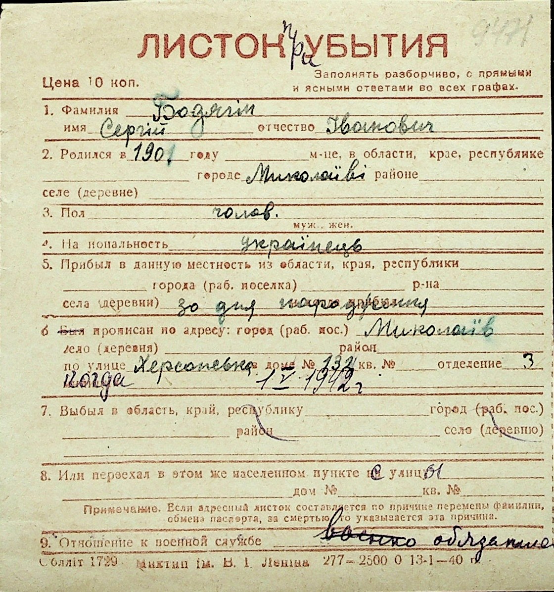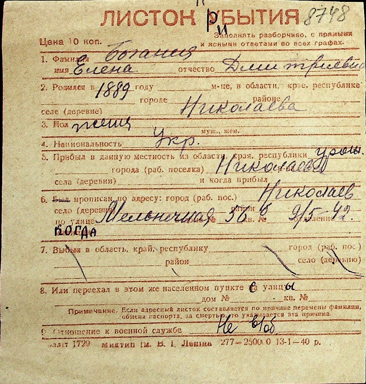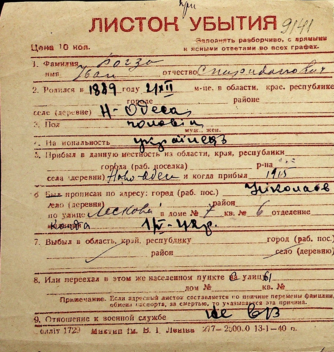 ◦ ◦ Перелік карток на осіб, які мешкали у м. Миколаїв у період окупації 1941–1944 років