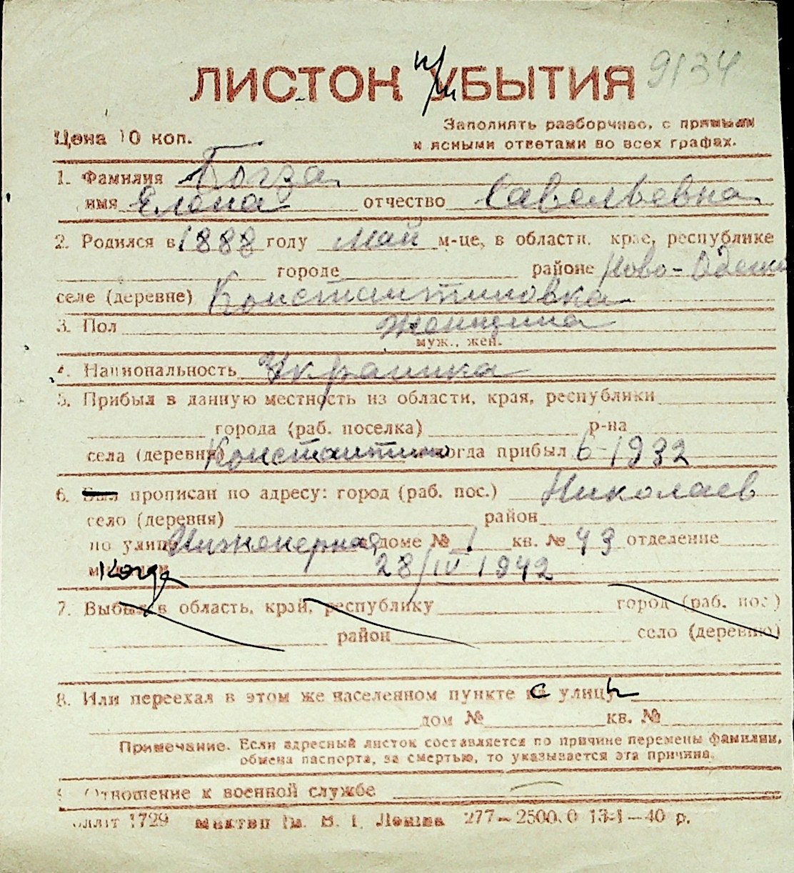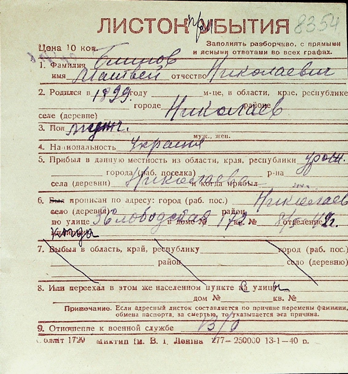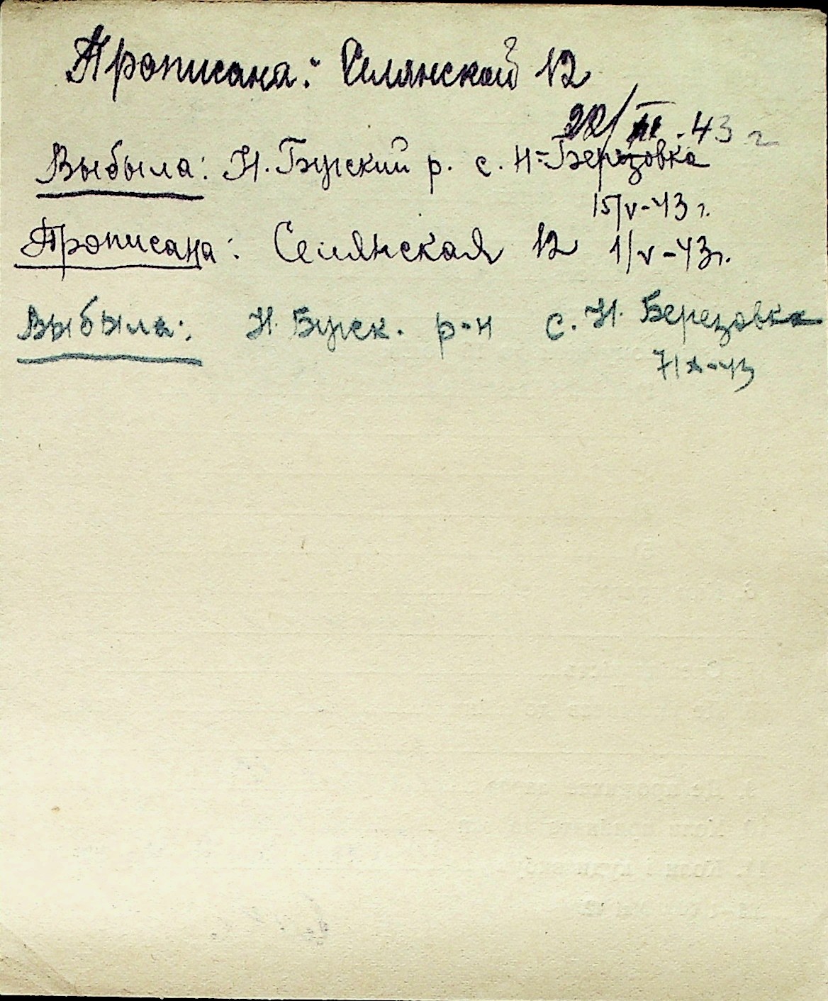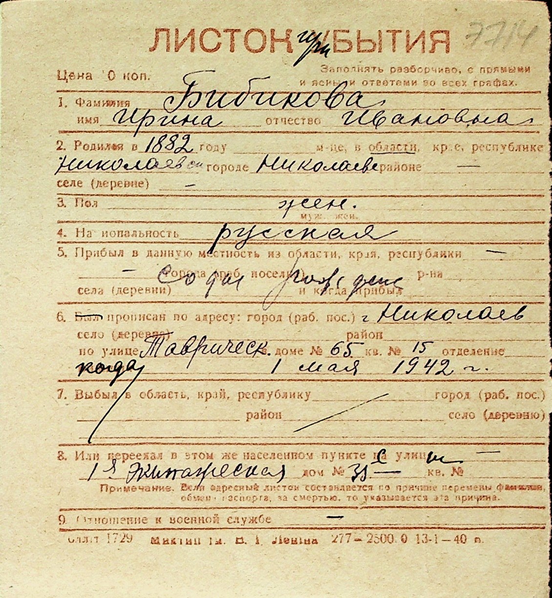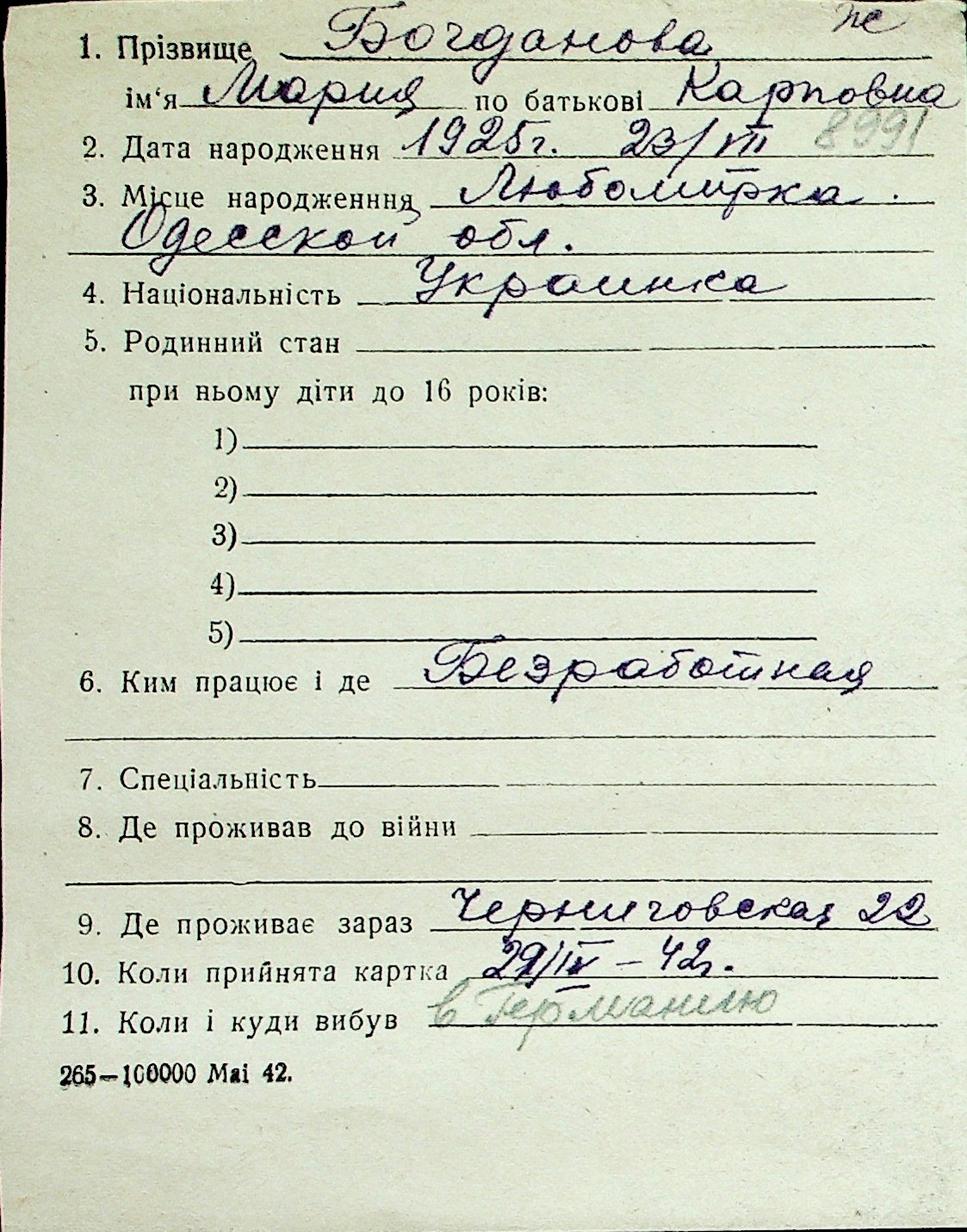 ◦ ◦ Перелік карток на осіб, які мешкали у м. Миколаїв у період окупації 1941–1944 років