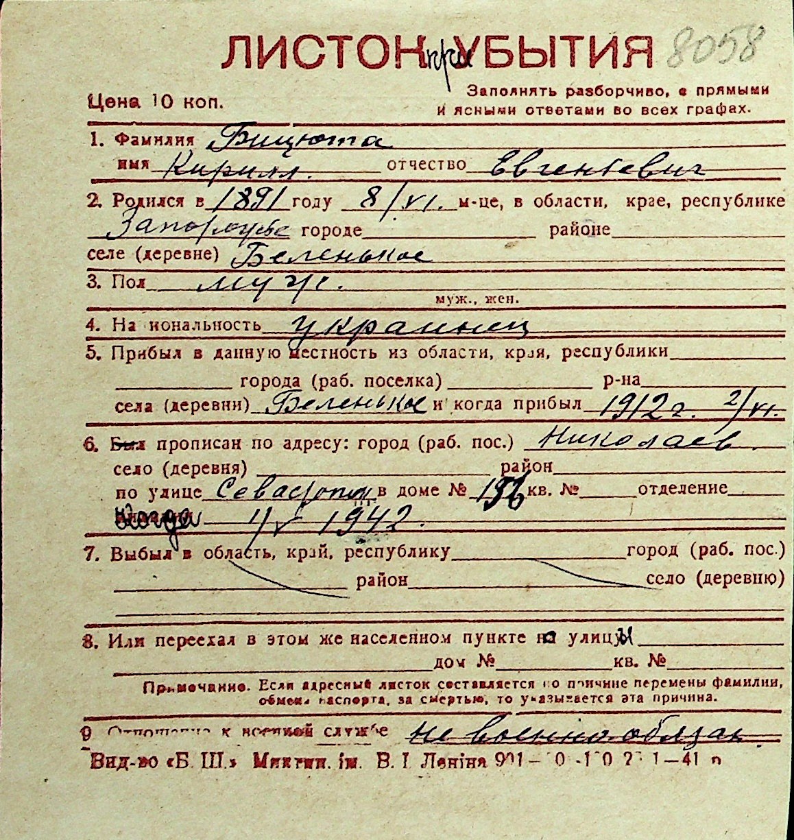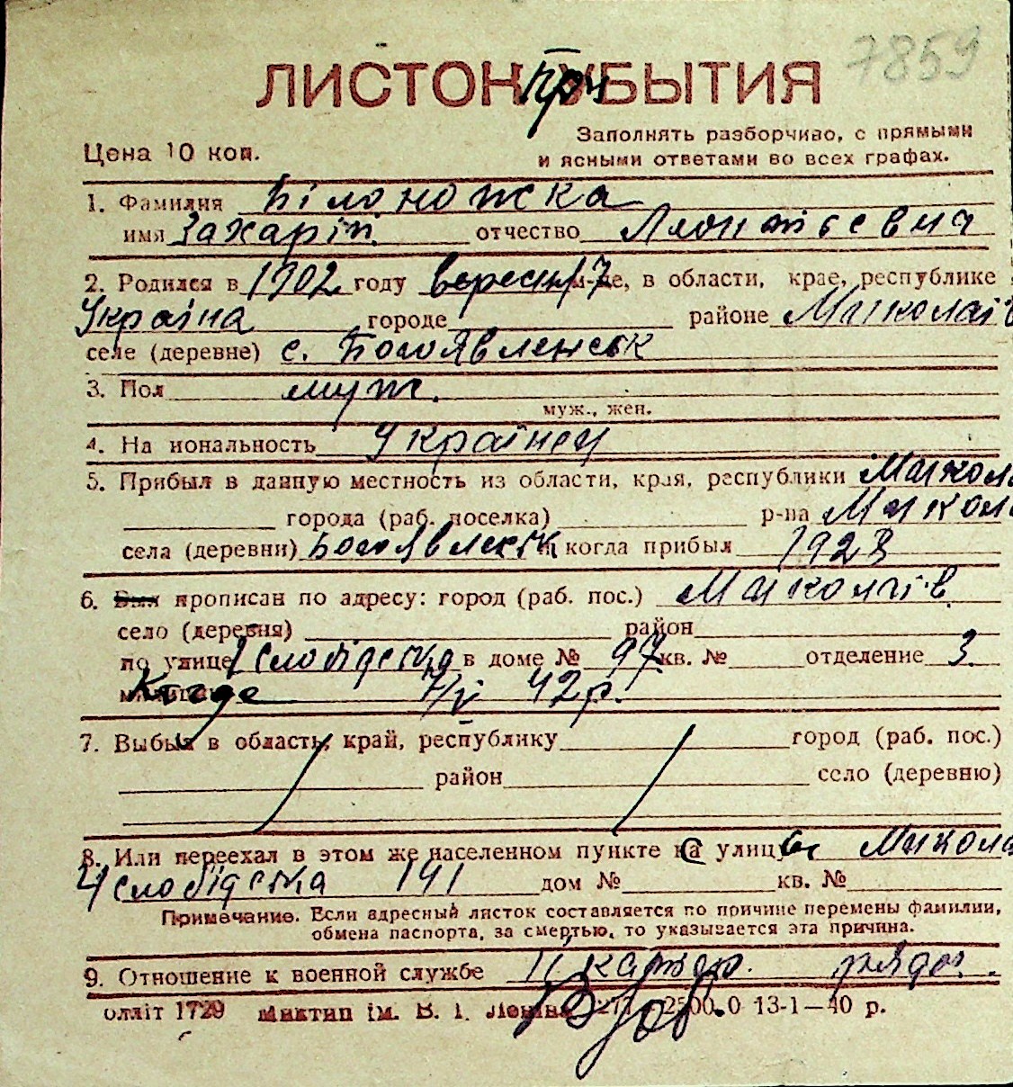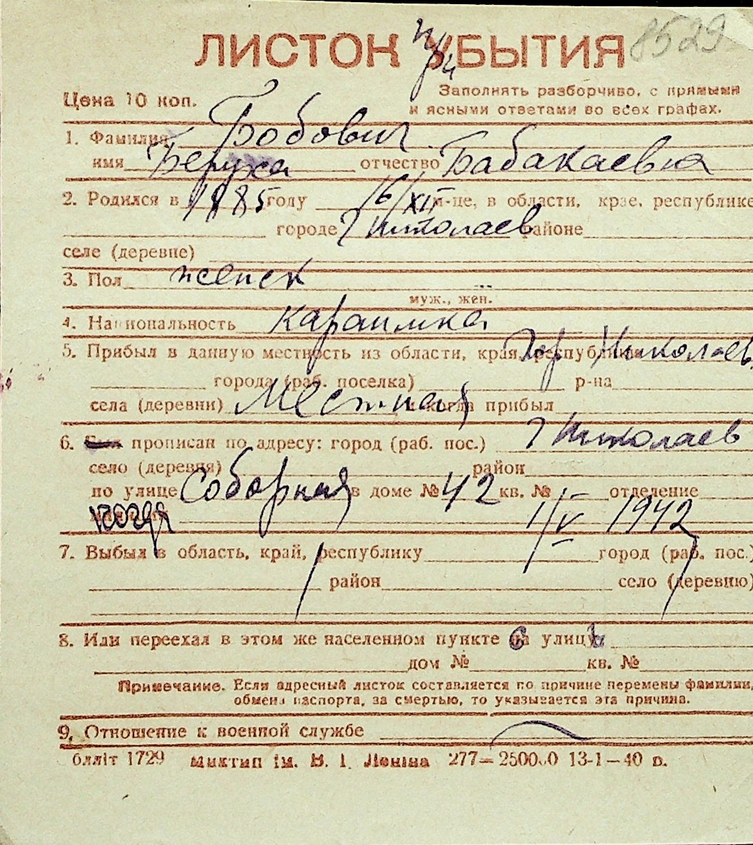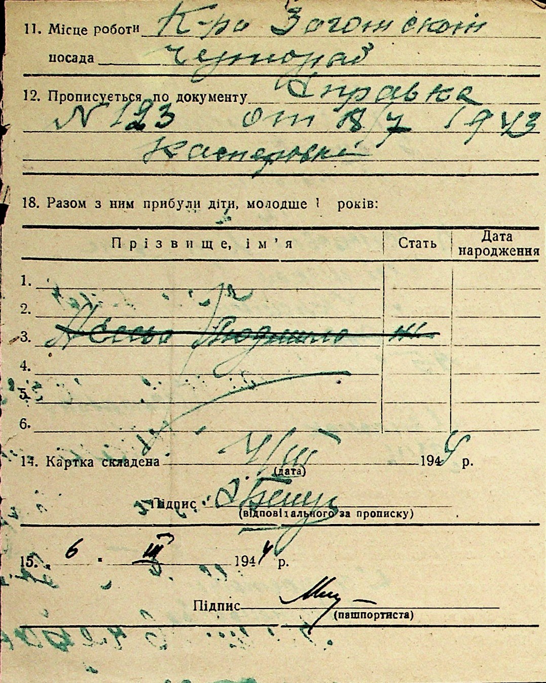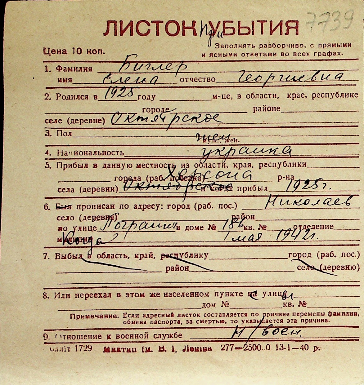 ◦ ◦ Перелік карток на осіб, які мешкали у м. Миколаїв у період окупації 1941–1944 років