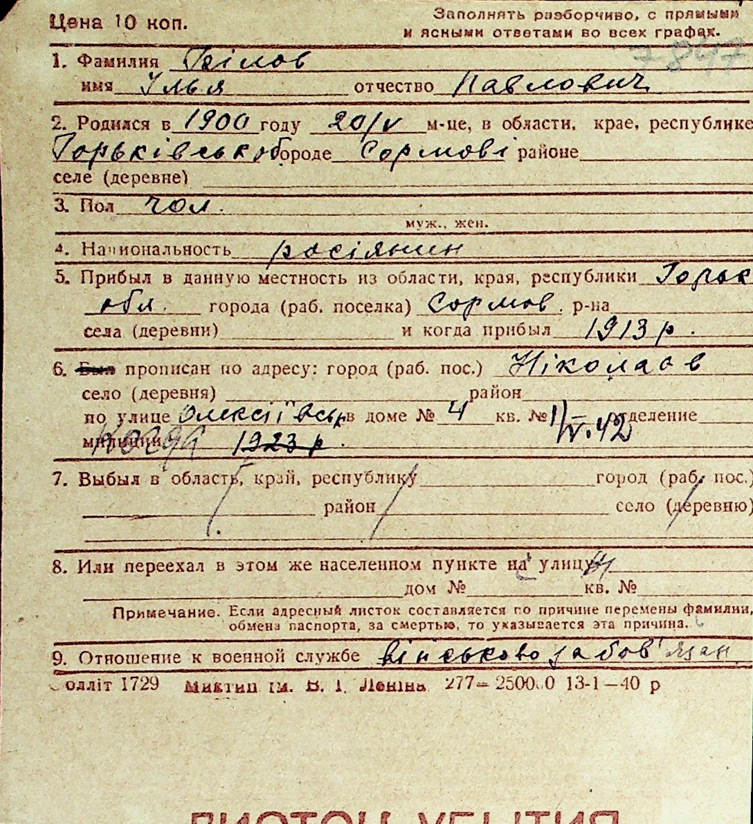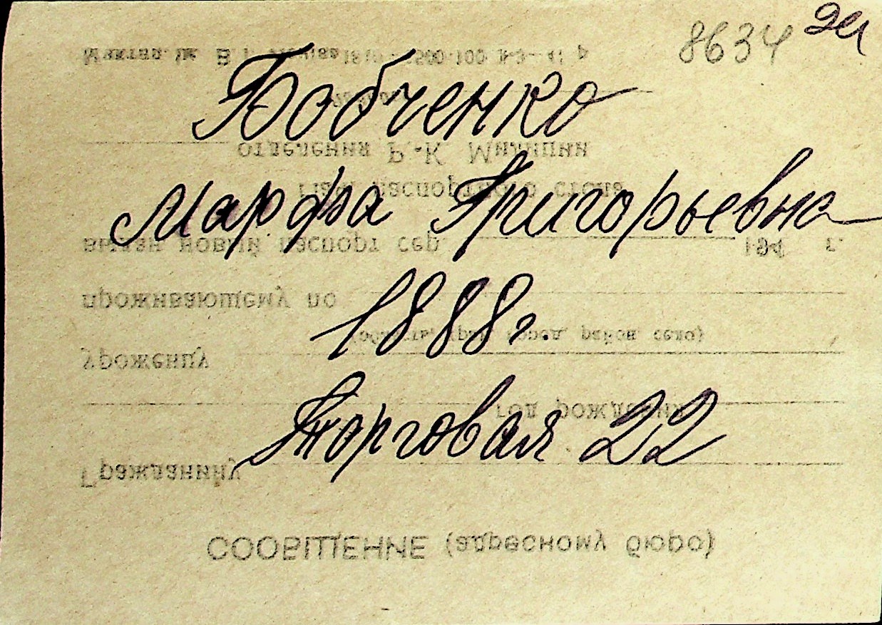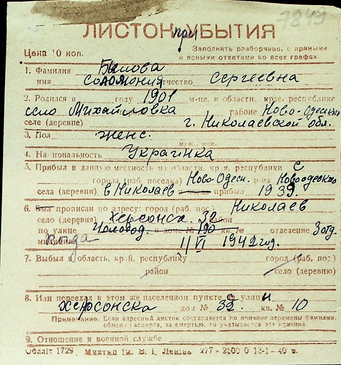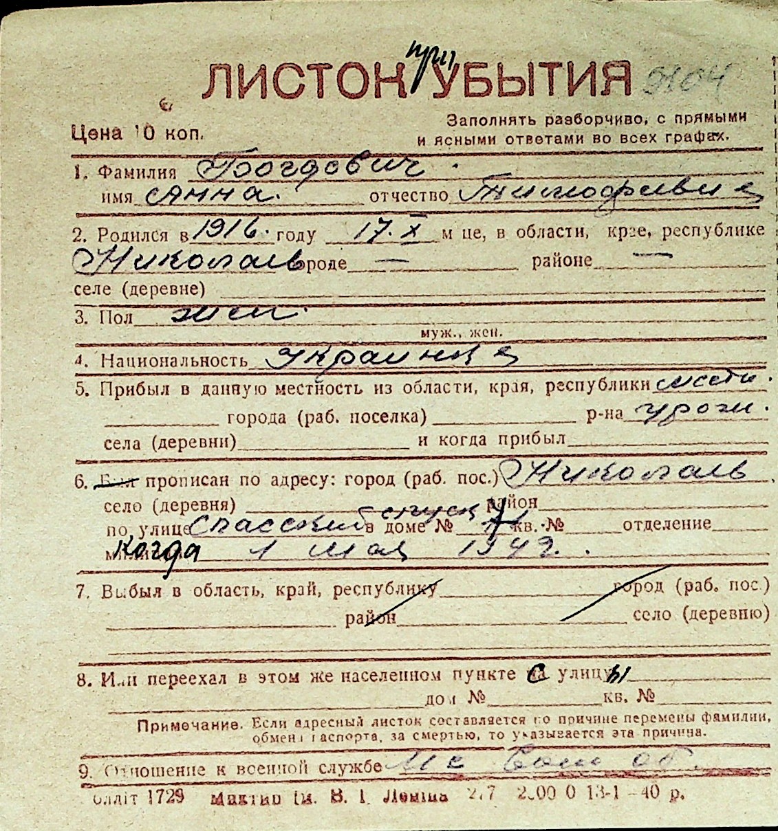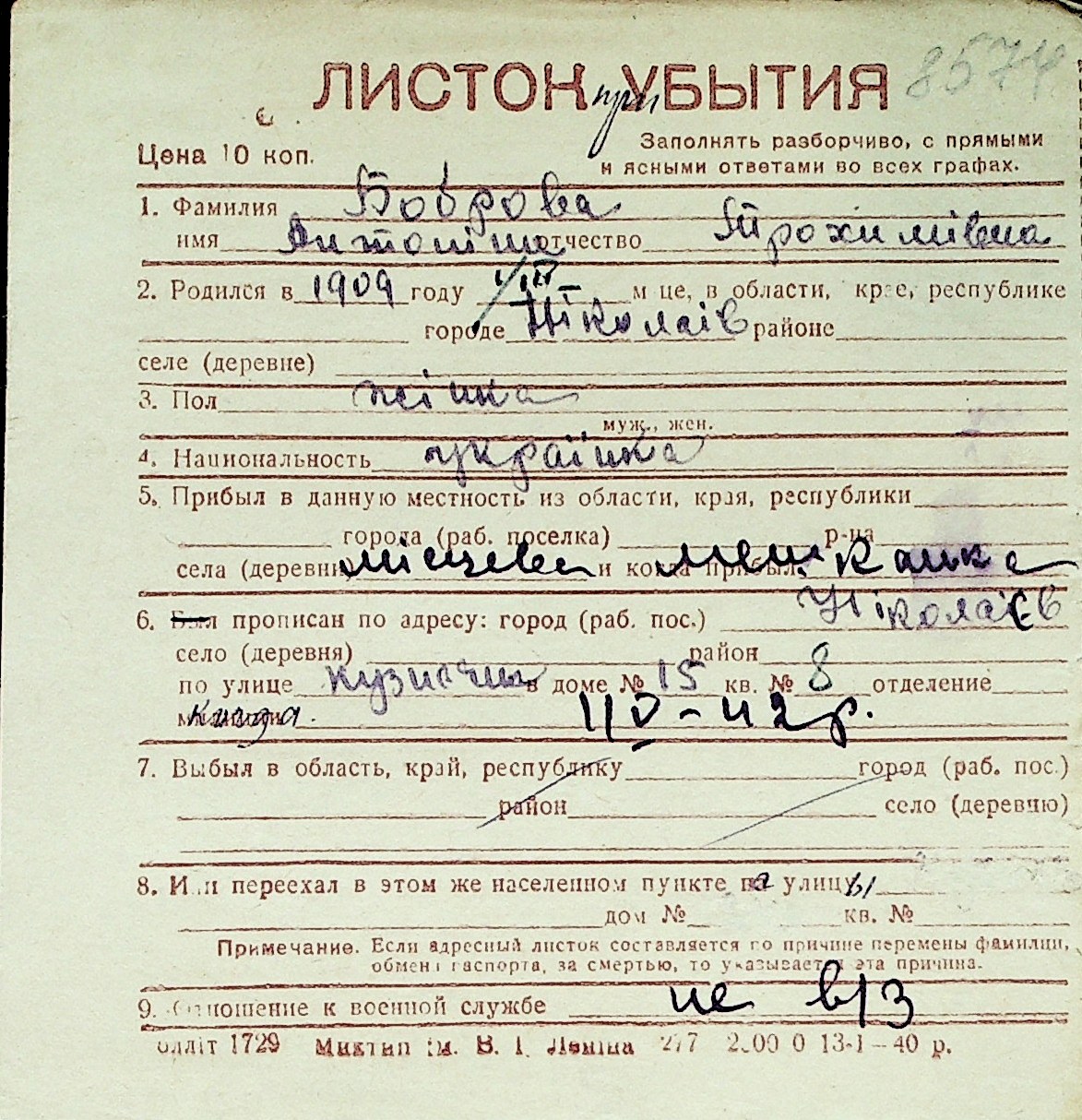 ◦ ◦ Перелік карток на осіб, які мешкали у м. Миколаїв у період окупації 1941–1944 років