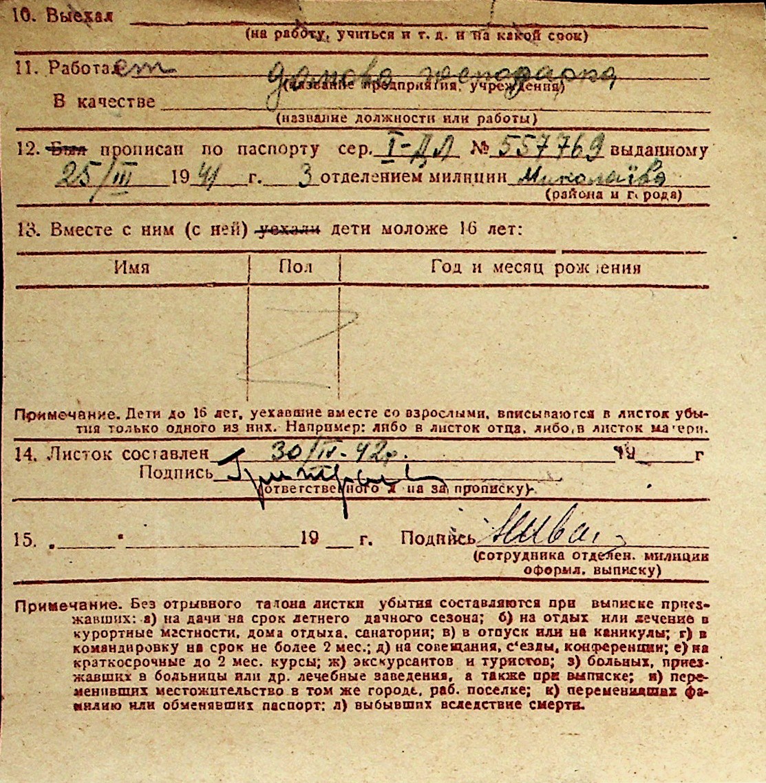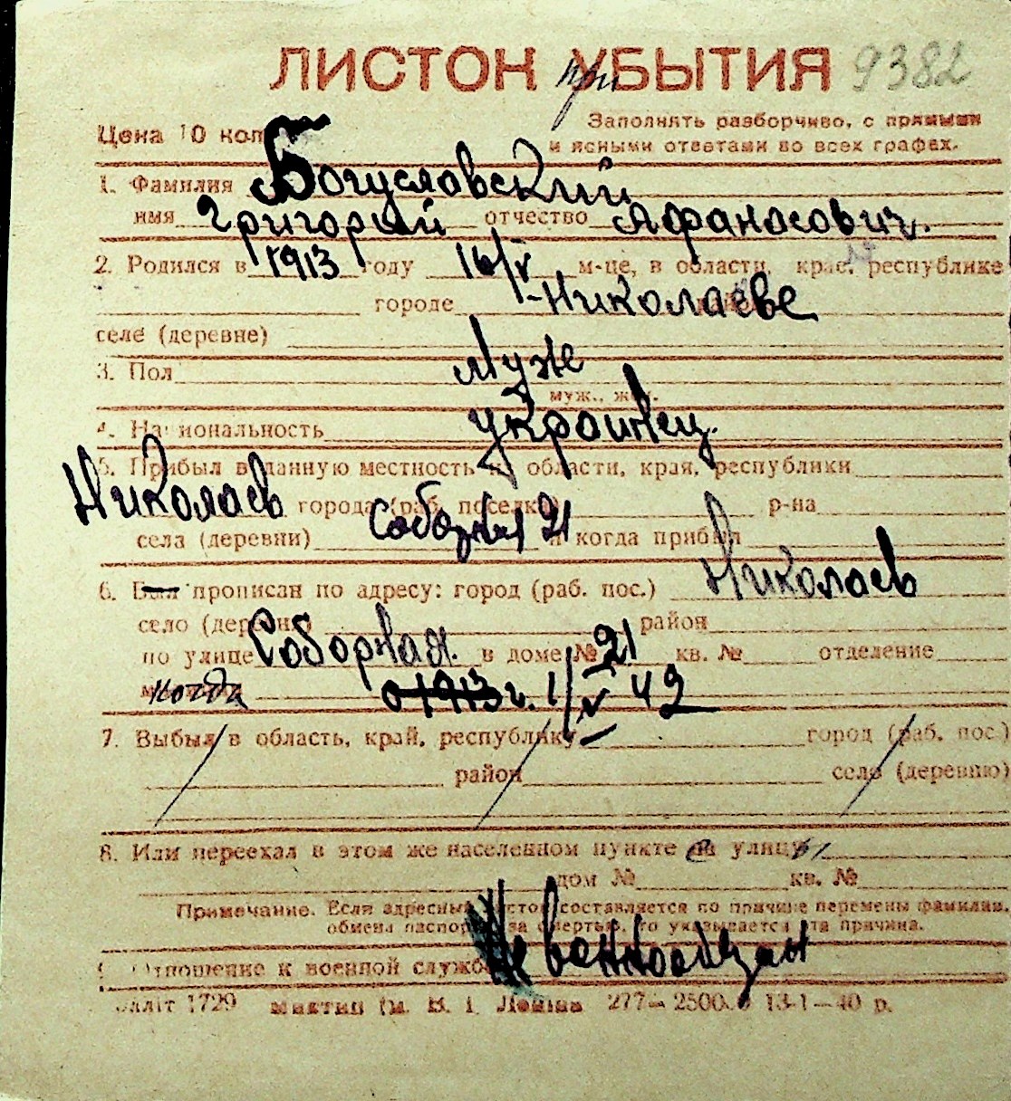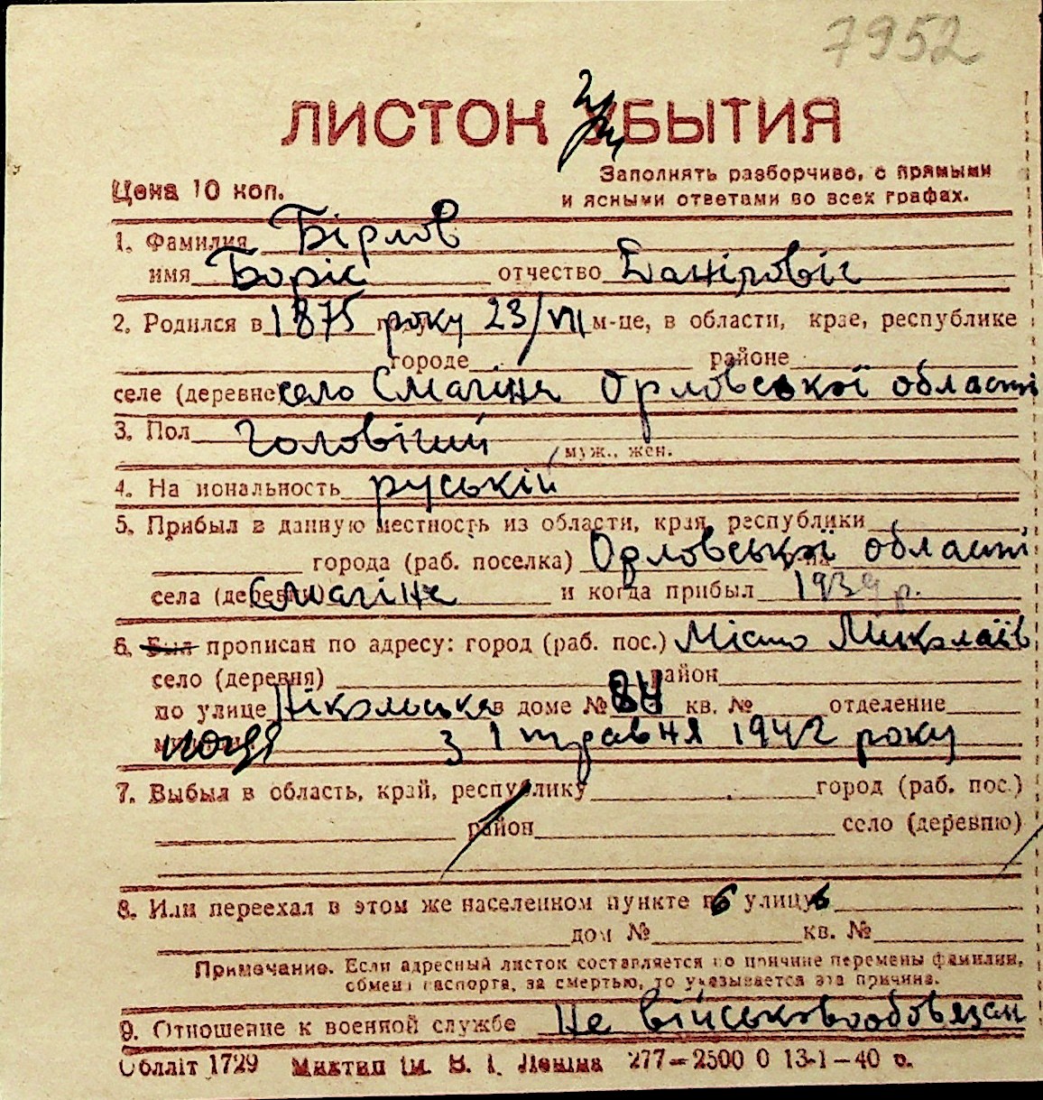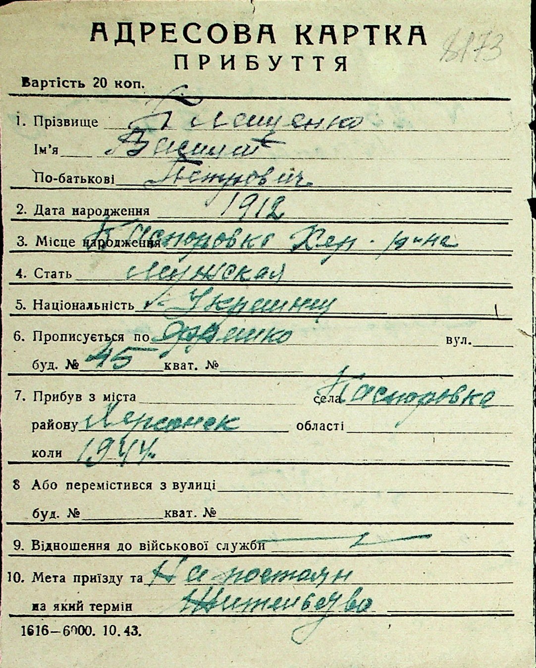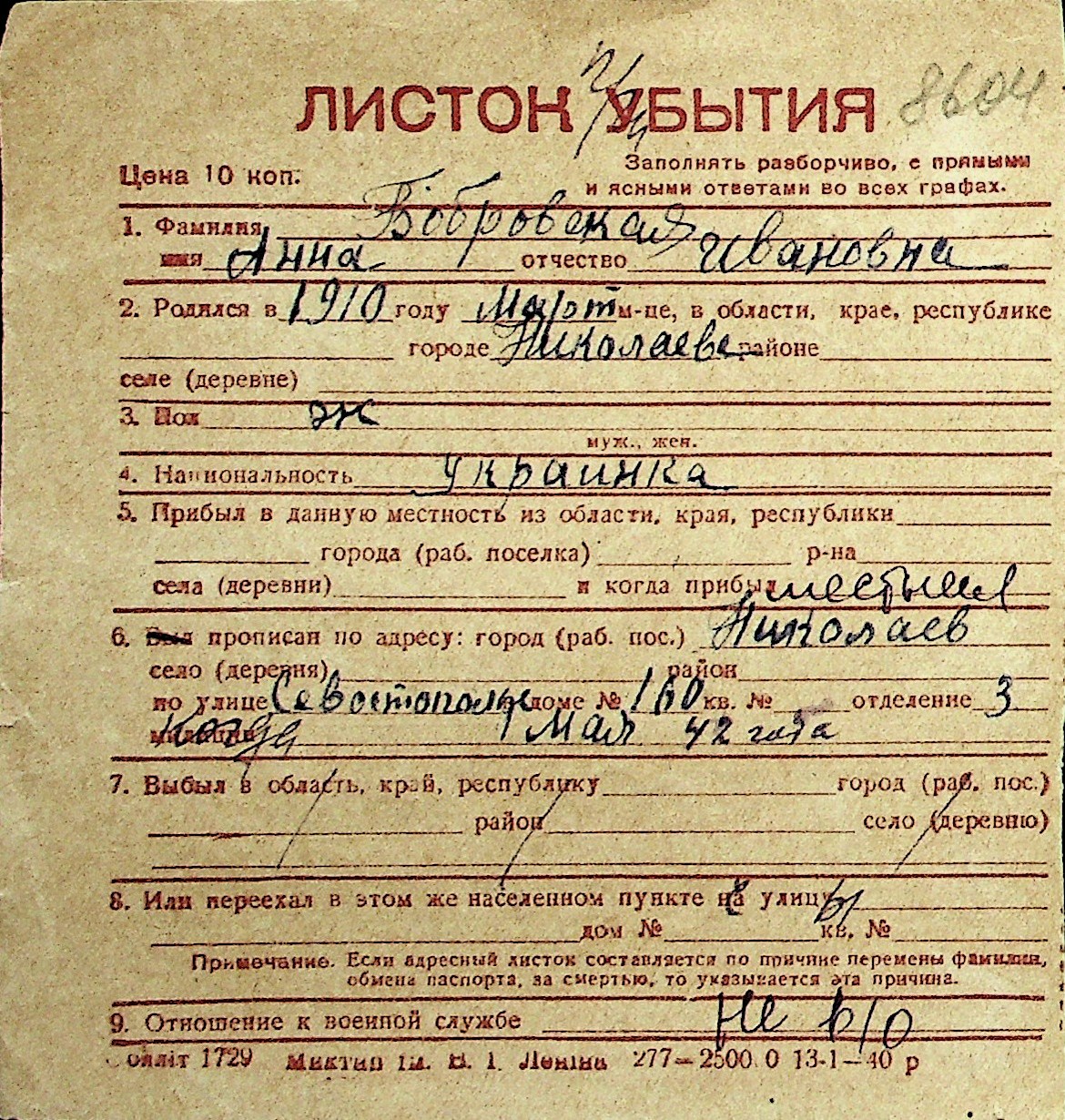 ◦ ◦ Перелік карток на осіб, які мешкали у м. Миколаїв у період окупації 1941–1944 років