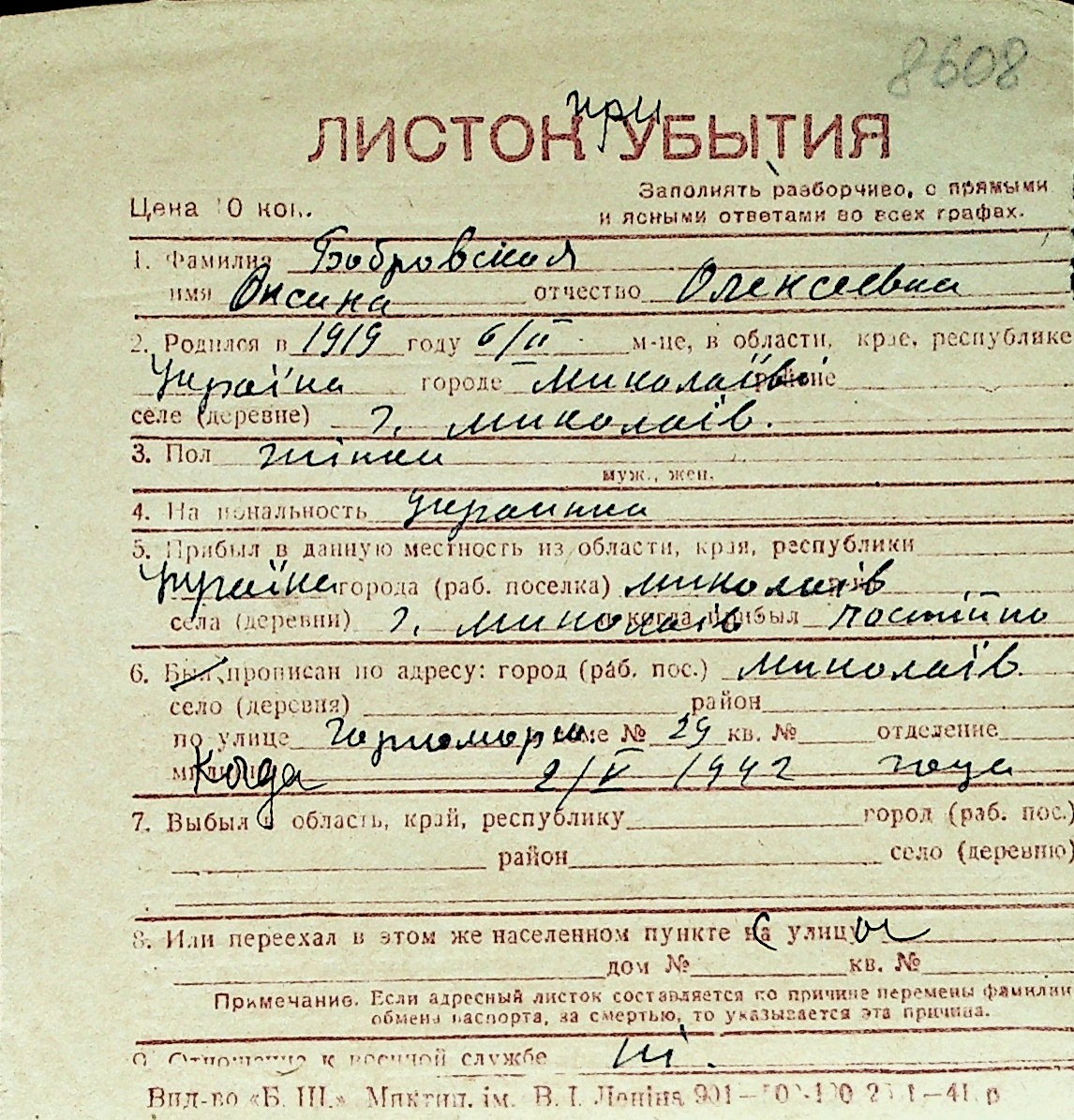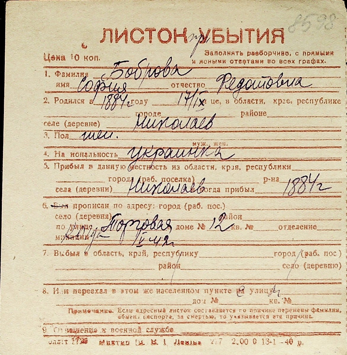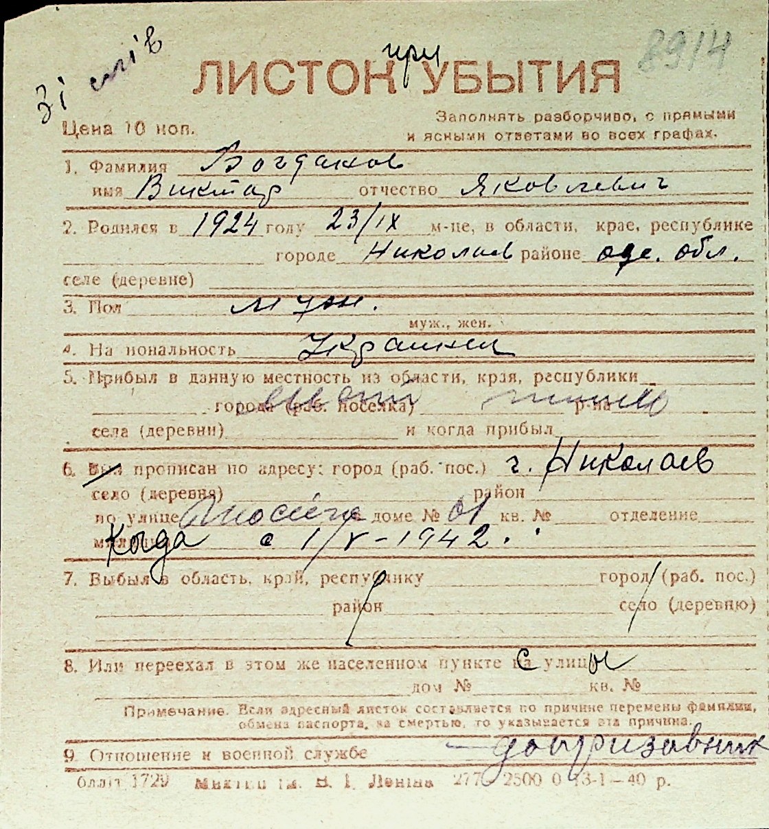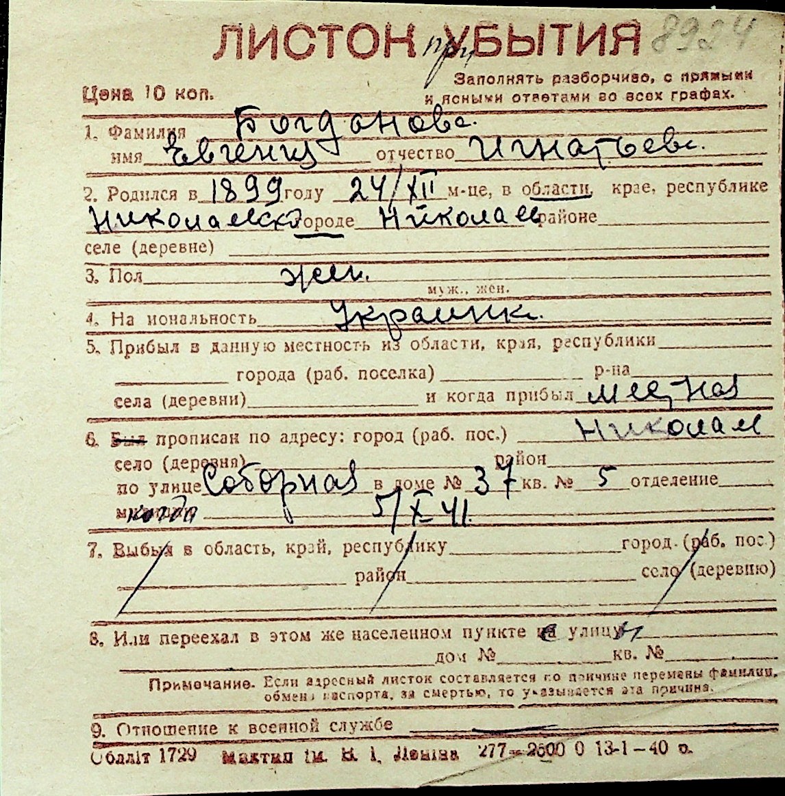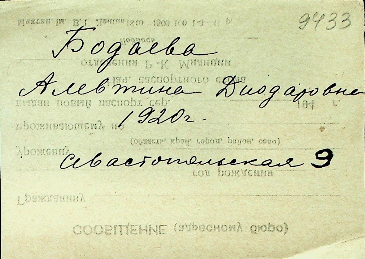 ◦ ◦ Перелік карток на осіб, які мешкали у м. Миколаїв у період окупації 1941–1944 років