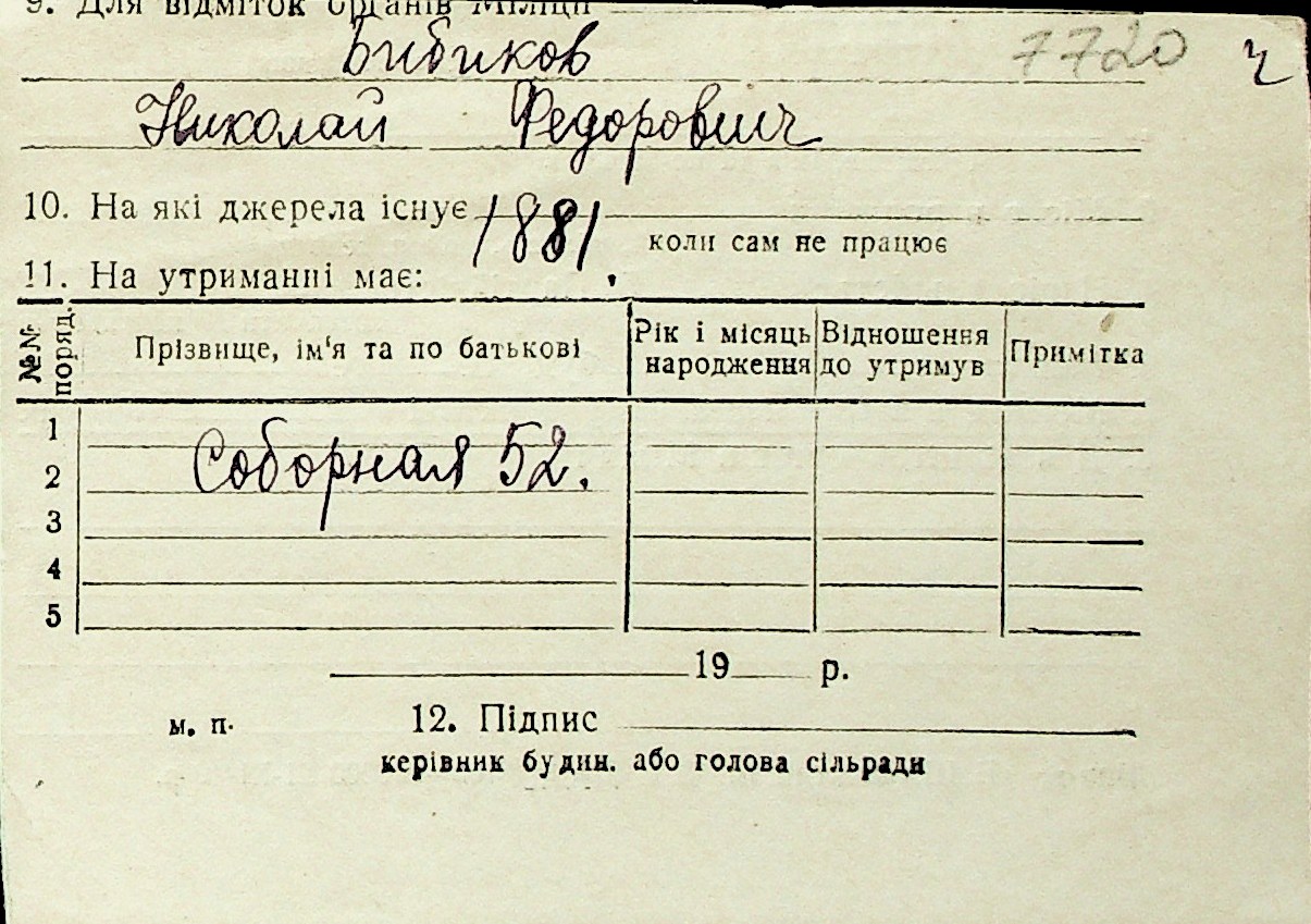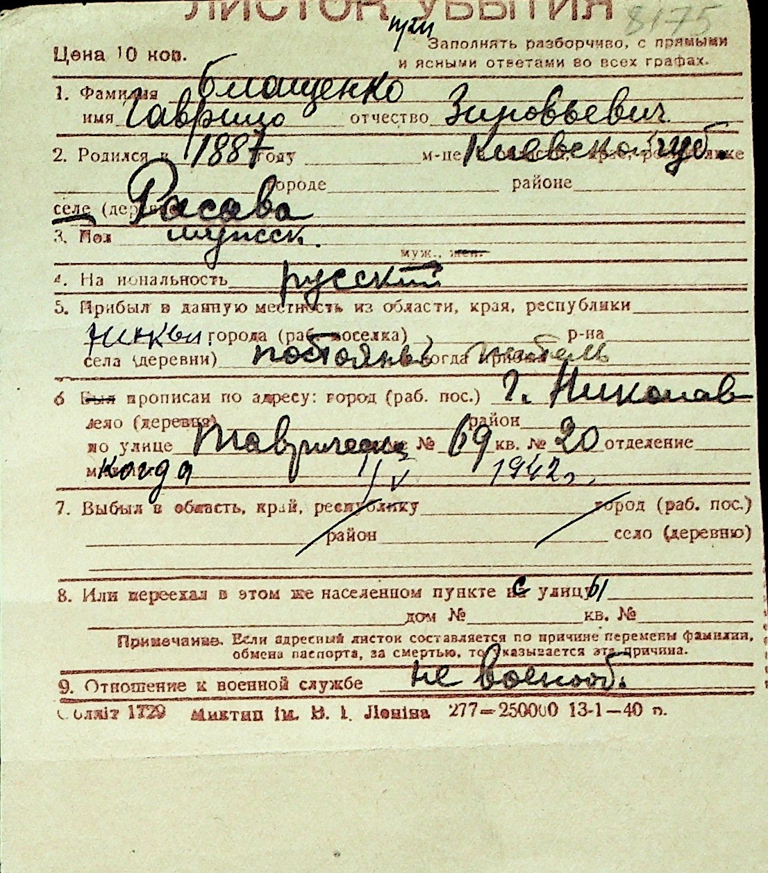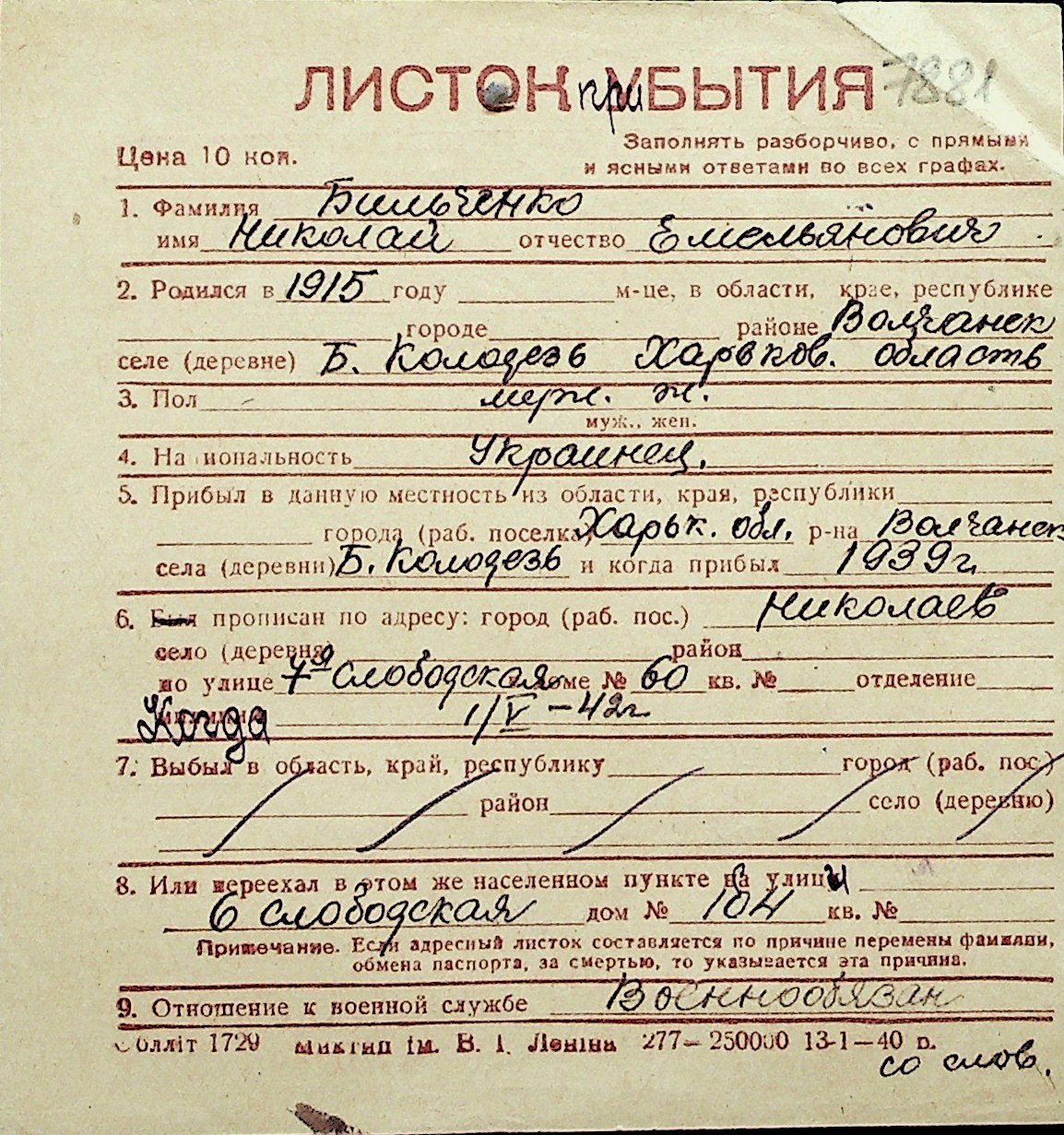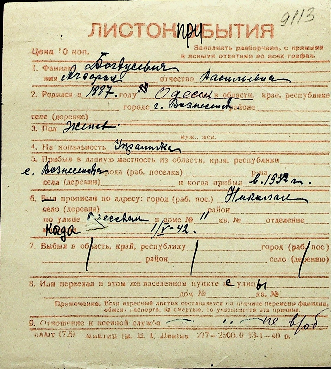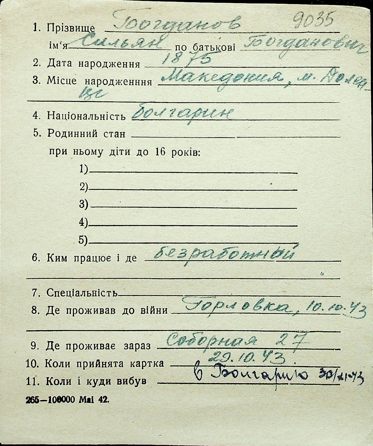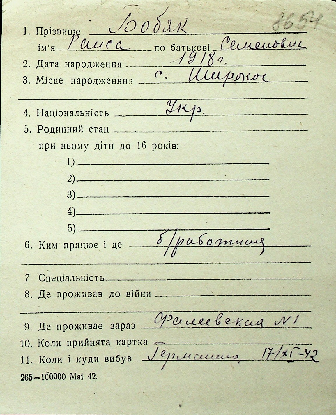 ◦ ◦ Перелік карток на осіб, які мешкали у м. Миколаїв у період окупації 1941–1944 років