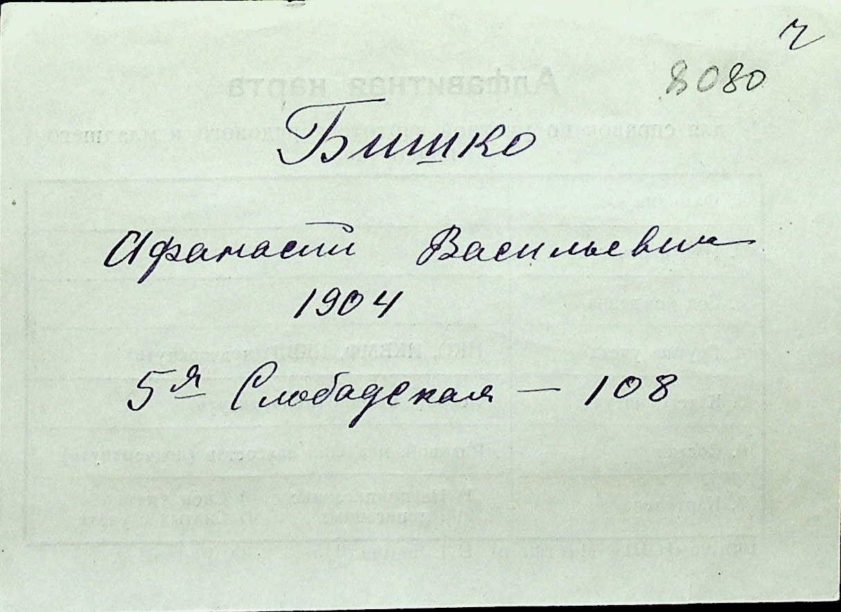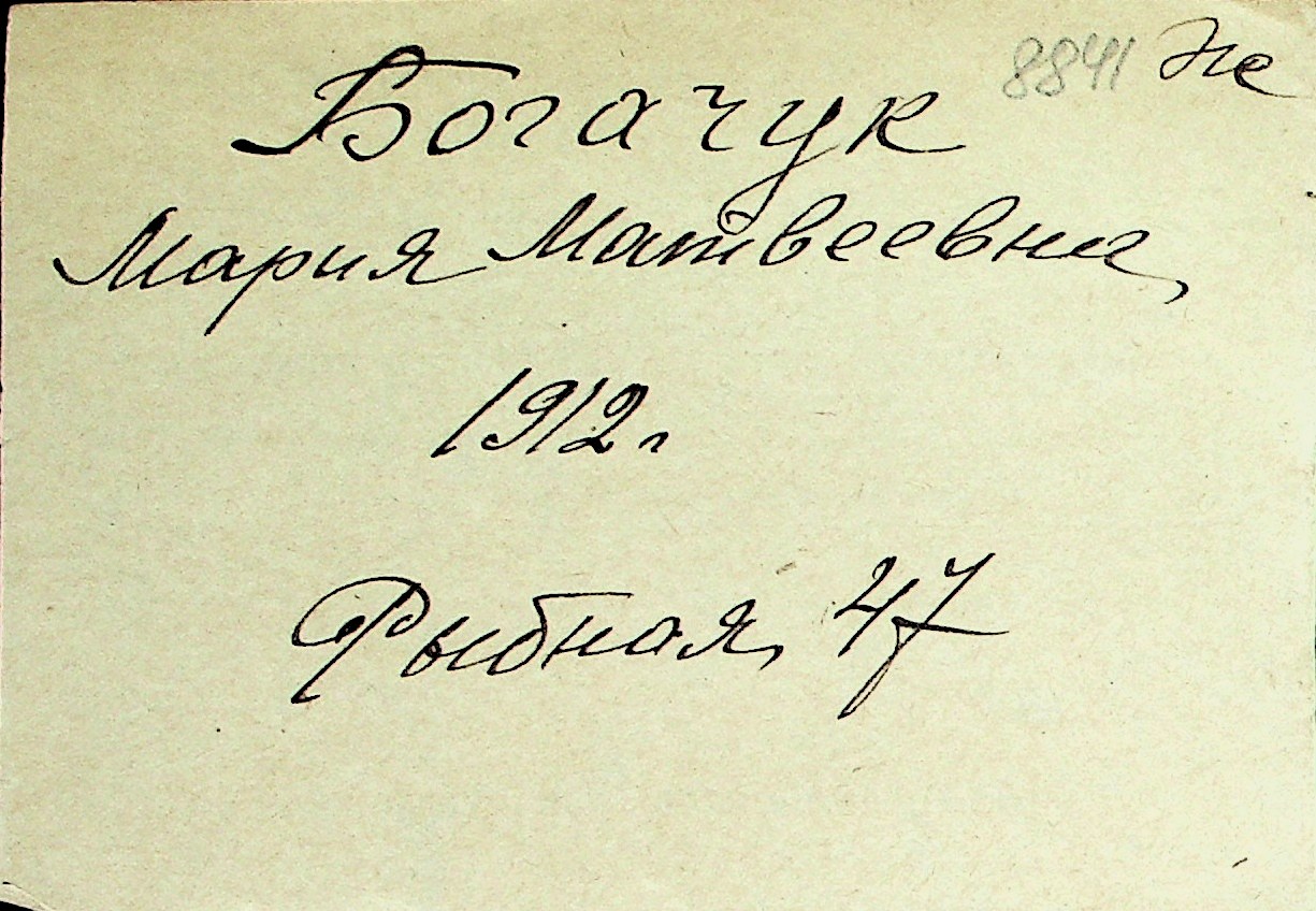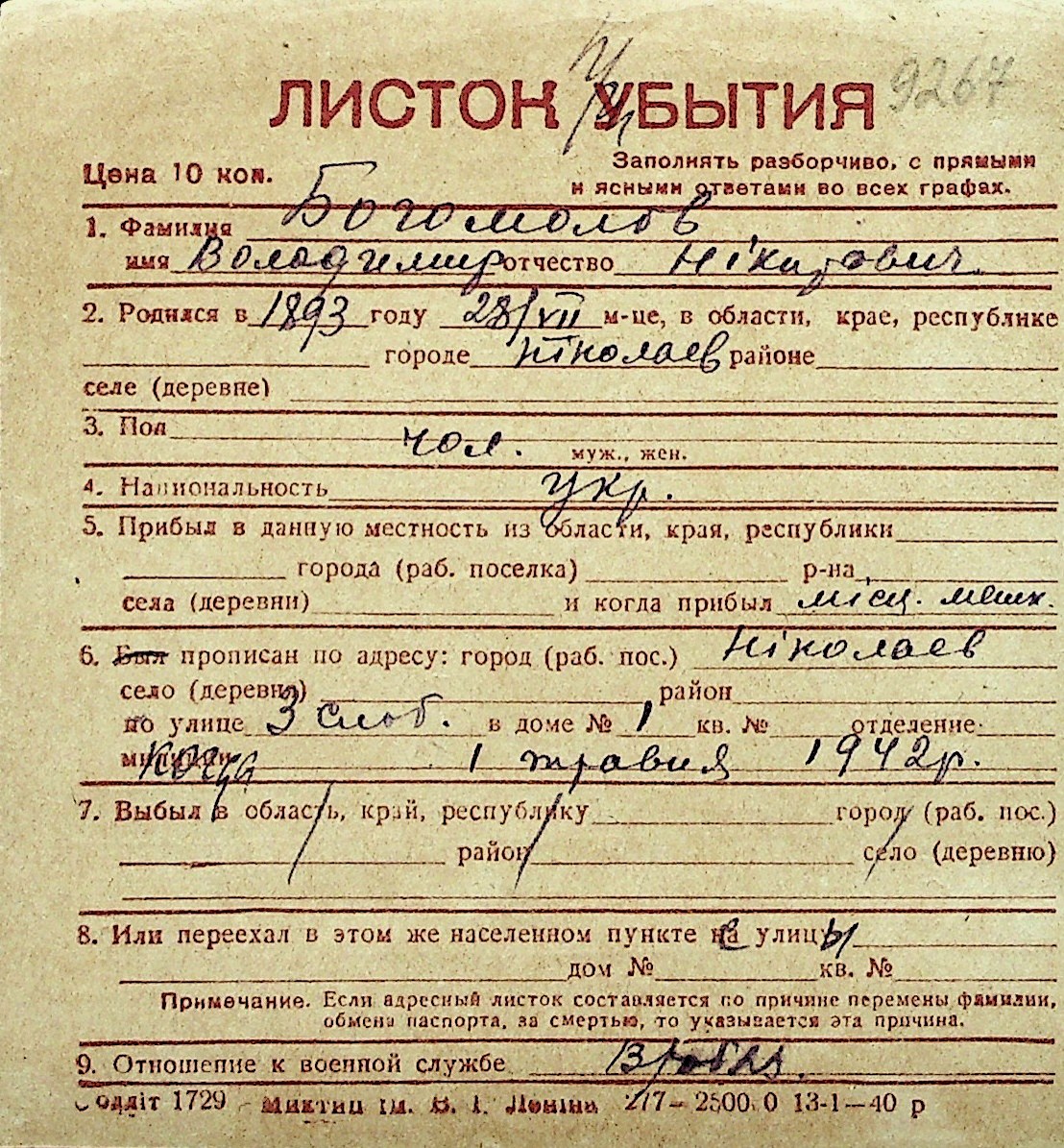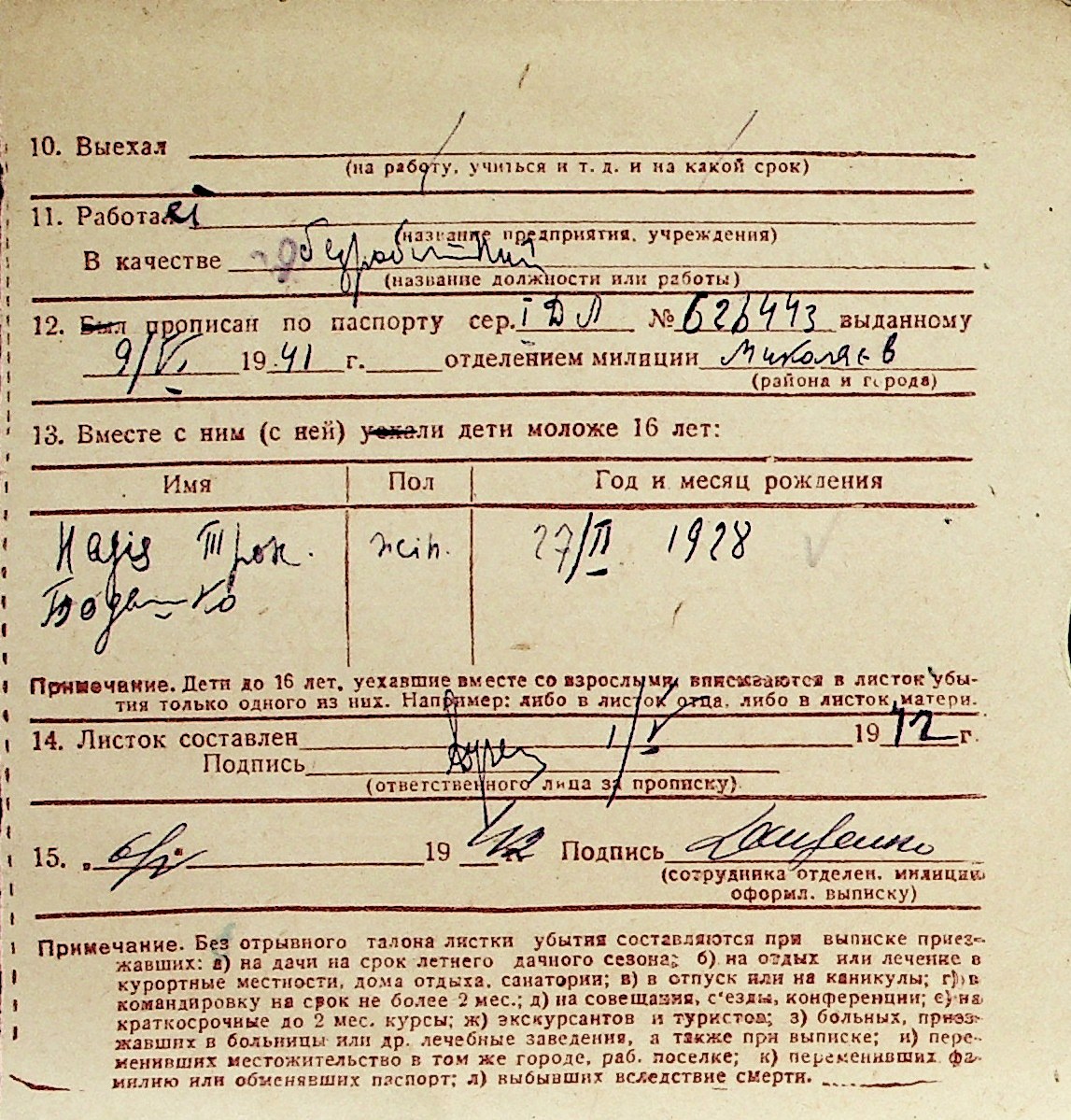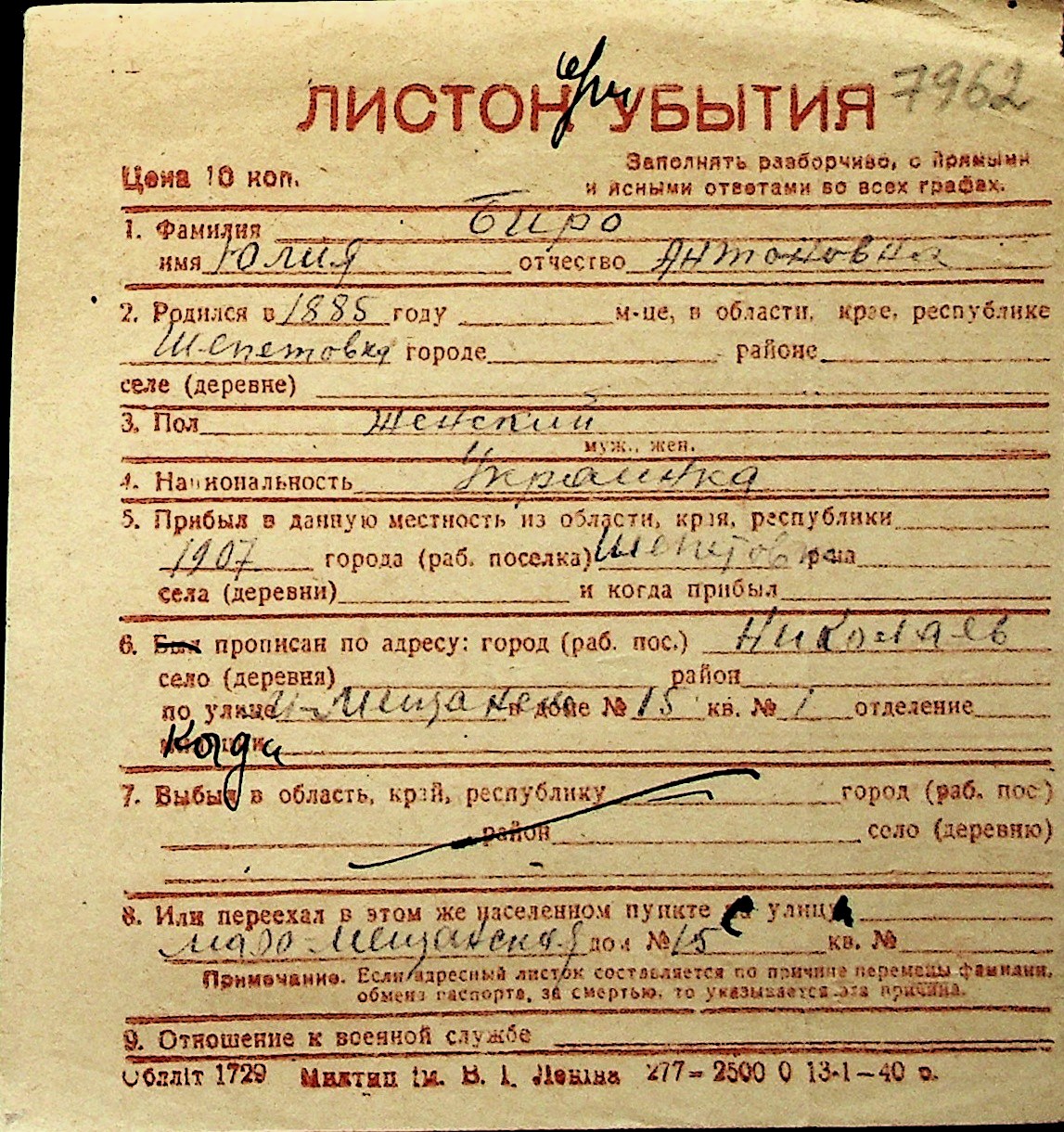 ◦ ◦ Перелік карток на осіб, які мешкали у м. Миколаїв у період окупації 1941–1944 років