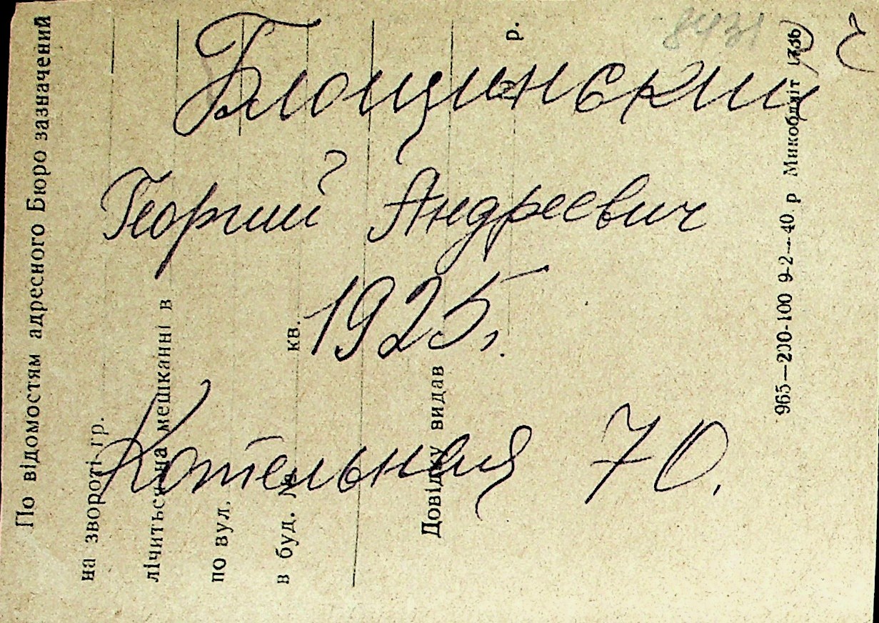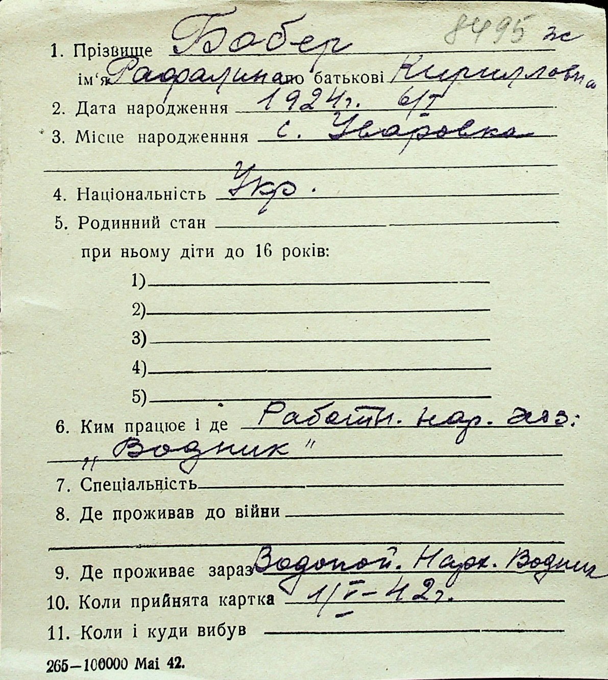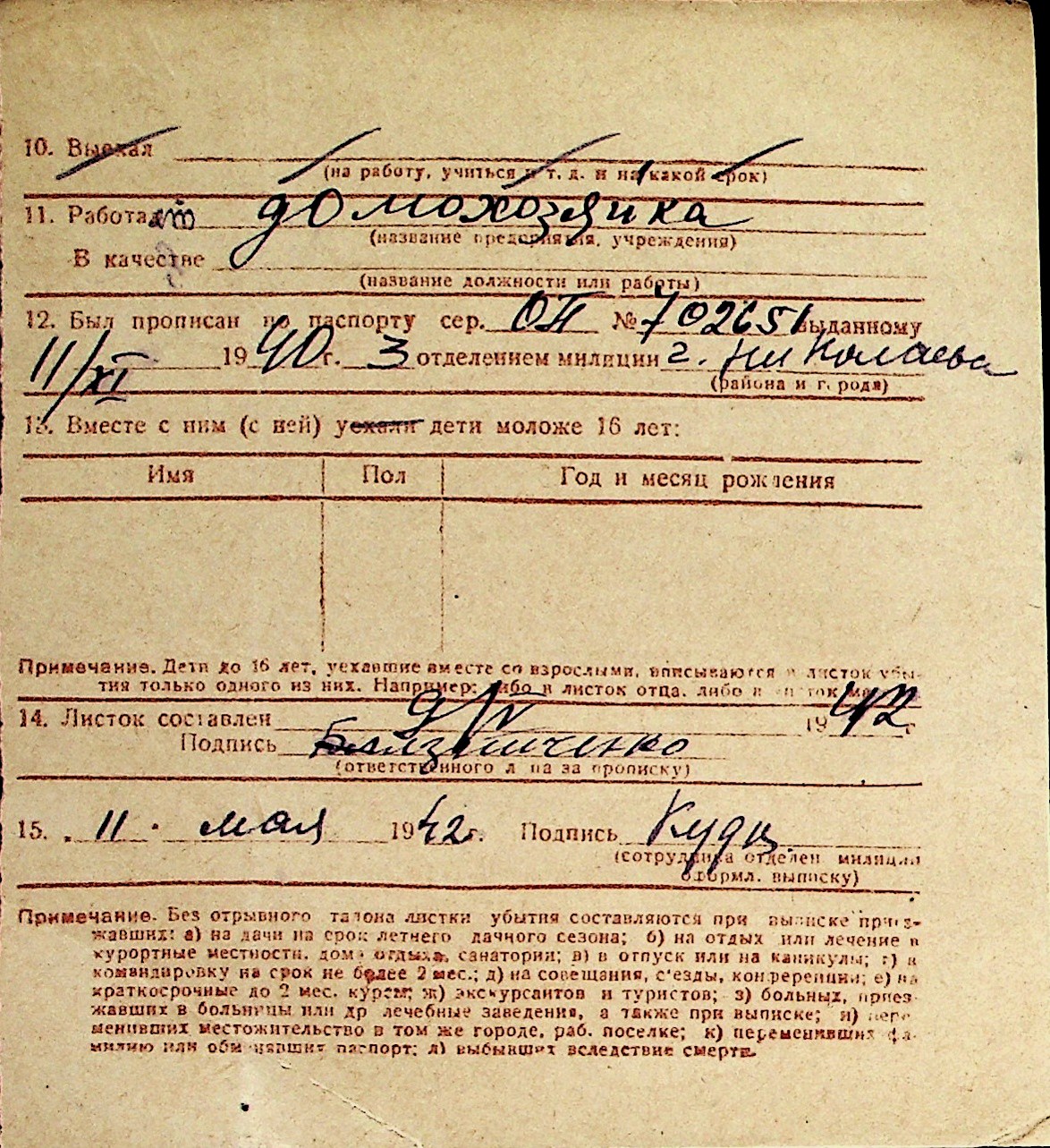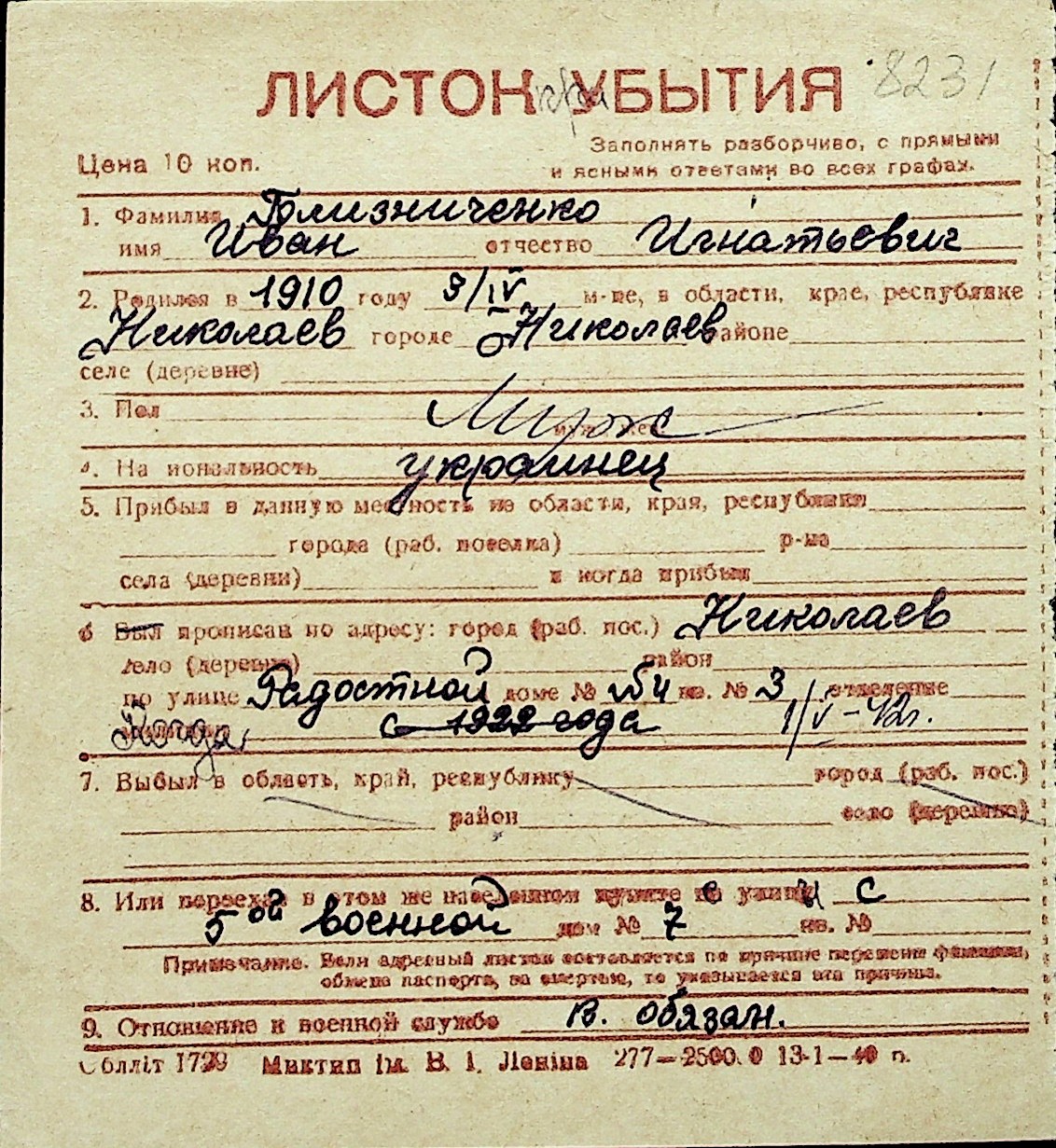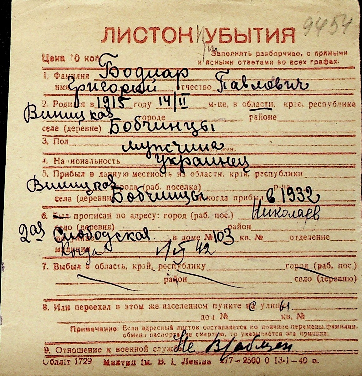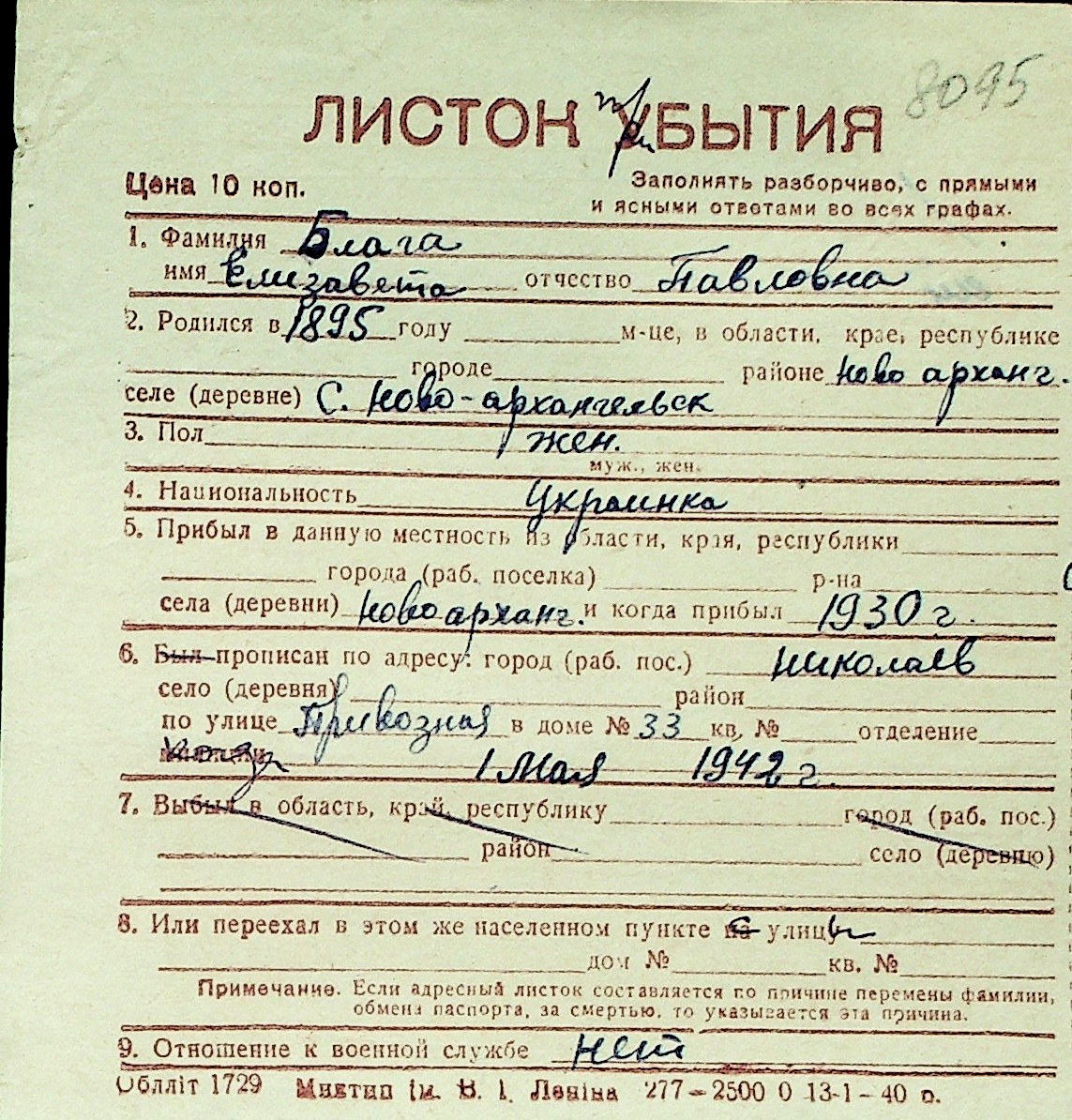 ◦ ◦ Перелік карток на осіб, які мешкали у м. Миколаїв у період окупації 1941–1944 років