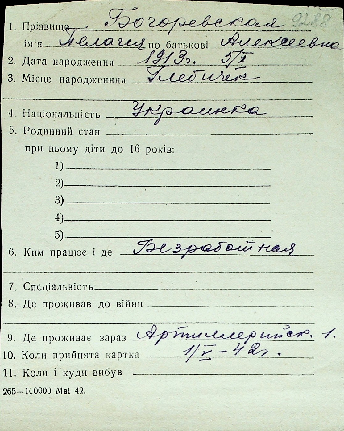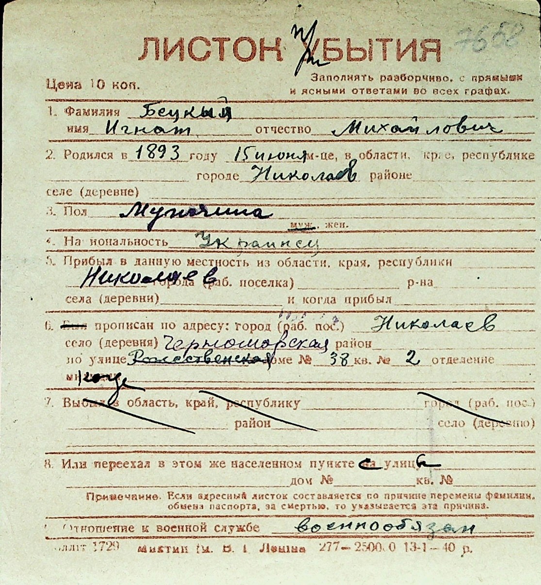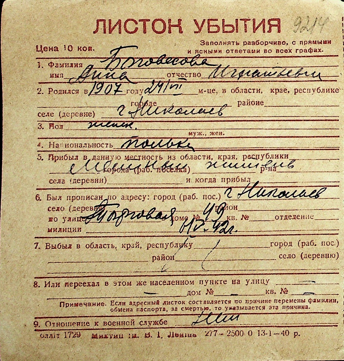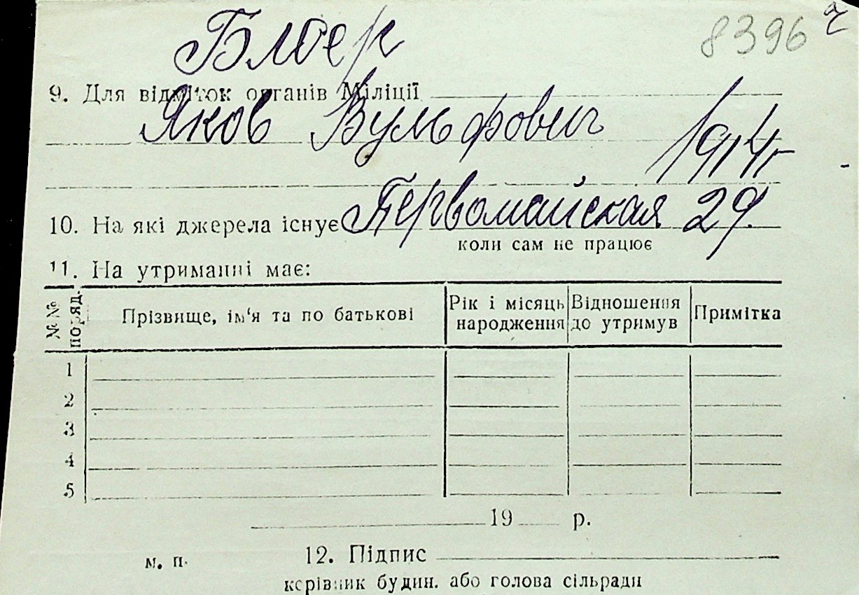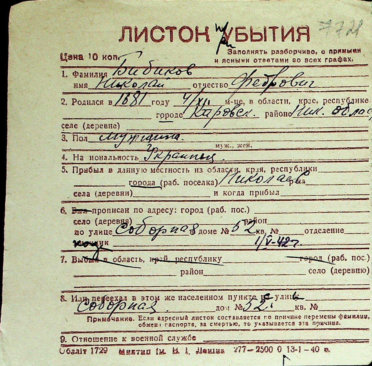 ◦ ◦ Перелік карток на осіб, які мешкали у м. Миколаїв у період окупації 1941–1944 років