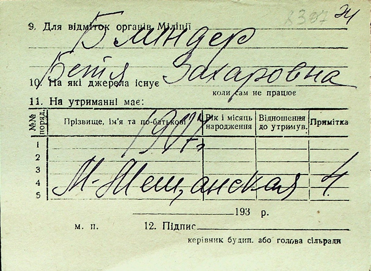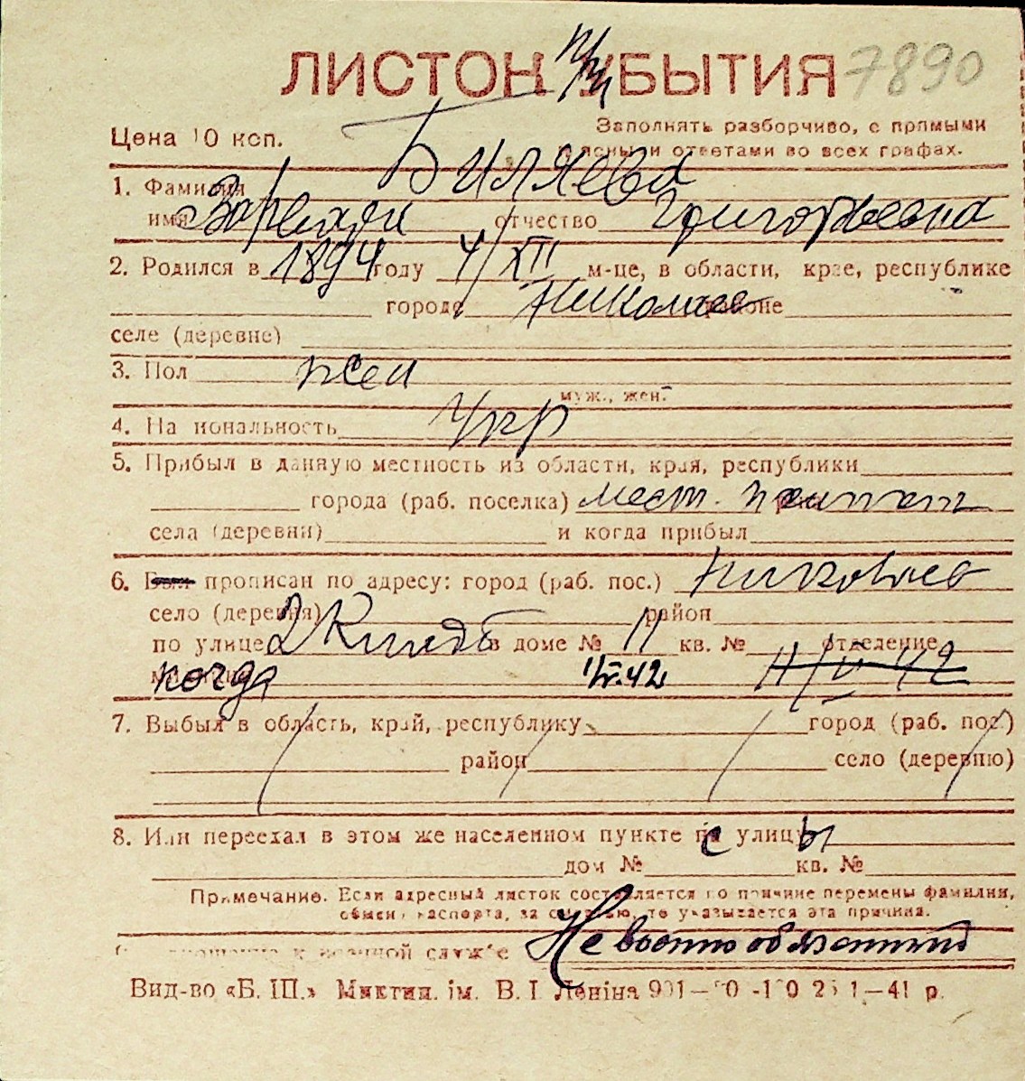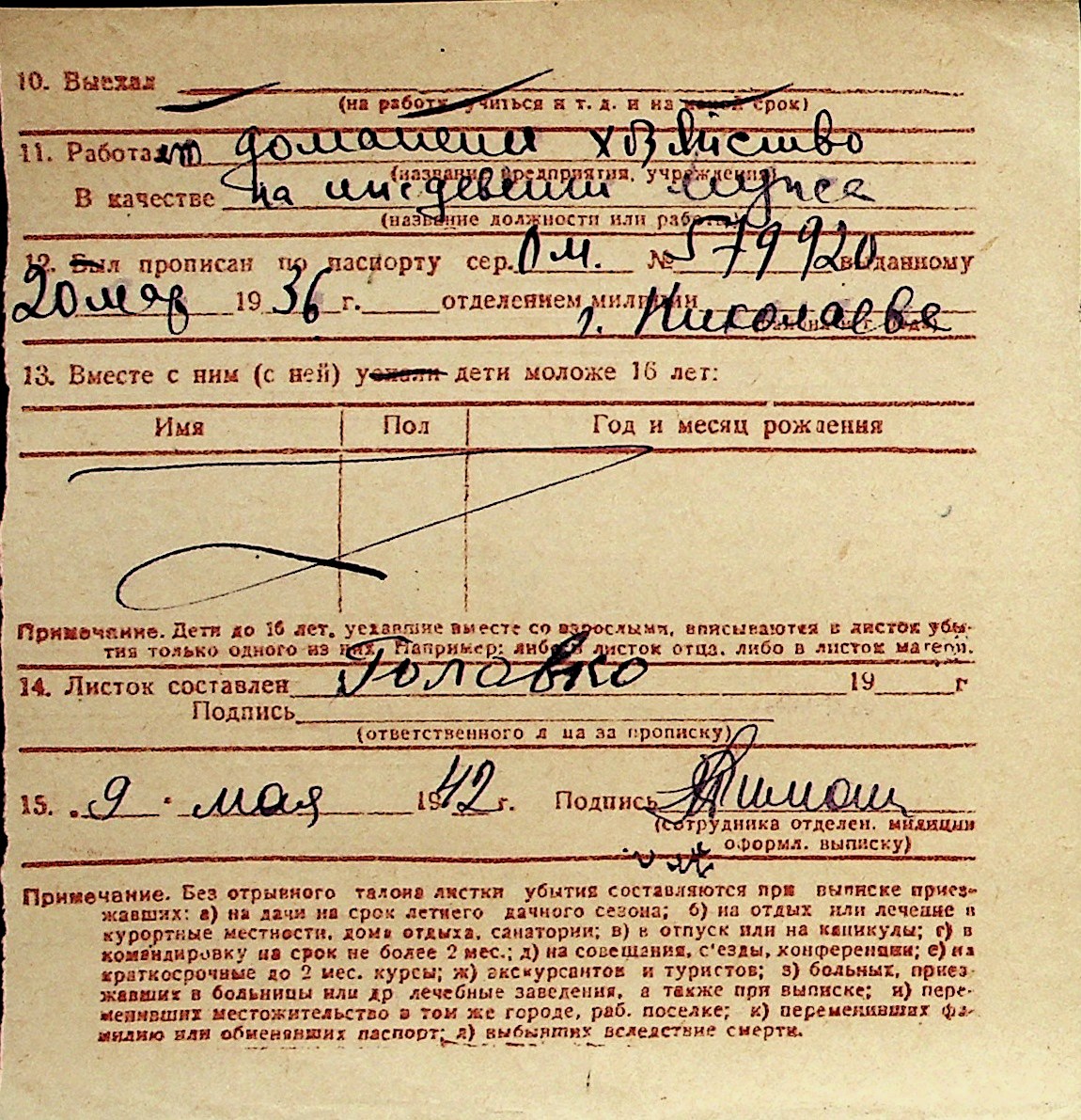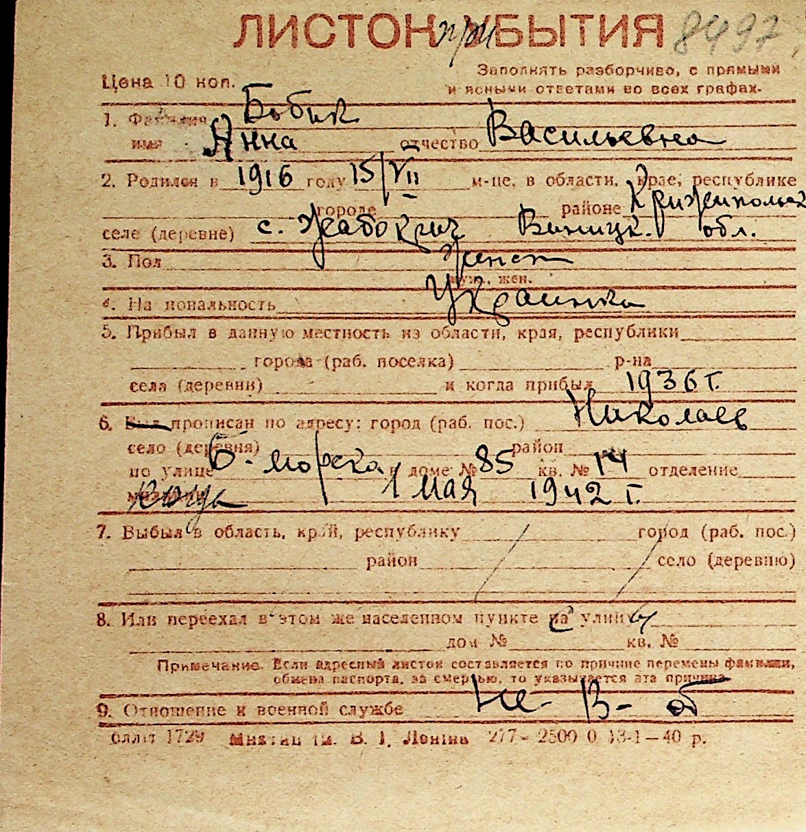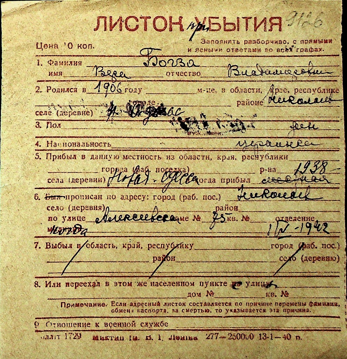 ◦ ◦ Перелік карток на осіб, які мешкали у м. Миколаїв у період окупації 1941–1944 років