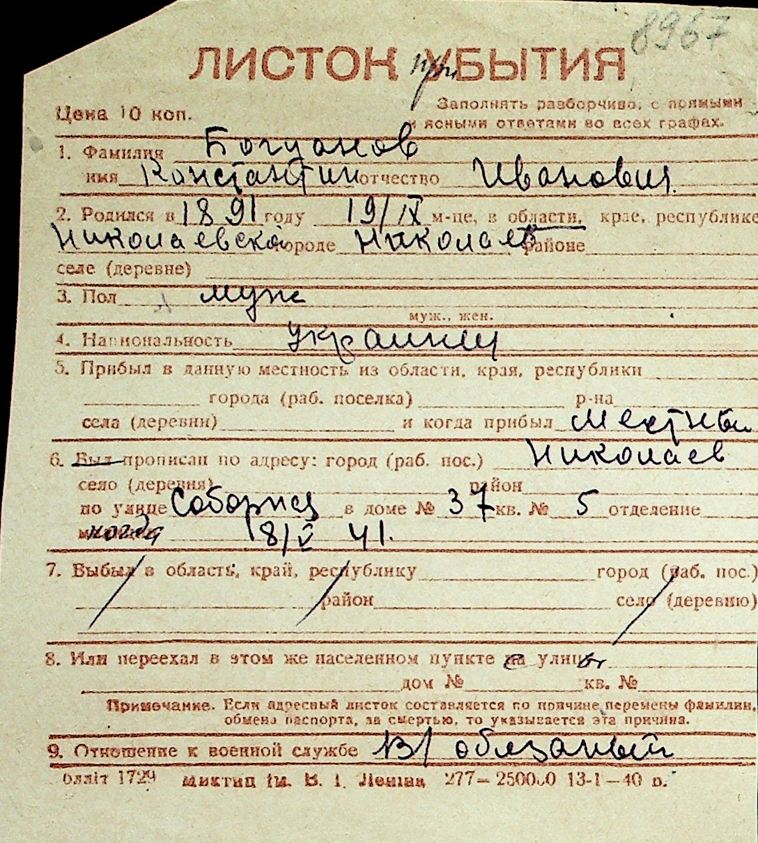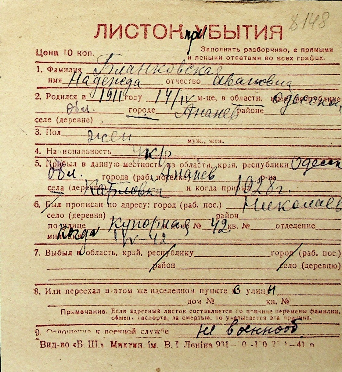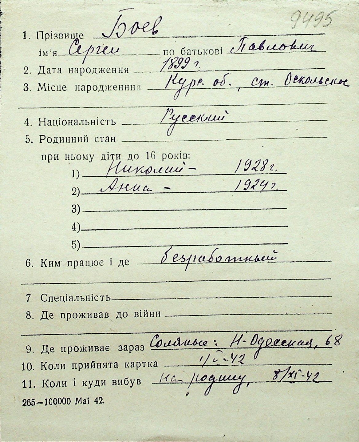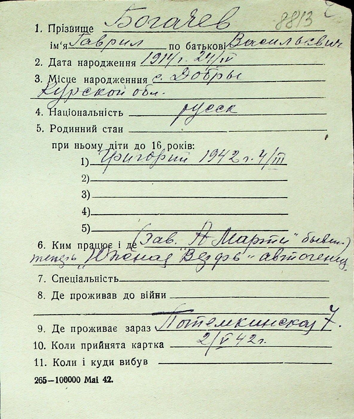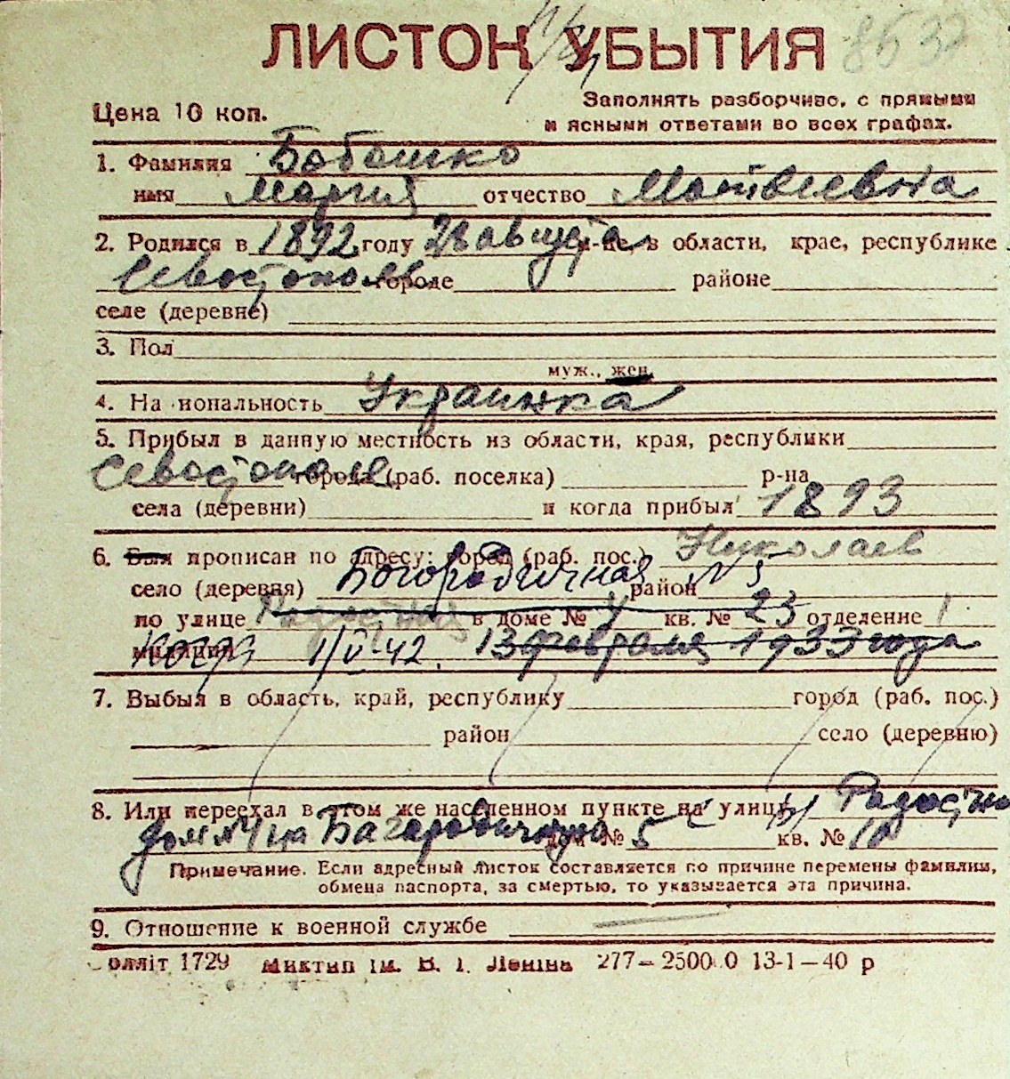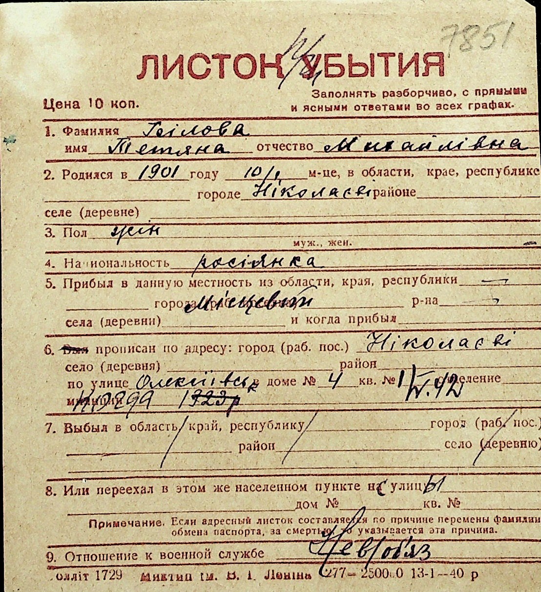 ◦ ◦ Перелік карток на осіб, які мешкали у м. Миколаїв у період окупації 1941–1944 років