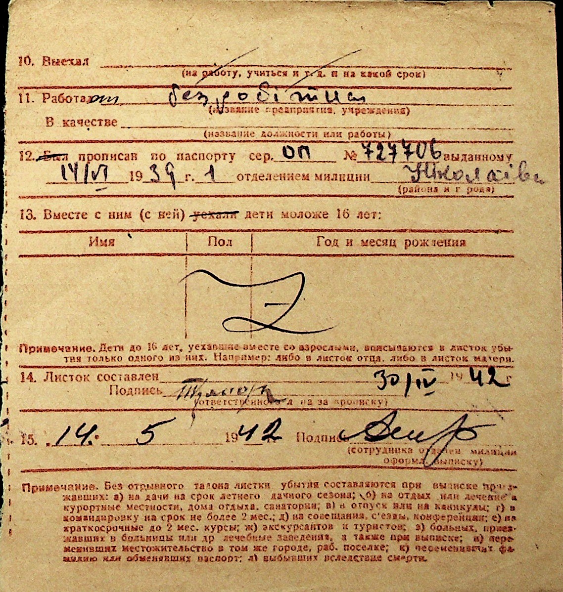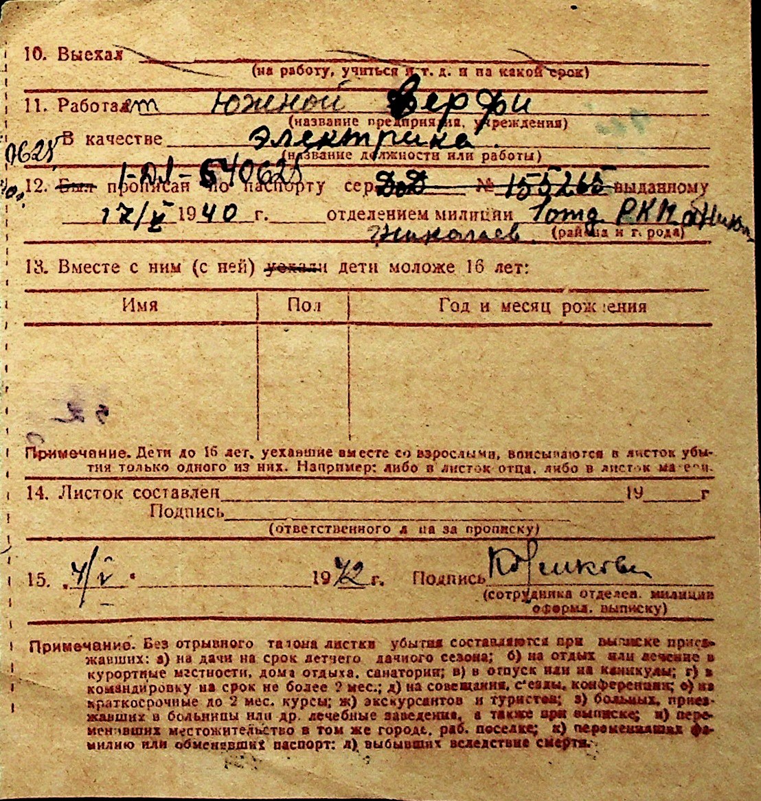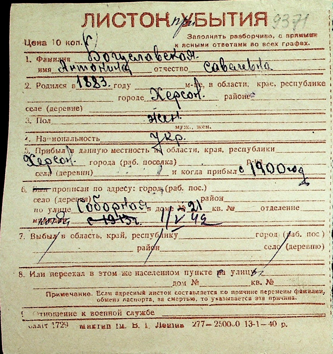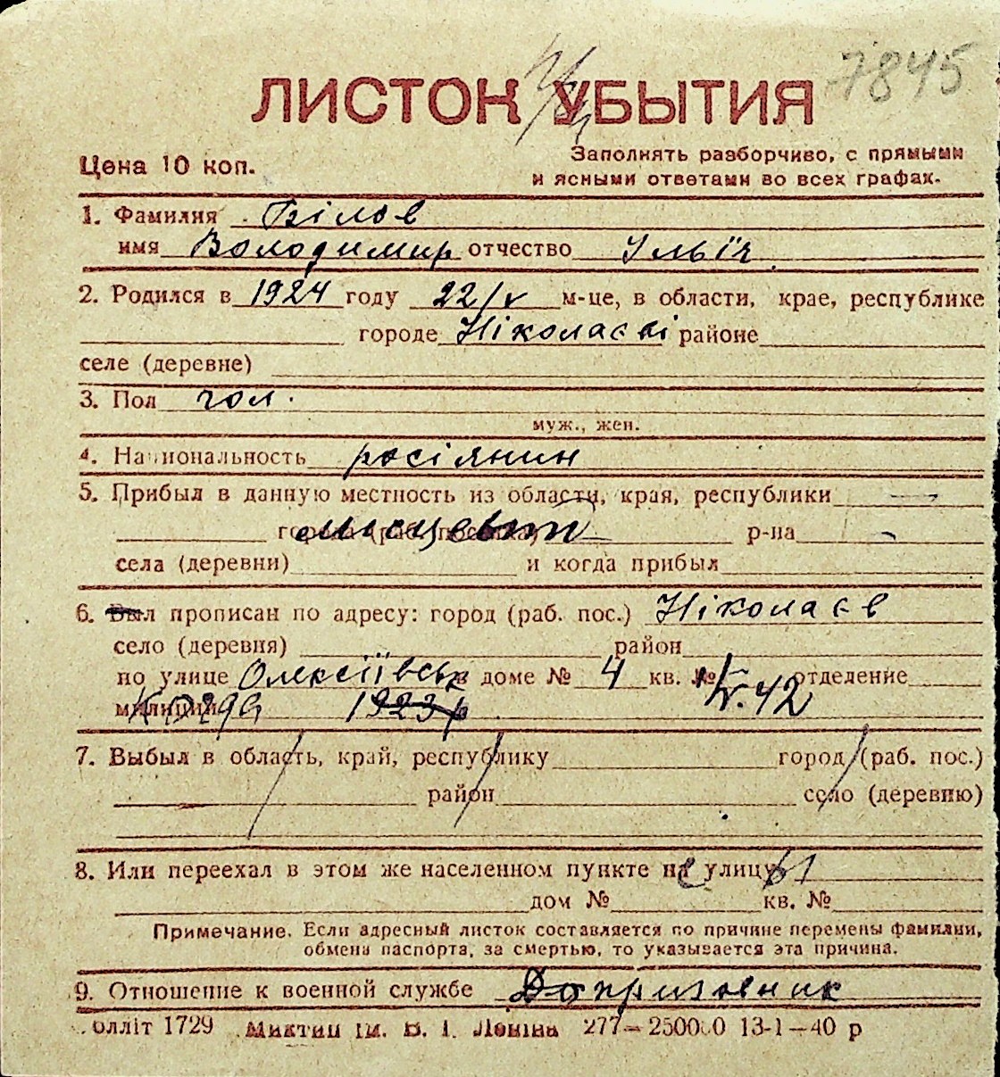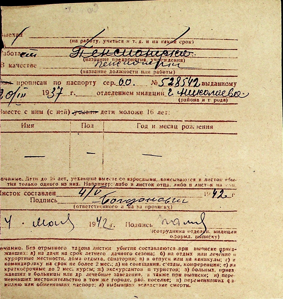 ◦ ◦ Перелік карток на осіб, які мешкали у м. Миколаїв у період окупації 1941–1944 років