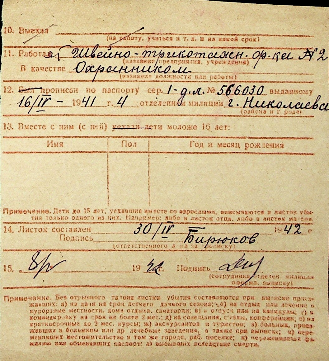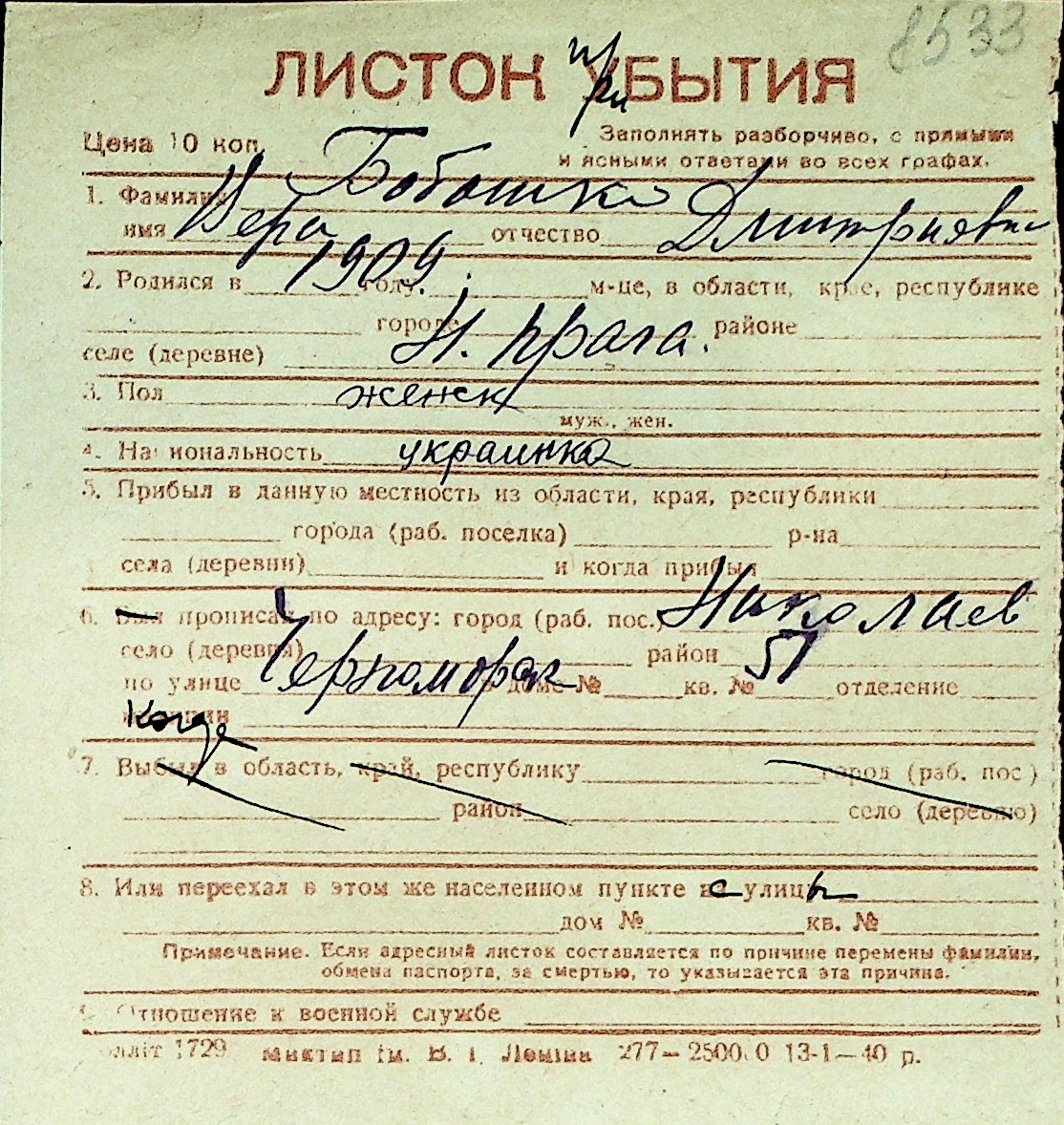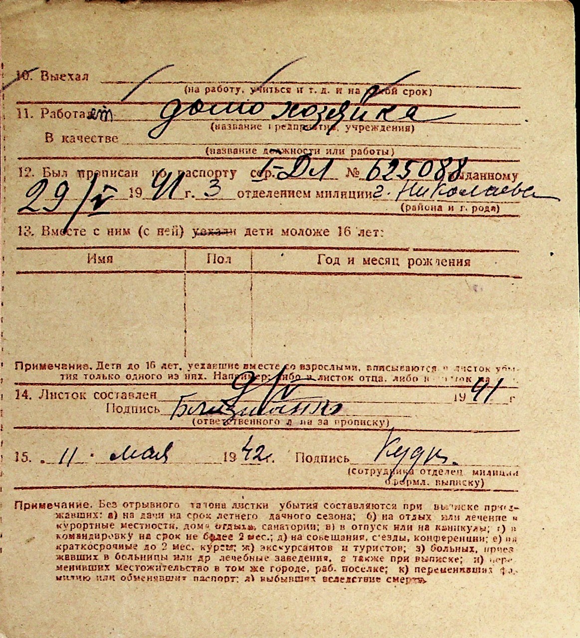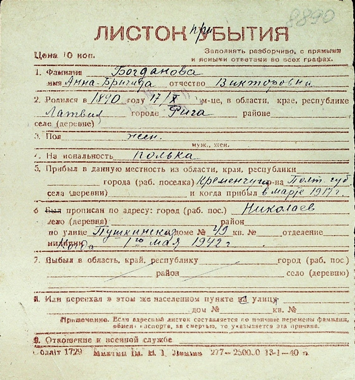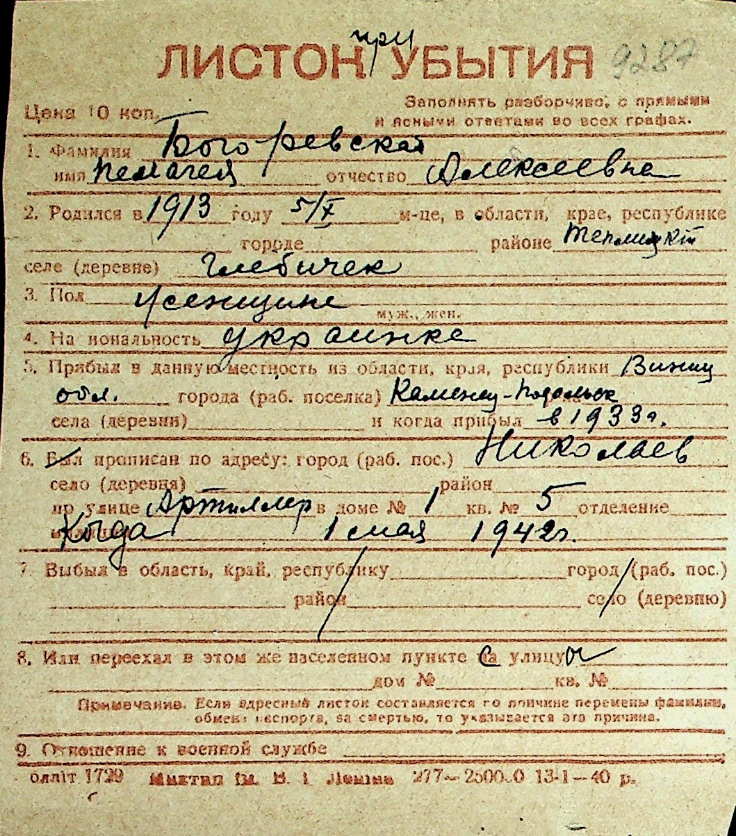 ◦ ◦ Перелік карток на осіб, які мешкали у м. Миколаїв у період окупації 1941–1944 років
