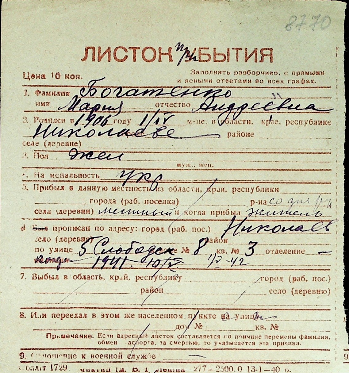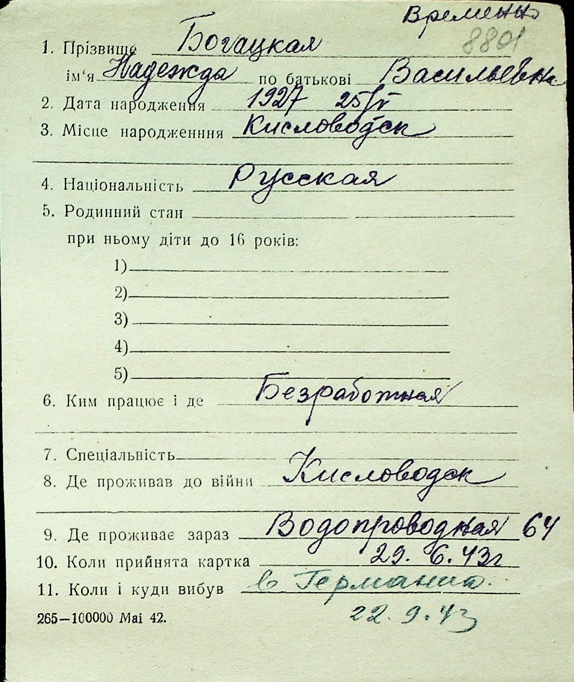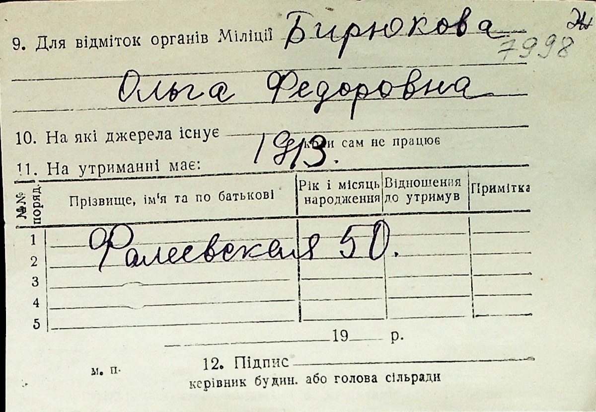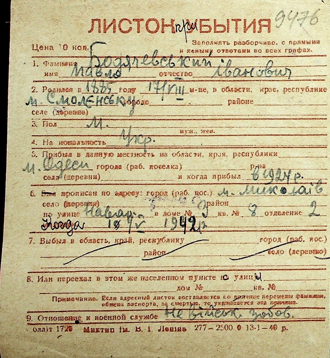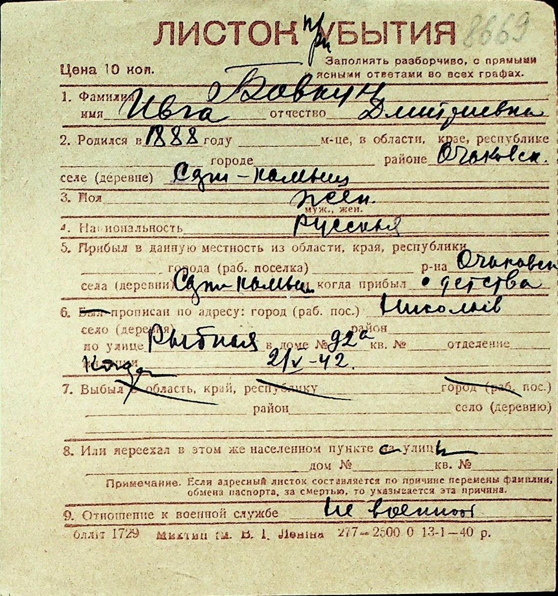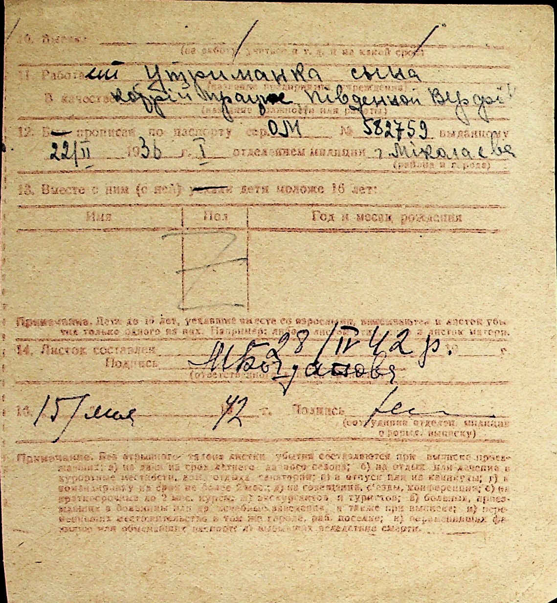 ◦ ◦ Перелік карток на осіб, які мешкали у м. Миколаїв у період окупації 1941–1944 років