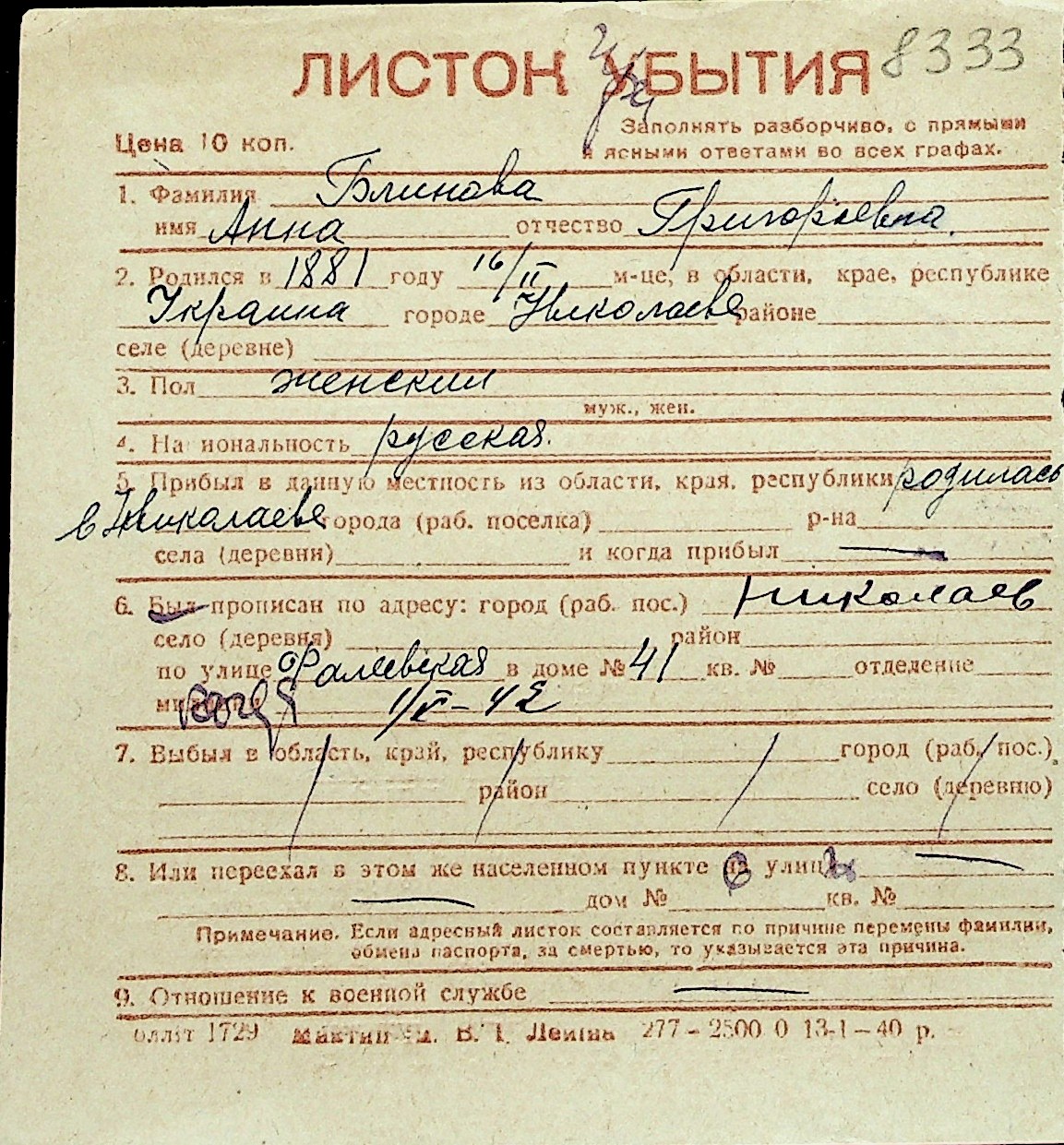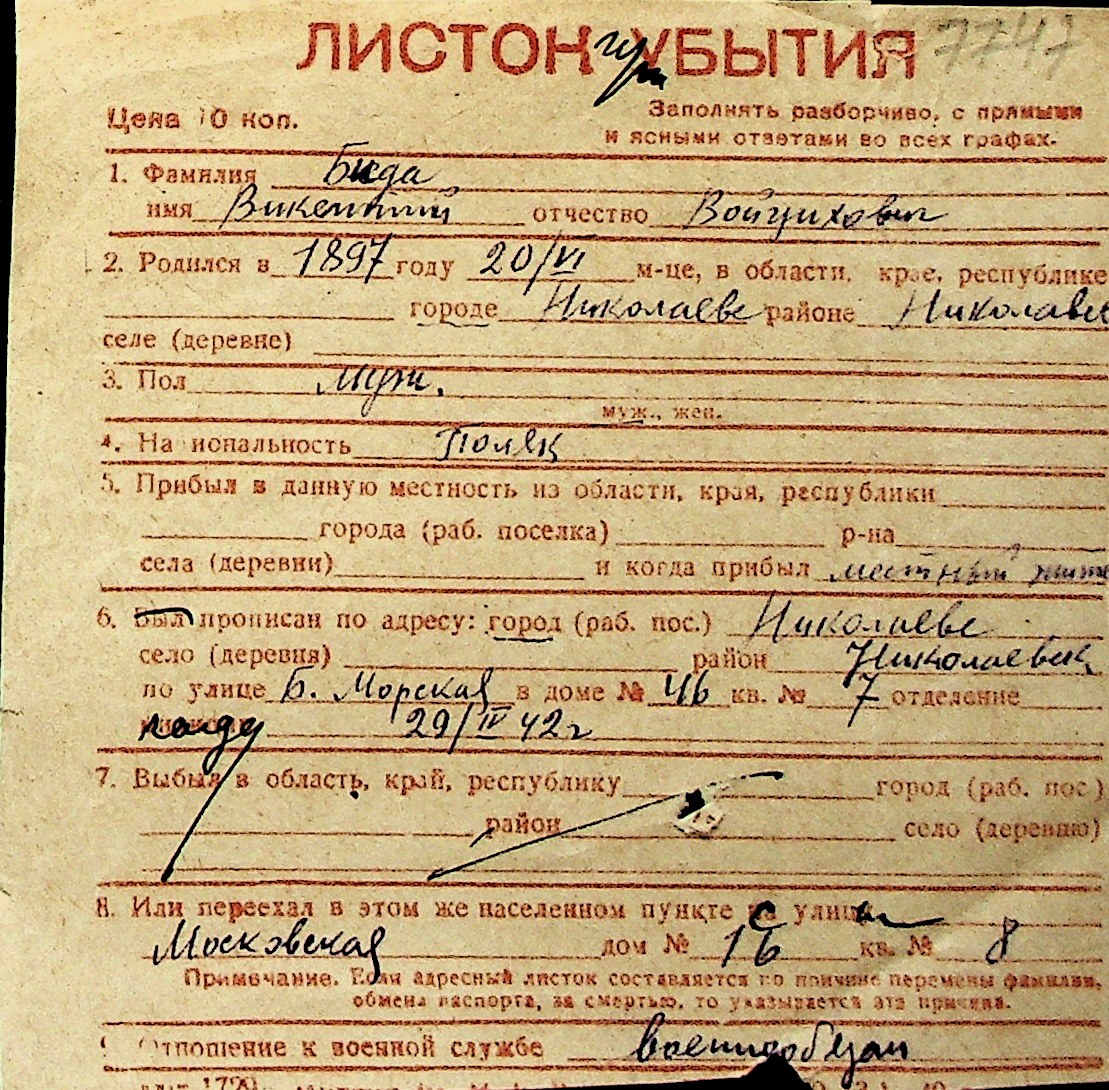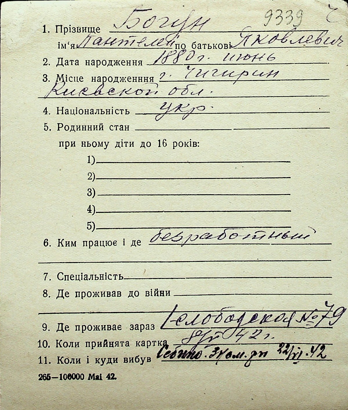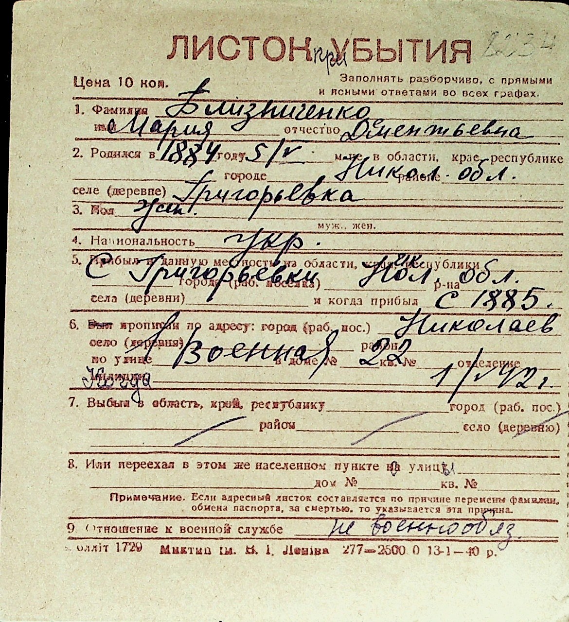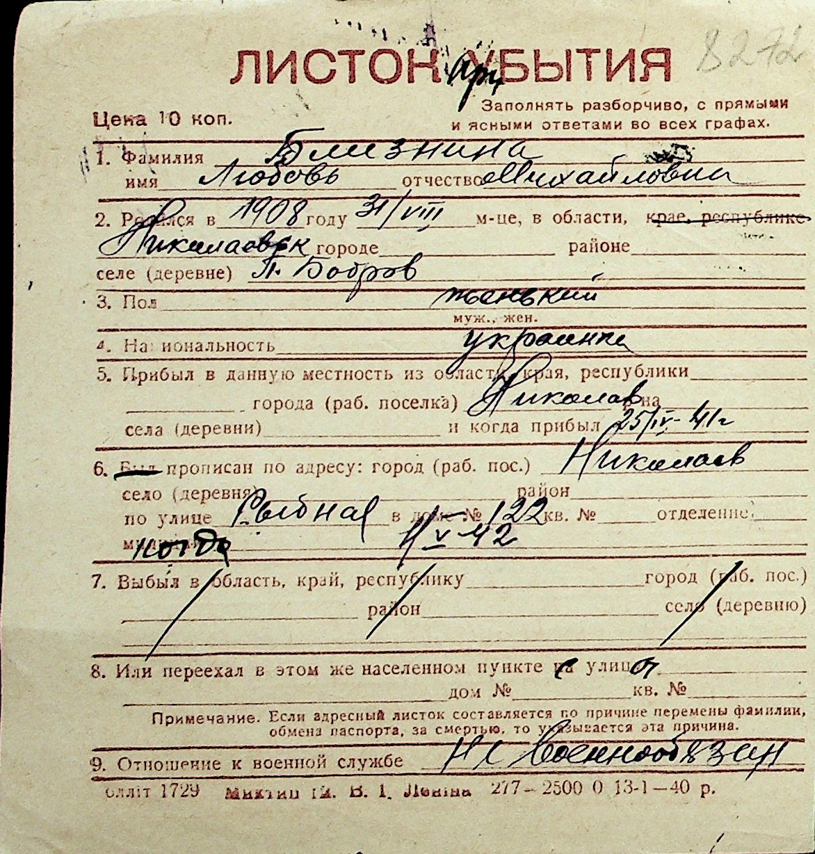 ◦ ◦ Перелік карток на осіб, які мешкали у м. Миколаїв у період окупації 1941–1944 років
