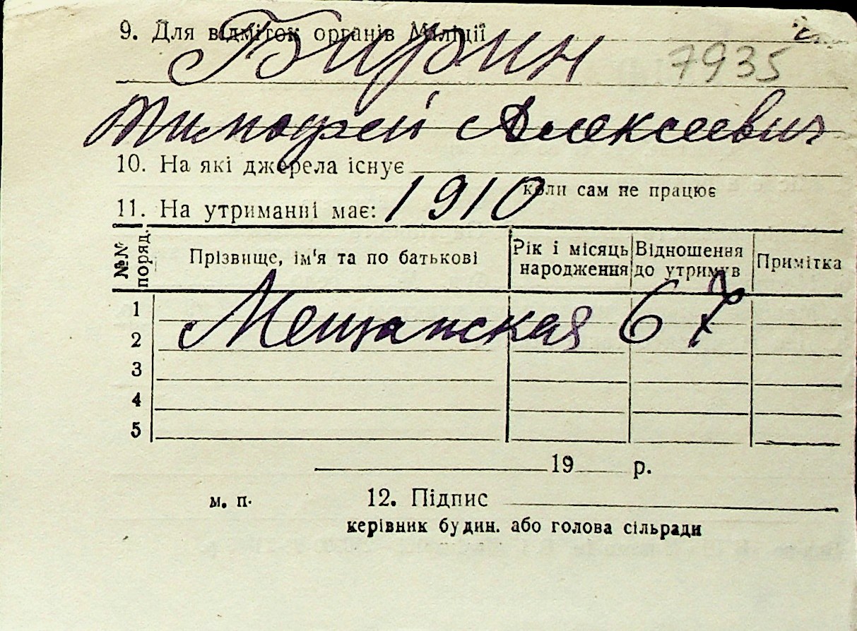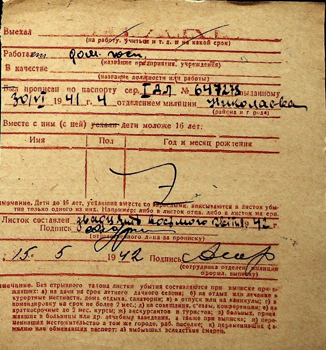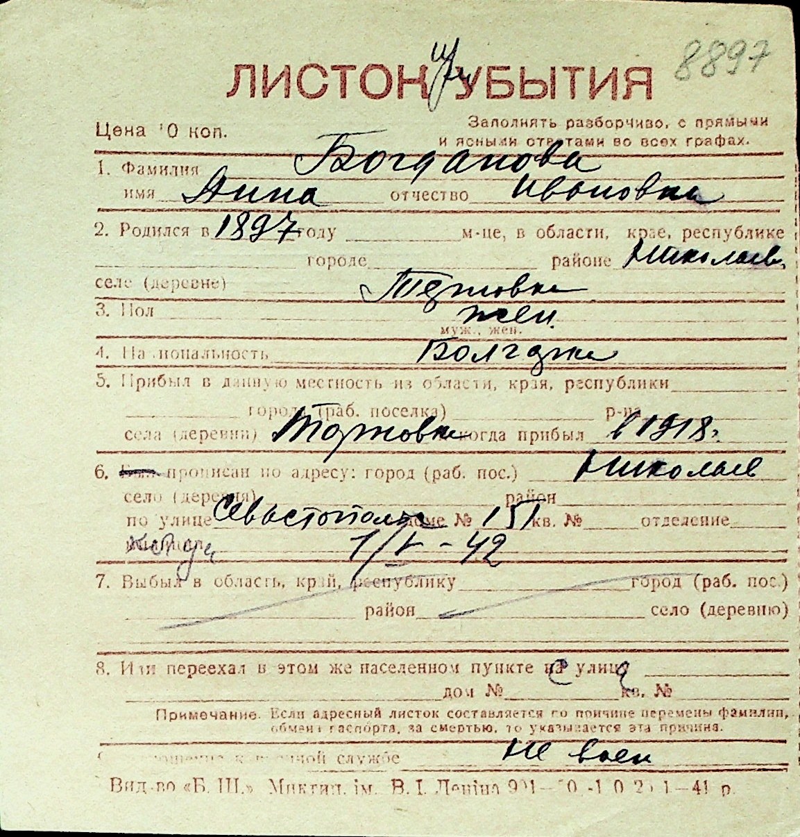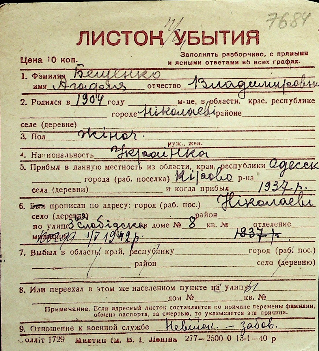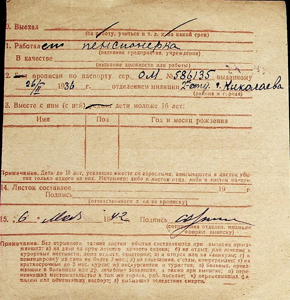 ◦ ◦ Перелік карток на осіб, які мешкали у м. Миколаїв у період окупації 1941–1944 років