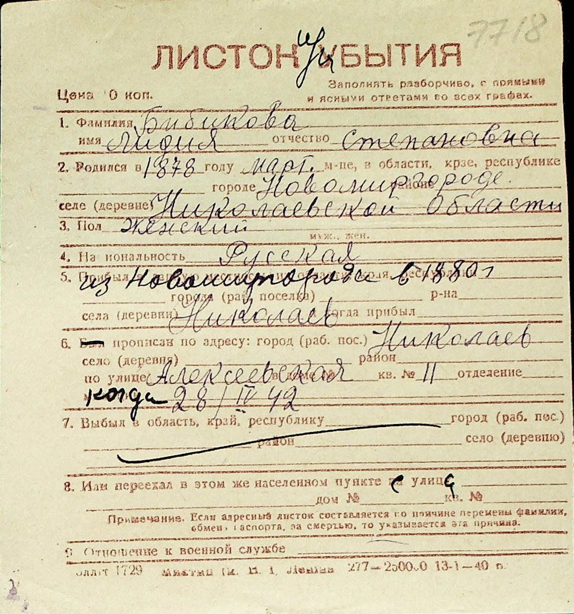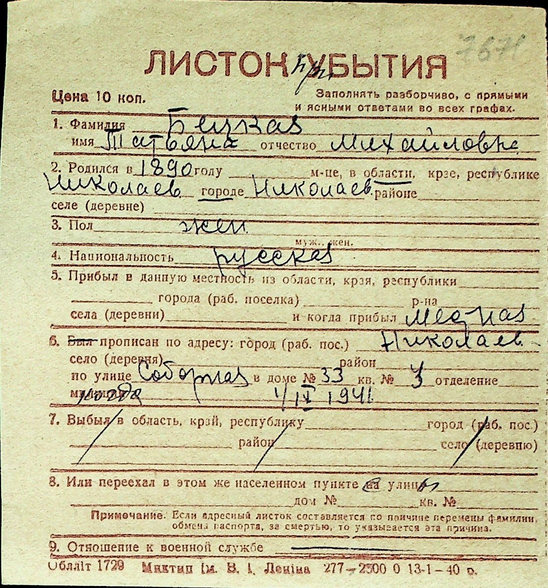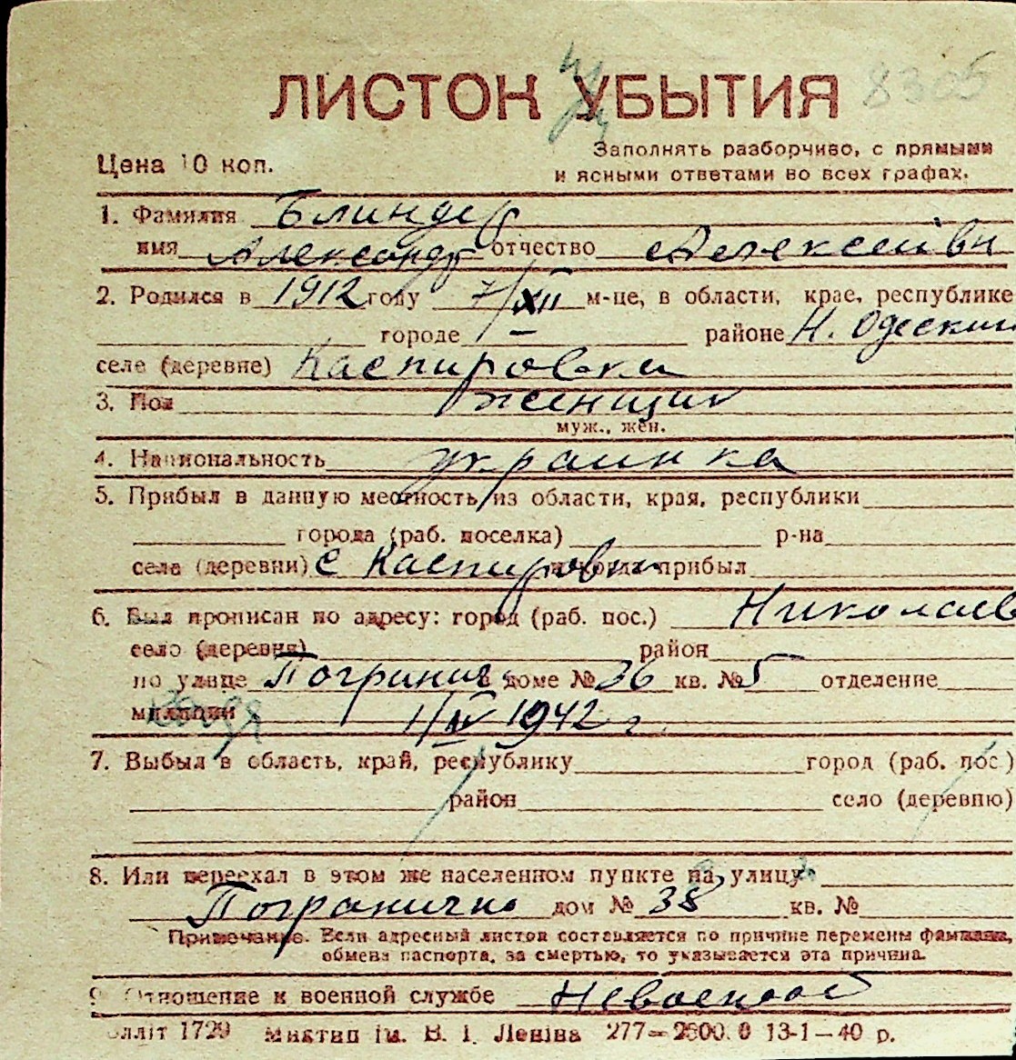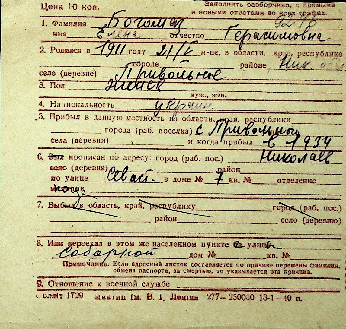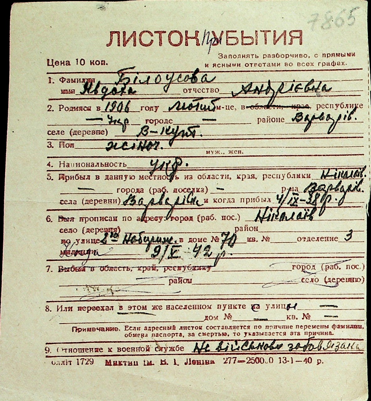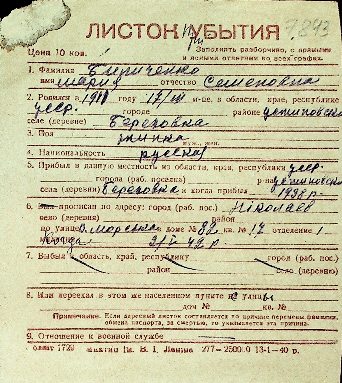 ◦ ◦ Перелік карток на осіб, які мешкали у м. Миколаїв у період окупації 1941–1944 років