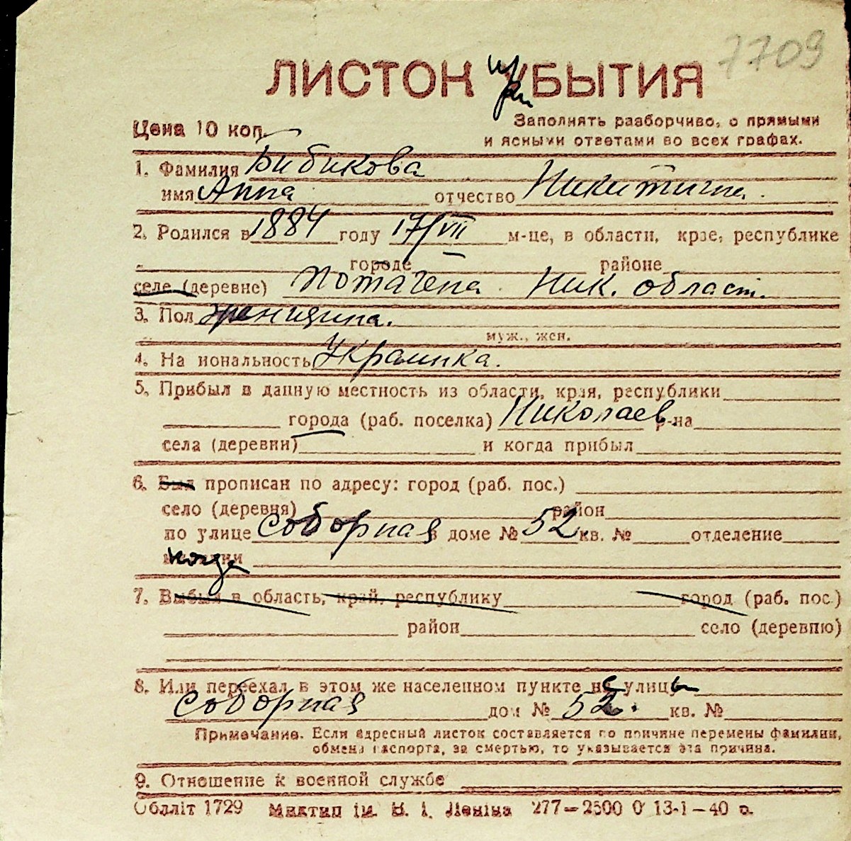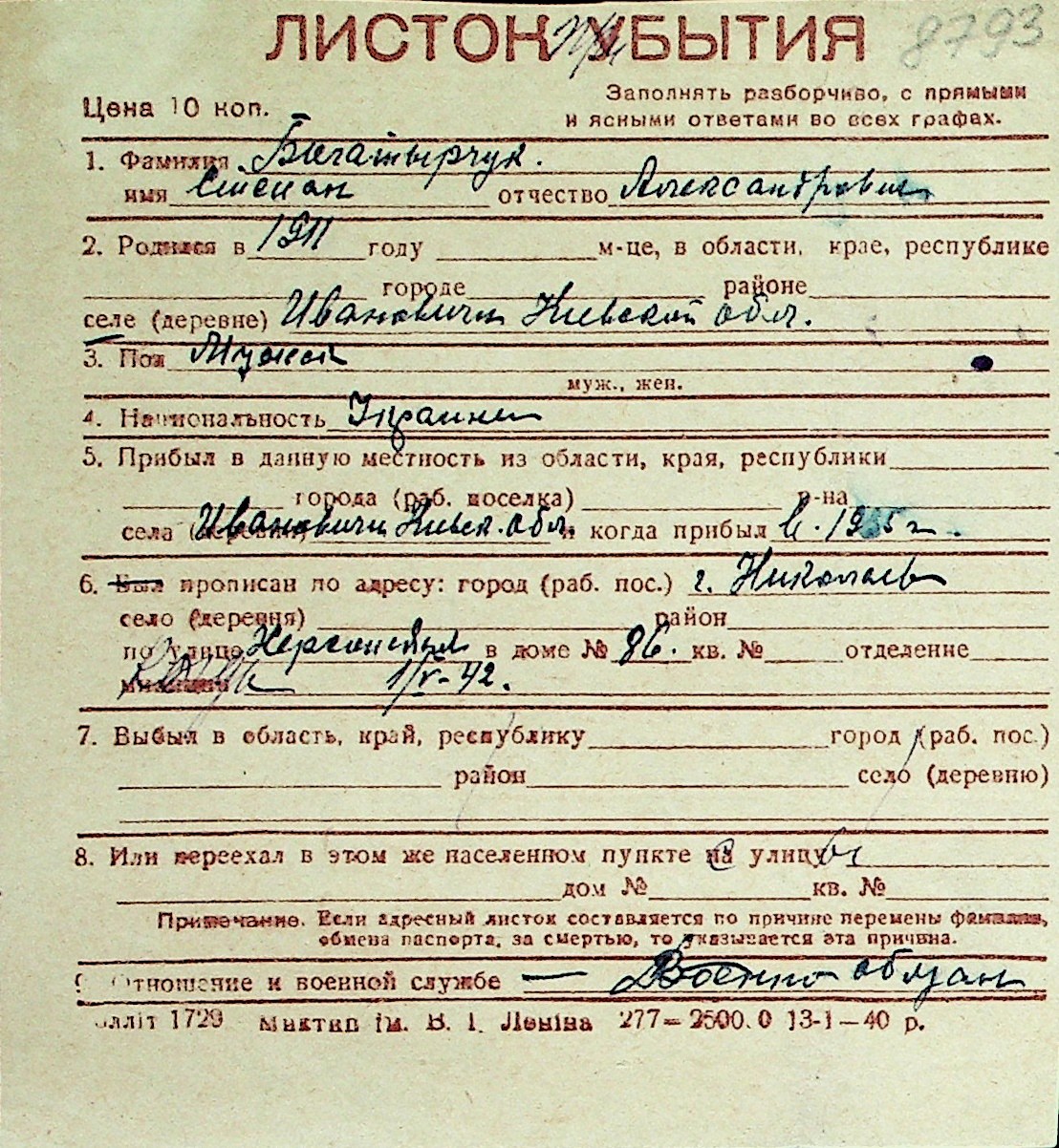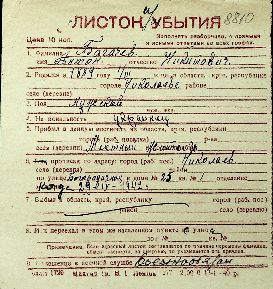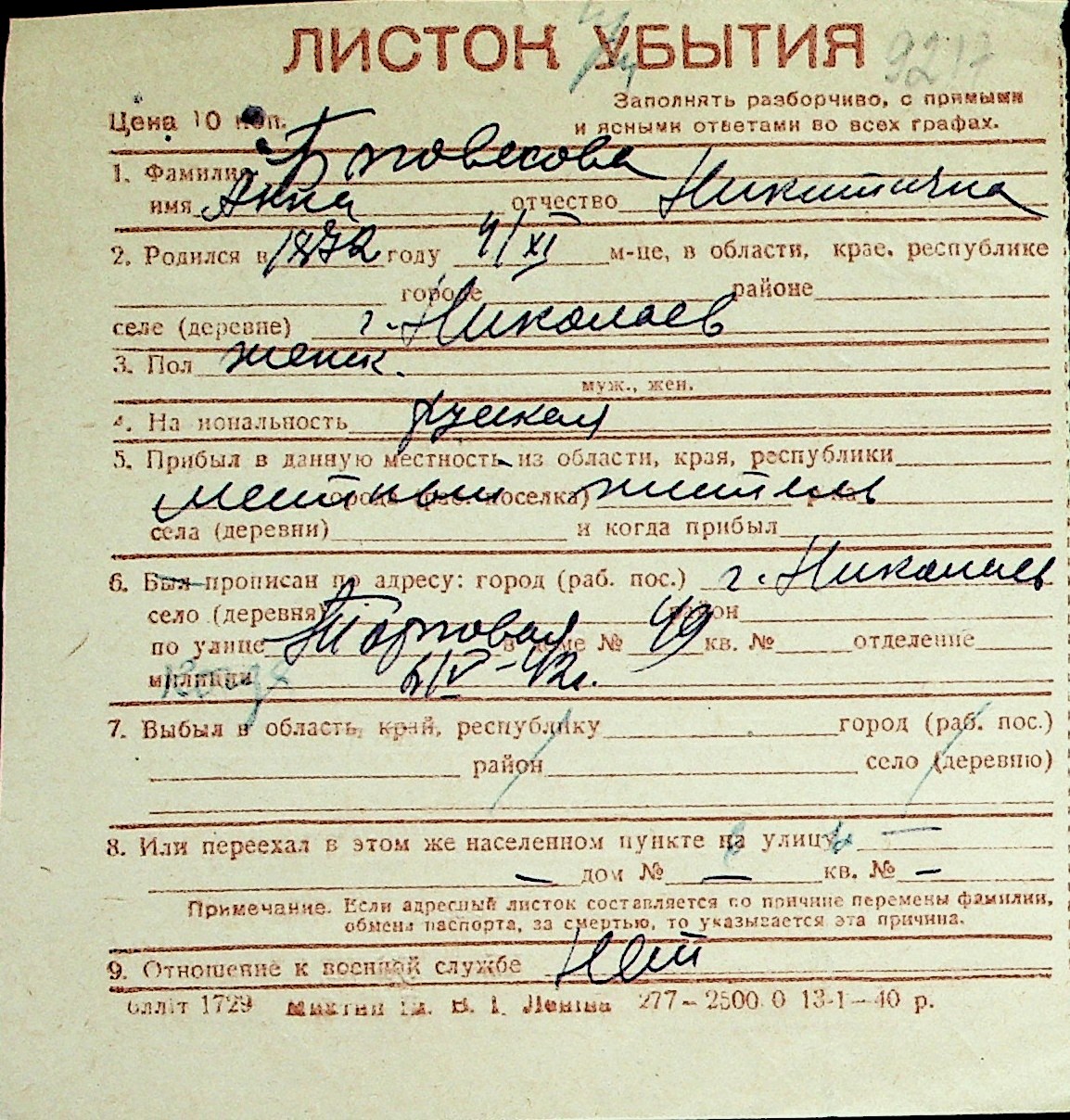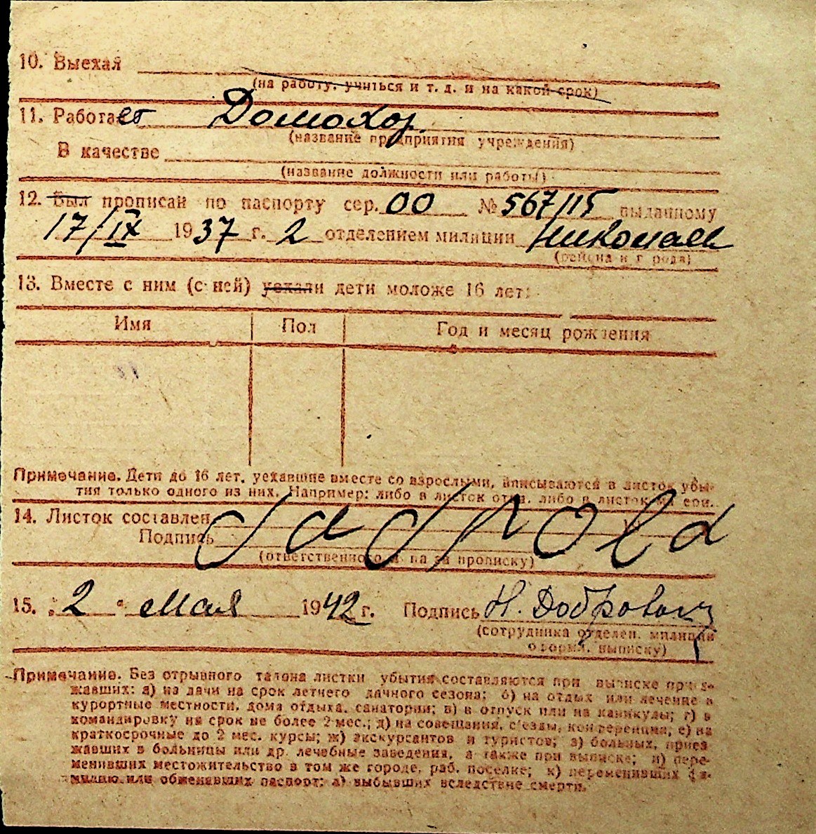 ◦ ◦ Перелік карток на осіб, які мешкали у м. Миколаїв у період окупації 1941–1944 років
