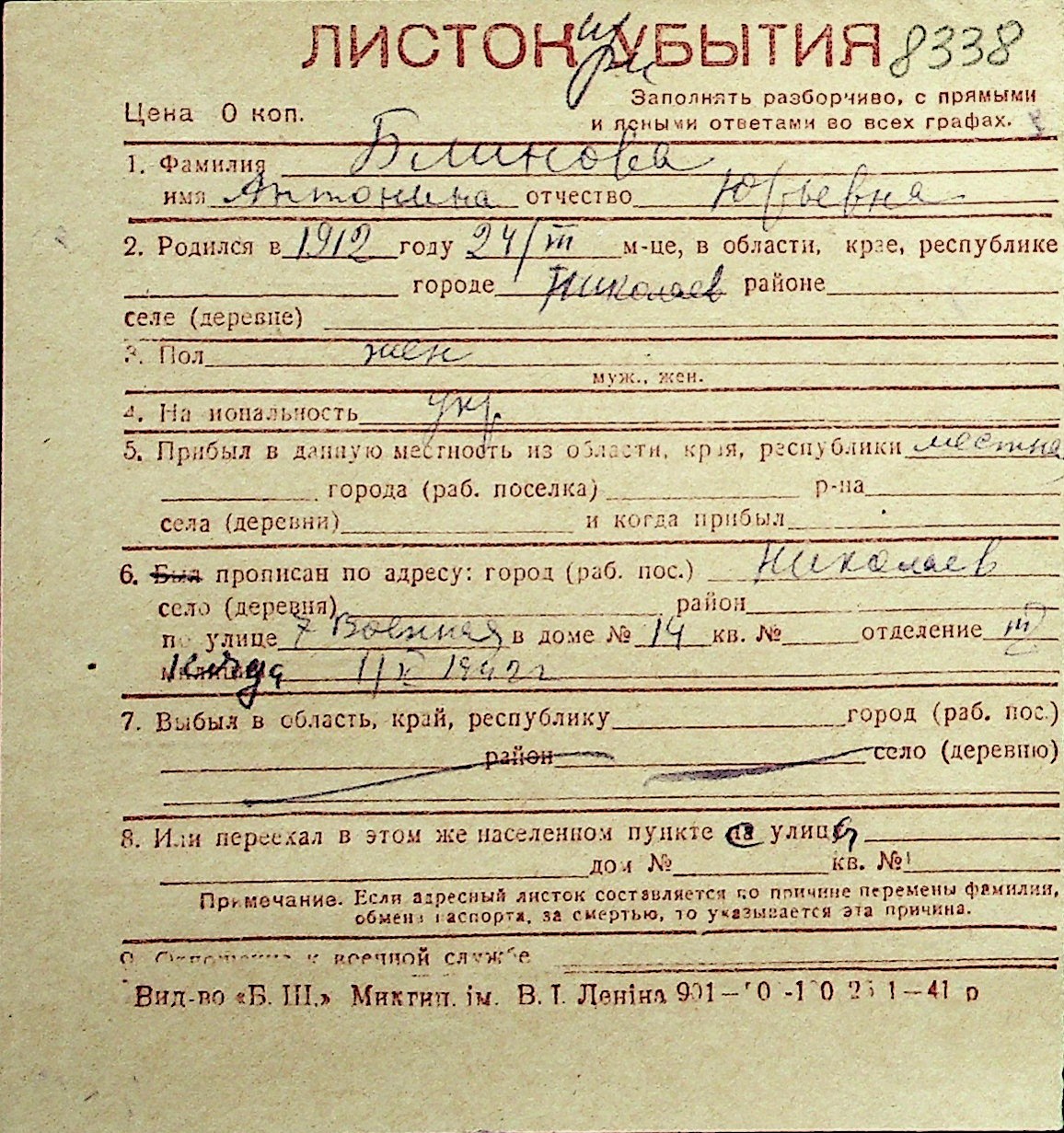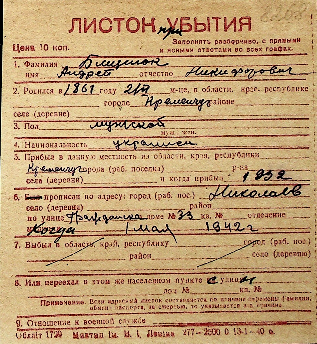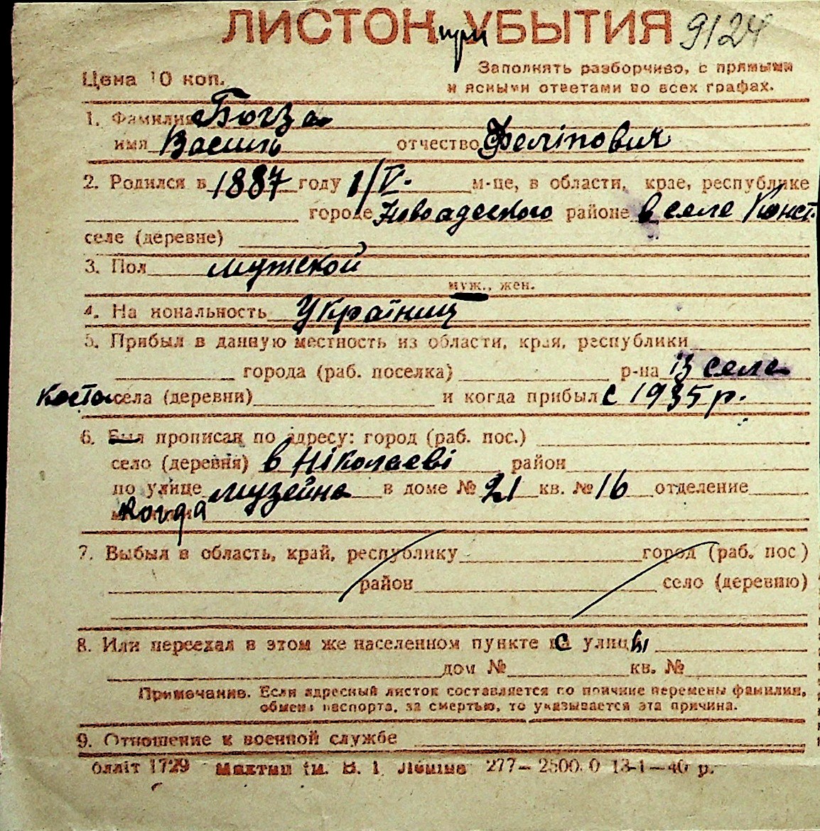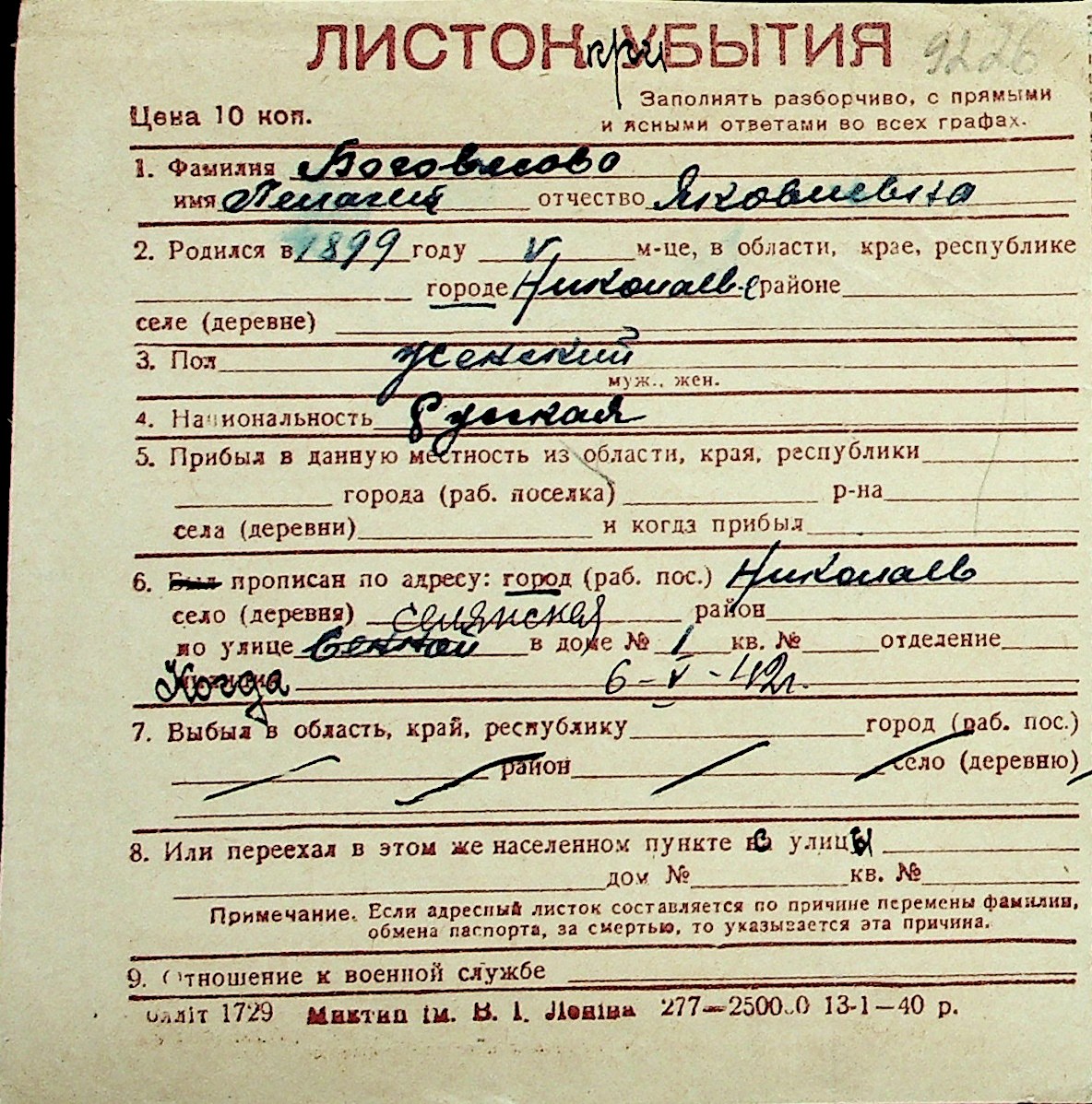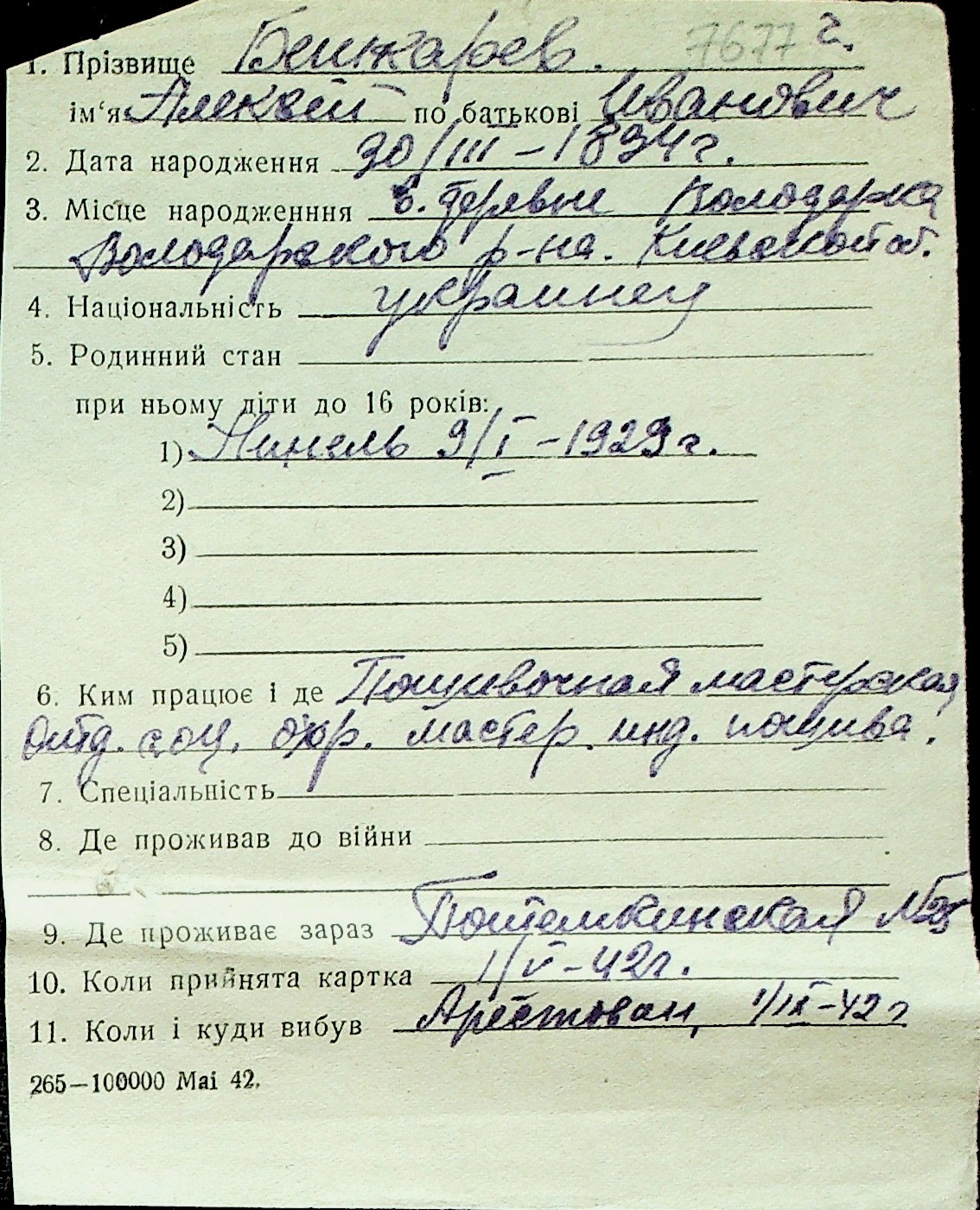 ◦ ◦ Перелік карток на осіб, які мешкали у м. Миколаїв у період окупації 1941–1944 років