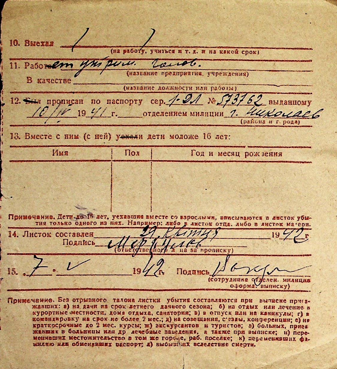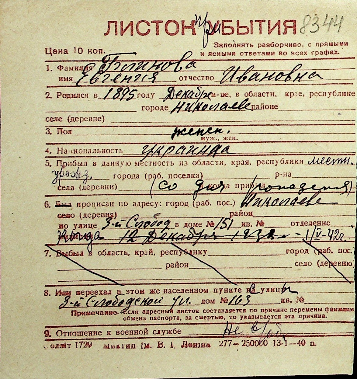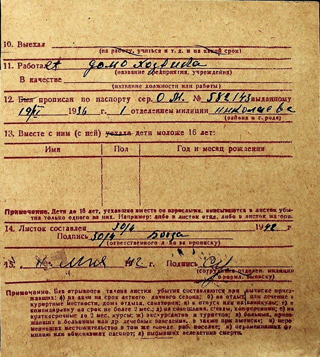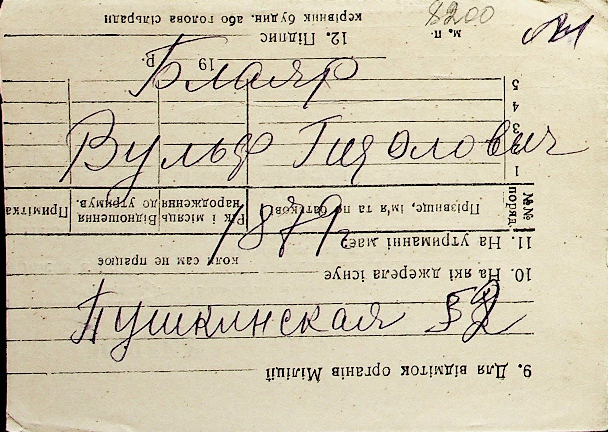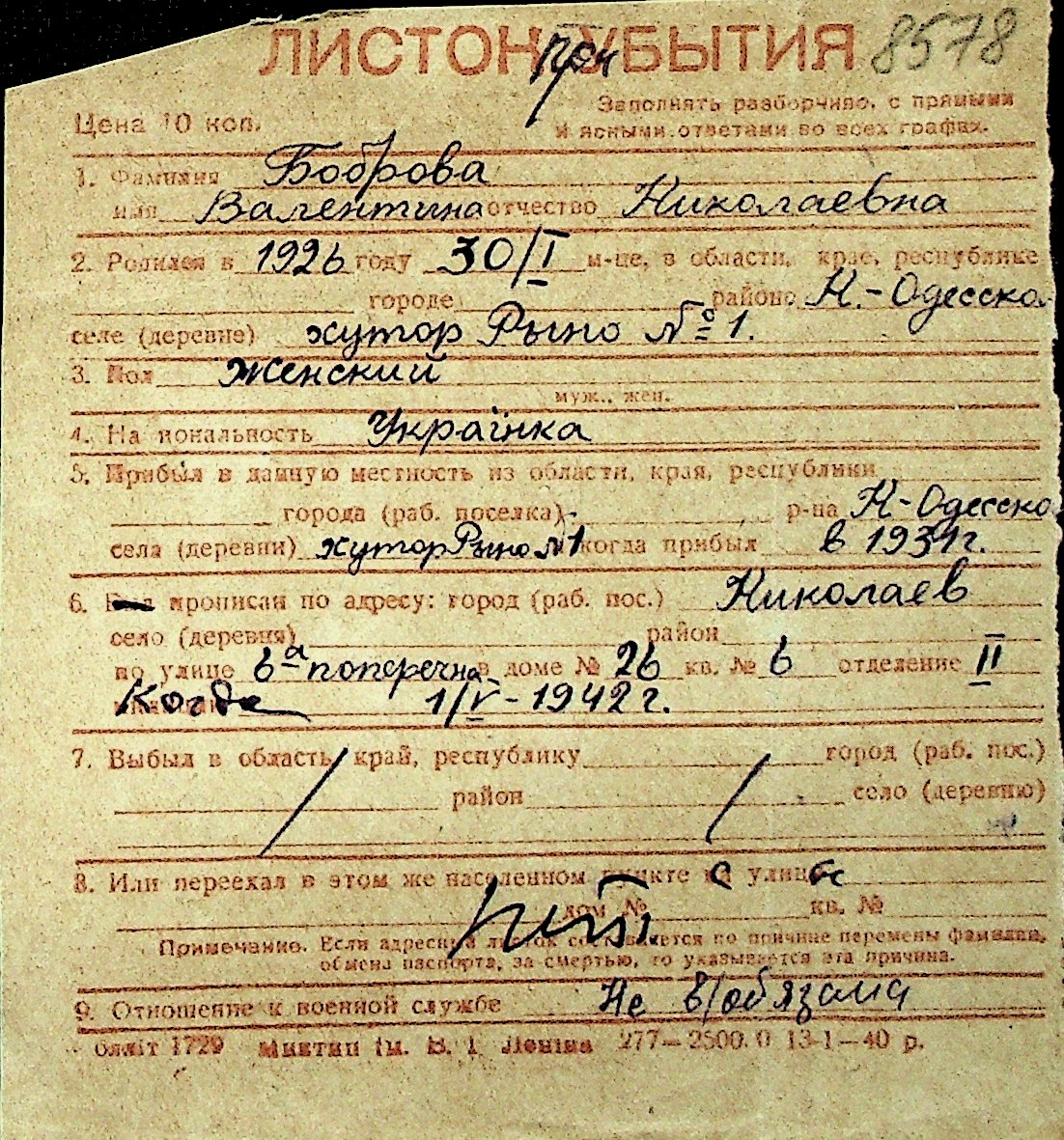 ◦ ◦ Перелік карток на осіб, які мешкали у м. Миколаїв у період окупації 1941–1944 років