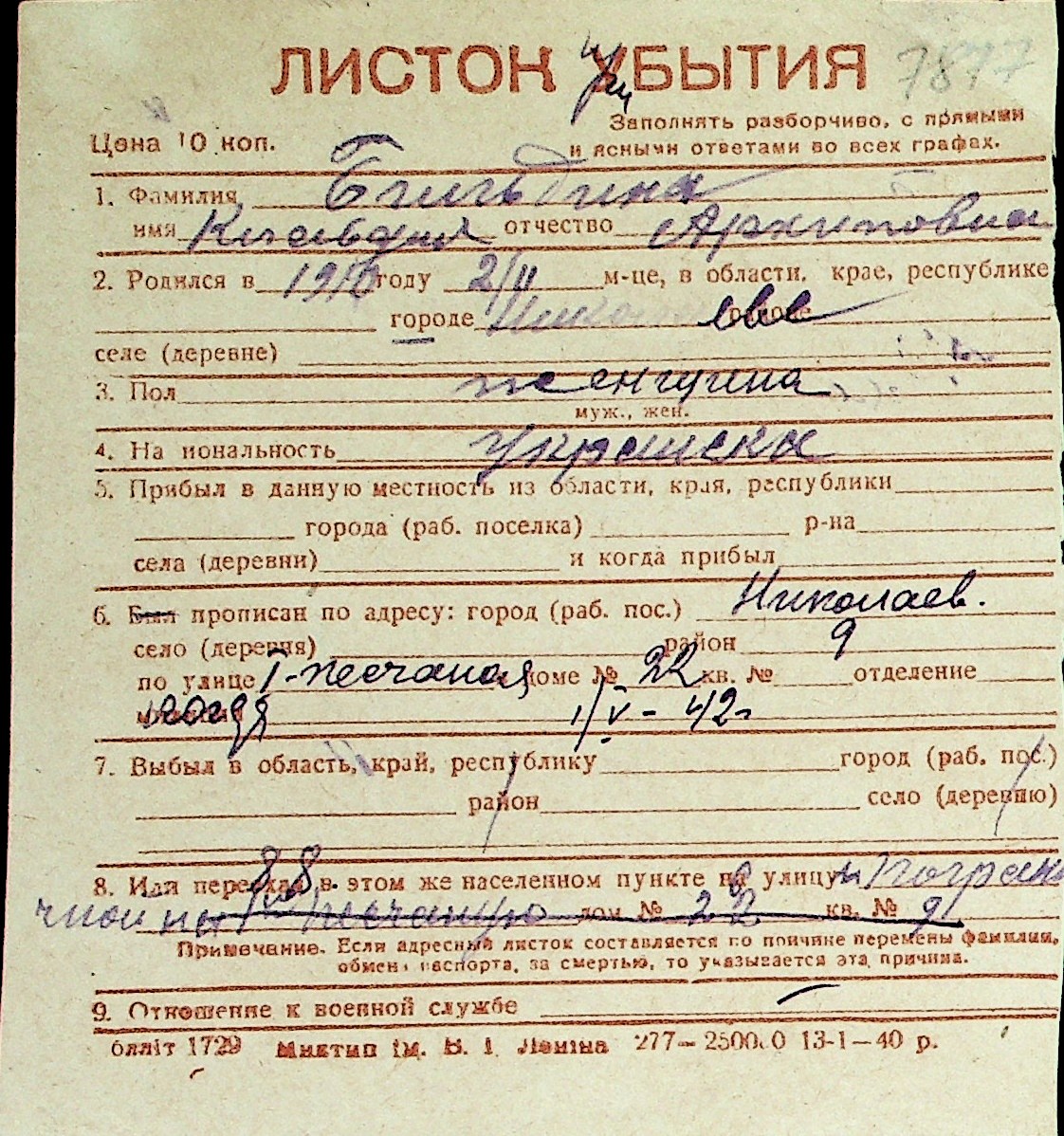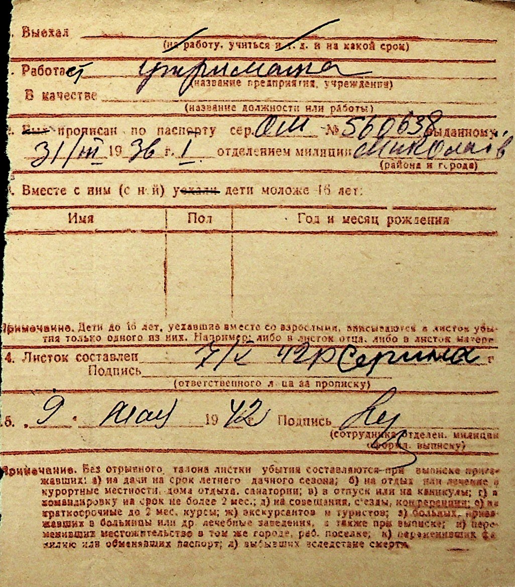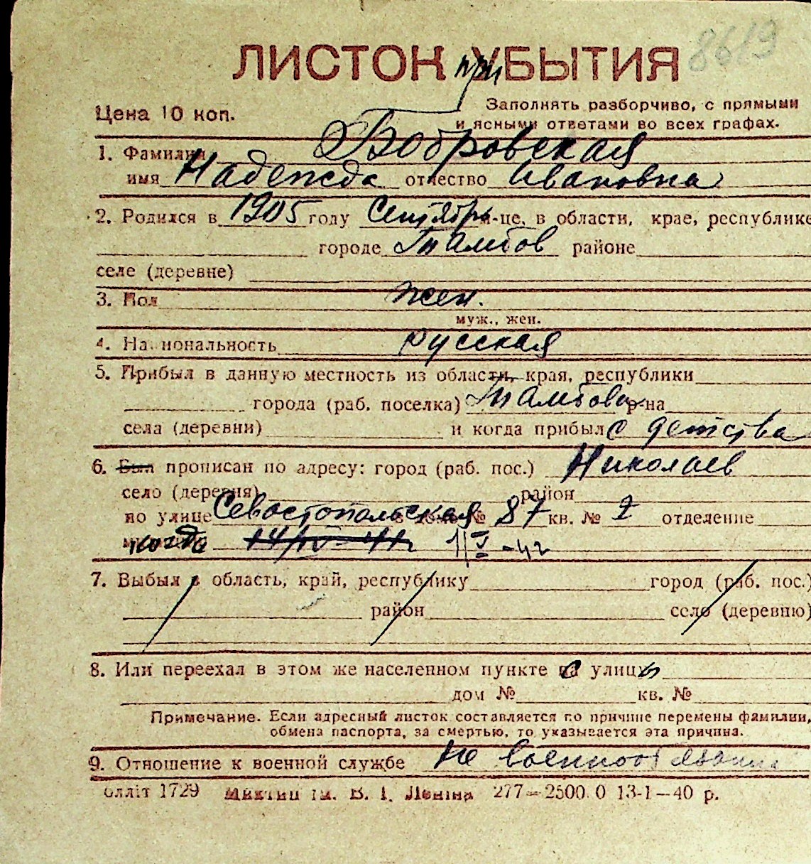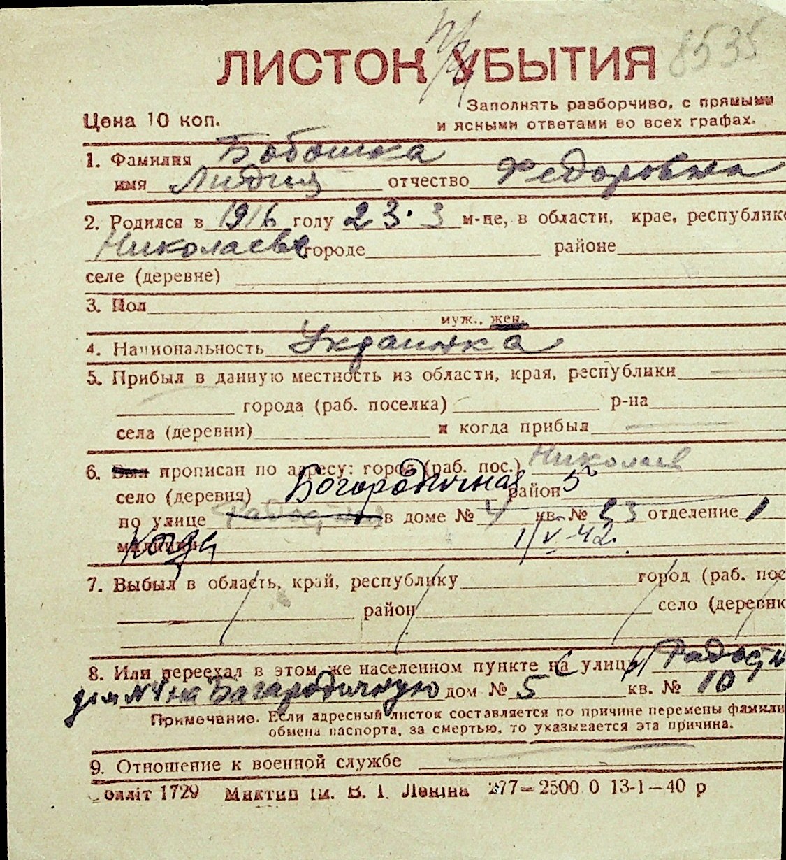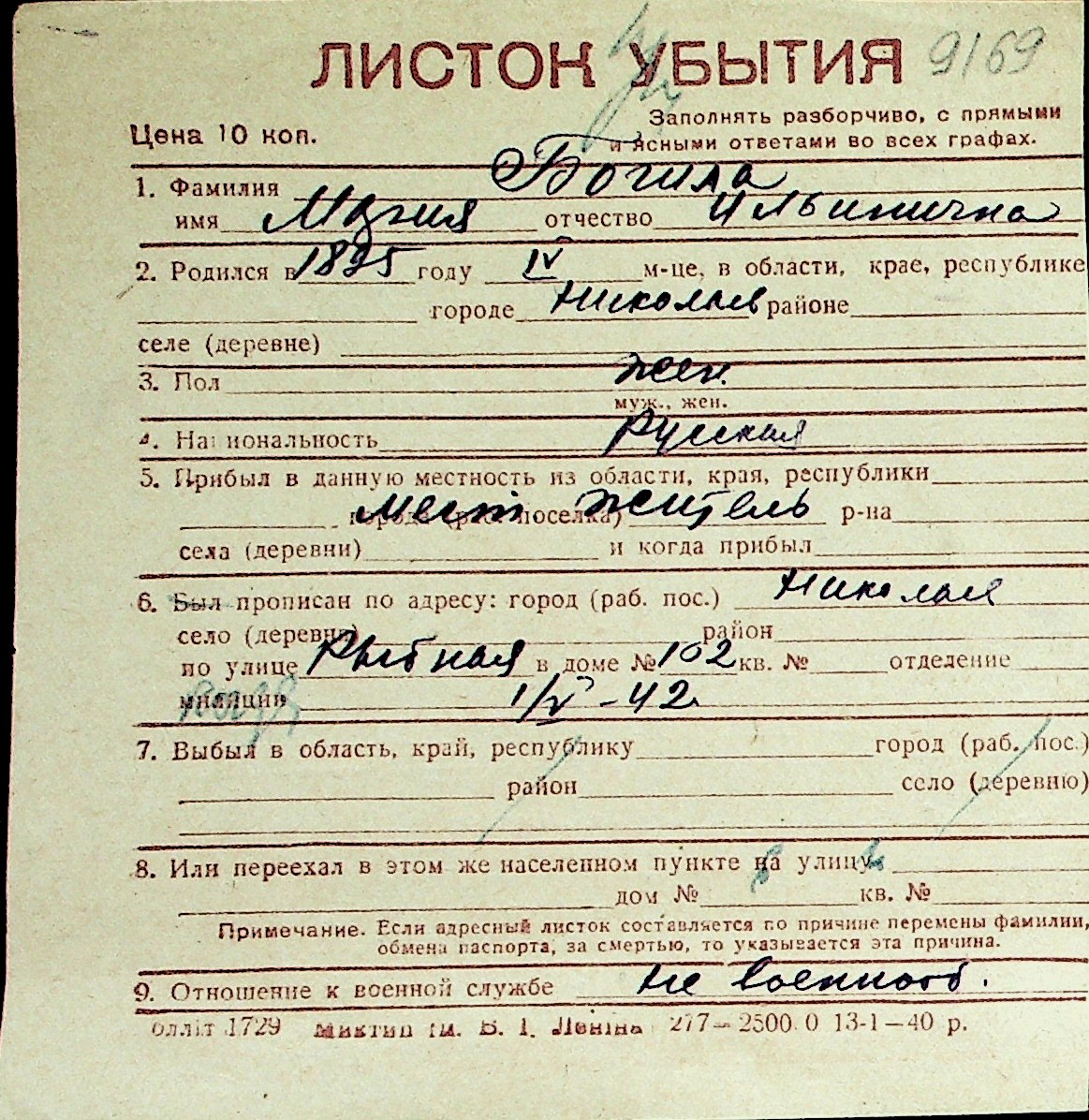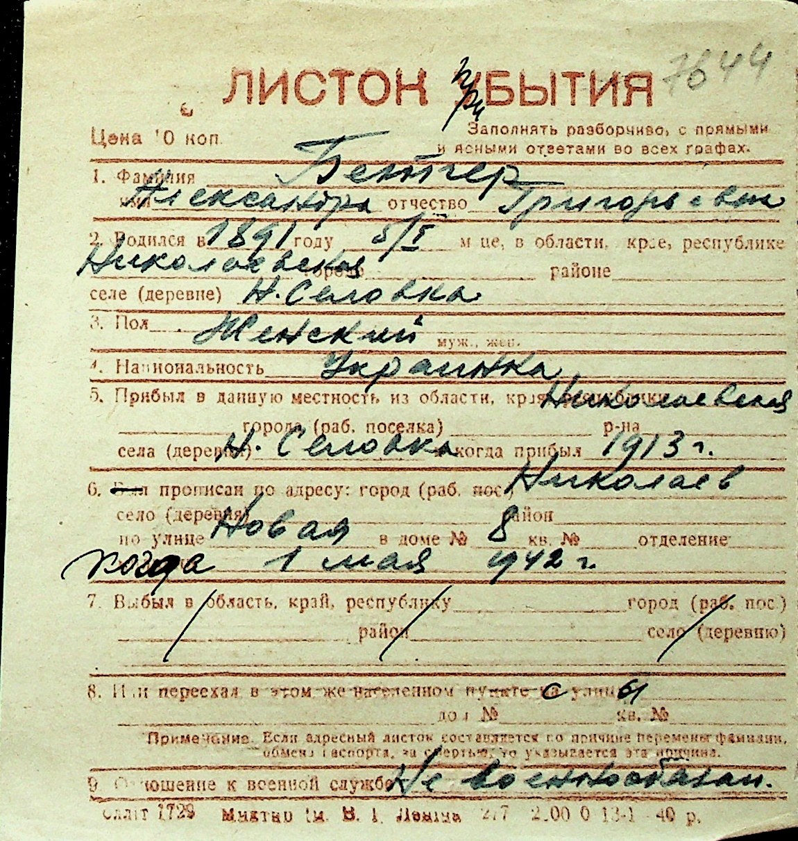 ◦ ◦ Перелік карток на осіб, які мешкали у м. Миколаїв у період окупації 1941–1944 років