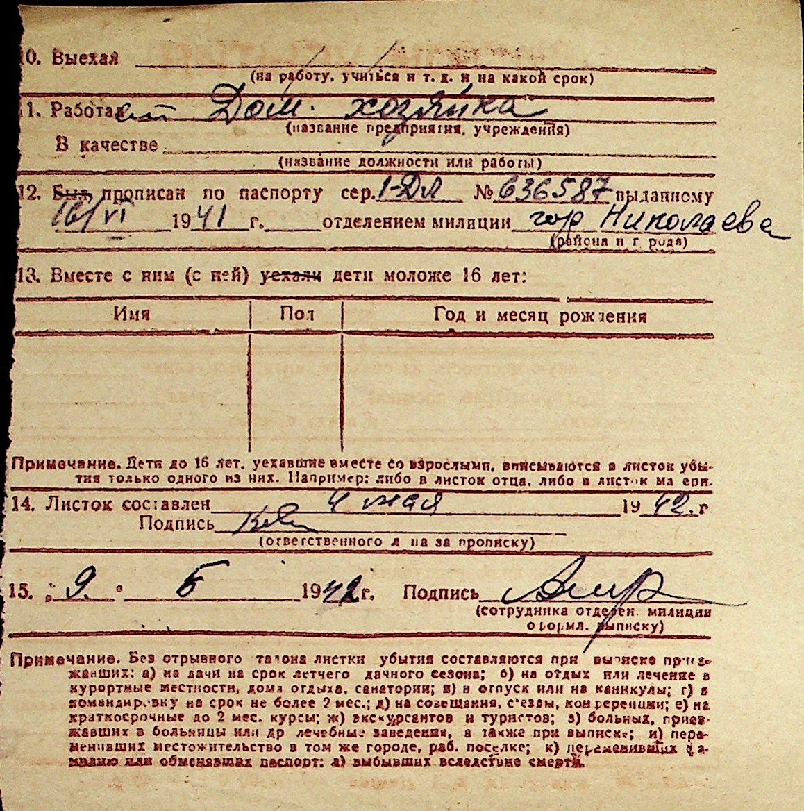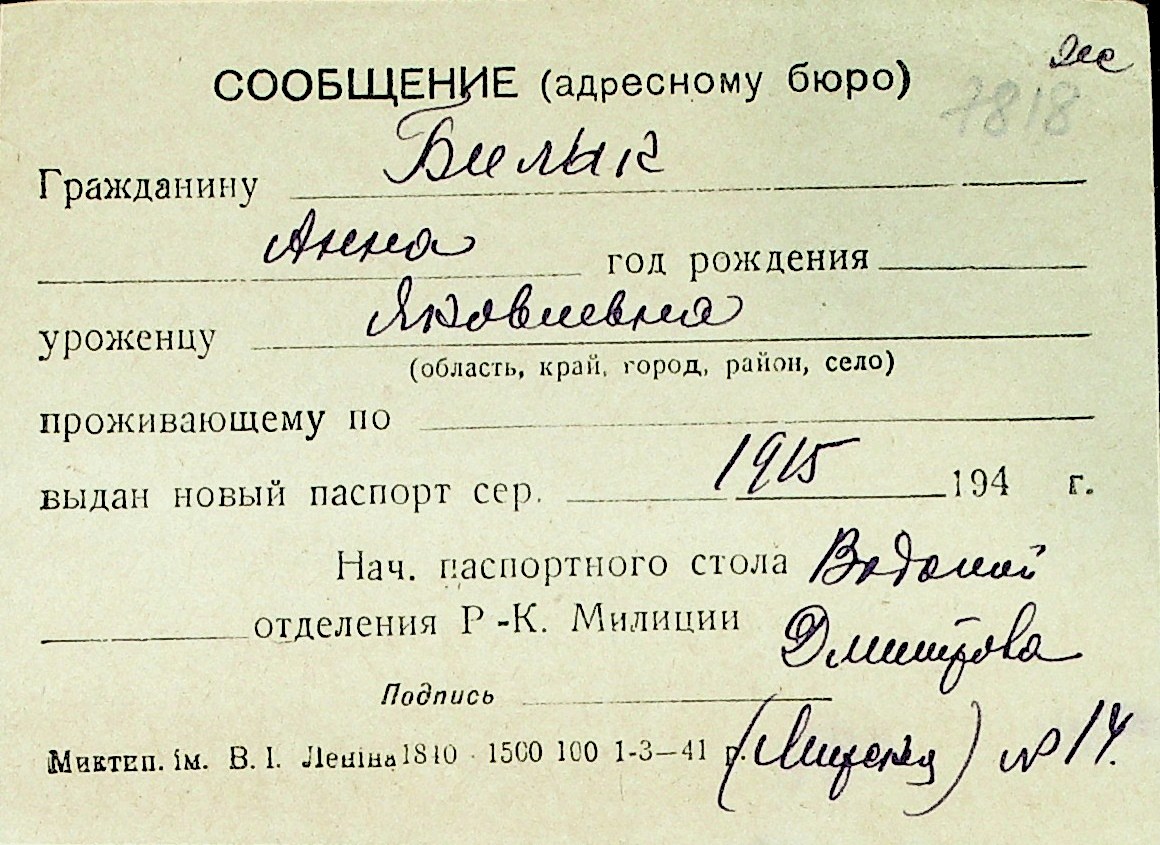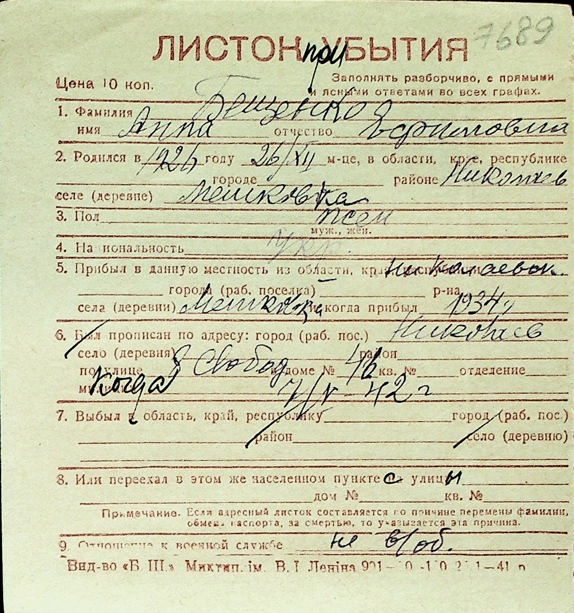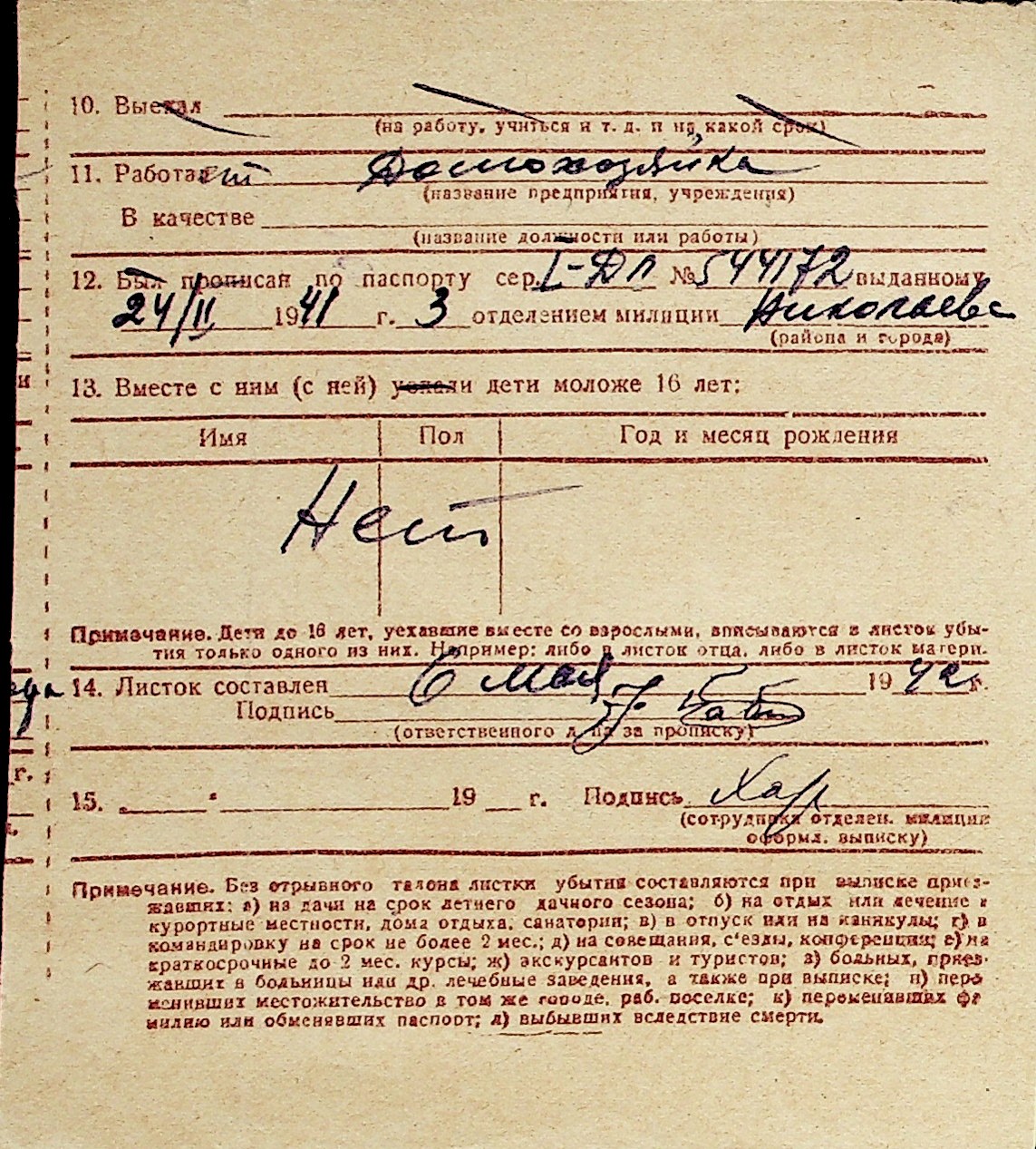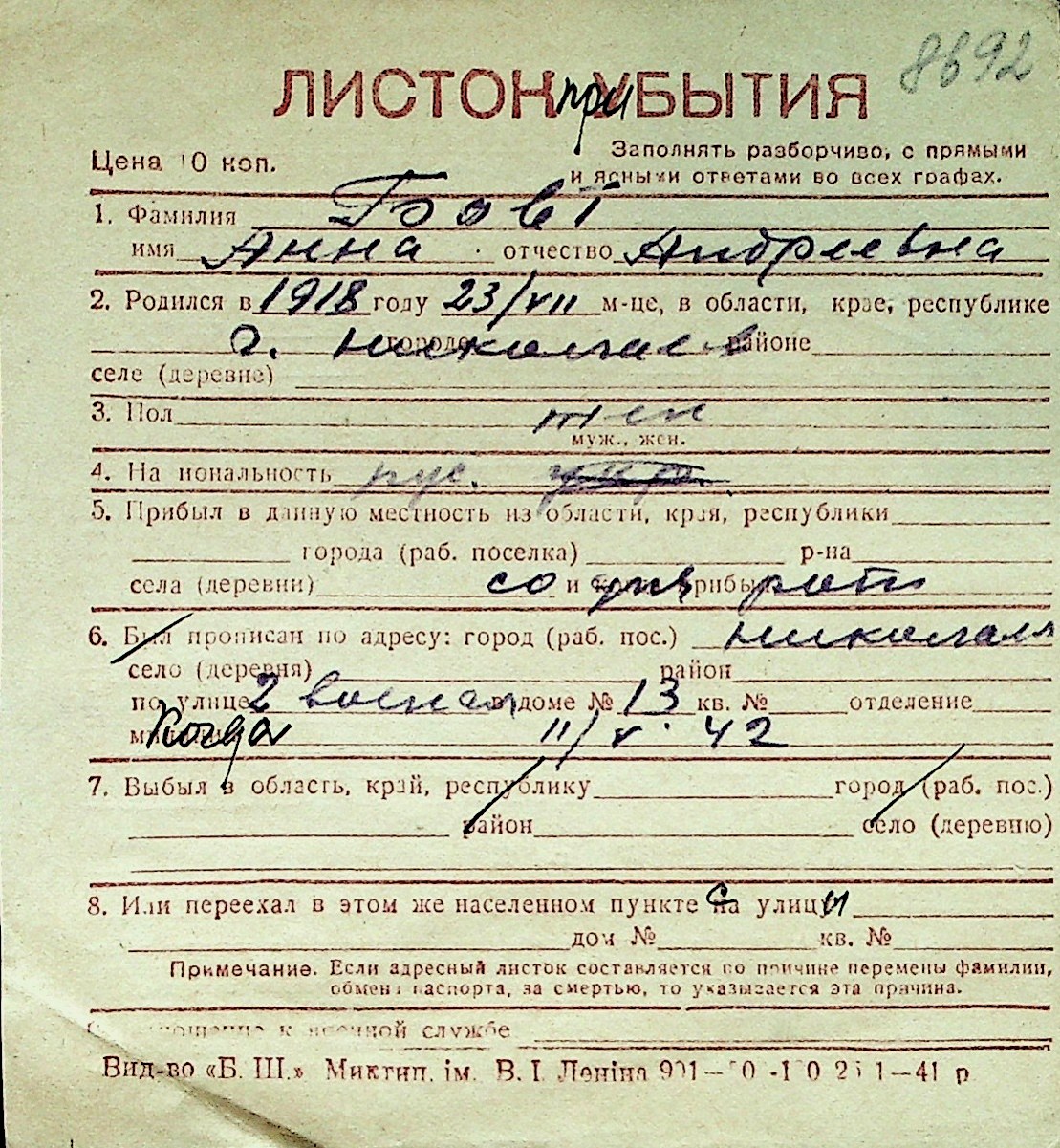◦ ◦ Перелік карток на осіб, які мешкали у м. Миколаїв у період окупації 1941–1944 років